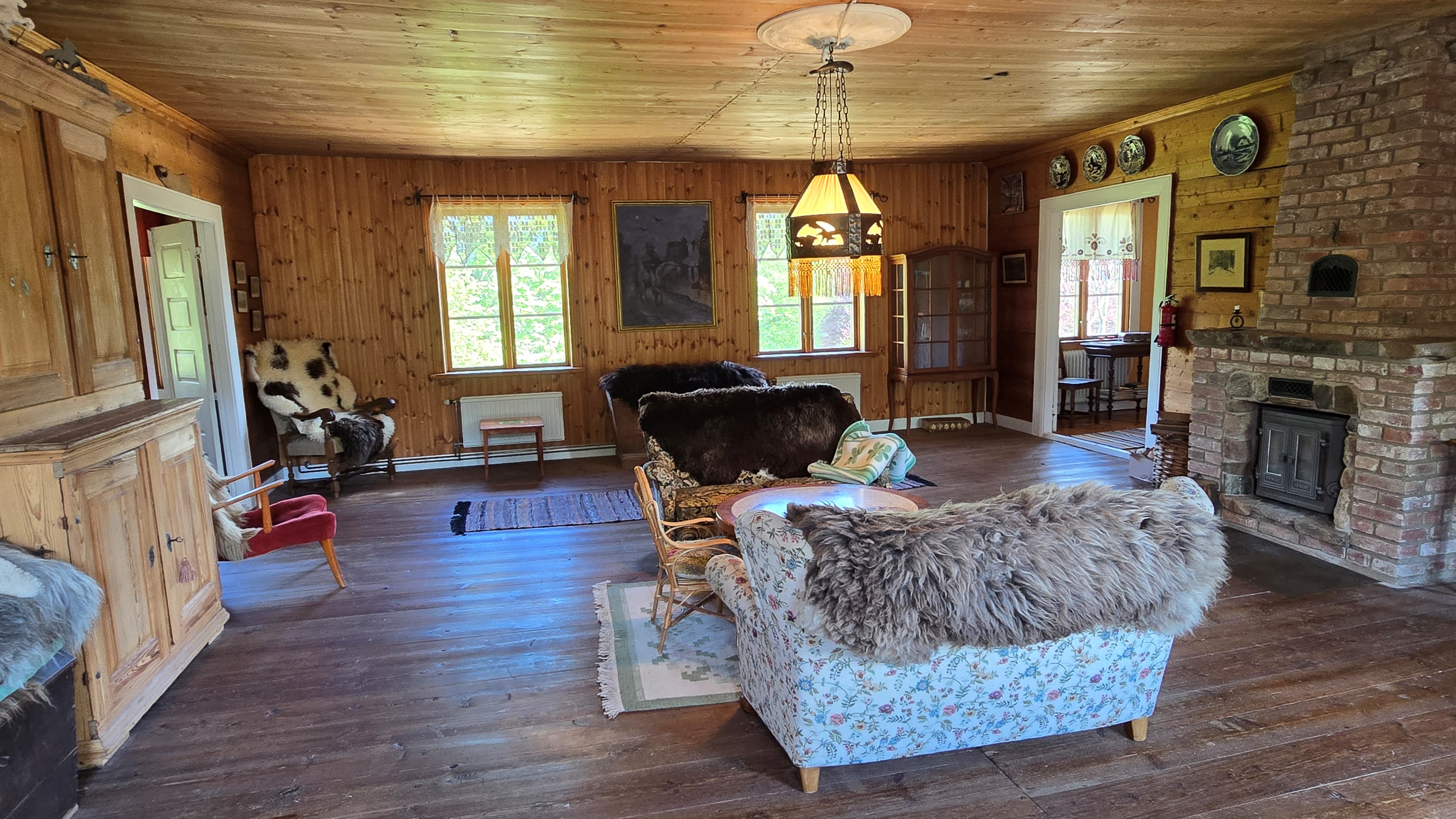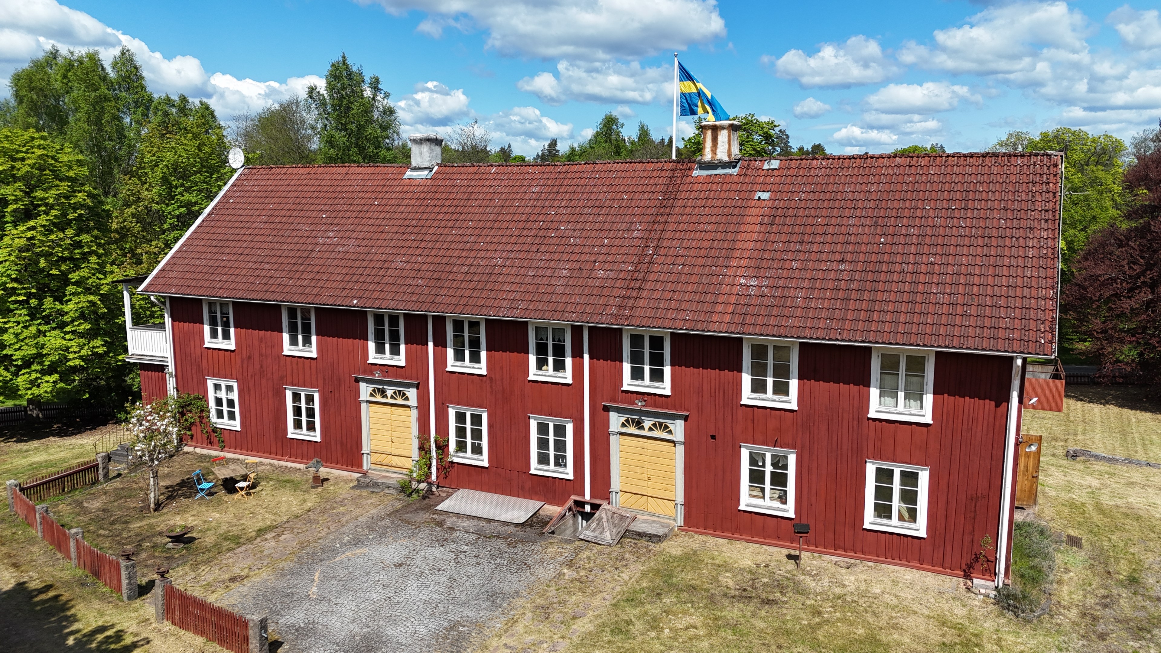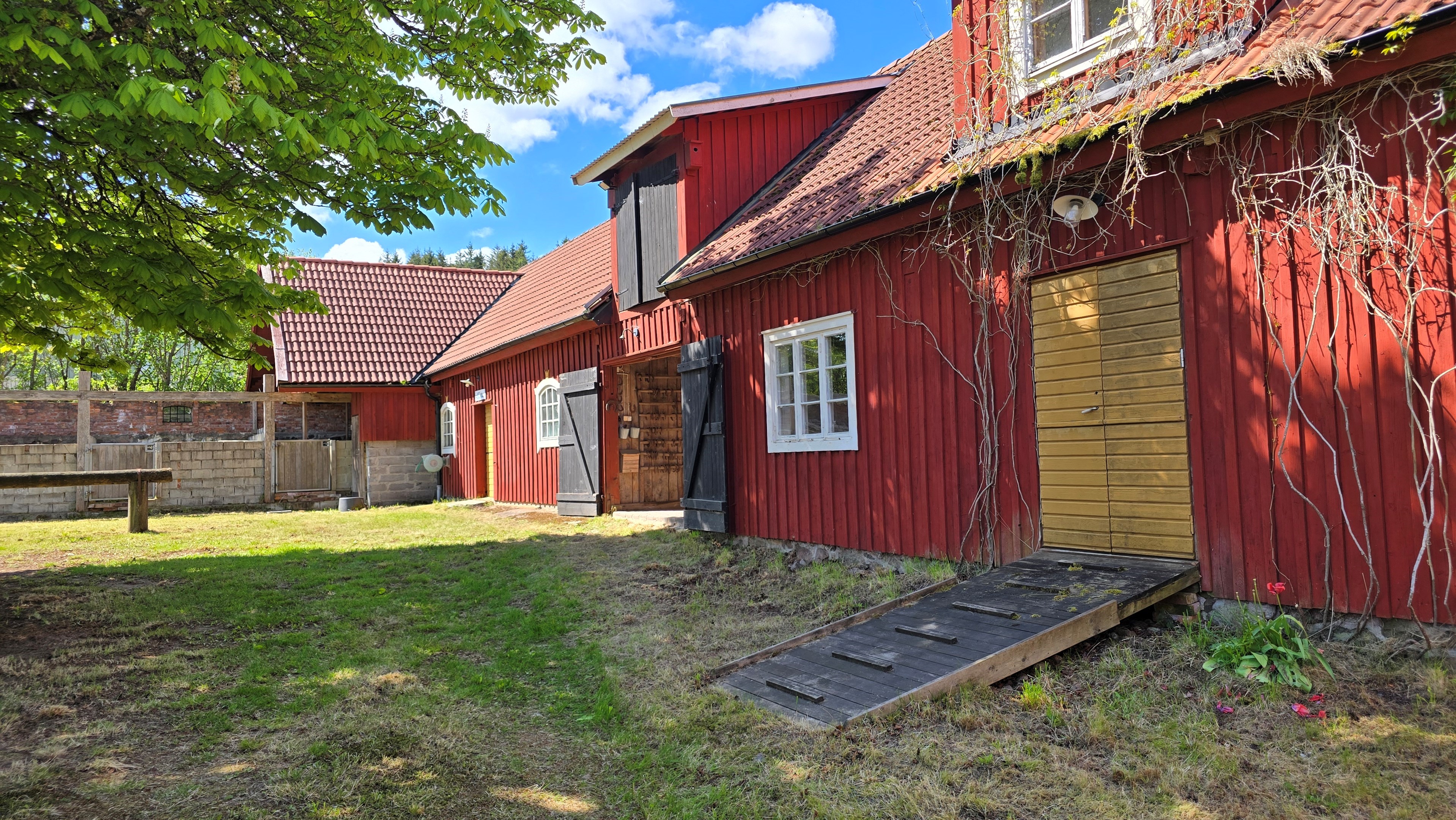 Stor mangårdsbyggnad från 1856, ursprungligen tänkt som järnvägshotell, byggt i liggande timmer, på ca 461 m² boyta och 176 m² biyta med vind, pannrum och extra badrum/relax i källaren. Vattenburen värme med vedpanna och ackumulatortankar. Därutöver flera kakelugnar, öppen spis med insats och vedspisar (endast en skorsten är i bruk). Vatten från egen borrad brunn med god kvalitet, kommunalt avlopp. Nyare elinstallationer från slutet på 1990-talet eller början 2000-tal. Spaavdelning med duschar och relax i källaren och stor rustik vedeldad bastu strax utanför. Lada på ca. 230 m² med f.d. stall (ej godkänt), café, tidigare lägenhet (nu sadelkammare) och stort sovloft med många bäddar. 4 784 m² tomt med stora gräsytor och utsikt över ängar och skog. Visseltofta gamla by är skyddad kulturmiljö. 700 m. till Helge Å och ca. 100 m. till Lillån. 6 km till fin badsjö. Ca. 95 km från Helsingborg. Filmrundvisning: https://youtu.be/n5RGux5It5s Visseltofta Gård i Visseltofta by är som ett idylliskt träslott i två plan, ursprungligen uppfört som järnvägshotell 1856, men järnvägen kom aldrig, så huset har aldrig använt som hotell. Huset är byggt i liggande timmer och har betongtegel på taket. Fönstren är enkelglas med extra isolerglasrutor för god energieffektivitet, men ändå i gammal stil. Den gamla stilen är bevarad och framhävd i hela huset med breda plank på golv och tak samt en hel del synliga timmerväggar och tapeter med gamla mönster. Ca. 3 m. i takhöjd. Uppvärmningen sker via vedeldad vattenburen värme med grova rör för god självcirkulation och 3000 liter ackumulatortankar, så man inte behöver elda varje dag. Man kunde med fördel montera luft/vatten värmepump för enkel grundvärmehållning, särskilt om huset ska vara fritidshus. Därutöver finns flera vackra kakelugnar, braskaminer och vedspisar i olika delar av huset, men endast en av skorstenarna är i bruk i dag. Elsystemet är uppdaterat med automatsäkringar, ledningar och kontakter från 1990- och 2000-talet. Vatten tas från egen borrad brunn på 130 m. med bra vatten och avloppet är kommunalt. Huset har flera entréer, varav en med vacker dubbeldörr och överljusfönster och sedan ytterligare en dubbeldörr med bred trappa till övervåningen. På entréplanet finns stor matsal med långbord och vacker vit porslinskakelugn (fungerar). Lounge i anslutning till matsalen, som även lätt skulle kunna vara sovrum. Ytterligare lounge rum med synliga timmerväggar och ännu en vit porslinskakelugn (ej i bruk). Sovrum 1 med två våningssängar och vit porslinskakelugn (ej i bruk). Stort kök med gott om arbetsytor, matplats, flera diskhoar, många kylskåp, dubbla spisar och köksfläktar, diskmaskin och centralt brandlarm. Badrum (främst tänkt till personal) med klinkergolv, WC, dusch, handfat och tvättmaskin. Mysig liten hall i anslutning till stora matsalen, som en gång varit kök med luffarhylla och vedspis bevarad. Mindre matsal med nyare trägolv, spännpapp i taket, fina tapetmönster och f.d. öppen spis (igenmurad). Dubbla hallar med klinkergolv, timmerväggar och privat ingång på husets gavel. Tvättstuga och toalett med WC, handfat, plats för dubbla tvättmaskiner och schakt för tvätt från övervåningen. Trappa direkt till övervåningen. Stort privat kök med plankgolv, plank i taket, diskbänk, gott om skåp, elspis med keramisk häll, spisfläkt, kyl och frys, matplats samt den gamla eldstaden med vedspis och bakugn bevarad. På övre plan finns rymlig hall med trappa till vinden (nu lagerplats, men kan inredas vid behov). Lång gång leder till tre fina sovrum, ett kontor (eller sovrum) och en stor täckt balkong på ca. 20 m² med kvällssol och fin utsikt. Jättestort vardagsrum eller sällskapsrum med plankgolv, breda plank i taket, timmerväggar eller träpanel på väggarna och rustik eldstad i tegel och sten med effektiv insats. Två lounge rum i anslutning till vardagsrummet, det ena används till spelrum. Stort master bedroom i samma stil med dubbelsäng, walk-in garderob och utgång till liten balkong. Ytterligare en liten hall med trappan från det privata köket och ett fint badrum med spansk terrakottaklinker på golvet med vattenburen golvvärme, vattenburen handdukstork, badkar i trä, WC och handfat (blandare saknas). I källaren finns spa/relax avdelning med klinkergolv, rå natursten och tegel på väggarna, tre duschar, dubbla handfat, WC och ytor för relax och omklädning. Strax utanför finns den stora vedeldade bastun i sitt eget lilla hus med fristående vedeldad badtunna. I resten av källaren finns det pannrum med äldre vedpanna, 3000 liter ackumulatortankar och div. lagringsutrymmen. De flesta möbler och annat lösöre kan köpas till eller medfölja, enl. önskemål och avtal med säljaren. Stor lada på ca. 230 m² i bottenplan + ca. 150 m² sovloft och vardagsrum på vinden, lång täckt terrass på baksidan och det gamla stallet. Stallet är inte längre godkänt för hästar, men kunde med fördel byggas om till en stor festsal eller till bordtennis, biljard eller annan lek i stället. Här finns även ett café med långbord och litet eget kök. I en tidigare lägenhet finns nu sadelkammare, men då det finns vatten och avlopp draget redan, går det fint att återetablera en rejäl lägenhet till uthyrning eller annan verksamhet om man önskar. På vinden finns finns plats för många övernattande gäster med dubbla trappor och brandsäkerhet är genomtänkt med brandlarm och utrymningsplan. Fram till omkring 2021 användes fastigheten till lägerskola och turridning, så om man vill driva något liknande i framtiden - eller kanske bed and breakfast, events eller varför inte hotell som det var tänkt från allra första början, så finns alla möjligheterna här! 4 784 m² (friköpt) högt belägen trädgårdstomt i kulturmiljöskyddade Visseltofta by med fin utsikt över omgivande ängar och skog. Stora gr