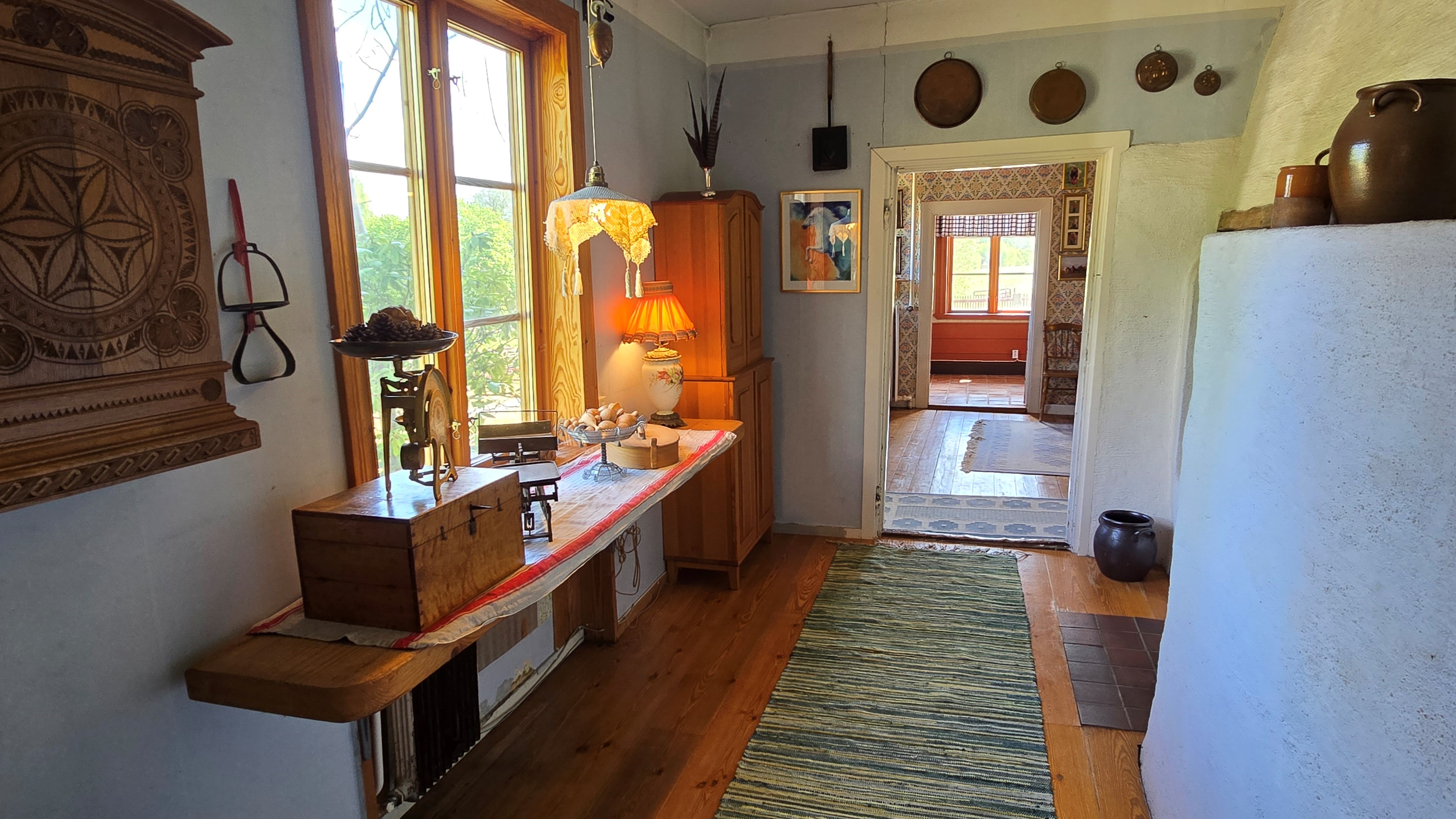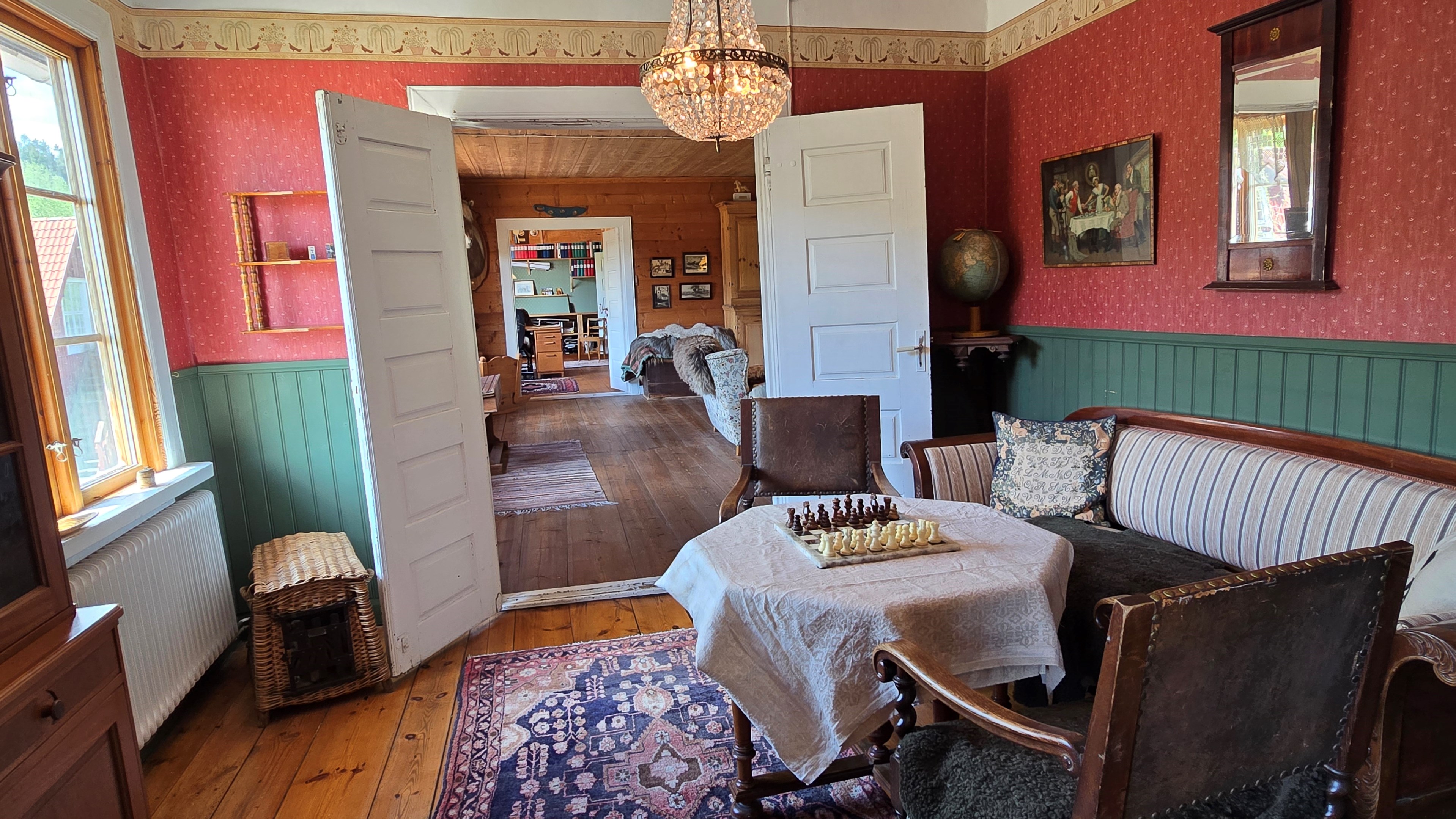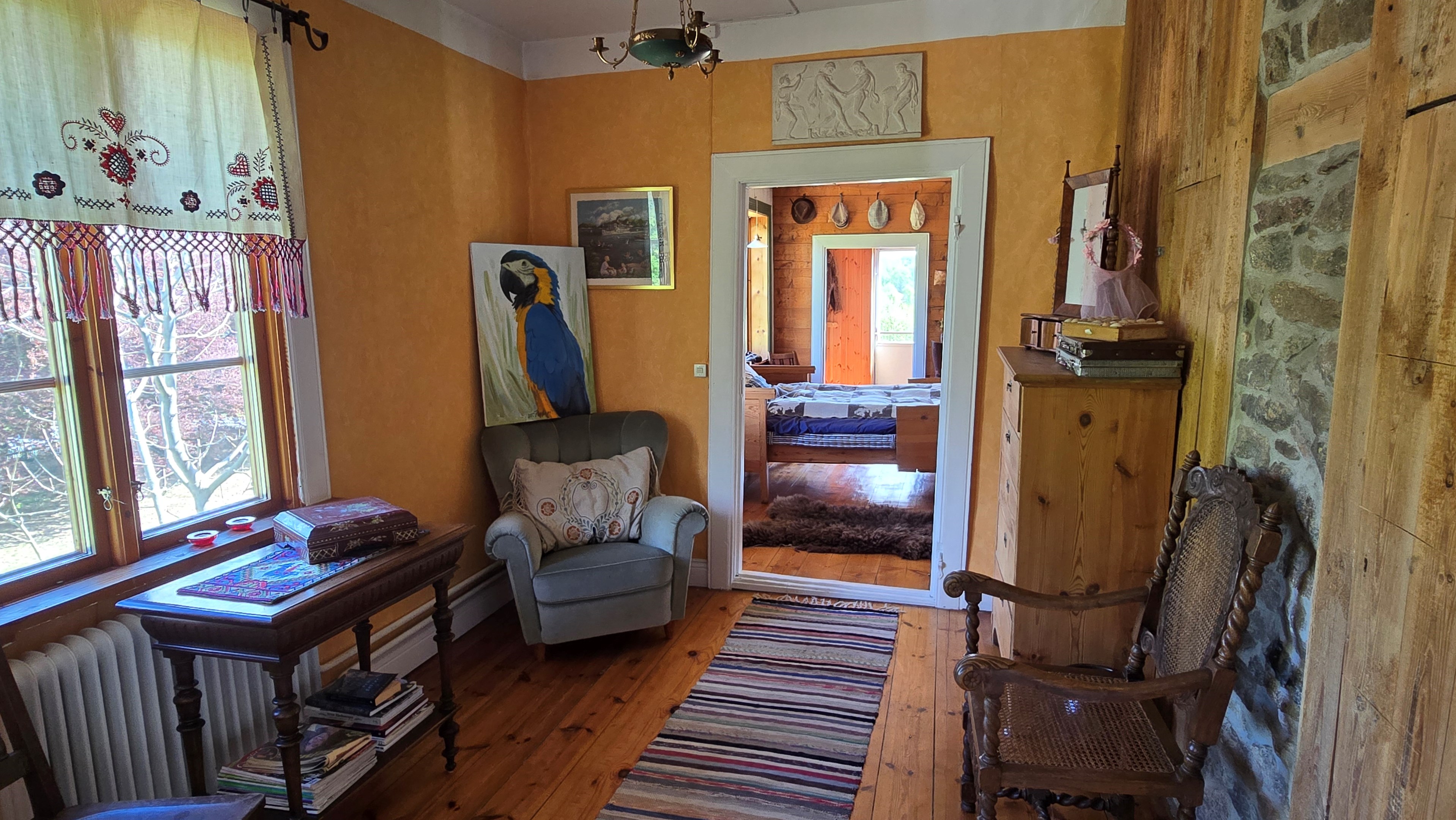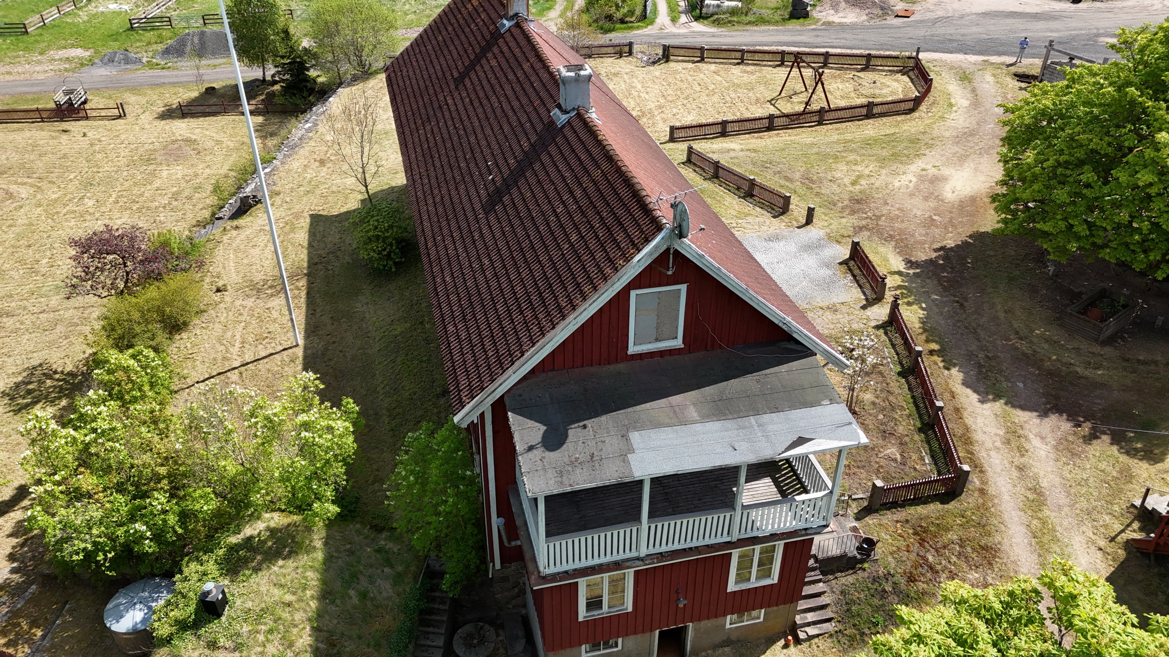 Stor mangårdsbyggnad från 1856, ursprungligen tänkt som järnvägshotell, byggt i liggande timmer, på ca 461 m² boyta och 176 m² biyta med vind, pannrum och extra badrum/relax i källaren. Vattenburen värme med vedpanna och ackumulatortankar. Därutöver flera kakelugnar, öppen spis med insats och vedspisar (endast en skorsten är i bruk). Vatten från egen borrad brunn med god kvalitet, kommunalt avlopp. Nyare elinstallationer från slutet på 1990-talet eller början 2000-tal. Spaavdelning med duschar och relax i källaren och stor rustik vedeldad bastu strax utanför. Lada på ca. 230 m² med f.d. stall (ej godkänt), café, tidigare lägenhet (nu sadelkammare) och stort sovloft med många bäddar. 4 784 m² tomt med stora gräsytor och utsikt över ängar och skog. Visseltofta gamla by är skyddad kulturmiljö. 700 m. till Helge Å och ca. 100 m. till Lillån. 6 km till fin badsjö. Ca. 95 km från Helsingborg. Filmrundvisning: https://youtu.be/n5RGux5It5s Visseltofta Gård i Visseltofta by är som ett idylliskt träslott i två plan, ursprungligen uppfört som järnvägshotell 1856, men järnvägen kom aldrig, så huset har aldrig använt som hotell. Huset är byggt i liggande timmer och har betongtegel på taket. Fönstren är enkelglas med extra isolerglasrutor för god energieffektivitet, men ändå i gammal stil. Den gamla stilen är bevarad och framhävd i hela huset med breda plank på golv och tak samt en hel del synliga timmerväggar och tapeter med gamla mönster. Ca. 3 m. i takhöjd. Uppvärmningen sker via vedeldad vattenburen värme med grova rör för god självcirkulation och 3000 liter ackumulatortankar, så man inte behöver elda varje dag. Man kunde med fördel montera luft/vatten värmepump för enkel grundvärmehållning, särskilt om huset ska vara fritidshus. Därutöver finns flera vackra kakelugnar, braskaminer och vedspisar i olika delar av huset, men endast en av skorstenarna är i bruk i dag. Elsystemet är uppdaterat med automatsäkringar, ledningar och kontakter från 1990- och 2000-talet. Vatten tas från egen borrad brunn på 130 m. med bra vatten och avloppet är kommunalt. Huset har flera entréer, varav en med vacker dubbeldörr och överljusfönster och sedan ytterligare en dubbeldörr med bred trappa till övervåningen. På entréplanet finns stor matsal med långbord och vacker vit porslinskakelugn (fungerar). Lounge i anslutning till matsalen, som även lätt skulle kunna vara sovrum. Ytterligare lounge rum med synliga timmerväggar och ännu en vit porslinskakelugn (ej i bruk). Sovrum 1 med två våningssängar och vit porslinskakelugn (ej i bruk). Stort kök med gott om arbetsytor, matplats, flera diskhoar, många kylskåp, dubbla spisar och köksfläktar, diskmaskin och centralt brandlarm. Badrum (främst tänkt till personal) med klinkergolv, WC, dusch, handfat och tvättmaskin. Mysig liten hall i anslutning till stora matsalen, som en gång varit kök med luffarhylla och vedspis bevarad. Mindre matsal med nyare trägolv, spännpapp i taket, fina tapetmönster och f.d. öppen spis (igenmurad). Dubbla hallar med klinkergolv, timmerväggar och privat ingång på husets gavel. Tvättstuga och toalett med WC, handfat, plats för dubbla tvättmaskiner och schakt för tvätt från övervåningen. Trappa direkt till övervåningen. Stort privat kök med plankgolv, plank i taket, diskbänk, gott om skåp, elspis med keramisk häll, spisfläkt, kyl och frys, matplats samt den gamla eldstaden med vedspis och bakugn bevarad. På övre plan finns rymlig hall med trappa till vinden (nu lagerplats, men kan inredas vid behov). Lång gång leder till tre fina sovrum, ett kontor (eller sovrum) och en stor täckt balkong på ca. 20 m² med kvällssol och fin utsikt. Jättestort vardagsrum eller sällskapsrum med plankgolv, breda plank i taket, timmerväggar eller träpanel på väggarna och rustik eldstad i tegel och sten med effektiv insats. Två lounge rum i anslutning till vardagsrummet, det ena används till spelrum. Stort master bedroom i samma stil med dubbelsäng, walk-in garderob och utgång till liten balkong. Ytterligare en liten hall med trappan från det privata köket och ett fint badrum med spansk terrakottaklinker på golvet med vattenburen golvvärme, vattenburen handdukstork, badkar i trä, WC och handfat (blandare saknas). I källaren finns spa/relax avdelning med klinkergolv, rå natursten och tegel på väggarna, tre duschar, dubbla handfat, WC och ytor för relax och omklädning. Strax utanför finns den stora vedeldade bastun i sitt eget lilla hus med fristående vedeldad badtunna. I resten av källaren finns det pannrum med äldre vedpanna, 3000 liter ackumulatortankar och div. lagringsutrymmen. De flesta möbler och annat lösöre kan köpas till eller medfölja, enl. önskemål och avtal med säljaren. Stor lada på ca. 230 m² i bottenplan + ca. 150 m² sovloft och vardagsrum på vinden, lång täckt terrass på baksidan och det gamla stallet. Stallet är inte längre godkänt för hästar, men kunde med fördel byggas om till en stor festsal eller till bordtennis, biljard eller annan lek i stället. Här finns även ett café med långbord och litet eget kök. I en tidigare lägenhet finns nu sadelkammare, men då det finns vatten och avlopp draget redan, går det fint att återetablera en rejäl lägenhet till uthyrning eller annan verksamhet om man önskar. På vinden finns finns plats för många övernattande gäster med dubbla trappor och brandsäkerhet är genomtänkt med brandlarm och utrymningsplan. Fram till omkring 2021 användes fastigheten till lägerskola och turridning, så om man vill driva något liknande i framtiden - eller kanske bed and breakfast, events eller varför inte hotell som det var tänkt från allra första början, så finns alla möjligheterna här! 4 784 m² (friköpt) högt belägen trädgårdstomt i kulturmiljöskyddade Visseltofta by med fin utsikt över omgivande ängar och skog. Stora gr
