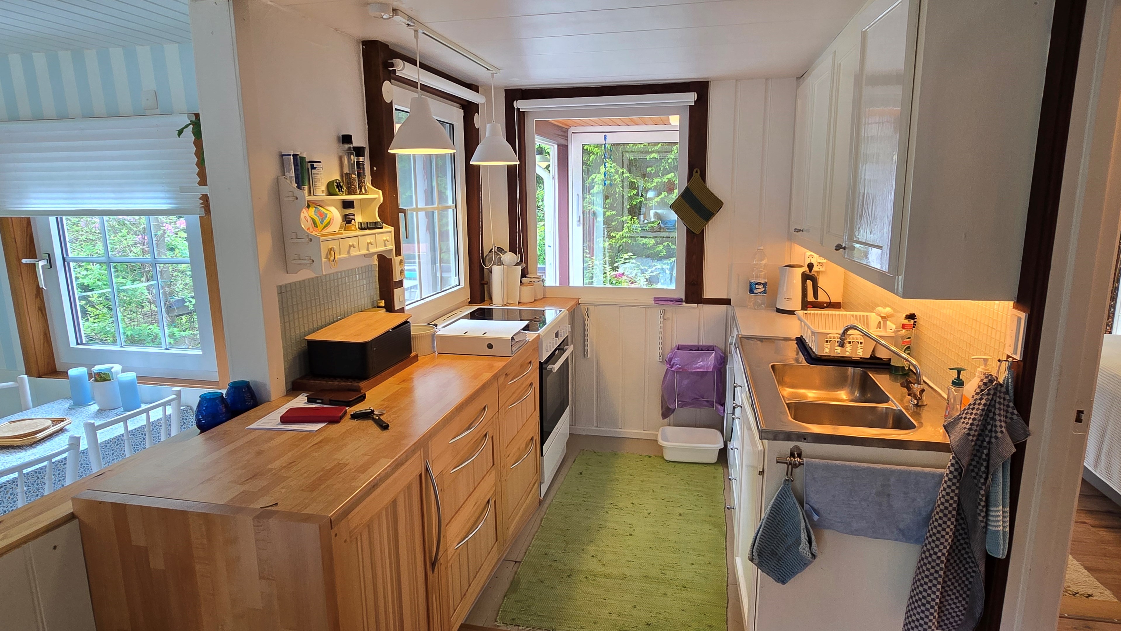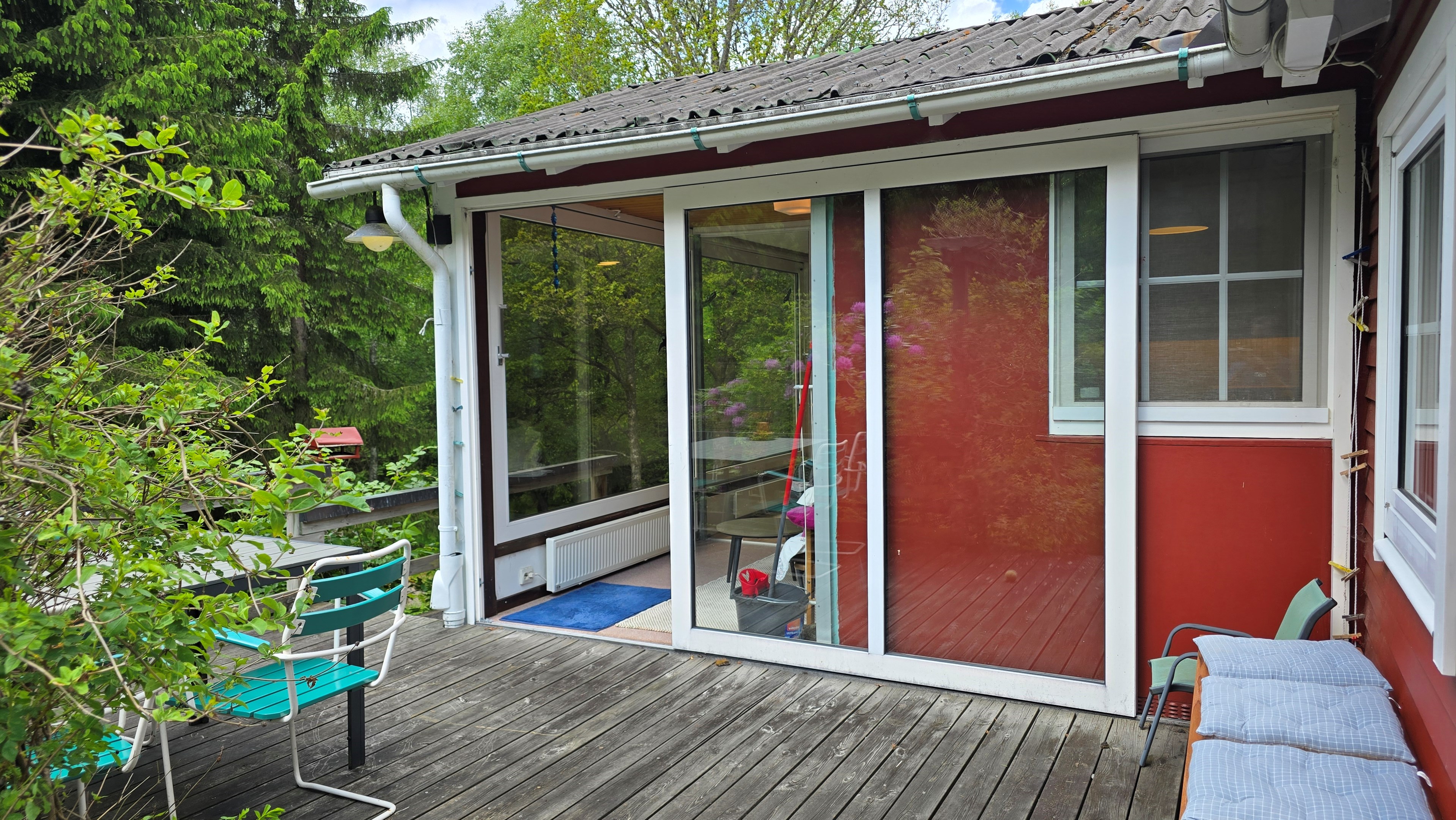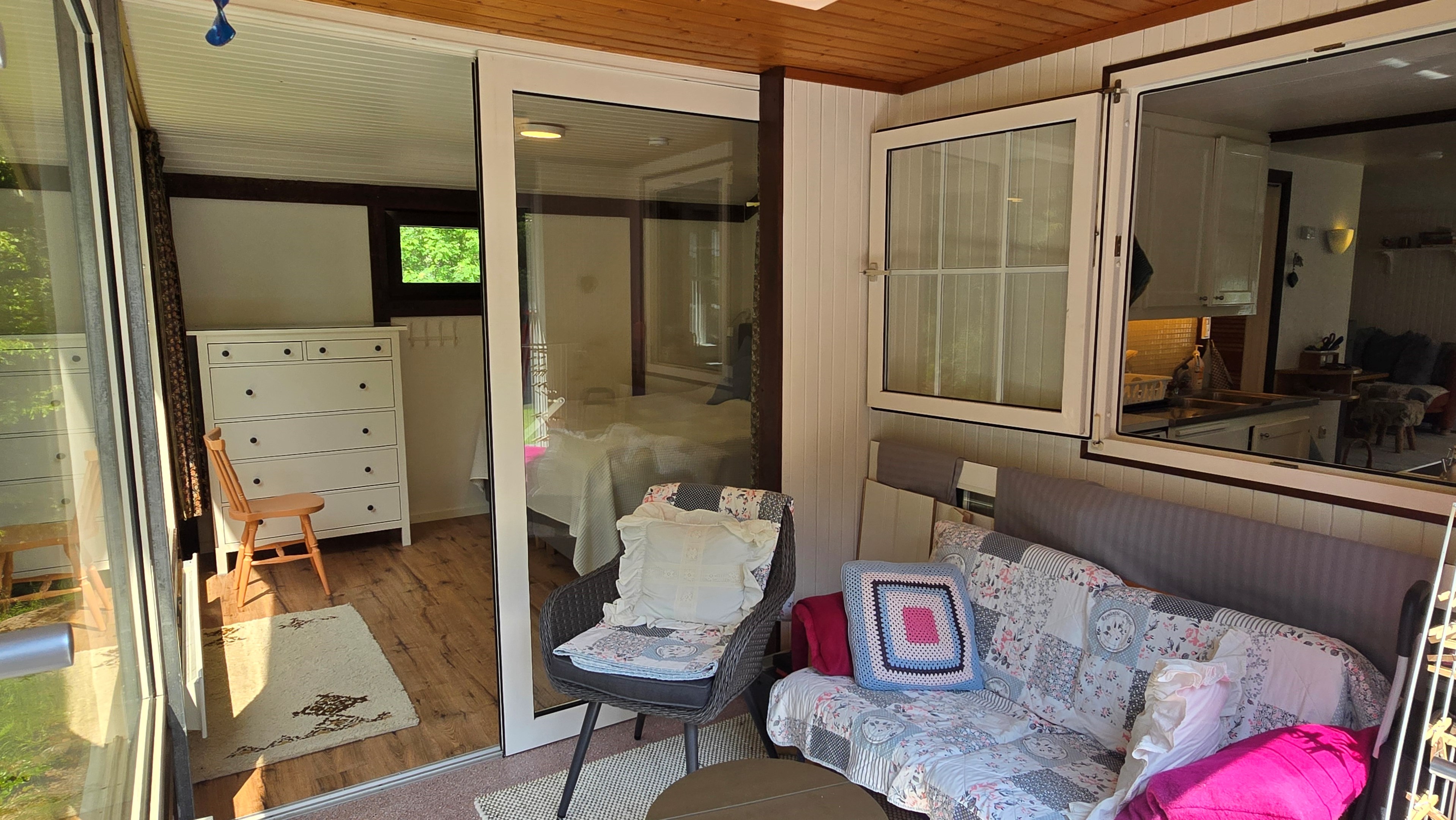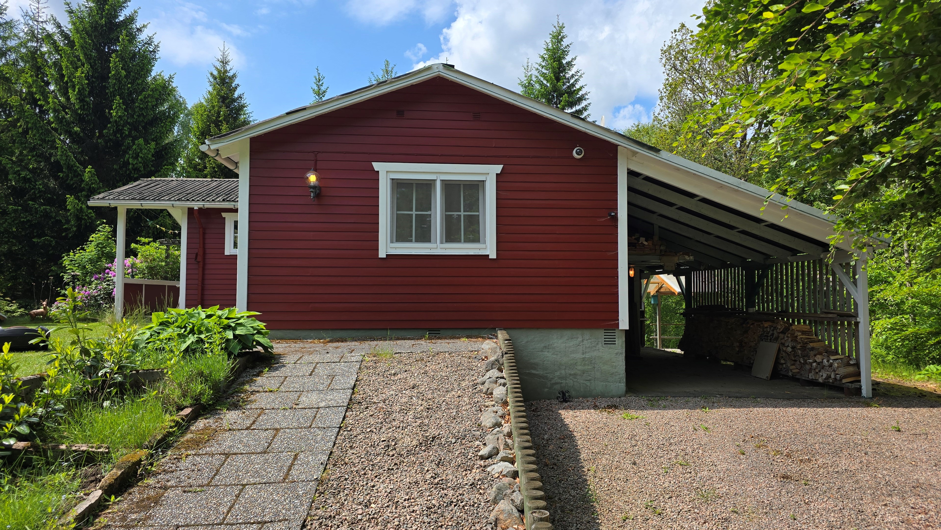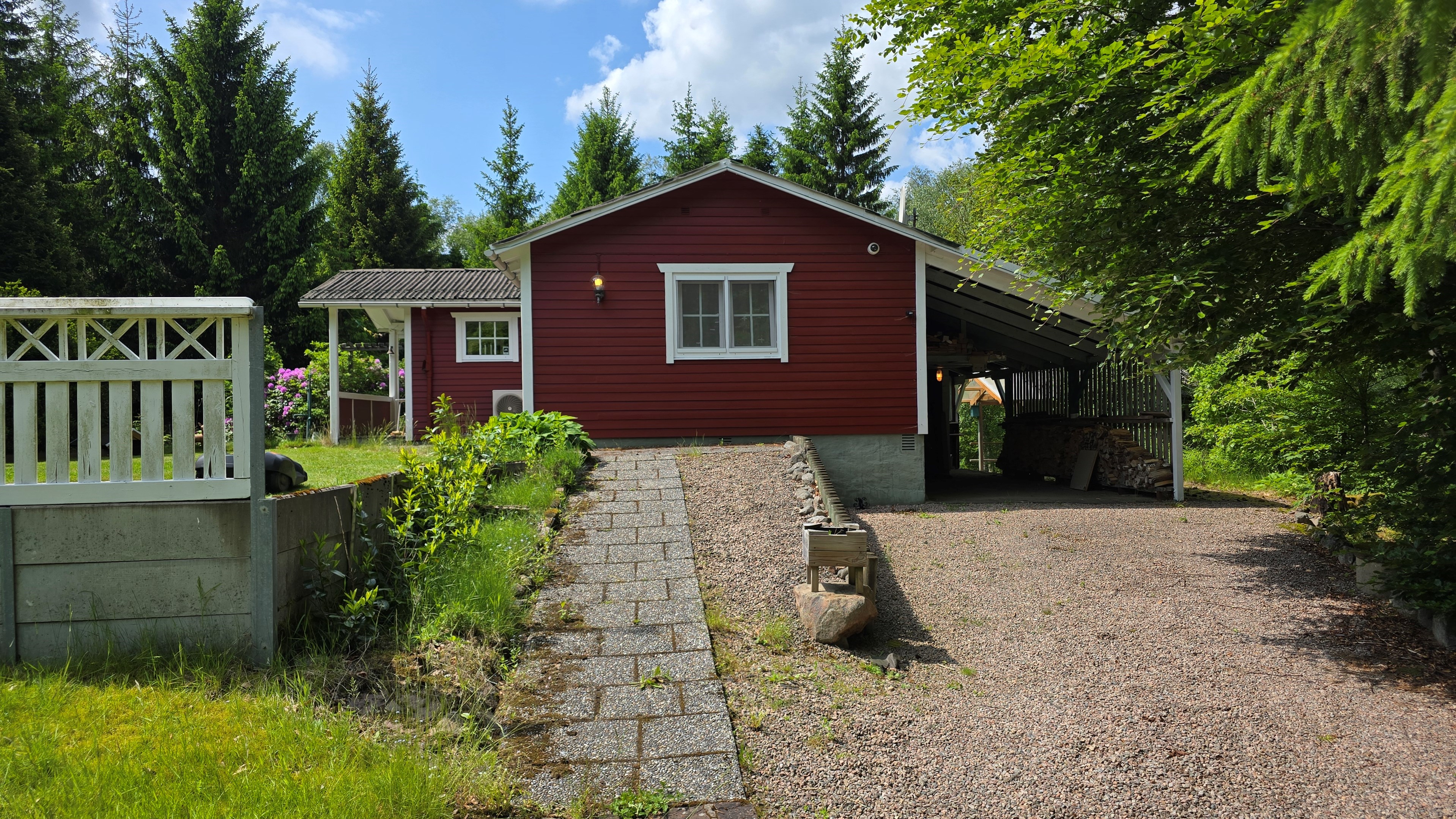 Fritidshus från 1962 på ca 79 m² i gott skick, men behöver snart nytt tak. Terrass på 15 m² och täckt terrass på 6 m². Underhållsvärme hela året med luftvärmepump och det finns även stor braskamin och direktverkande el. Vatten från egen grävd brunn med nya installationer och avlopp till sluten tank för WC samt BDT-avlopp (godkänt 2024). Flera uthus, carport om ca 15 m², vedbod och förråd. 2 279 m² kuperad tomt, delvis trädgård, delvis naturtomt med äng, bär och skog. Insynsskyddat och utan synliga grannar, men landsväg passerar. 500 m. till Smedjeån och ca. 5 km till Store Sjö med badplats och till Oxhultasjön. 3 km från Hishult. Ca 70 km från Helsingborg. Filmvisning: https://youtu.be/5SmLchVEZaI Bögilt Stugområdet 117 vid Hishult är ett välskött fritidshus på ca 79 m² strax utanför stugområdet og alltså inte del av detta. Terrass på ca. 15 m² och en täckt terrass på ca. 6 m². Huset har fasad i liggande träpanel och på taket ligger onduline och papp, där taket bör bytas relativt snart. Fönstren är genomgående isolerglas i underhållsfri plast. De flesta kontakter är utbytta och det finns jordfelsbrytare men också äldre porslinssäkringar. 3-fas kontakt finns. Vatteninstallationerna är nyligen utbytta 2017 med värmeslinga på ledningen. Uppvärmningen sker via luftvärmepump (Panasonic från 2023, appstyrd), direktverkande el med fjärrstyrning samt en effektiv braskamin med plattor som en vedspis. Huset hålls uppvärmt till 16 grader året runt med luftvärmepumpen. Vatten från egen grävd brunn, som inte har sinat. Avloppet är en sluten tank för WC och slamavskiljare med infiltration till stenkista för bad- och tvättvatten (inspekterat och godkänt av kommunen 2024). Huset består av entré till kombinerad hall och matsal med laminatgolv, träpanel i tak och tapetserade väggar. Öppen planlösning mot vardagsrum och kök, även här laminatgolv (trä i köksdelen och även under laminatet), träpanel och serveringsöppning till matplatsen. Köket har elspis med keramisk häll (2022), kyl/frys i hall/matsal (2023), diskbänk, tvättmaskin (äldre) och gott om förvaring. Vardagsrummet har braskamin/vedspis med glaslucka (kontrollerad och sotad 2025), luftvärmepumpen och bäddsoffa. Brandlarm för både rök och kolmonoxid. Sovrum med nytt laminatgolv, dubbelsäng, enkelsäng och inbyggda myggnät i fönster. Hall med laminatgolv och garderob. Äldre badrum med klinkergolv, WC, dusch, handfat, elvärme samt öppningsbart takfönster. Master bedroom med nytt laminatgolv, träpanel i taket, dubbelsäng, stort öppningsbart panoramafönster och anslutning till isolerat uterum/gästrum med lika stort öppningsbart panoramafönster. I uterum/gästrum finns plastmatta på golvet, elvärme och träpanel i taket. Kameraövervakning finns kopplat till säljarens mobil. De flesta möbler och annat lösöre kan köpas till eller medfölja, enl. önskemål och avtal med säljarna. Ut över huset finns en tillbyggd carport om ca 15 m² och verkstad/teknikrum i anslutning till huset med el- och vatteninstallationer. Teknikrummet är isolerat med frostvakt och här finns även 3-fas kontakt, t. ex. för laddning av elbil, drivning av vedklyv m.m. Det finns en fuktskada i taket i verkstadsrummet, som bör undersökas närmare. Fristående vedbod och förråd om ca 6 m² med ungefär lika mycket till under tak som en uteplats med gungbänk. Ytterligare förråd på ca. 6 m2 i källarplan på uthuset. Tomten är 2 279 m² och består av en trädgårdsdel närmast huset med robotgräsklippare med eget litet hus och resten är kuperad naturtomt med skog, gott om blåbär och lingon, samt en liten äng. I bakre delen av tomten finns bålplats och gott om plats för lek, tält eller odling. Huset ligger högt, väl dolt av tät vegetation och utan insyn, med enstaka grannar på behörigt avstånd. En asfalterad landsväg passerar på andra sidan trädridån, vilket innebär visst trafikljud, särskilt morgon och eftermiddag på vardagar. Egen infart med goda parkeringsmöjligheter och utan genomfart. Adressen antyder att huset ligger i stugområdet, men det ligger strax utanför och är inte del i detta, så man betalar ingen avgift till föreningen. Området i stort är också mycket naturskönt och ca. 500 m från tomten till den mysiga Smedjeån och ca. 5 km. till fin badplats i Store Sjö och samma avstånd till Oxhultasjön med resterna av herrgårdsruinen Sjöboholm, ute på en udde. Ca. 3 km. till Hishult samhälle med närmaste affär och även Hishult Konsthall. Ca. 14 km. till Gränsbygdens Köpcentrum, som har allt man kan behöva av såväl matvaror som vitvaror, verktyg, byggmaterial mm. Knäred samhälle ligger också ca. 14 km. från huset med utomhusbadet Flammabadet, åarna Lagan och Krokån och det vackra Prästaskogens naturreservat och Kvarnfallet i Krokån. Ca. 20 km. till Vallåsen skidbacke och Bike-Park på Hallandsås och ca. 15 km. till Kungsbyggets Äventyrspark med zipline, rodelbana m.m. sommartid. Ca. 25 km. till Skogaby Golfklubb och ca. 30 km. till havet och Mellbystrand. Ca. 70 km. från Helsingborg och ca. 130 km. från Malmö.