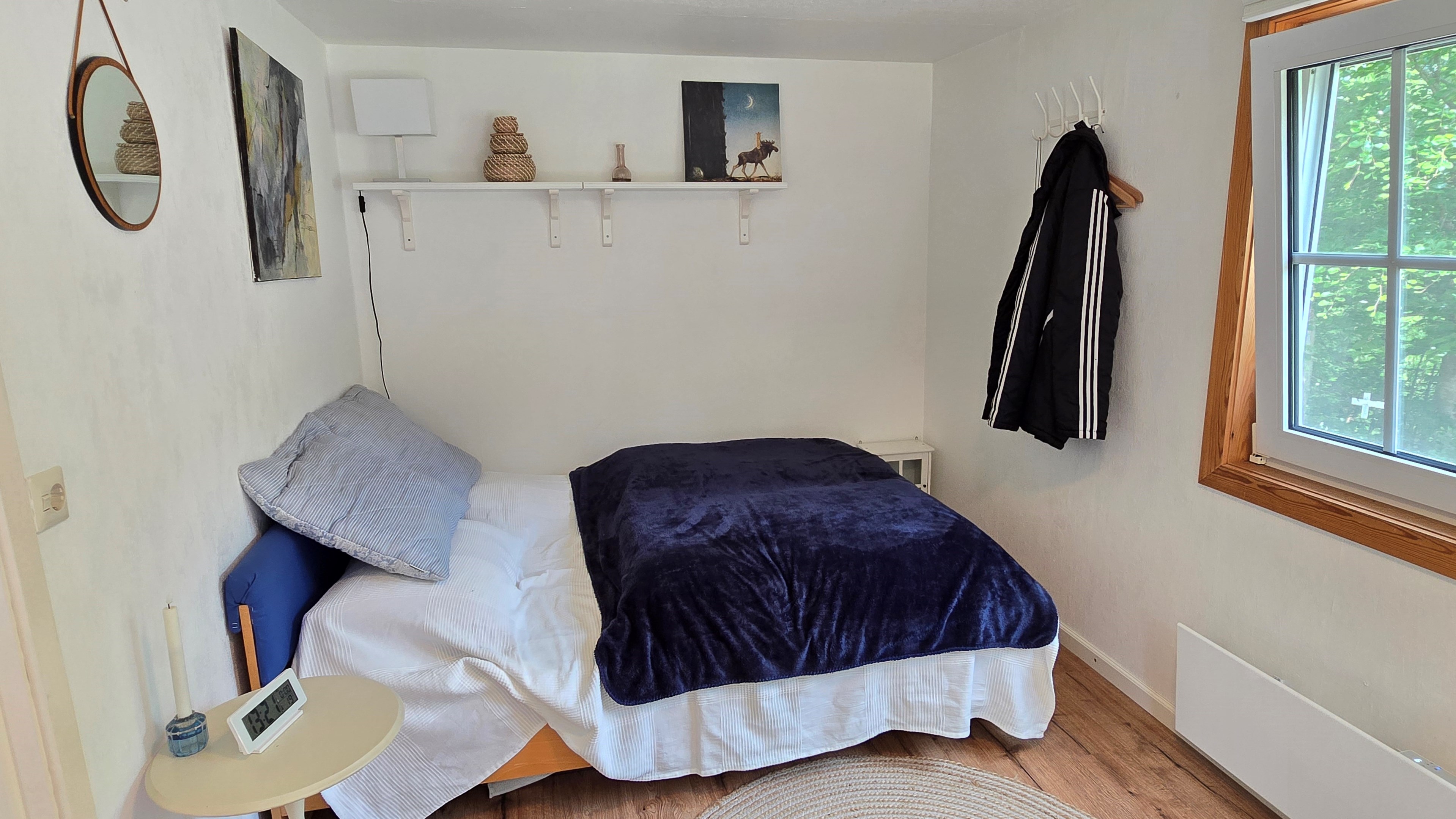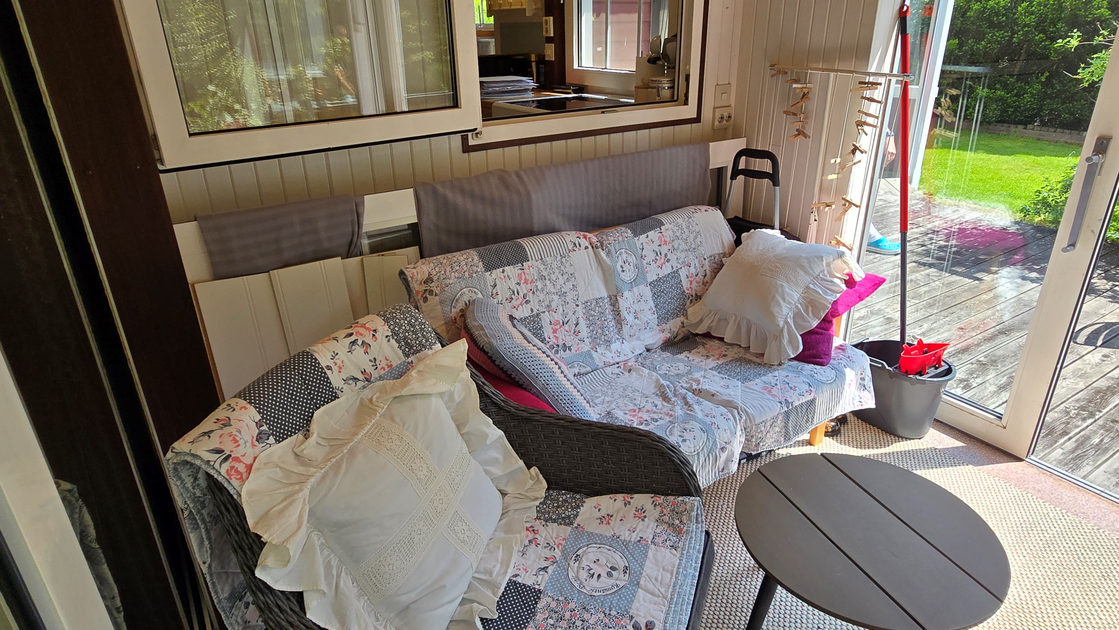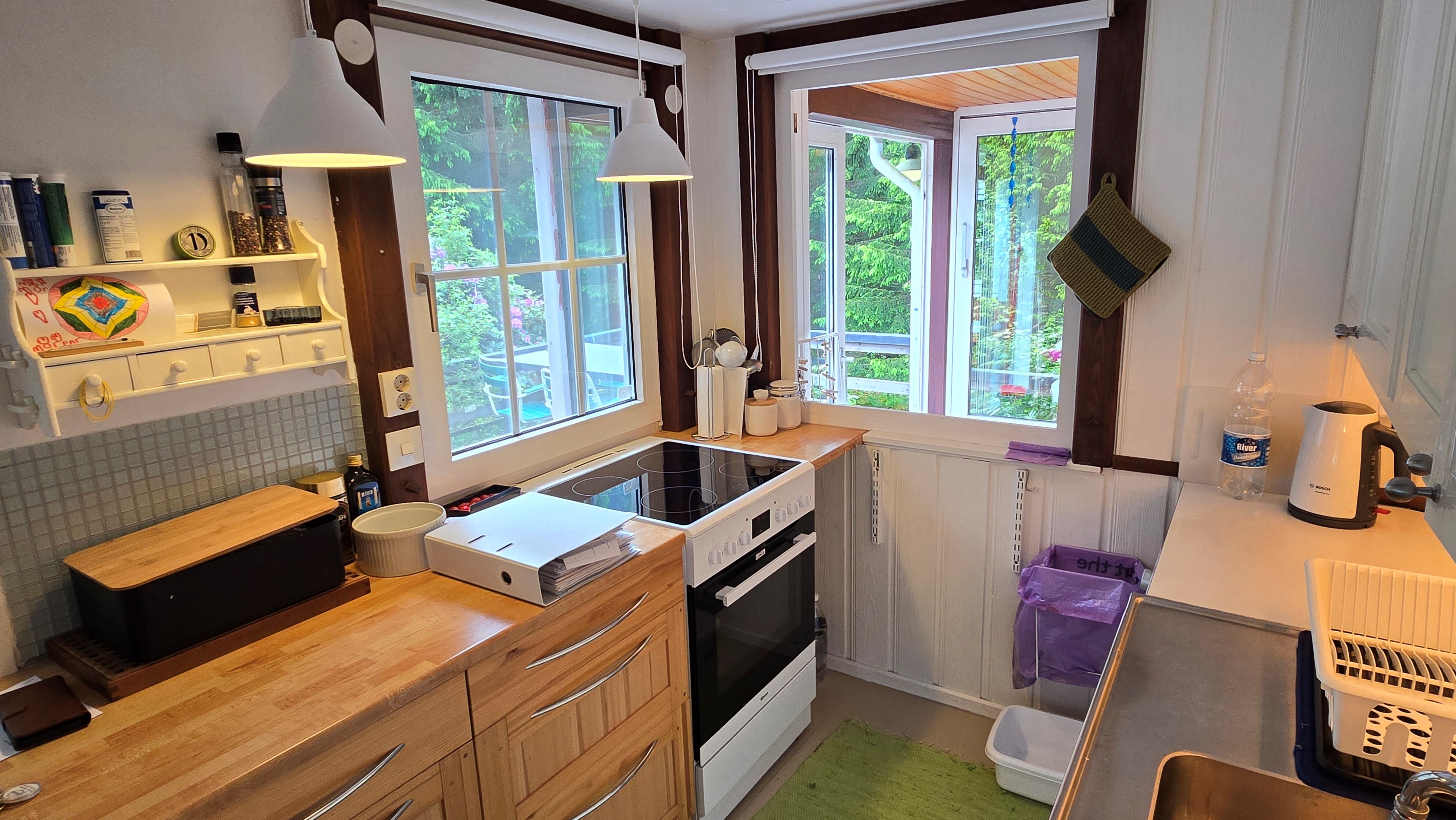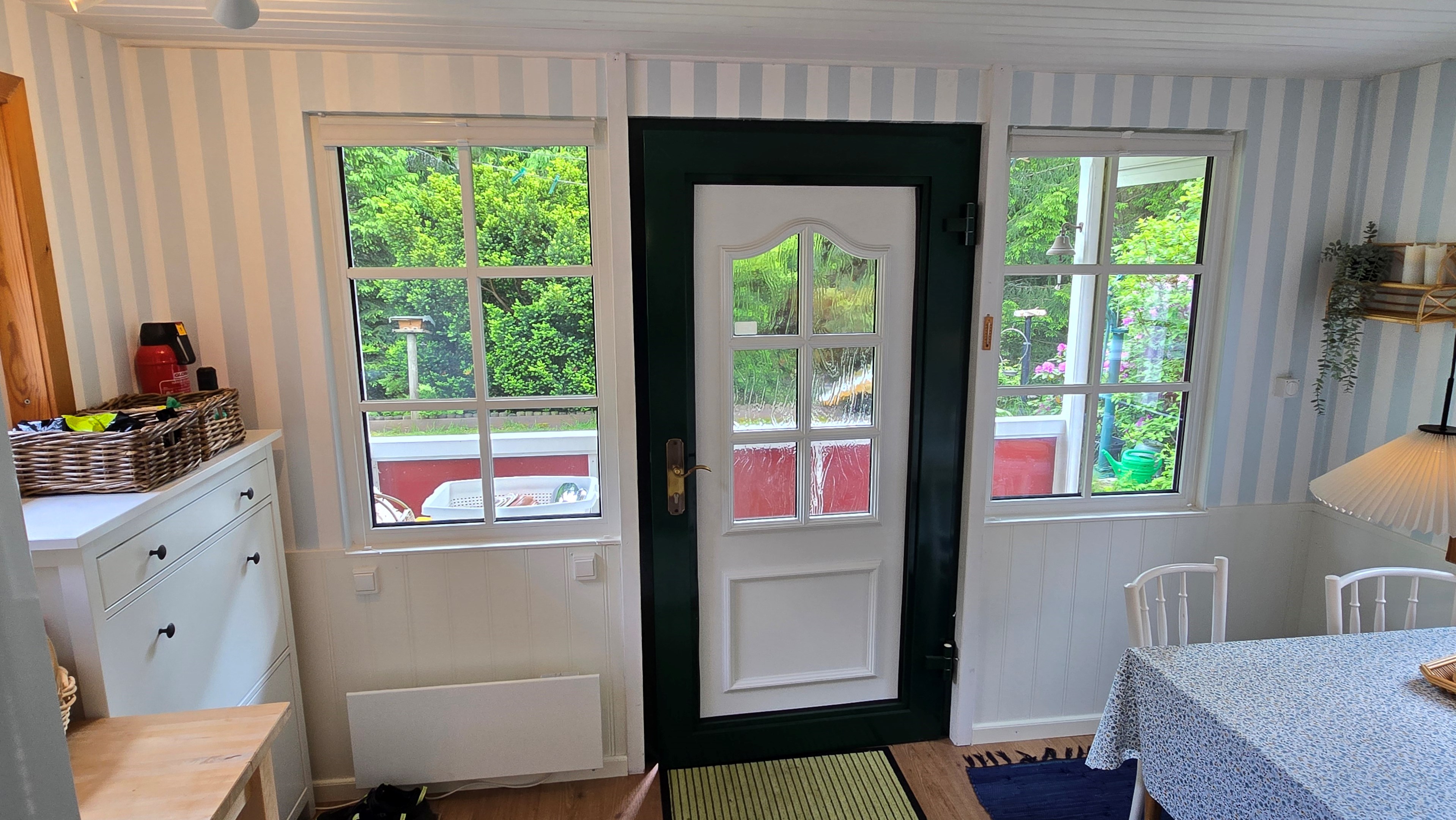 Fritidshus från 1962 på ca 79 m² i gott skick, men behöver snart nytt tak. Terrass på 15 m² och täckt terrass på 6 m². Underhållsvärme hela året med luftvärmepump och det finns även stor braskamin och direktverkande el. Vatten från egen grävd brunn med nya installationer och avlopp till sluten tank för WC samt BDT-avlopp (godkänt 2024). Flera uthus, carport om ca 15 m², vedbod och förråd. 2 279 m² kuperad tomt, delvis trädgård, delvis naturtomt med äng, bär och skog. Insynsskyddat och utan synliga grannar, men landsväg passerar. 500 m. till Smedjeån och ca. 5 km till Store Sjö med badplats och till Oxhultasjön. 3 km från Hishult. Ca 70 km från Helsingborg. Filmvisning: https://youtu.be/5SmLchVEZaI Bögilt Stugområdet 117 vid Hishult är ett välskött fritidshus på ca 79 m² strax utanför stugområdet og alltså inte del av detta. Terrass på ca. 15 m² och en täckt terrass på ca. 6 m². Huset har fasad i liggande träpanel och på taket ligger onduline och papp, där taket bör bytas relativt snart. Fönstren är genomgående isolerglas i underhållsfri plast. De flesta kontakter är utbytta och det finns jordfelsbrytare men också äldre porslinssäkringar. 3-fas kontakt finns. Vatteninstallationerna är nyligen utbytta 2017 med värmeslinga på ledningen. Uppvärmningen sker via luftvärmepump (Panasonic från 2023, appstyrd), direktverkande el med fjärrstyrning samt en effektiv braskamin med plattor som en vedspis. Huset hålls uppvärmt till 16 grader året runt med luftvärmepumpen. Vatten från egen grävd brunn, som inte har sinat. Avloppet är en sluten tank för WC och slamavskiljare med infiltration till stenkista för bad- och tvättvatten (inspekterat och godkänt av kommunen 2024). Huset består av entré till kombinerad hall och matsal med laminatgolv, träpanel i tak och tapetserade väggar. Öppen planlösning mot vardagsrum och kök, även här laminatgolv (trä i köksdelen och även under laminatet), träpanel och serveringsöppning till matplatsen. Köket har elspis med keramisk häll (2022), kyl/frys i hall/matsal (2023), diskbänk, tvättmaskin (äldre) och gott om förvaring. Vardagsrummet har braskamin/vedspis med glaslucka (kontrollerad och sotad 2025), luftvärmepumpen och bäddsoffa. Brandlarm för både rök och kolmonoxid. Sovrum med nytt laminatgolv, dubbelsäng, enkelsäng och inbyggda myggnät i fönster. Hall med laminatgolv och garderob. Äldre badrum med klinkergolv, WC, dusch, handfat, elvärme samt öppningsbart takfönster. Master bedroom med nytt laminatgolv, träpanel i taket, dubbelsäng, stort öppningsbart panoramafönster och anslutning till isolerat uterum/gästrum med lika stort öppningsbart panoramafönster. I uterum/gästrum finns plastmatta på golvet, elvärme och träpanel i taket. Kameraövervakning finns kopplat till säljarens mobil. De flesta möbler och annat lösöre kan köpas till eller medfölja, enl. önskemål och avtal med säljarna. Ut över huset finns en tillbyggd carport om ca 15 m² och verkstad/teknikrum i anslutning till huset med el- och vatteninstallationer. Teknikrummet är isolerat med frostvakt och här finns även 3-fas kontakt, t. ex. för laddning av elbil, drivning av vedklyv m.m. Det finns en fuktskada i taket i verkstadsrummet, som bör undersökas närmare. Fristående vedbod och förråd om ca 6 m² med ungefär lika mycket till under tak som en uteplats med gungbänk. Ytterligare förråd på ca. 6 m2 i källarplan på uthuset. Tomten är 2 279 m² och består av en trädgårdsdel närmast huset med robotgräsklippare med eget litet hus och resten är kuperad naturtomt med skog, gott om blåbär och lingon, samt en liten äng. I bakre delen av tomten finns bålplats och gott om plats för lek, tält eller odling. Huset ligger högt, väl dolt av tät vegetation och utan insyn, med enstaka grannar på behörigt avstånd. En asfalterad landsväg passerar på andra sidan trädridån, vilket innebär visst trafikljud, särskilt morgon och eftermiddag på vardagar. Egen infart med goda parkeringsmöjligheter och utan genomfart. Adressen antyder att huset ligger i stugområdet, men det ligger strax utanför och är inte del i detta, så man betalar ingen avgift till föreningen. Området i stort är också mycket naturskönt och ca. 500 m från tomten till den mysiga Smedjeån och ca. 5 km. till fin badplats i Store Sjö och samma avstånd till Oxhultasjön med resterna av herrgårdsruinen Sjöboholm, ute på en udde. Ca. 3 km. till Hishult samhälle med närmaste affär och även Hishult Konsthall. Ca. 14 km. till Gränsbygdens Köpcentrum, som har allt man kan behöva av såväl matvaror som vitvaror, verktyg, byggmaterial mm. Knäred samhälle ligger också ca. 14 km. från huset med utomhusbadet Flammabadet, åarna Lagan och Krokån och det vackra Prästaskogens naturreservat och Kvarnfallet i Krokån. Ca. 20 km. till Vallåsen skidbacke och Bike-Park på Hallandsås och ca. 15 km. till Kungsbyggets Äventyrspark med zipline, rodelbana m.m. sommartid. Ca. 25 km. till Skogaby Golfklubb och ca. 30 km. till havet och Mellbystrand. Ca. 70 km. från Helsingborg och ca. 130 km. från Malmö.