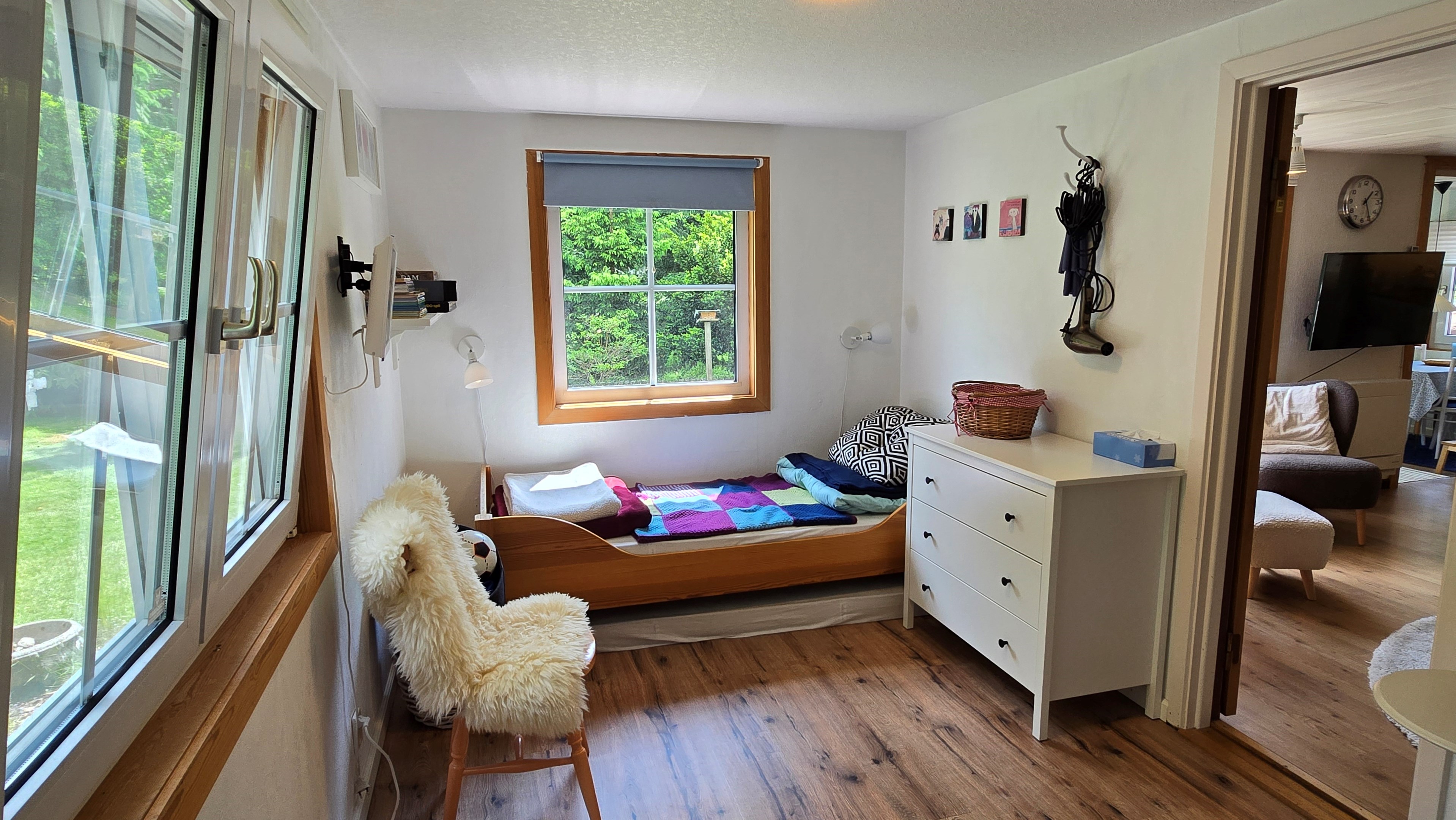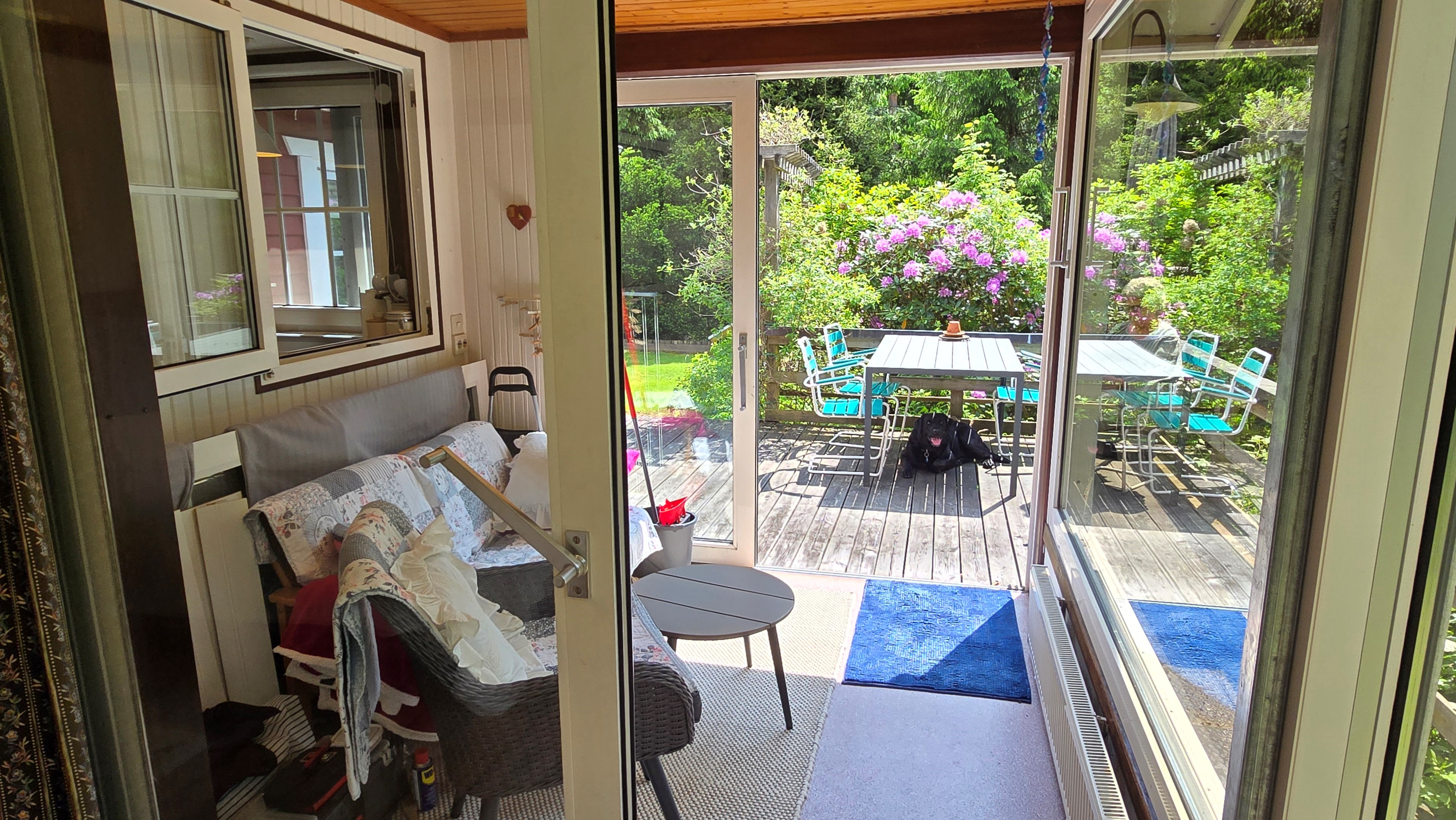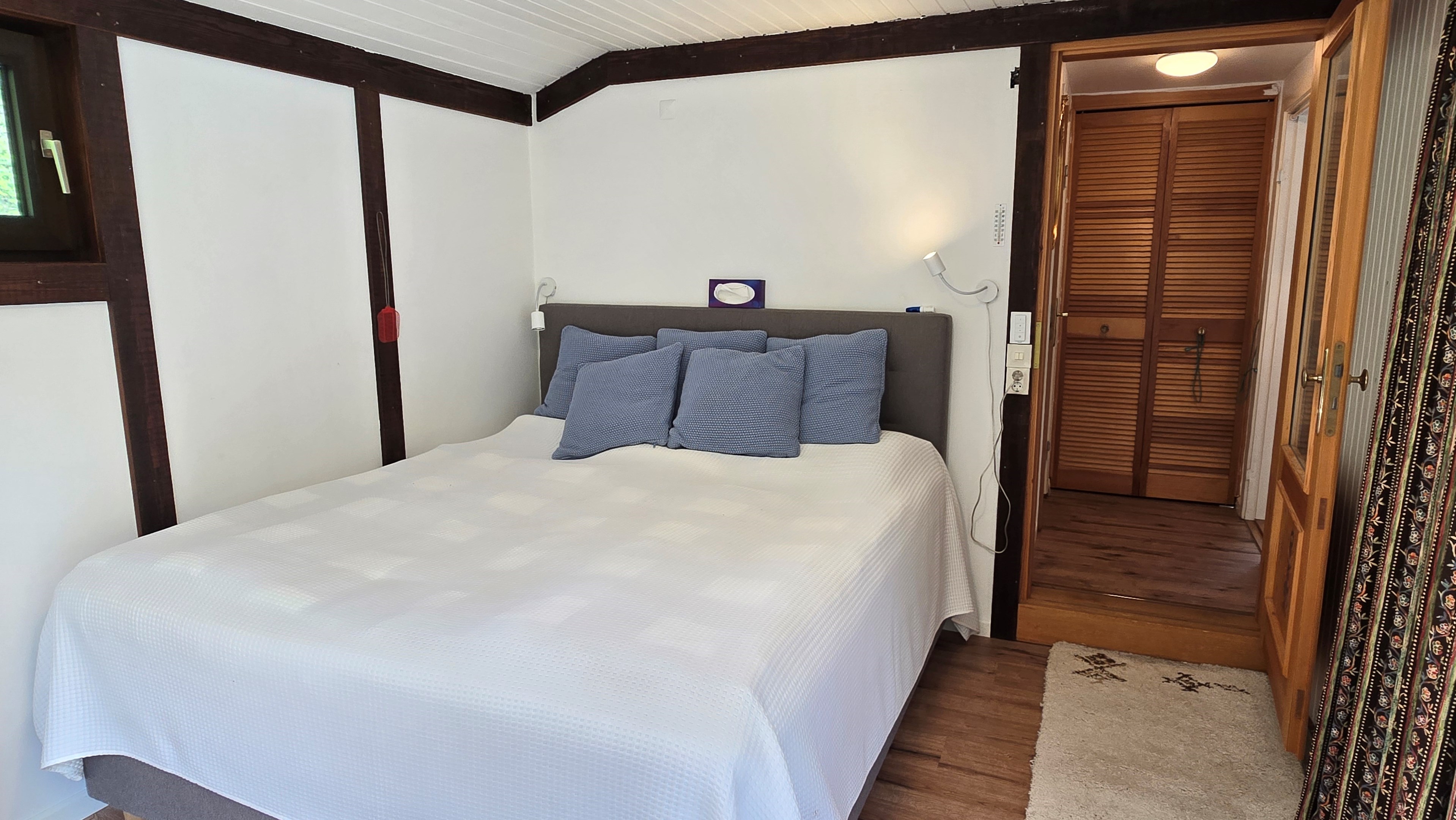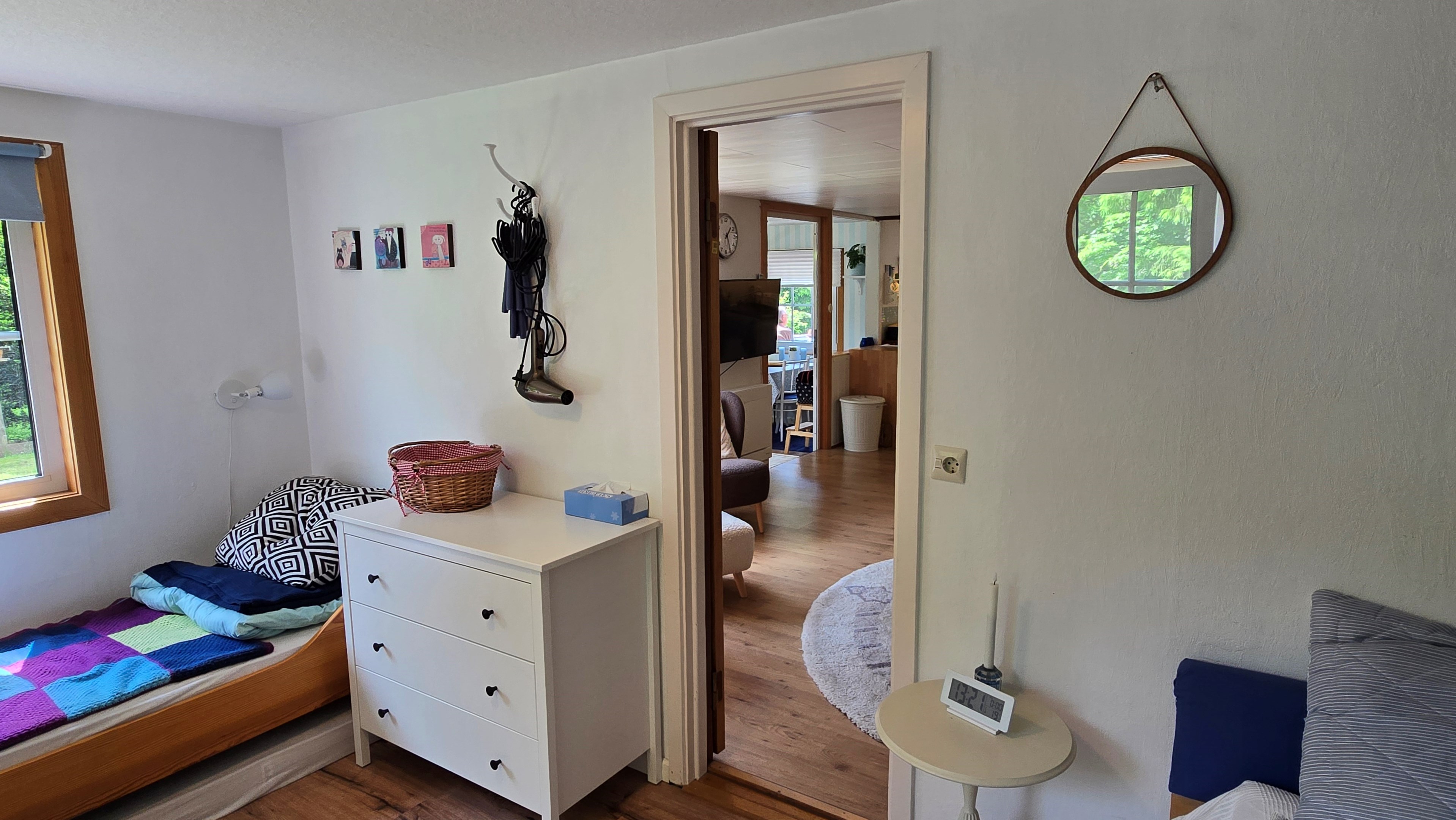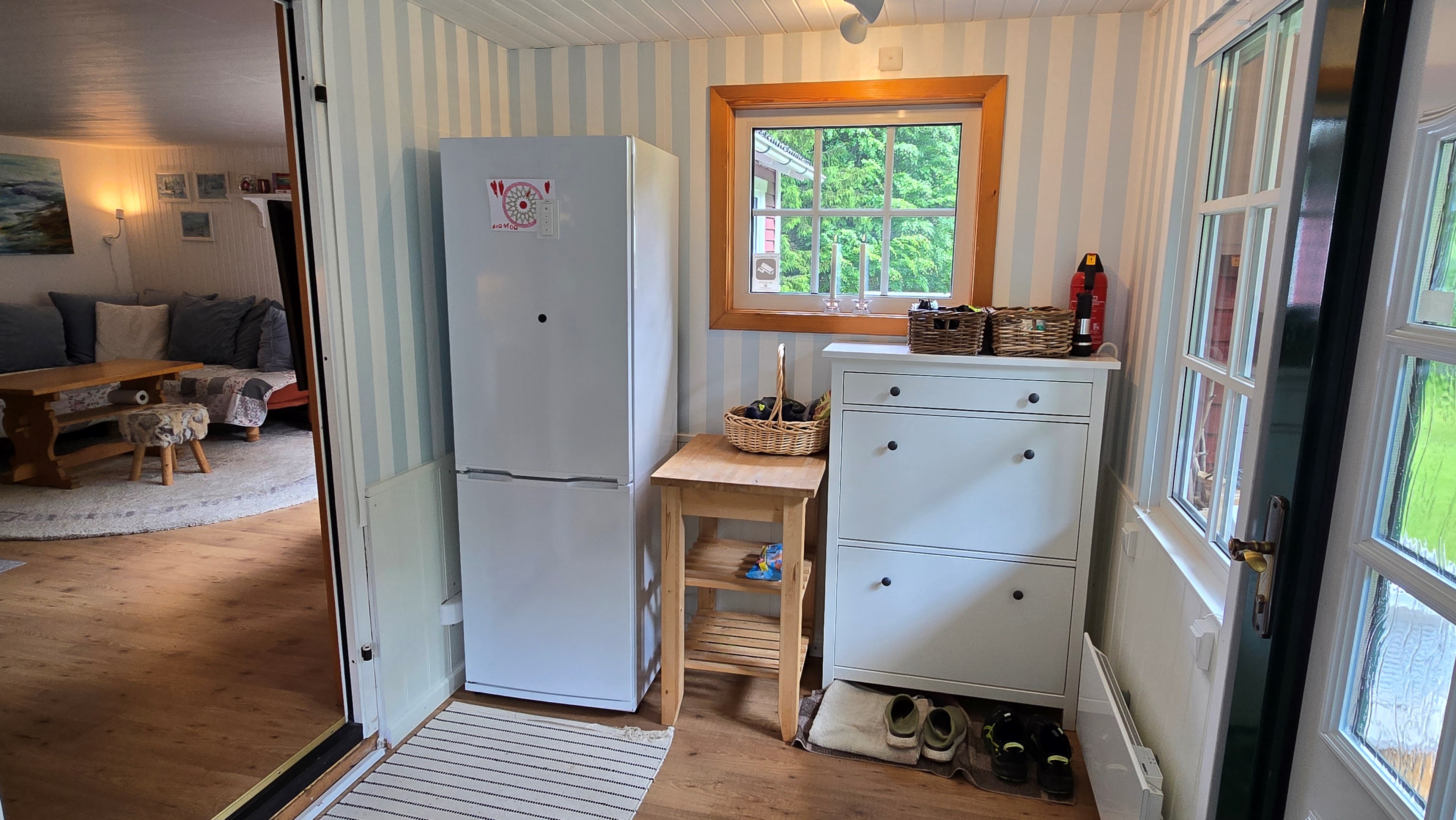 Fritidshus från 1962 på ca 79 m² i gott skick, men behöver snart nytt tak. Terrass på 15 m² och täckt terrass på 6 m². Underhållsvärme hela året med luftvärmepump och det finns även stor braskamin och direktverkande el. Vatten från egen grävd brunn med nya installationer och avlopp till sluten tank för WC samt BDT-avlopp (godkänt 2024). Flera uthus, carport om ca 15 m², vedbod och förråd. 2 279 m² kuperad tomt, delvis trädgård, delvis naturtomt med äng, bär och skog. Insynsskyddat och utan synliga grannar, men landsväg passerar. 500 m. till Smedjeån och ca. 5 km till Store Sjö med badplats och till Oxhultasjön. 3 km från Hishult. Ca 70 km från Helsingborg. Filmvisning: https://youtu.be/5SmLchVEZaI Bögilt Stugområdet 117 vid Hishult är ett välskött fritidshus på ca 79 m² strax utanför stugområdet og alltså inte del av detta. Terrass på ca. 15 m² och en täckt terrass på ca. 6 m². Huset har fasad i liggande träpanel och på taket ligger onduline och papp, där taket bör bytas relativt snart. Fönstren är genomgående isolerglas i underhållsfri plast. De flesta kontakter är utbytta och det finns jordfelsbrytare men också äldre porslinssäkringar. 3-fas kontakt finns. Vatteninstallationerna är nyligen utbytta 2017 med värmeslinga på ledningen. Uppvärmningen sker via luftvärmepump (Panasonic från 2023, appstyrd), direktverkande el med fjärrstyrning samt en effektiv braskamin med plattor som en vedspis. Huset hålls uppvärmt till 16 grader året runt med luftvärmepumpen. Vatten från egen grävd brunn, som inte har sinat. Avloppet är en sluten tank för WC och slamavskiljare med infiltration till stenkista för bad- och tvättvatten (inspekterat och godkänt av kommunen 2024). Huset består av entré till kombinerad hall och matsal med laminatgolv, träpanel i tak och tapetserade väggar. Öppen planlösning mot vardagsrum och kök, även här laminatgolv (trä i köksdelen och även under laminatet), träpanel och serveringsöppning till matplatsen. Köket har elspis med keramisk häll (2022), kyl/frys i hall/matsal (2023), diskbänk, tvättmaskin (äldre) och gott om förvaring. Vardagsrummet har braskamin/vedspis med glaslucka (kontrollerad och sotad 2025), luftvärmepumpen och bäddsoffa. Brandlarm för både rök och kolmonoxid. Sovrum med nytt laminatgolv, dubbelsäng, enkelsäng och inbyggda myggnät i fönster. Hall med laminatgolv och garderob. Äldre badrum med klinkergolv, WC, dusch, handfat, elvärme samt öppningsbart takfönster. Master bedroom med nytt laminatgolv, träpanel i taket, dubbelsäng, stort öppningsbart panoramafönster och anslutning till isolerat uterum/gästrum med lika stort öppningsbart panoramafönster. I uterum/gästrum finns plastmatta på golvet, elvärme och träpanel i taket. Kameraövervakning finns kopplat till säljarens mobil. De flesta möbler och annat lösöre kan köpas till eller medfölja, enl. önskemål och avtal med säljarna. Ut över huset finns en tillbyggd carport om ca 15 m² och verkstad/teknikrum i anslutning till huset med el- och vatteninstallationer. Teknikrummet är isolerat med frostvakt och här finns även 3-fas kontakt, t. ex. för laddning av elbil, drivning av vedklyv m.m. Det finns en fuktskada i taket i verkstadsrummet, som bör undersökas närmare. Fristående vedbod och förråd om ca 6 m² med ungefär lika mycket till under tak som en uteplats med gungbänk. Ytterligare förråd på ca. 6 m2 i källarplan på uthuset. Tomten är 2 279 m² och består av en trädgårdsdel närmast huset med robotgräsklippare med eget litet hus och resten är kuperad naturtomt med skog, gott om blåbär och lingon, samt en liten äng. I bakre delen av tomten finns bålplats och gott om plats för lek, tält eller odling. Huset ligger högt, väl dolt av tät vegetation och utan insyn, med enstaka grannar på behörigt avstånd. En asfalterad landsväg passerar på andra sidan trädridån, vilket innebär visst trafikljud, särskilt morgon och eftermiddag på vardagar. Egen infart med goda parkeringsmöjligheter och utan genomfart. Adressen antyder att huset ligger i stugområdet, men det ligger strax utanför och är inte del i detta, så man betalar ingen avgift till föreningen. Området i stort är också mycket naturskönt och ca. 500 m från tomten till den mysiga Smedjeån och ca. 5 km. till fin badplats i Store Sjö och samma avstånd till Oxhultasjön med resterna av herrgårdsruinen Sjöboholm, ute på en udde. Ca. 3 km. till Hishult samhälle med närmaste affär och även Hishult Konsthall. Ca. 14 km. till Gränsbygdens Köpcentrum, som har allt man kan behöva av såväl matvaror som vitvaror, verktyg, byggmaterial mm. Knäred samhälle ligger också ca. 14 km. från huset med utomhusbadet Flammabadet, åarna Lagan och Krokån och det vackra Prästaskogens naturreservat och Kvarnfallet i Krokån. Ca. 20 km. till Vallåsen skidbacke och Bike-Park på Hallandsås och ca. 15 km. till Kungsbyggets Äventyrspark med zipline, rodelbana m.m. sommartid. Ca. 25 km. till Skogaby Golfklubb och ca. 30 km. till havet och Mellbystrand. Ca. 70 km. från Helsingborg och ca. 130 km. från Malmö.