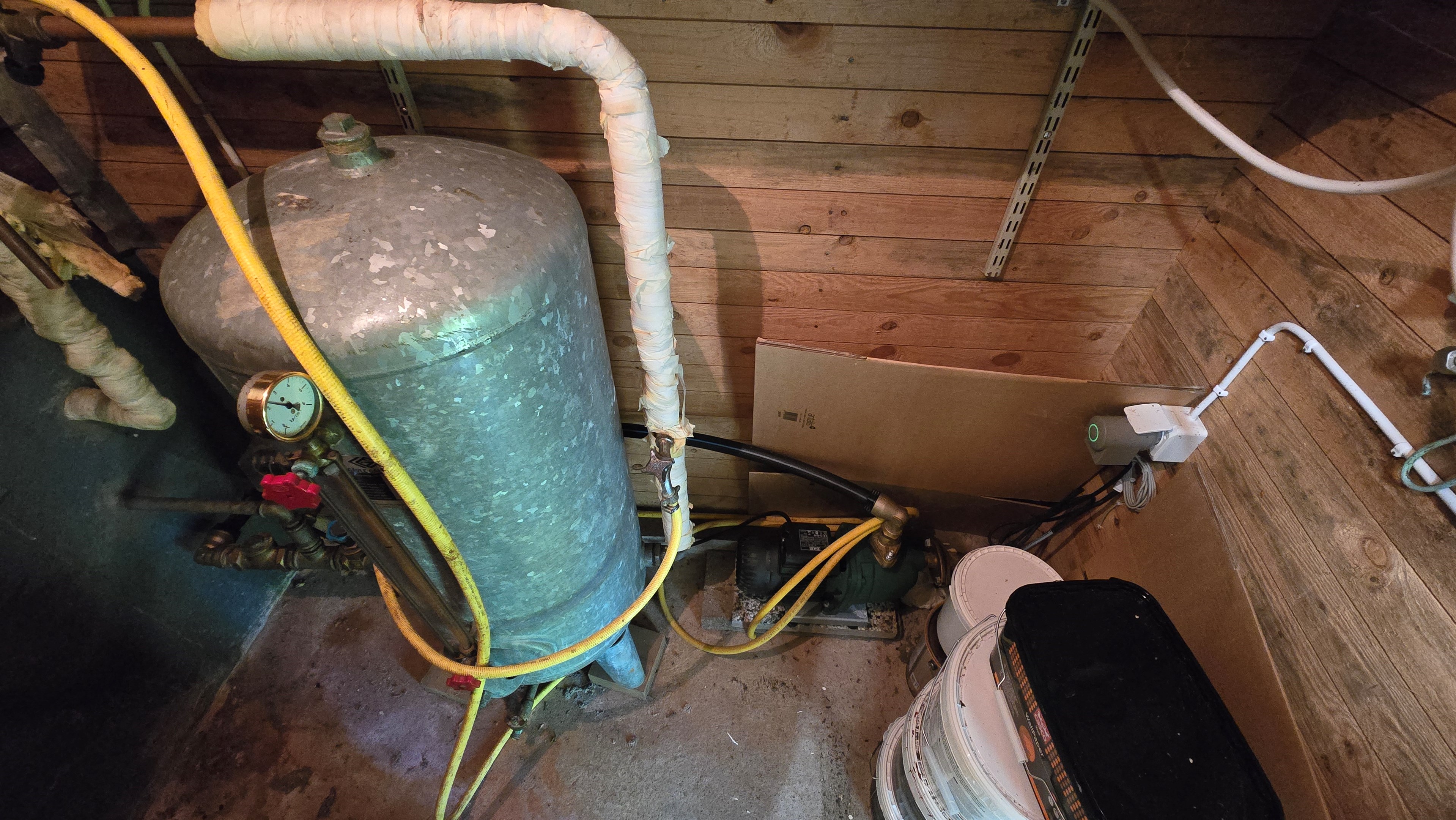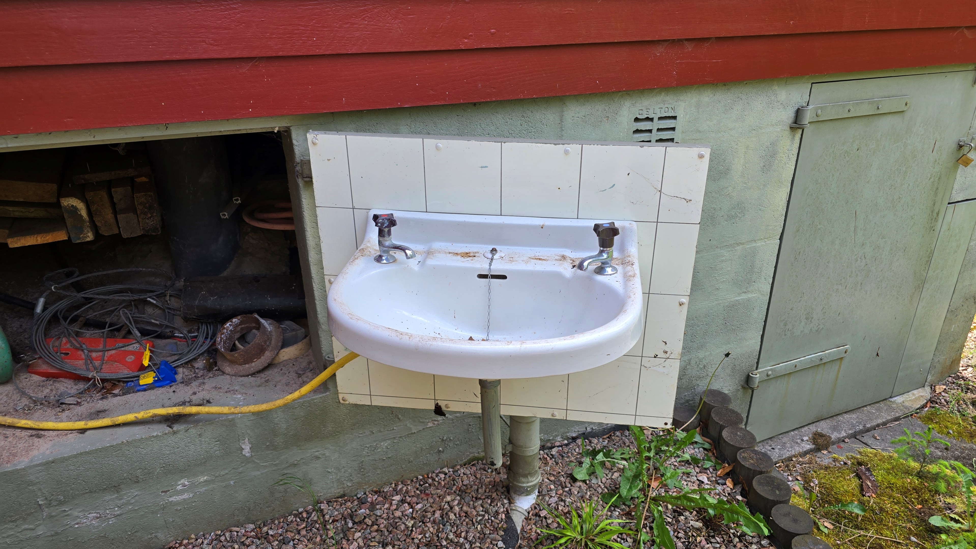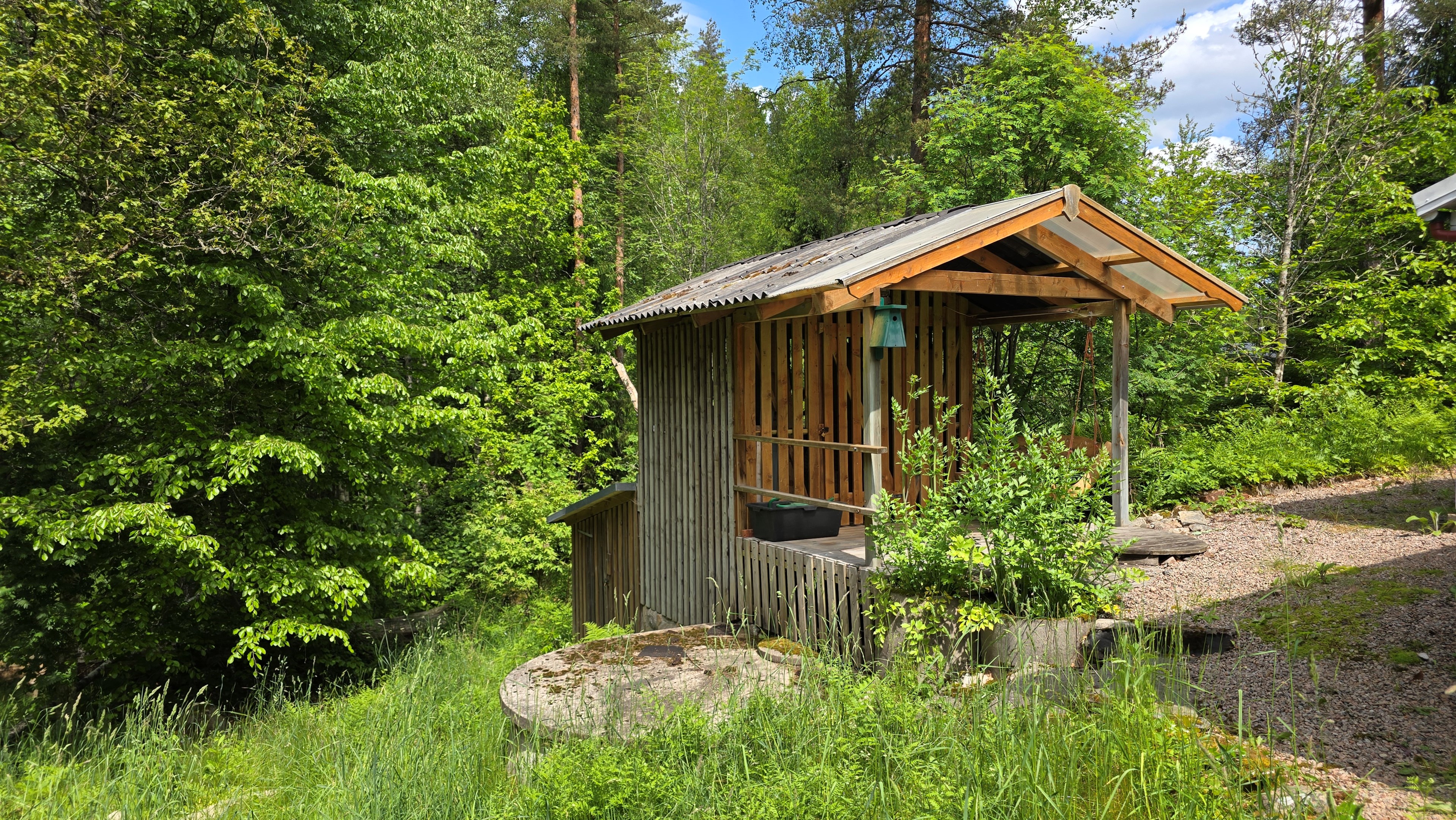 Vatten från egen grävd brunn på tomten med nyare pump och ledningar (med värmeslinga). Brunnen har inte sinat och har bra vatten enl. säljarna, men det finns ingen formell analys. Avlopp till sluten tank för WC (med larm) och slamavskiljare med stenkista som infiltration för BDT-vatten. Inspekterad av kommunen 2024, utan krav på åtgärd.