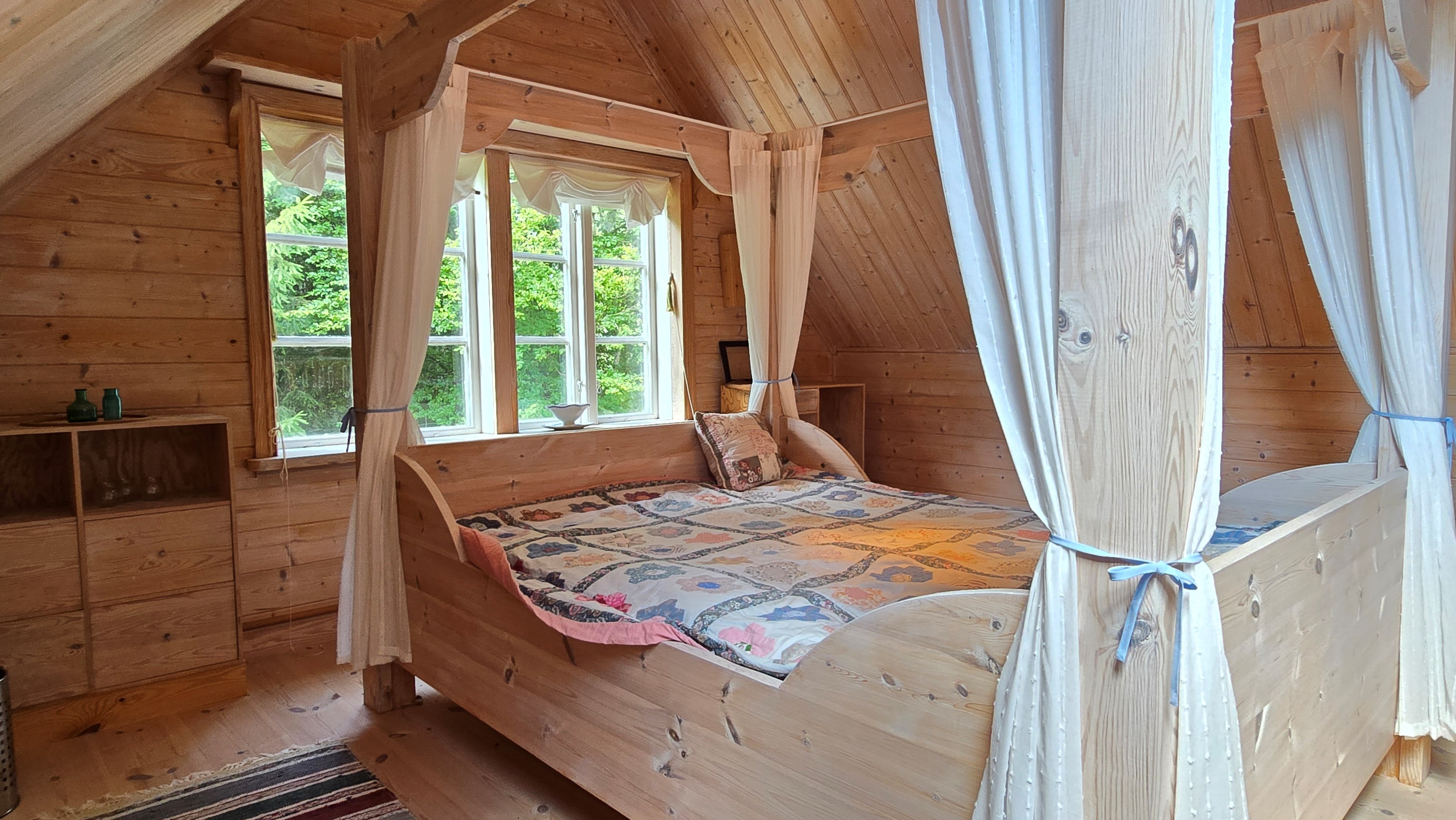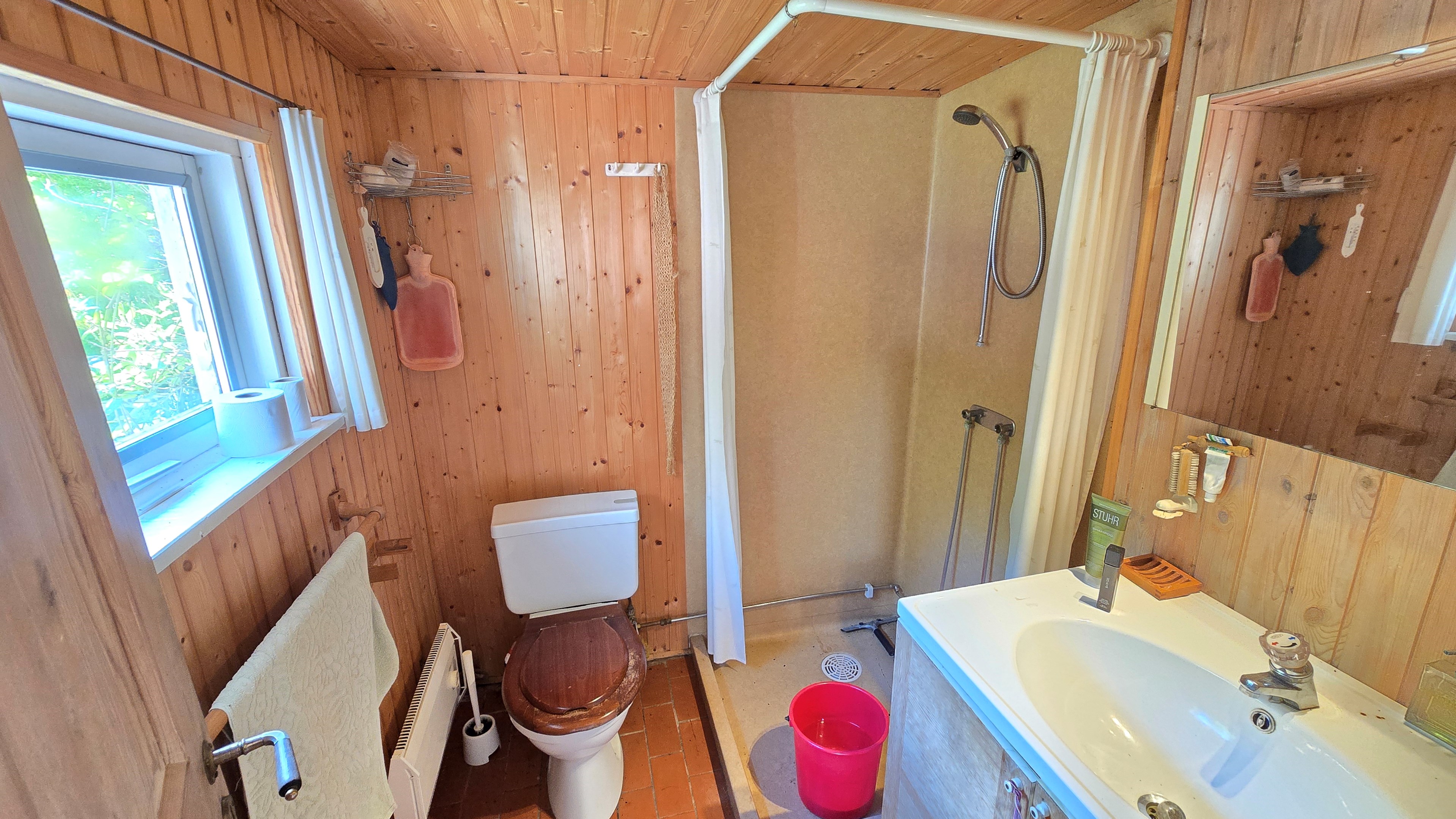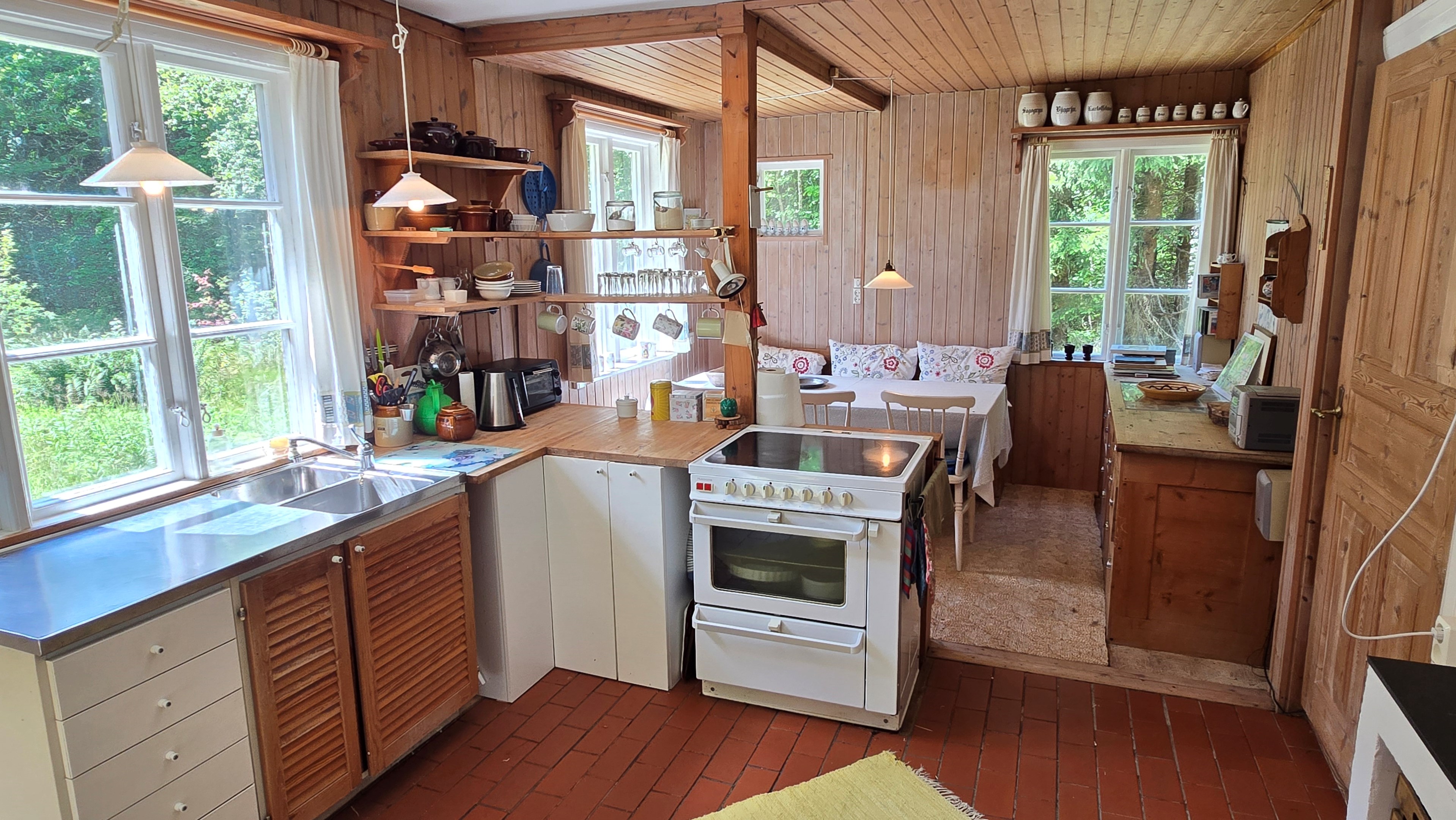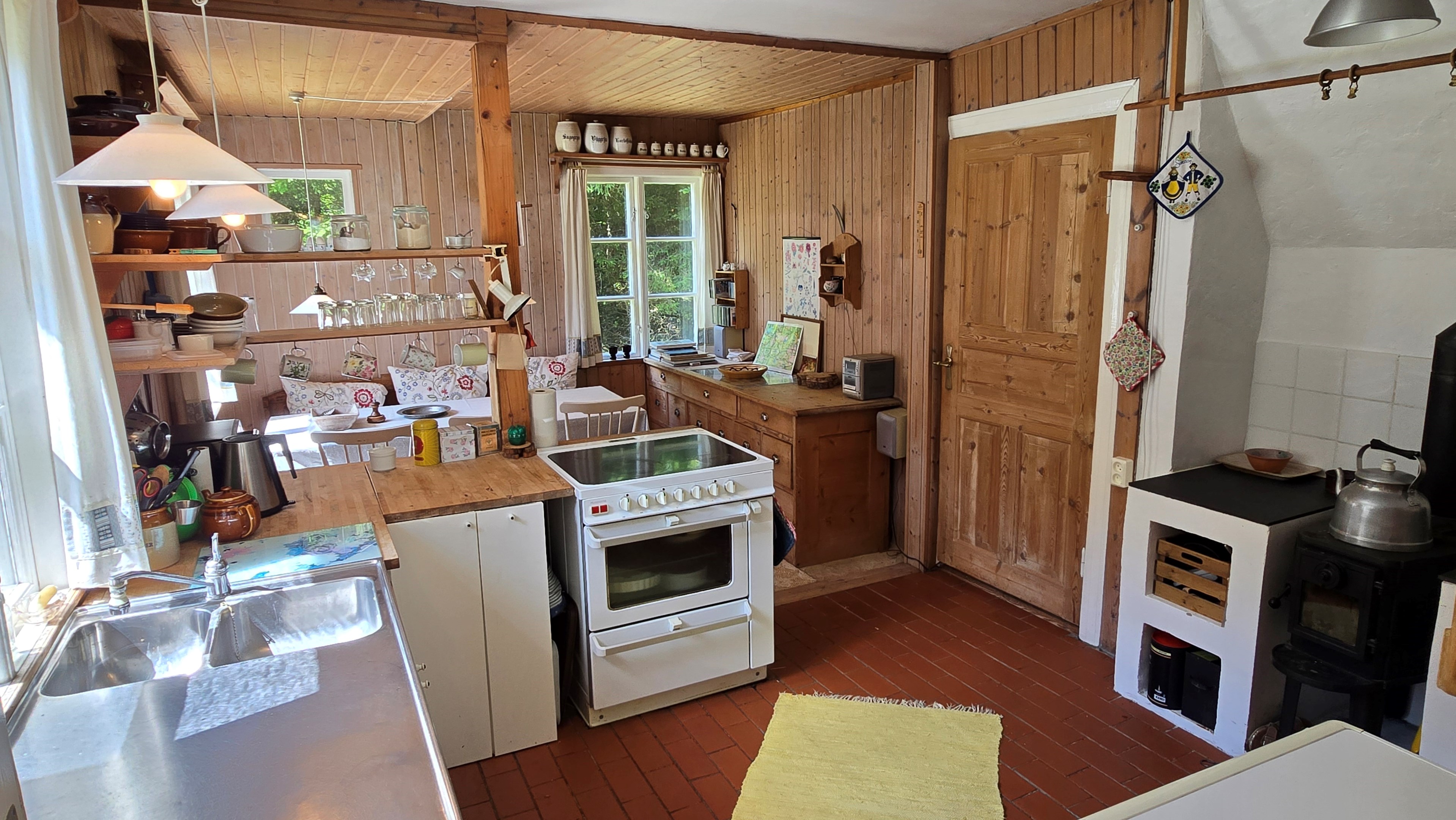 Torp från ca 1900 om ca 105 m², med samma ägarfamilj sedan 1975. Renoverat på 70-talet och igen på 90-talet och behöver nu en del underhåll och renovering igen. Uppvärmning via två nyare braskaminer, en äldre kamin och en solventilator. Luftvärmepump rekommenderas. Vatten från grävd brunn med bra och rikligt vatten och avlopp till trekammarbrunn med infiltration (2022). Uthus om ca 40 m² med äldre tegeltak. Jordkällare ca 10–12 m² med plåttak. 22 230 m² tomt med blandad skog och ängsmark på båda sidor om mycket liten väg. Endast 1,4 km till Ilesjön. Ca 100 km från Helsingborg. Filmvisning: https://youtu.be/-grey5HxOFs Ekön 3231 vid Strömsnäsbruk är en liten gård med ett klassiskt torp från sekelskiftet, beläget på en stor, naturskön tomt om 2,2 hektar. Huset har använts som fritidshus av en dansk familj sedan 1975 och har löpande moderniserats och förbättrats, bland annat med nytt betongtegeltak, inredning av övervåning och tilläggsisolering på övervåningen i mitten på 1990-talet samt större renoveringar på 1970-talet med etablering av bl a badrum och kök. Badrummet har sedan uppdaterats 2005 och avloppet nyligen uppdaterats med infiltration 2022. Fasaden, fönster och vindskivor är i behov av målning och en del behöver bytas, särskilt vid ett litet takuthäng på baksidan och översyn av plåtar runt skorstenen. Fönster är av blandad typ med några kopplade dubbelglas och några enkelglas med och utan innerruta, i varierande skick. Elsystemet består av både äldre kontakter i bottenplan och nyare installationer på övervåningen, men utan jordfelsbrytare. Uppvärmning sker via två braskaminer, en i kök, en i vardagsrum, installerade för ca 7–8 år sedan, samt en äldre emaljerad braskamin i sovrummet i bottenvåningen. Skorsten och eldstäder behöver besiktigas av sotare innan eldning och fast monterad stege på taket och glidskydd för markstege ska monteras. På badrummet finns elvärme och så finns en solventilator som ger god luftcirkulation. Vatten indraget från grävd brunn med bra och rikligt vatten. Säljarna har druckit det i alla år och den har inte sinat, men det finns ingen formell analys. Avlopp till trekammarbrunn med nyare infiltration från 2022. Entré via badrumstillbyggnad eller köksingång med stensatt uteplats utanför. I hallen i tillbyggnaden är det klinker på golvet, där några har sprickor och det sitter en nyare varmvattenberedare. Badrum från 70-talet, renoverat ca 2005, med klinker på golvet, träpanel på väggar och tak, nyare våtrumsmatta i duschen, WC (spolmekanism behöver åtgärdas) och handfat. Kök och matsal i öppen förbindelse. Klinker på golvet i köksdelen, träpanel på väggar och tak, diskbänk, hyllor, elspis med keramisk häll, kylskåp, gamla eldstaden med braskamin och den gamla bakugnen (ej i bruk) och matplats med trägolv som har vassmatta ovanpå. Vardagsrum med trägolv, täckt med vassmatta, mjuk masonit i taket (plank finns bakom) och effektiv braskamin. Mysig glasveranda med dubbeldörrar mot trädgården, säkringsskåp och trappa till övervåningen. Sovrum med fint plankgolv, två enkelsängar, garderob och äldre emaljerad braskamin. Övervåningen inreddes på 90-talet med tilläggsisolering, breda plankgolv, träpanel på väggar och tak, liten kupa och även ett takfönster. Här finns två sovrum, ett större med plats för himmelsäng och sittgrupp eller bäddsoffa, samt ett mindre med två enkelsängar. De flesta möbler och annat lösöre kan köpas till eller medfölja, enl. önskemål och avtal med säljarna. Ut över huset finns ett uthus om ca 40 m² med gammalt tegeltak (många reservtegel finns). Uthuset har en ny yttervägg, då man rivit en dålig del av den. Här finns gott om förvaringsutrymme, verkstadsplats och vedbod. Jordkällare om ca 10 m² med plåttak. I jordkällaren finns vattenpump, hydrofor och låda med duschblandaren, som avmonteras om vintern. 22 230 m² (drygt 2,2 hektar eller ca. 4,5 tunnland) med blandad övervägande lövskog, lite ängsmark och vacker utsikt över landskapet. Marken ligger på båda sidor om en liten asfalterad väg, inte bredare än en grusväg, som dock snöröjs vintertid och med endast mycket lätt lokal trafik. Omgivningen är tyst och lugn med ett par grannhus finns i området, dock inte synliga från huset eller störande. Grannen på andra sidan vägen lånar en bit av ängsmarken och tittar i gengäld till huset ibland. Man är rikligt självförsörjande med ved och timmer till husbehov. Området erbjuder fina möjligheter till bad, fiske, vandring och bärplockning. Ca 1,4 km till Ilesjön med badbrygga och grillplats. Ca 5 km till fin badplats i Hinnerydssjöarna och ca 6 km till Vännesjön badplats. Ca 17 km till Strömsnäsbruk med det mesta man behöver och ca 30 km till Markaryd. Ca 50 km till Vallåsen Bike-Park och skidbacke på Hallandsås och till Kungsbyggets Äventyrspark. Ca 60 km till Halmstad och havet, ca 100 km från Helsingborg och ca 165 km från Malmö.