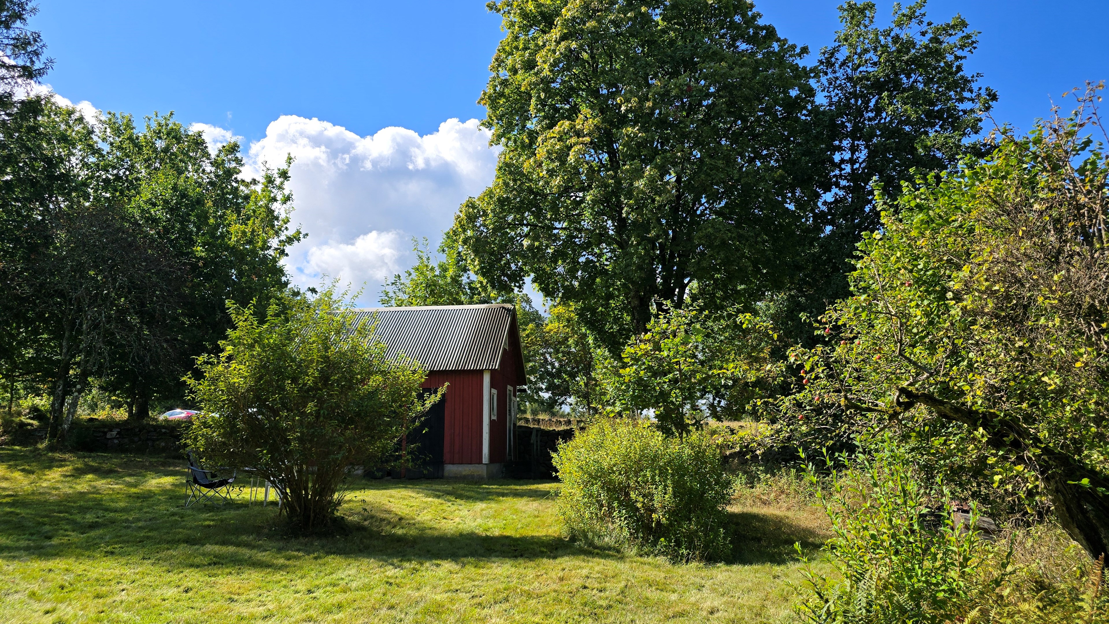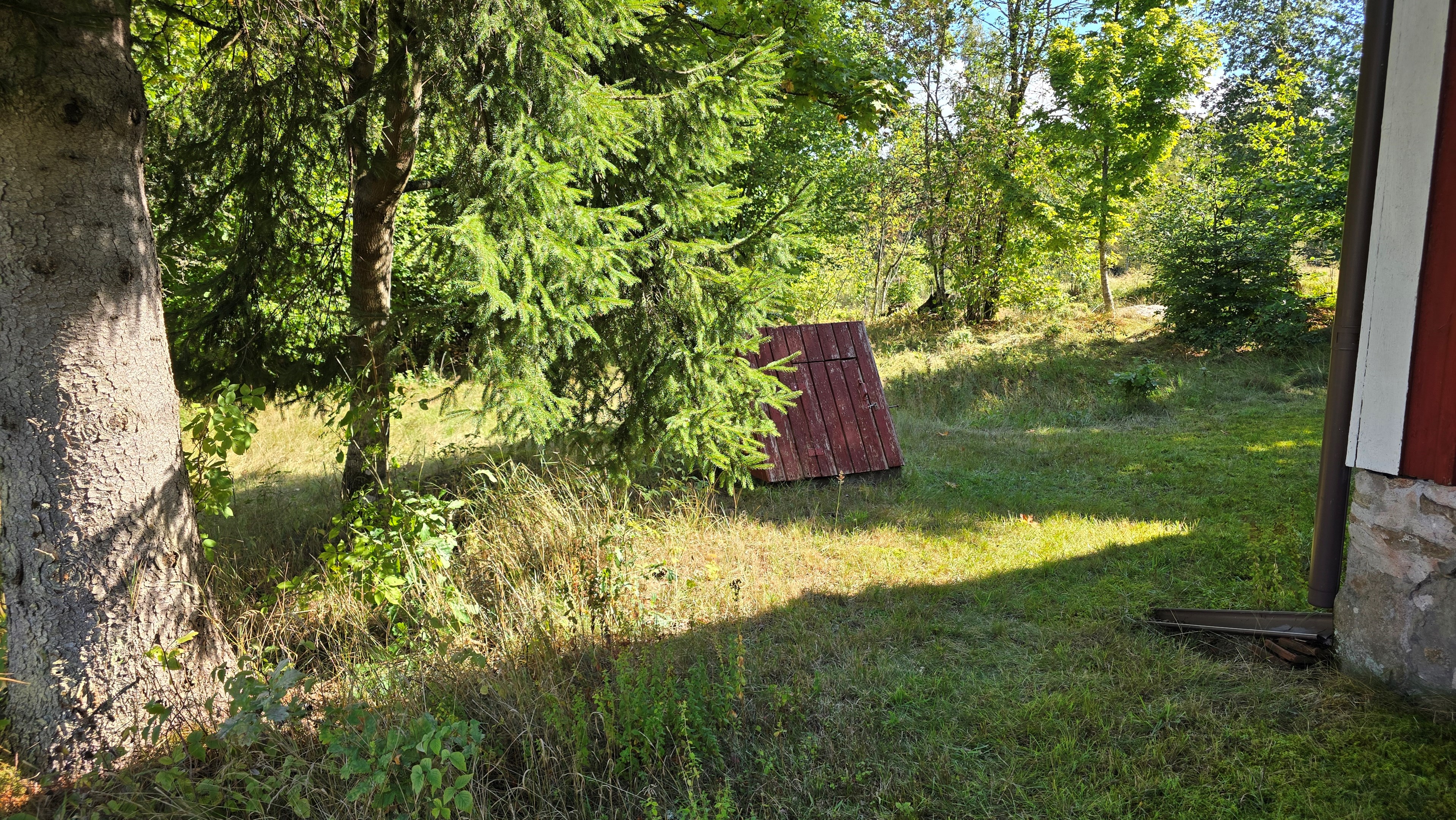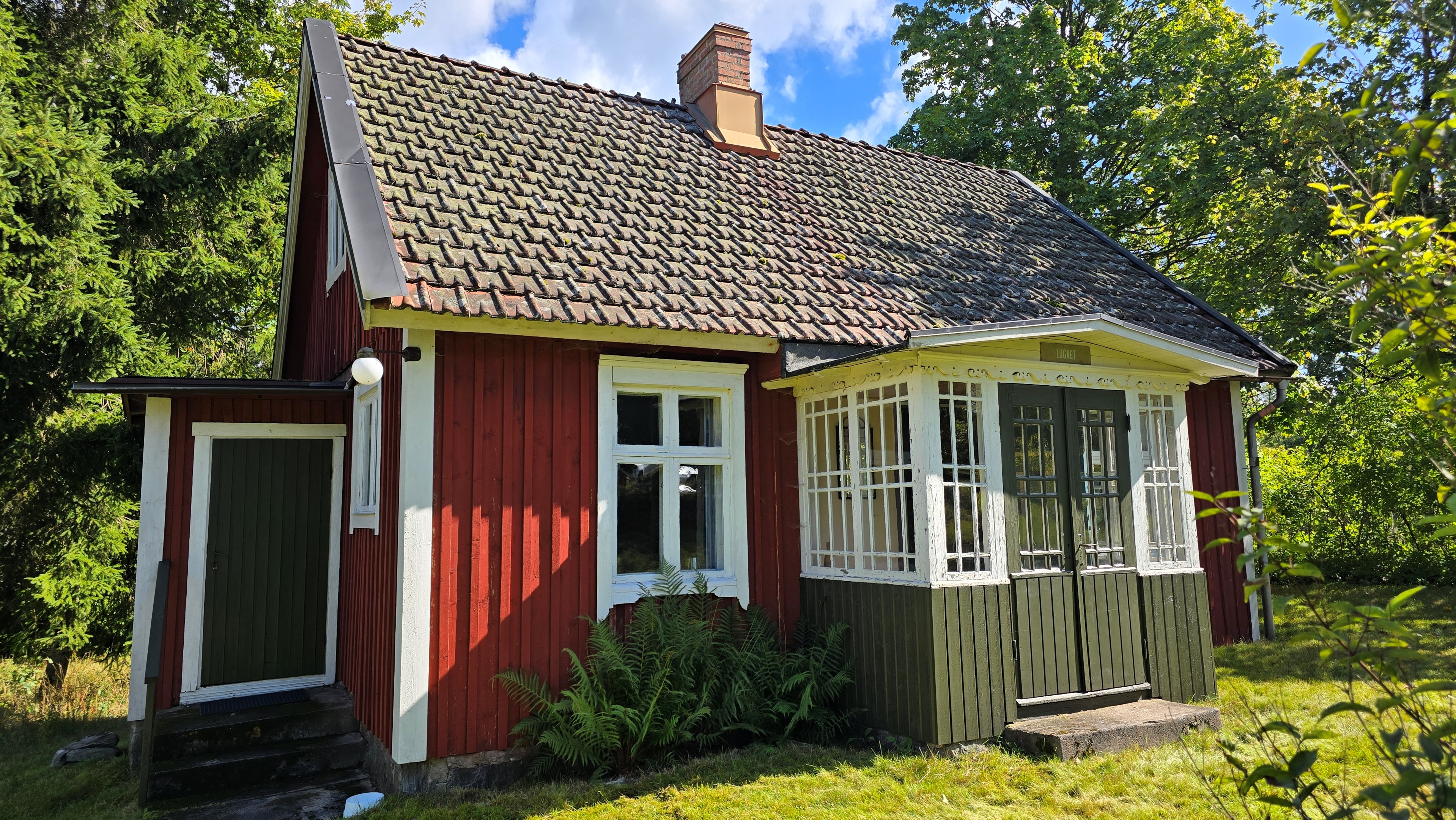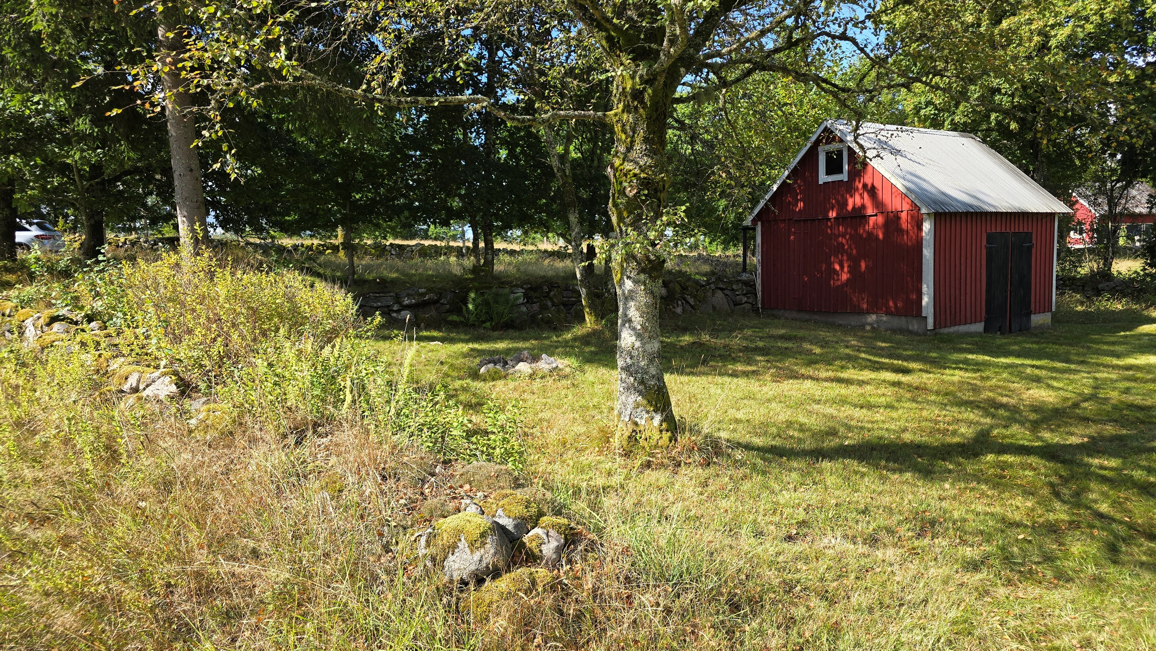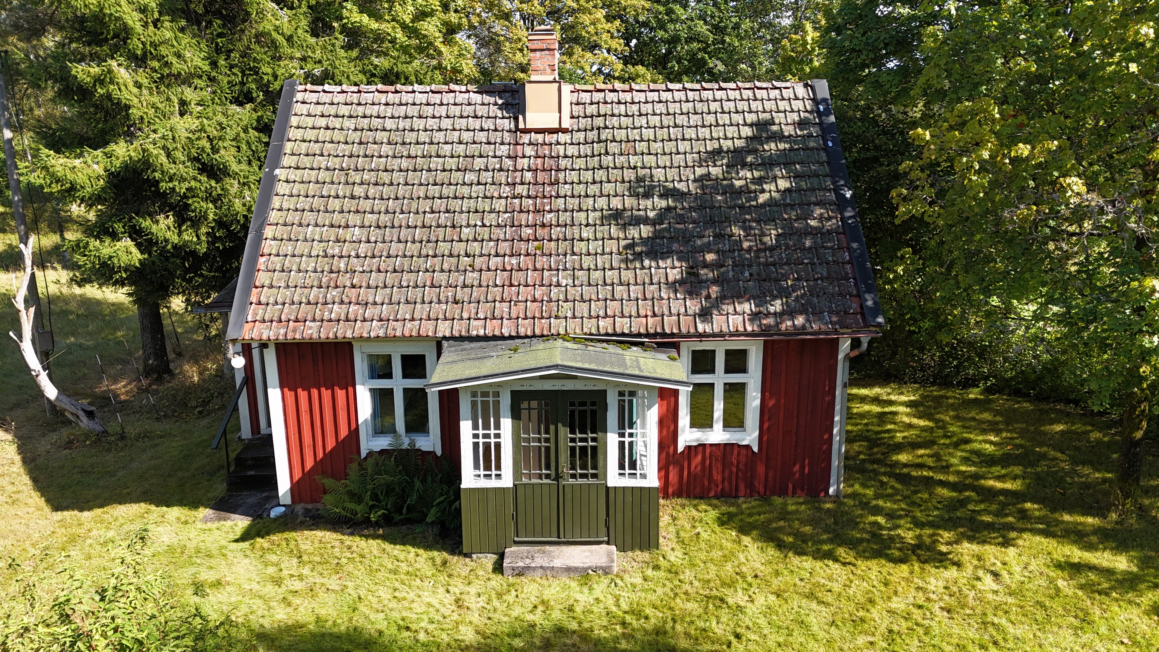Torp från 1908 på ca 72 m2 + källare och uthus på ca 20 m2. Enkel standard, el indraget men ej vatten. Utedass. 1 545 m2 naturskön och enslig tomt, omgiven av ängar och blandad skog. 6 km till Lagan och 13 km till Össjöasön. 100 km från Helsingborg. Filmvisning: https://youtu.be/IXhzmSxTAjY Hässlehult 3254 vid Markaryd är ett mysigt torp från 1908 på ca 72 m2 boyta + ca 20 m2 i källaren där det finns gammal bakugn och vedspis (ej i bruk). Huset har varit i samma danska familjs ägo sedan 1964 och har en gång varit på framsidan av tidningen Bo Bedre. Huset är i grundläggande gott skick, men har en enkel standard utan indraget vatten eller badrum. Utedass finns i uthuset. El finns indraget med äldre installationer och det finns grävd brunn på tomten, där man hämtar vatten med spann. Brunnen kan sina på hösten och då hämtas vatten hos grannen. På taket ligger gamla tegelpannor, men undertaket har varit bytt en gång och de gamla pannorna återanvändes. Otäthet fanns förr omkring skorstenen, men detta har åtgärdats med ny plåt omkring skorstenen, så det som syns på övervåningen är endast kosmetiskt. Hängrännor saknas delvist och borde monteras. Fönster är enkelglas med innerfönster i bottenvåningen (ett par glas har sprickor) och på övervåningen är det kopplade dubbelglas från omkring 1965 när övervåningen inreddes. Värme från enstaka direktverkande element och därutöver en effektiv Jøtul braskamin i vardagsrummet (godkänd). Det finns även vedspis i köket och en braskamin på övervåningen, som inte är i bruk, ut över vedspisen och bakugnen i källaren, som heller inte är i bruk. Huset består av köksingång i tillbyggnad med plastmatta på golvet, pärlspont på väggarna, plank i taket och säkringsskåp. Rymligt kök med linoleum på golvet (trä under), mjuk masonit i taket (trä bakom), matplats, skåp och emaljerad vedspis. Liten hall med trappa till övervåningen och lucka i golvet till källaren. Ytterligare köksrum med plastmatta på golvet, diskbänk (ej vatten, avlopp till skogen eller enkel stenkista), elspis med två plattor, kyl/frys och inbyggda skåp. I detta rum kunde man ev. inreda badrum i framtiden, om man önskar. Vardagsrum med trägolv, mjuk masonit i taket, bäddsoffa, Jøtul braskamin och utgång till trädgården via den mysiga glasverandan. Sovrum med trägolv och våningssäng. På övervåningen finns ett stort rum, som delas i två sektionen av skorstenen. Trägolv och träpanel på väggar och tak. I sektionen närmast trappan finns dubbelsäng, garderob och en emaljerad Husqvarna braskamin (ej i bruk). I den andra sektionen finns det fyra platsbyggda enkelsängar längs med väggarna. De flesta möbler och annat lösöre kan köpas till eller medfölja, enl. önskemål och avtal med säljarna. Ut över huset finns ett uthus på ca. 20 m2 + vind till lagring. Uthuset har bra plåttak och ett rum till vedlager, ett rum till lagring av redskap och maskiner och ett trippel utedass. 1 545 m2 (friköpt) trädgård och naturtomt, omgiven av gräsängar och blandad skog, med fina stengärdsgårdar i tomtgränsen och inne på tomten. Vacker utsikt över ängarna och vägen hit är en liten otrafikerad grusväg, som slutar en kort bit förbi huset, där det enda grannhuset ligger. Grannhuset är inte bebott, utan ägs av de som äger den stora gården i området. Huset sköts och gräset klipps, men används i övrigt sparsamt på helgerna och är inte störande på något vis. Ca. 1,5 km. från huset till Vänneån med goda fiskemöjligheter och ca. 6 km. till den stora ån Lagan. Ca. 12 km. till Knäred samhälle med affärer och utomhusbadet Flammabadet samt Prästaskogens naturreservat med vandringsleder och Kvarnfallet i Krokån. Ca. 13 km. till fin barnvänlig badplats i Össjöasjön. Ca. 17 km. till Markaryd samhälle och ca. 20 km. till Skogaby golfklubb. Ca. 23 km. till Mästocka Ljunghed naturreservat och ännu en fin badplats i Björsjön. Ca. 35 km. till Vallåsen Bike-Park och skidbacke på Hallandsås och till Kungsbygget Äventyrspark med zipline och rodelbana sommartid. Ca. 38 km. till havet och Mellbystrand. Ca. 100 km. från Helsingborg och ca. 155 km. från Malmö.