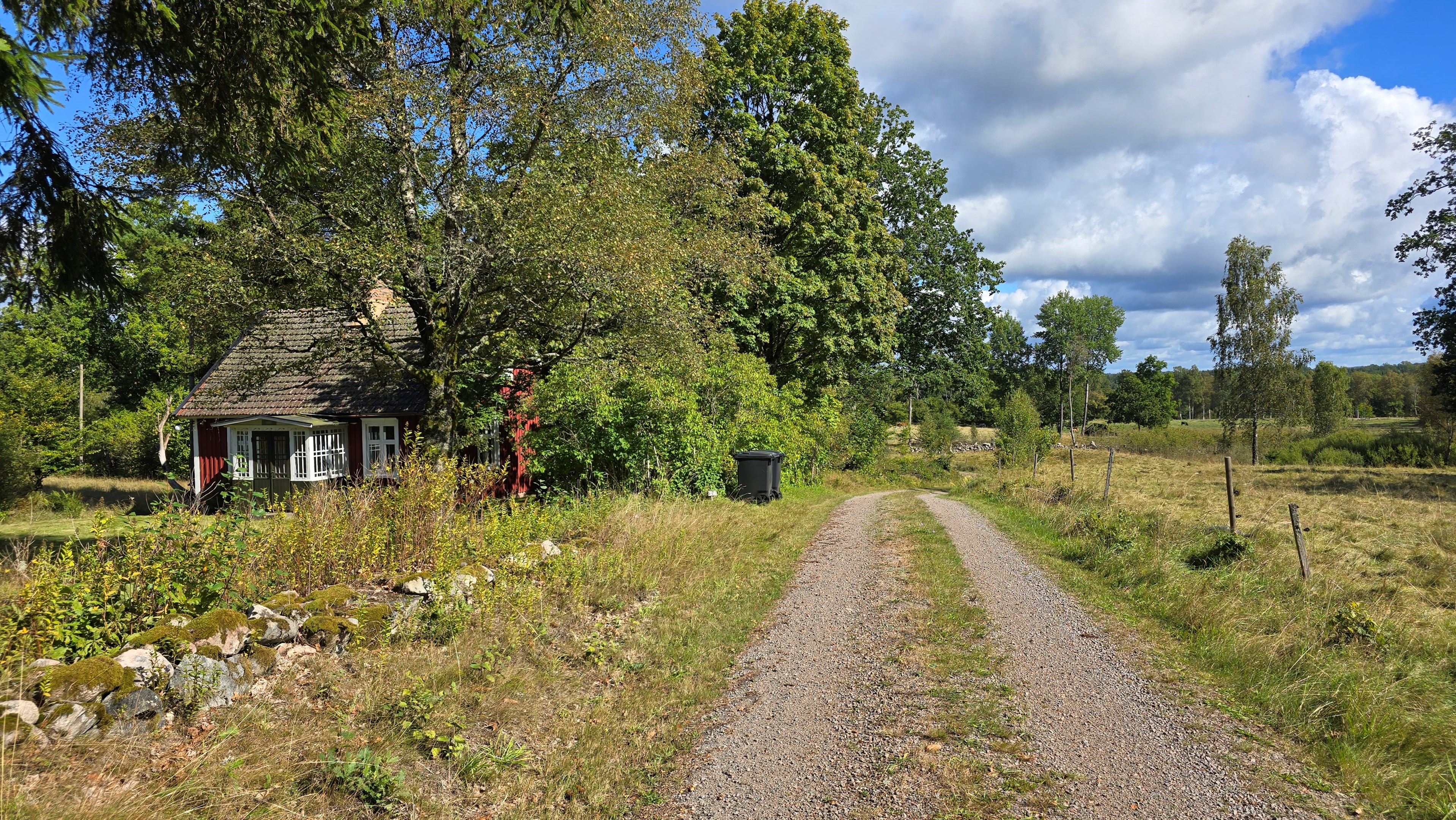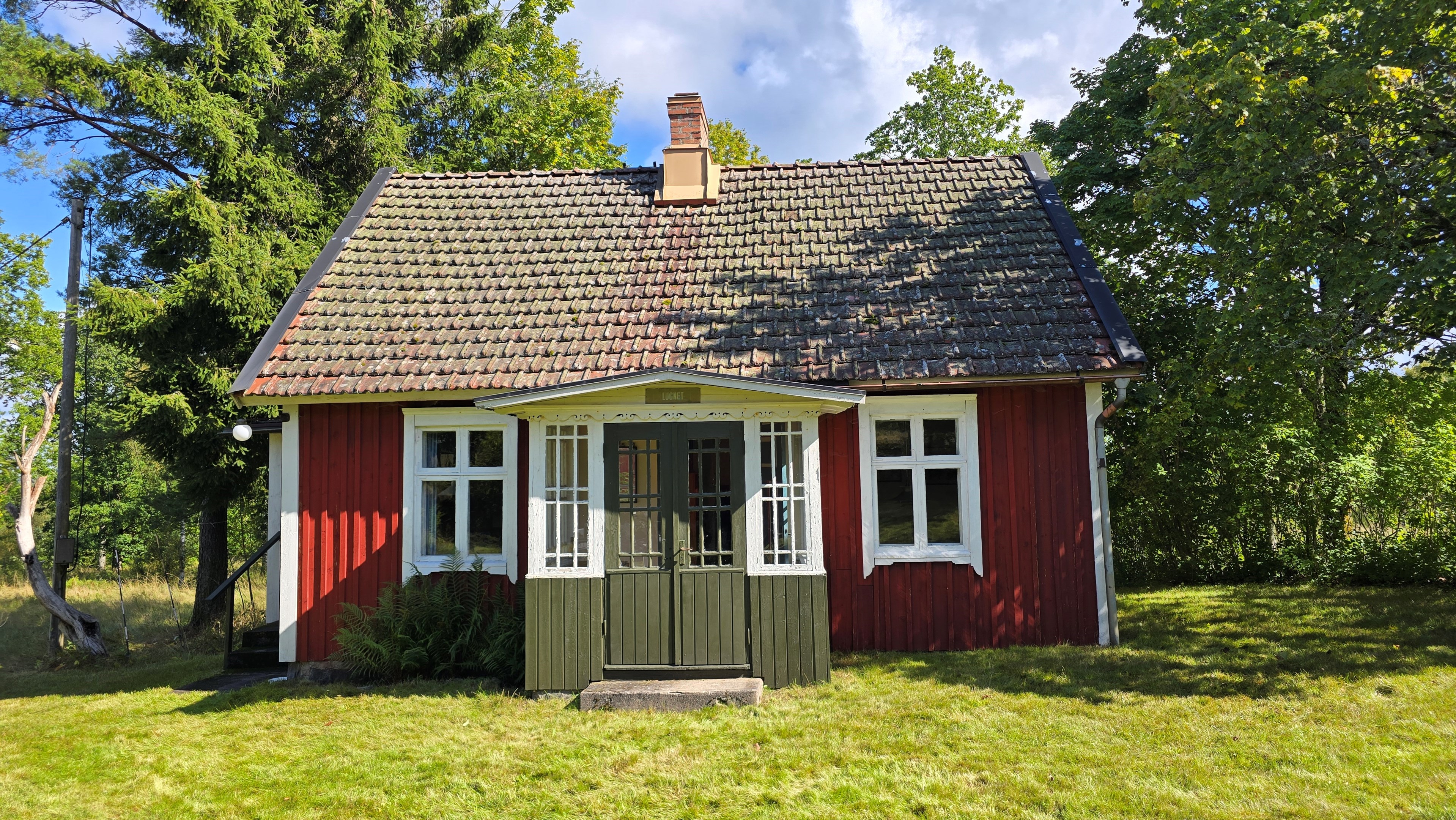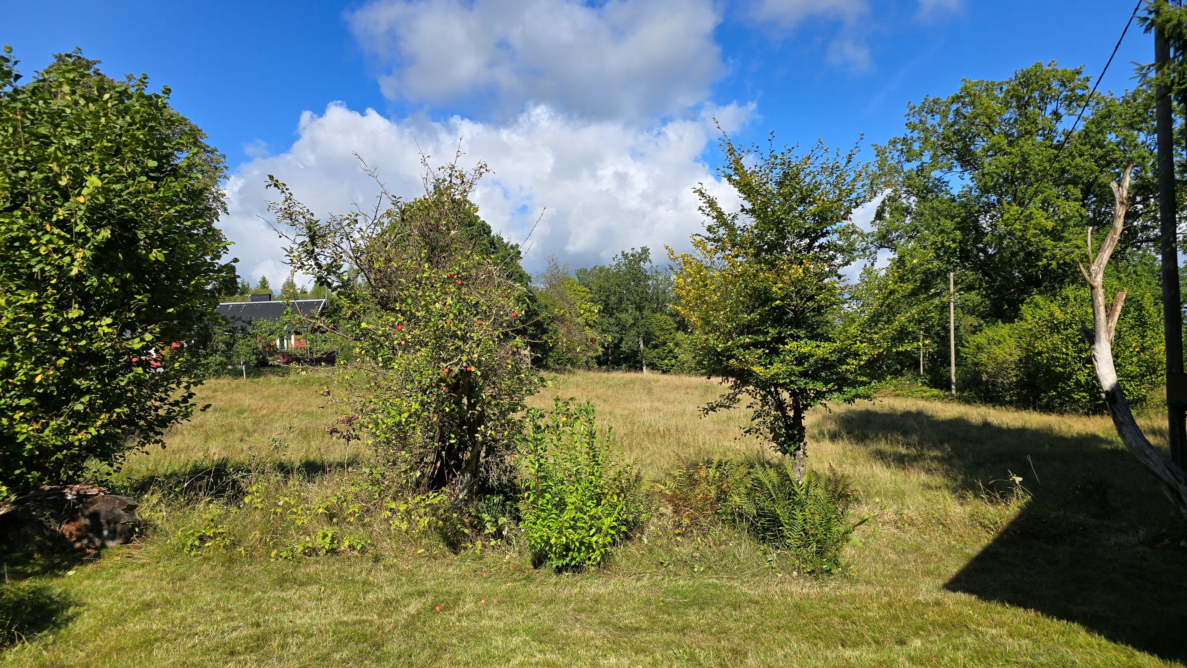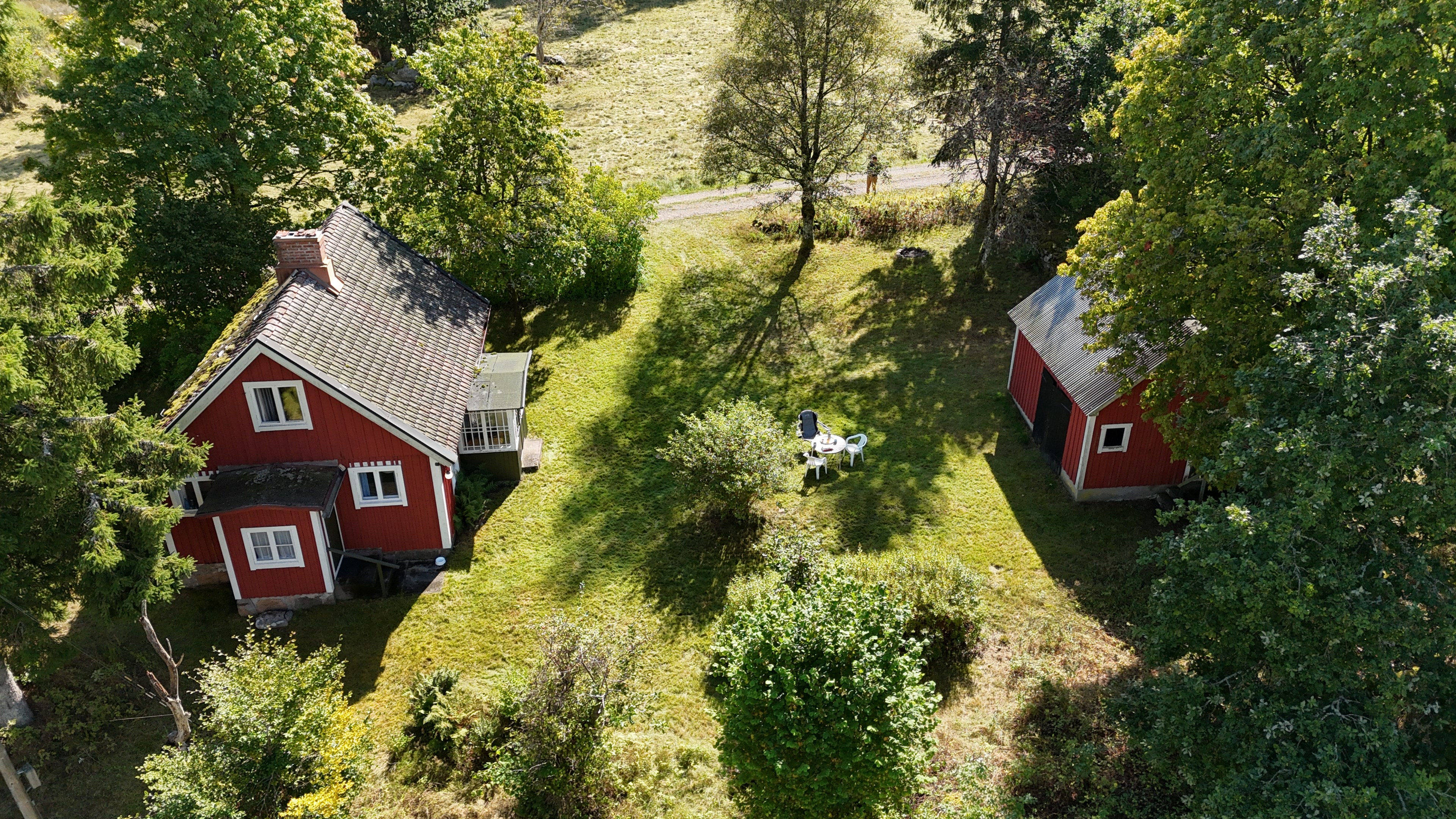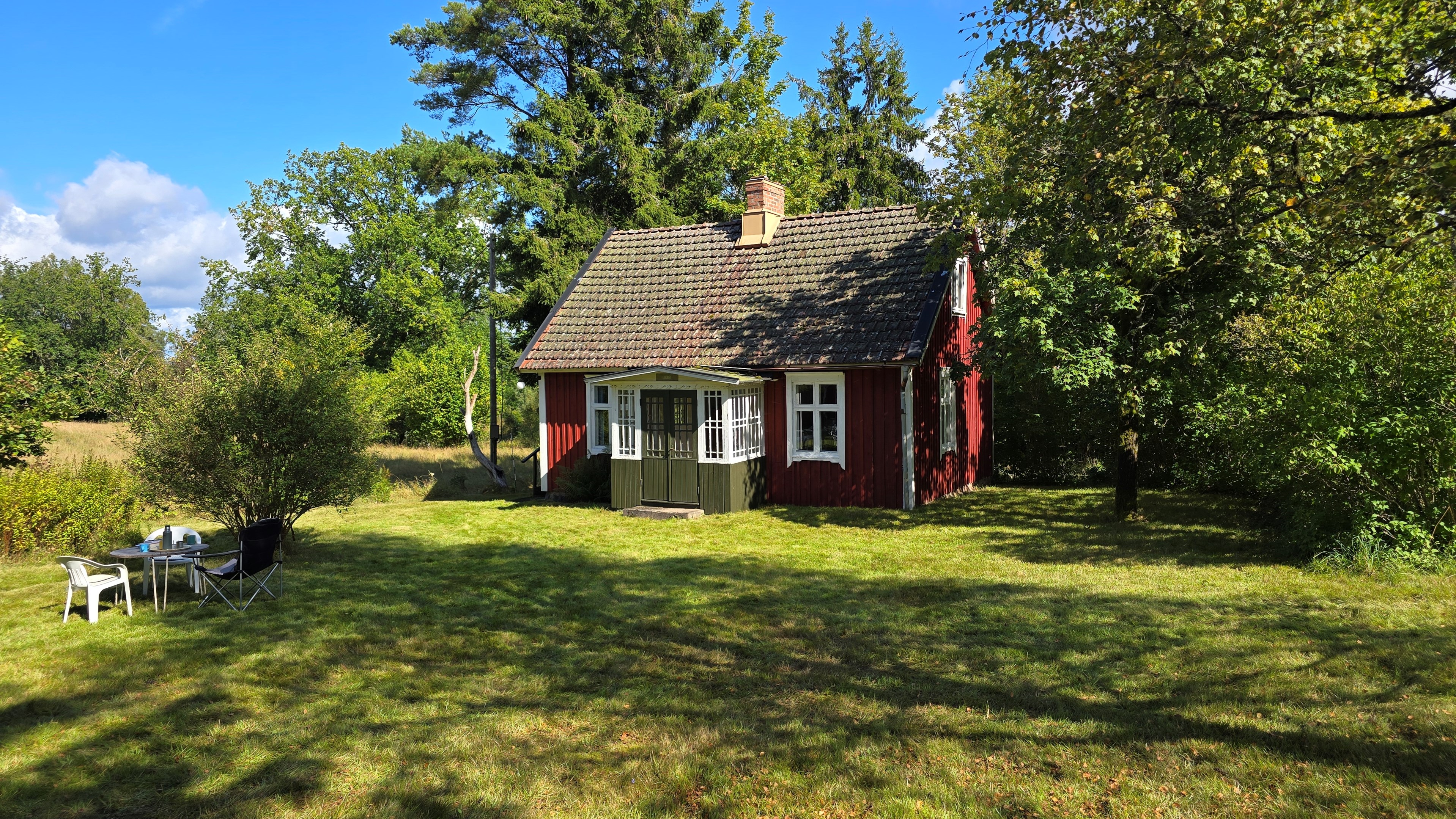 Torp från 1908 på ca 72 m2 + källare och uthus på ca 20 m2. Enkel standard, el indraget men ej vatten. Utedass. 1 545 m2 naturskön och enslig tomt, omgiven av ängar och blandad skog. 6 km till Lagan och 13 km till Össjöasön. 100 km från Helsingborg. Filmvisning: https://youtu.be/IXhzmSxTAjY Hässlehult 3254 vid Markaryd är ett mysigt torp från 1908 på ca 72 m2 boyta + ca 20 m2 i källaren där det finns gammal bakugn och vedspis (ej i bruk). Huset har varit i samma danska familjs ägo sedan 1964 och har en gång varit på framsidan av tidningen Bo Bedre. Huset är i grundläggande gott skick, men har en enkel standard utan indraget vatten eller badrum. Utedass finns i uthuset. El finns indraget med äldre installationer och det finns grävd brunn på tomten, där man hämtar vatten med spann. Brunnen kan sina på hösten och då hämtas vatten hos grannen. På taket ligger gamla tegelpannor, men undertaket har varit bytt en gång och de gamla pannorna återanvändes. Otäthet fanns förr omkring skorstenen, men detta har åtgärdats med ny plåt omkring skorstenen, så det som syns på övervåningen är endast kosmetiskt. Hängrännor saknas delvist och borde monteras. Fönster är enkelglas med innerfönster i bottenvåningen (ett par glas har sprickor) och på övervåningen är det kopplade dubbelglas från omkring 1965 när övervåningen inreddes. Värme från enstaka direktverkande element och därutöver en effektiv Jøtul braskamin i vardagsrummet (godkänd). Det finns även vedspis i köket och en braskamin på övervåningen, som inte är i bruk, ut över vedspisen och bakugnen i källaren, som heller inte är i bruk. Huset består av köksingång i tillbyggnad med plastmatta på golvet, pärlspont på väggarna, plank i taket och säkringsskåp. Rymligt kök med linoleum på golvet (trä under), mjuk masonit i taket (trä bakom), matplats, skåp och emaljerad vedspis. Liten hall med trappa till övervåningen och lucka i golvet till källaren. Ytterligare köksrum med plastmatta på golvet, diskbänk (ej vatten, avlopp till skogen eller enkel stenkista), elspis med två plattor, kyl/frys och inbyggda skåp. I detta rum kunde man ev. inreda badrum i framtiden, om man önskar. Vardagsrum med trägolv, mjuk masonit i taket, bäddsoffa, Jøtul braskamin och utgång till trädgården via den mysiga glasverandan. Sovrum med trägolv och våningssäng. På övervåningen finns ett stort rum, som delas i två sektionen av skorstenen. Trägolv och träpanel på väggar och tak. I sektionen närmast trappan finns dubbelsäng, garderob och en emaljerad Husqvarna braskamin (ej i bruk). I den andra sektionen finns det fyra platsbyggda enkelsängar längs med väggarna. De flesta möbler och annat lösöre kan köpas till eller medfölja, enl. önskemål och avtal med säljarna. Ut över huset finns ett uthus på ca. 20 m2 + vind till lagring. Uthuset har bra plåttak och ett rum till vedlager, ett rum till lagring av redskap och maskiner och ett trippel utedass. 1 545 m2 (friköpt) trädgård och naturtomt, omgiven av gräsängar och blandad skog, med fina stengärdsgårdar i tomtgränsen och inne på tomten. Vacker utsikt över ängarna och vägen hit är en liten otrafikerad grusväg, som slutar en kort bit förbi huset, där det enda grannhuset ligger. Grannhuset är inte bebott, utan ägs av de som äger den stora gården i området. Huset sköts och gräset klipps, men används i övrigt sparsamt på helgerna och är inte störande på något vis. Ca. 1,5 km. från huset till Vänneån med goda fiskemöjligheter och ca. 6 km. till den stora ån Lagan. Ca. 12 km. till Knäred samhälle med affärer och utomhusbadet Flammabadet samt Prästaskogens naturreservat med vandringsleder och Kvarnfallet i Krokån. Ca. 13 km. till fin barnvänlig badplats i Össjöasjön. Ca. 17 km. till Markaryd samhälle och ca. 20 km. till Skogaby golfklubb. Ca. 23 km. till Mästocka Ljunghed naturreservat och ännu en fin badplats i Björsjön. Ca. 35 km. till Vallåsen Bike-Park och skidbacke på Hallandsås och till Kungsbygget Äventyrspark med zipline och rodelbana sommartid. Ca. 38 km. till havet och Mellbystrand. Ca. 100 km. från Helsingborg och ca. 155 km. från Malmö.