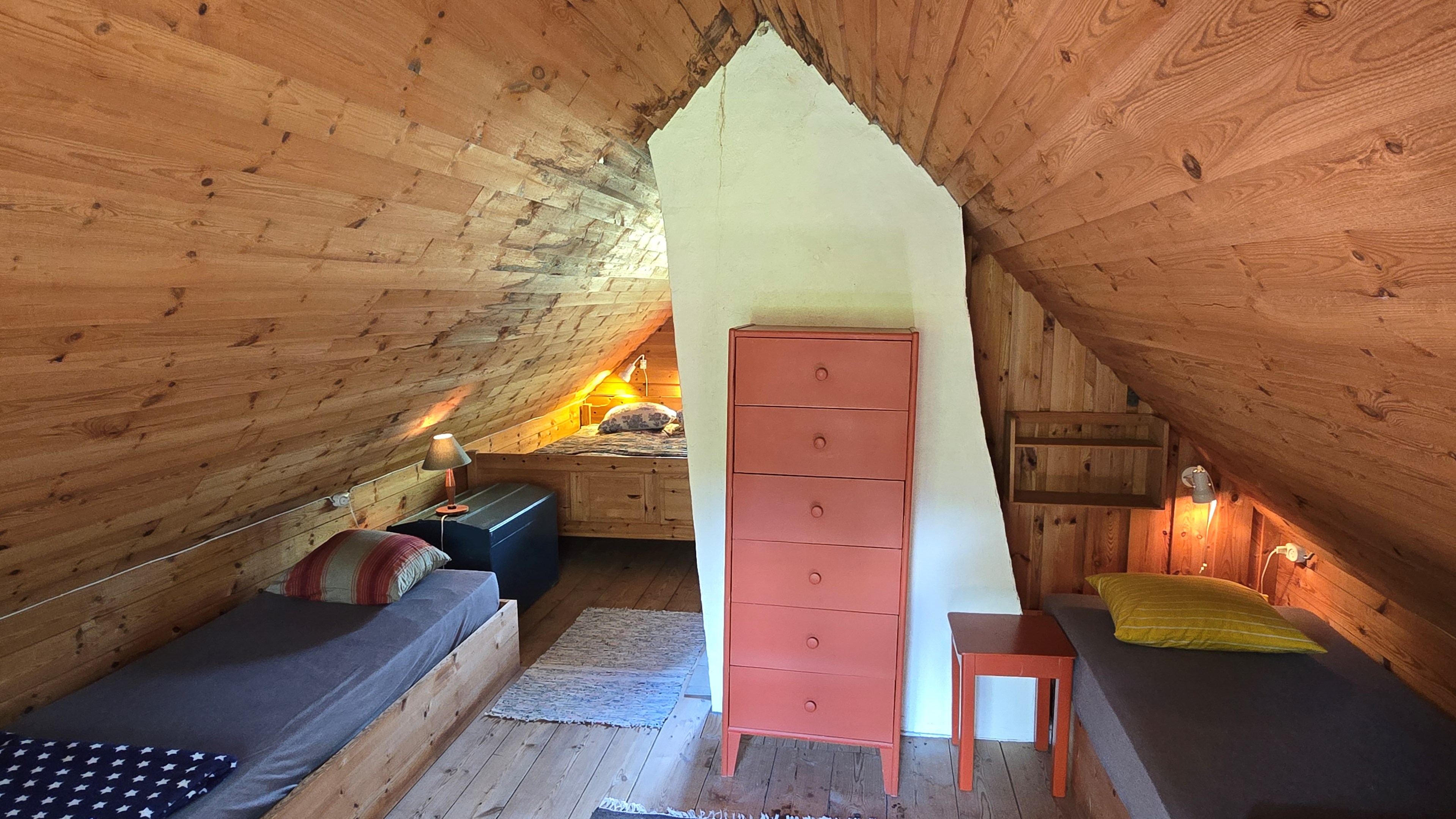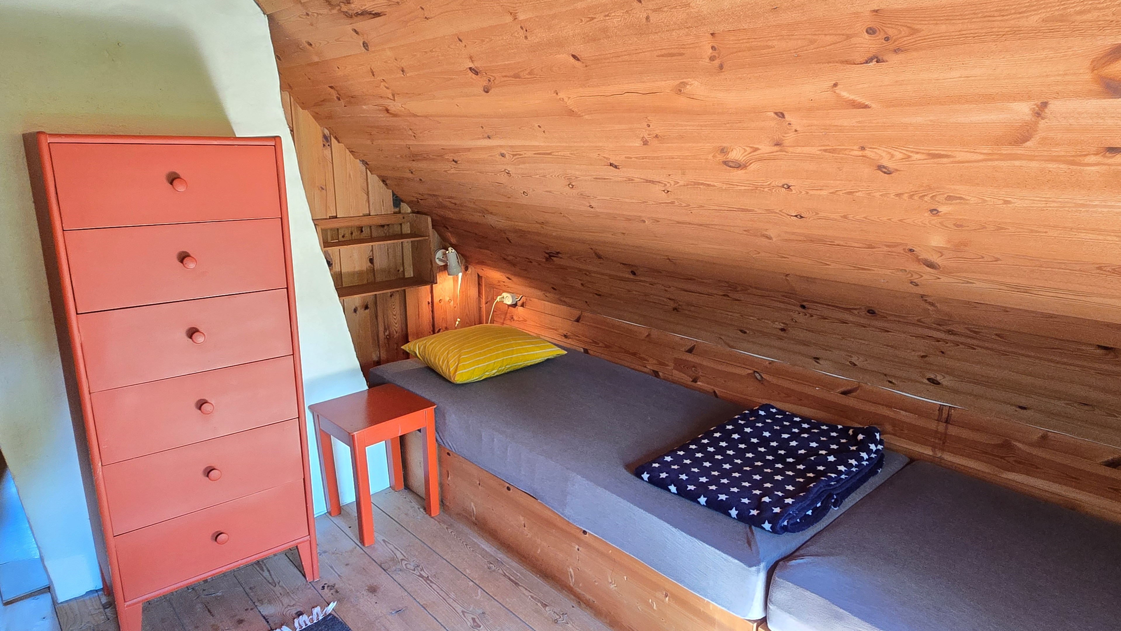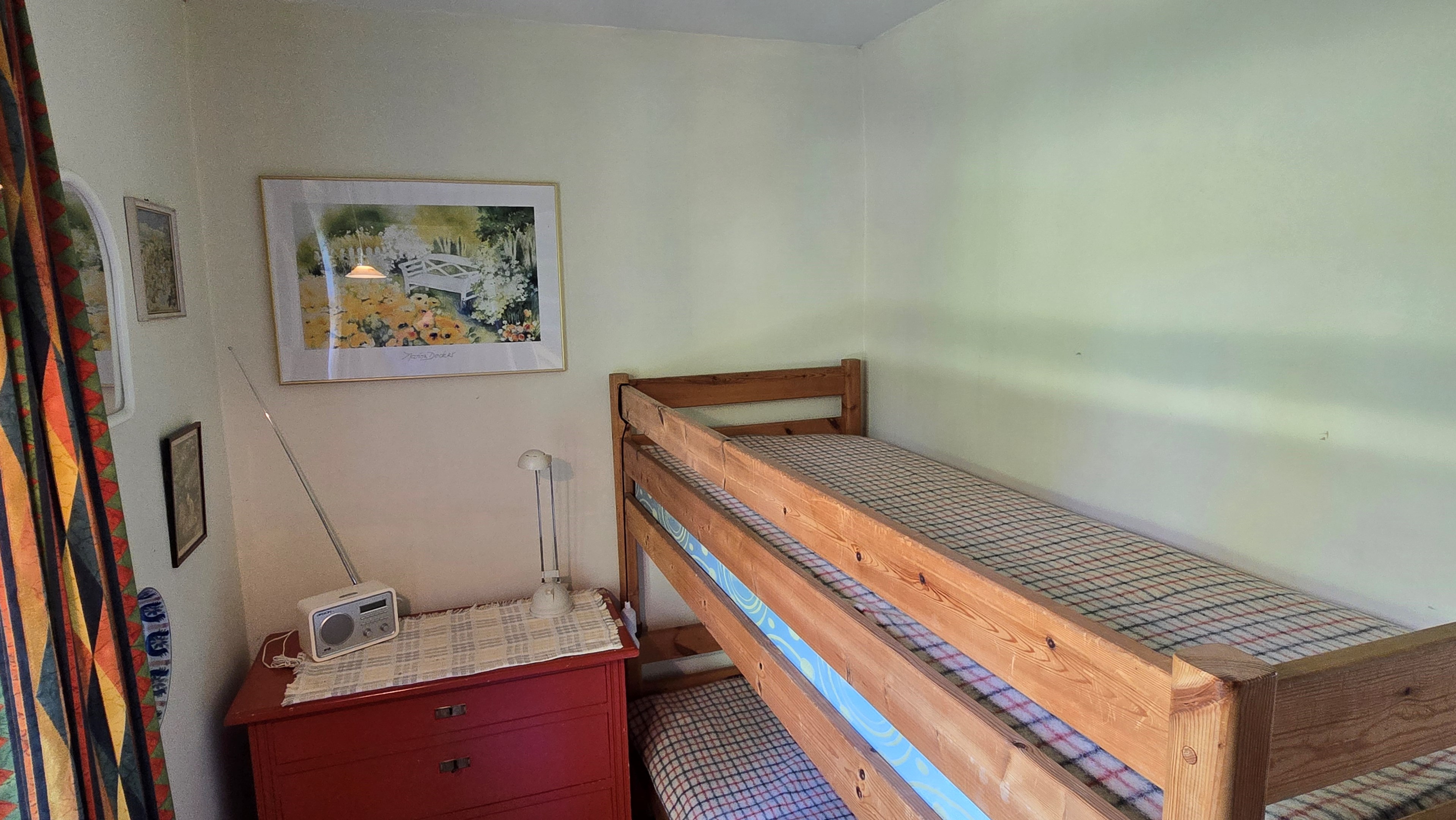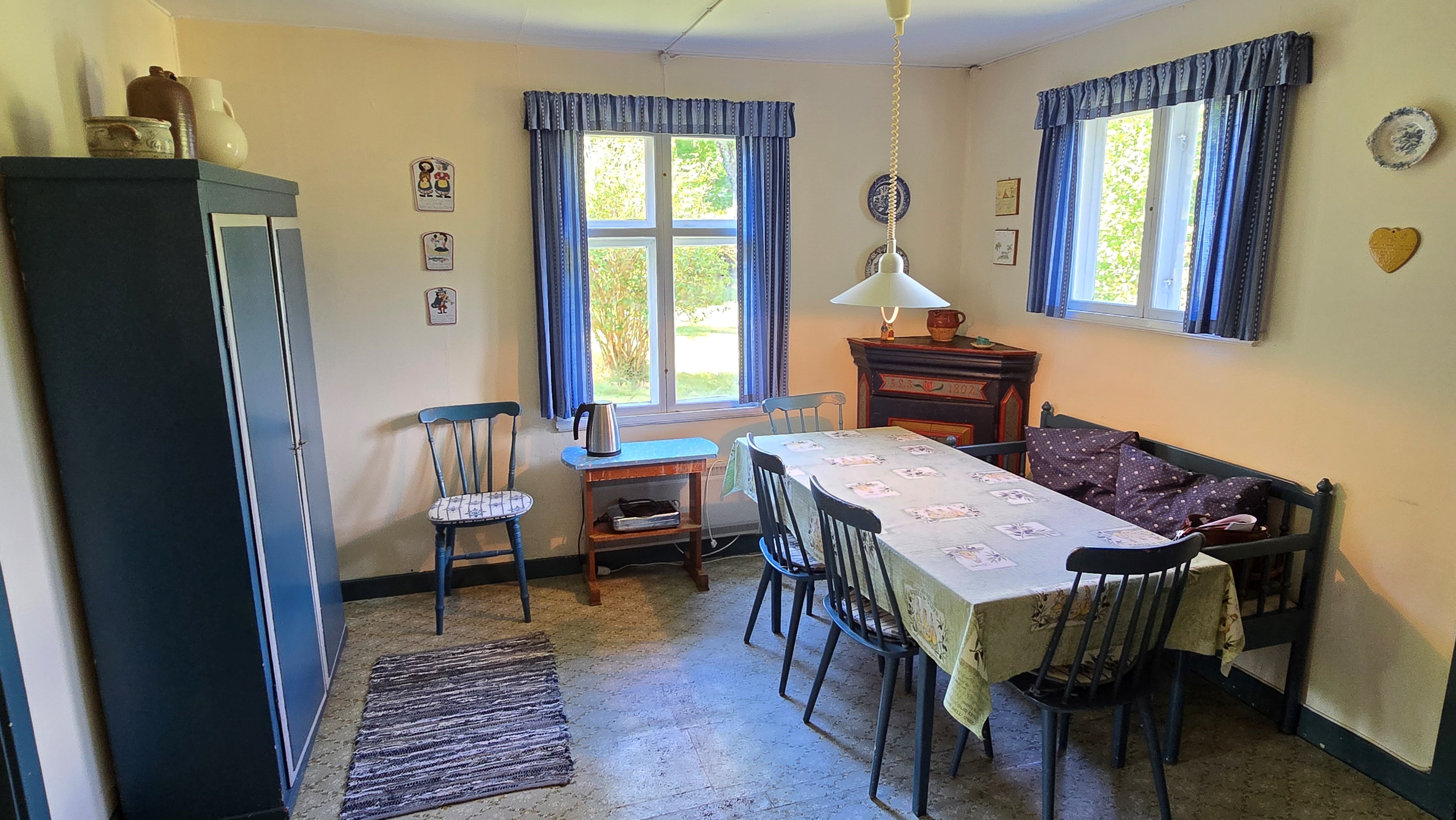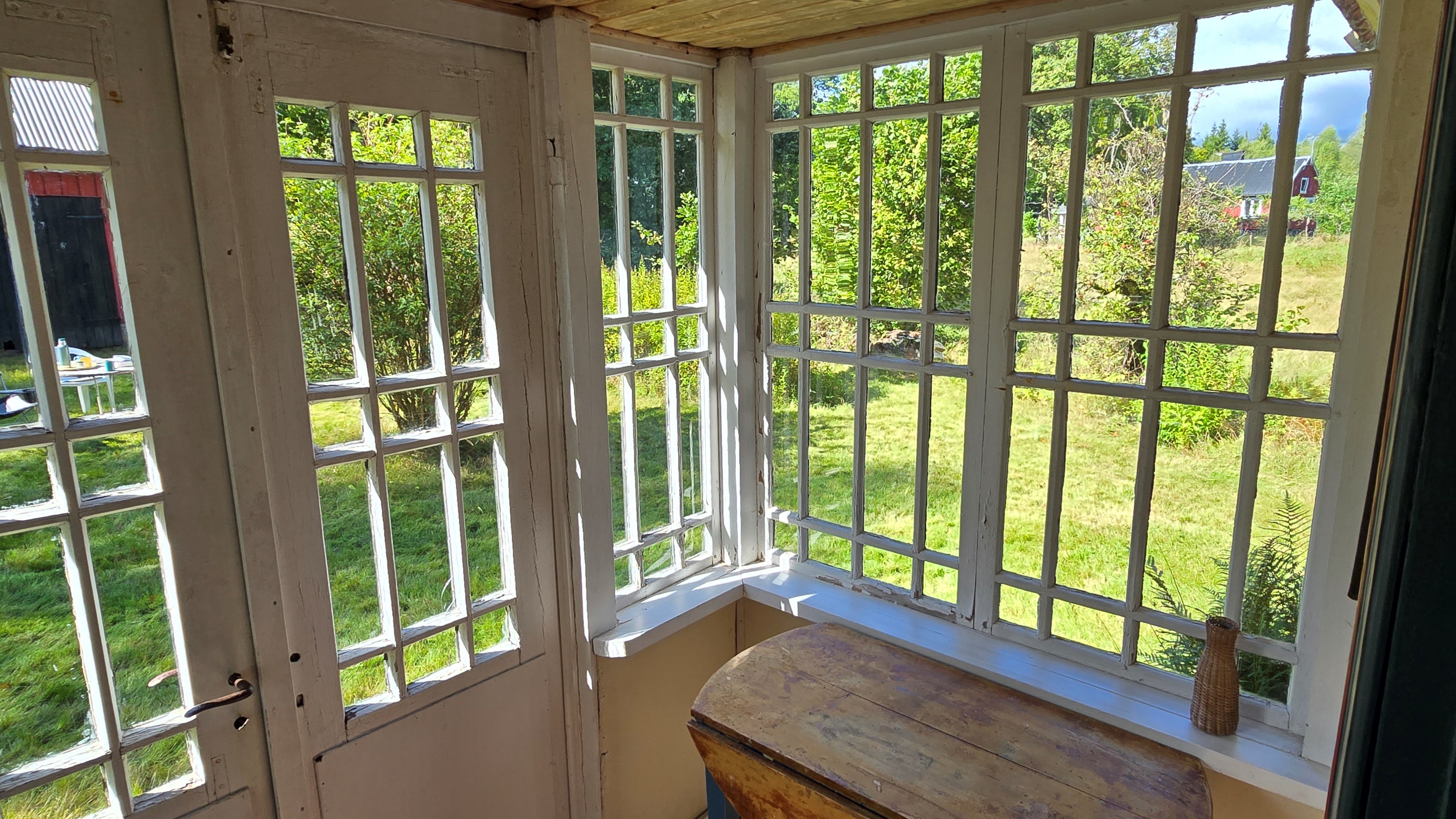Torp från 1908 på ca 72 m2 + källare och uthus på ca 20 m2. Enkel standard, el indraget men ej vatten. Utedass. 1 545 m2 naturskön och enslig tomt, omgiven av ängar och blandad skog. 6 km till Lagan och 13 km till Össjöasön. 100 km från Helsingborg. Filmvisning: https://youtu.be/IXhzmSxTAjY Hässlehult 3254 vid Markaryd är ett mysigt torp från 1908 på ca 72 m2 boyta + ca 20 m2 i källaren där det finns gammal bakugn och vedspis (ej i bruk). Huset har varit i samma danska familjs ägo sedan 1964 och har en gång varit på framsidan av tidningen Bo Bedre. Huset är i grundläggande gott skick, men har en enkel standard utan indraget vatten eller badrum. Utedass finns i uthuset. El finns indraget med äldre installationer och det finns grävd brunn på tomten, där man hämtar vatten med spann. Brunnen kan sina på hösten och då hämtas vatten hos grannen. På taket ligger gamla tegelpannor, men undertaket har varit bytt en gång och de gamla pannorna återanvändes. Otäthet fanns förr omkring skorstenen, men detta har åtgärdats med ny plåt omkring skorstenen, så det som syns på övervåningen är endast kosmetiskt. Hängrännor saknas delvist och borde monteras. Fönster är enkelglas med innerfönster i bottenvåningen (ett par glas har sprickor) och på övervåningen är det kopplade dubbelglas från omkring 1965 när övervåningen inreddes. Värme från enstaka direktverkande element och därutöver en effektiv Jøtul braskamin i vardagsrummet (godkänd). Det finns även vedspis i köket och en braskamin på övervåningen, som inte är i bruk, ut över vedspisen och bakugnen i källaren, som heller inte är i bruk. Huset består av köksingång i tillbyggnad med plastmatta på golvet, pärlspont på väggarna, plank i taket och säkringsskåp. Rymligt kök med linoleum på golvet (trä under), mjuk masonit i taket (trä bakom), matplats, skåp och emaljerad vedspis. Liten hall med trappa till övervåningen och lucka i golvet till källaren. Ytterligare köksrum med plastmatta på golvet, diskbänk (ej vatten, avlopp till skogen eller enkel stenkista), elspis med två plattor, kyl/frys och inbyggda skåp. I detta rum kunde man ev. inreda badrum i framtiden, om man önskar. Vardagsrum med trägolv, mjuk masonit i taket, bäddsoffa, Jøtul braskamin och utgång till trädgården via den mysiga glasverandan. Sovrum med trägolv och våningssäng. På övervåningen finns ett stort rum, som delas i två sektionen av skorstenen. Trägolv och träpanel på väggar och tak. I sektionen närmast trappan finns dubbelsäng, garderob och en emaljerad Husqvarna braskamin (ej i bruk). I den andra sektionen finns det fyra platsbyggda enkelsängar längs med väggarna. De flesta möbler och annat lösöre kan köpas till eller medfölja, enl. önskemål och avtal med säljarna. Ut över huset finns ett uthus på ca. 20 m2 + vind till lagring. Uthuset har bra plåttak och ett rum till vedlager, ett rum till lagring av redskap och maskiner och ett trippel utedass. 1 545 m2 (friköpt) trädgård och naturtomt, omgiven av gräsängar och blandad skog, med fina stengärdsgårdar i tomtgränsen och inne på tomten. Vacker utsikt över ängarna och vägen hit är en liten otrafikerad grusväg, som slutar en kort bit förbi huset, där det enda grannhuset ligger. Grannhuset är inte bebott, utan ägs av de som äger den stora gården i området. Huset sköts och gräset klipps, men används i övrigt sparsamt på helgerna och är inte störande på något vis. Ca. 1,5 km. från huset till Vänneån med goda fiskemöjligheter och ca. 6 km. till den stora ån Lagan. Ca. 12 km. till Knäred samhälle med affärer och utomhusbadet Flammabadet samt Prästaskogens naturreservat med vandringsleder och Kvarnfallet i Krokån. Ca. 13 km. till fin barnvänlig badplats i Össjöasjön. Ca. 17 km. till Markaryd samhälle och ca. 20 km. till Skogaby golfklubb. Ca. 23 km. till Mästocka Ljunghed naturreservat och ännu en fin badplats i Björsjön. Ca. 35 km. till Vallåsen Bike-Park och skidbacke på Hallandsås och till Kungsbygget Äventyrspark med zipline och rodelbana sommartid. Ca. 38 km. till havet och Mellbystrand. Ca. 100 km. från Helsingborg och ca. 155 km. från Malmö.