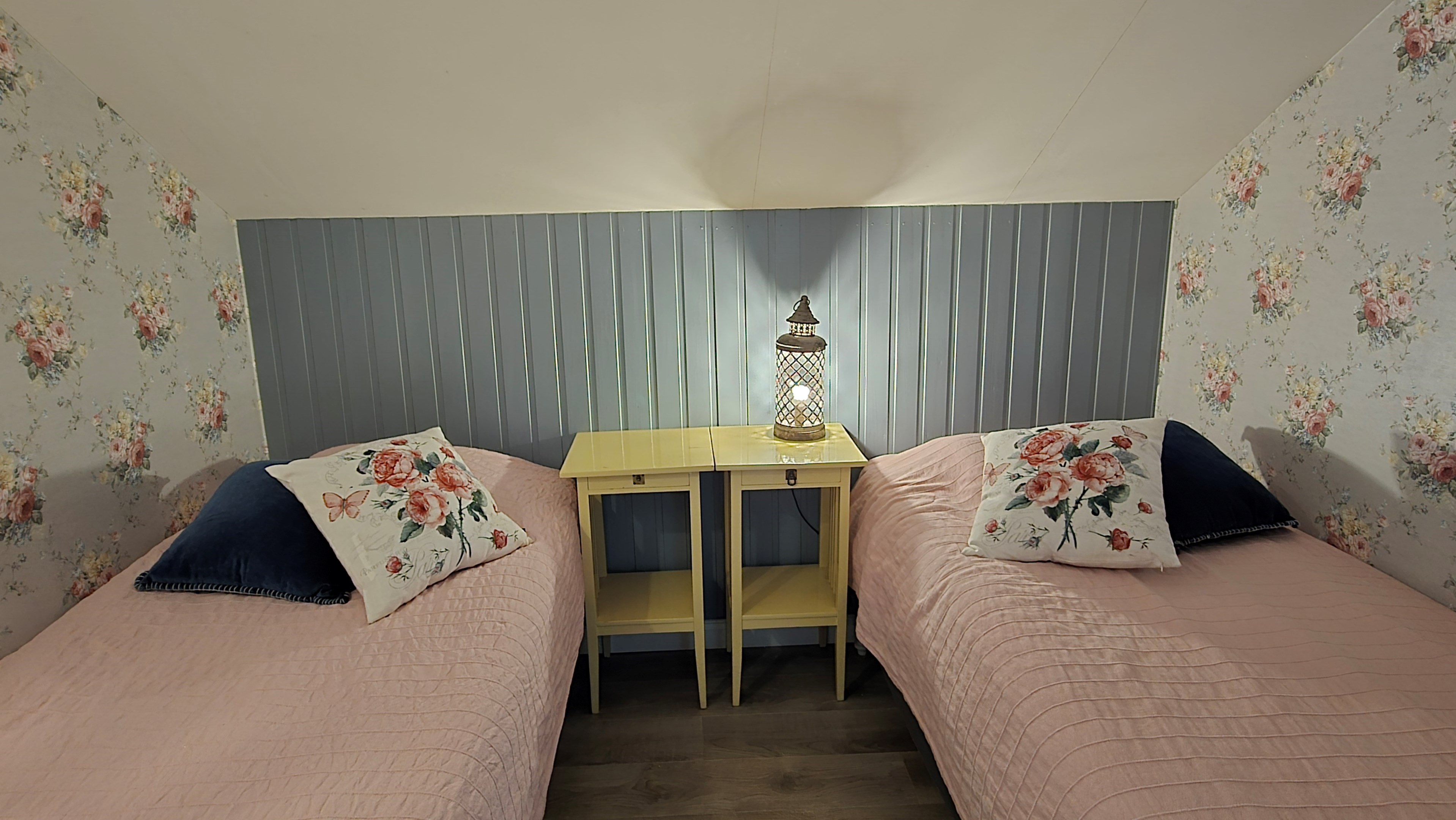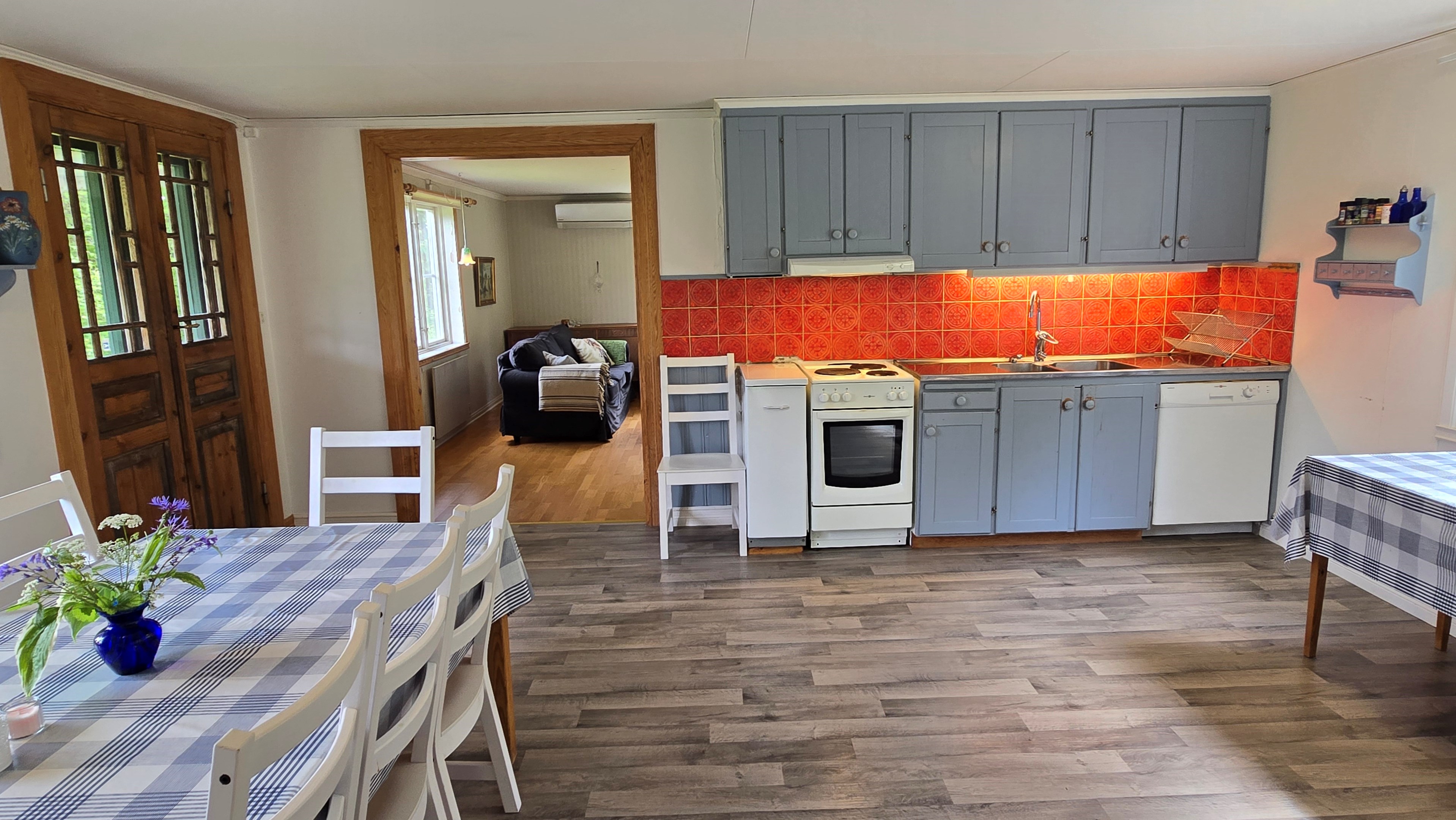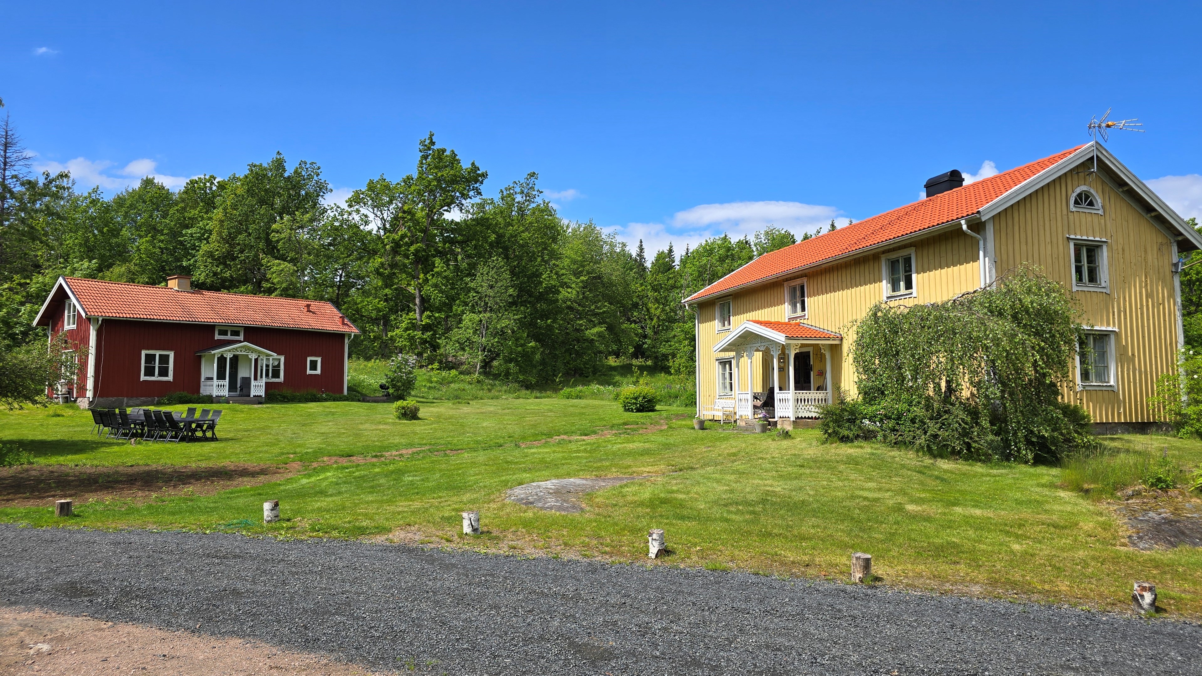 Friliggande mangårdsbyggnad från omkring 1880, som varit i samma släkt i 12 generationer! "Melkers hus" är ca 121 m² och i två våningar men nyrenoverad övervåning. Huset är i gott skick med luftvärmepump, eldstäder och kompletterande elvärme. En del målning behövs. Mycket goda uthyrningsmöjligheter och möjlighet att köpa det enda grannhuset - "Oskars hus" på ca 190 m² med egen friköpt tomt på 3 845 m² - totalt 18 bäddar, om man köper båda husen. Vatten från gemensam borrad brunn och gemensamt godkänt avlopp. Isolerad gäststuga på ca. 9 m² hör till tomten på Melkers hus. Uthus ca 15 m² och vedbod på ca 6 m² hör till Oskars hus. Trädgård och naturtomt med synliga klippor på 4 902 m² med högt, naturskönt och helt ensligt läge i skogen. Ingen genomfart på grusvägen. Ca 1 km. till Kyllås skidbacke och ca 2,5 km till Kyllesjön med vildmarksby man kan hyra. Ca 10 km till badplats vid Långasjön. Ca 210 km från Helsingborg. Filmvisning: https://youtu.be/aMtiCUWBfuI Kyllås Sörgården 2, "Melkers hus", är på ca 121 m² från omkring 1880, men tillbyggt ca. 1950. Huset är i gott skick och nymålat på framsidan, men resten behöver också målas. Övervåningen är helrenoverad. Ny veranda med snickarglädje (2024). Taket är betongpannor från 2013, som reparerades 2024, efter skada från en stor ek (nu fälld), med nya vindskivor och hängrännor i den delen. Fönstren behöver också skrapas och målas och några bör bytas. Utvändig vattenkran med hög kapacitet för att fylla badtunnan. Värme med luftvärmepump, öppen spis och direktverkande elvärme. Vatten från borrad brunn på 70 m och avlopp till trekammarbrunn med infiltration (båda gemensamma med grannhuset). Köksingång till rymlig hall med plastmatta på golvet, gott om avhängningsplats och trappa till övervåningen. Toalett med våtrumsmatta på golvet, WC och handfat. Tvättstuga med våtrumsmatta på golvet, nyare tvättmaskin, 150 liters varmvattenberedare, diskbänk och gott om skåp. Stort lantkök med matplats, plastmatta på golvet, diskbänk, gott om skåp, elspis, smal vedspis (sparspis, ej i bruk för närvarande), diskmaskin och kyl/frys. Utgång vida vacker pardörr till verandan. Vardagsrum med laminatgolv, luftvärmepump och stor öppen spis. Övre plan är nyligen renoverad med lång hall med laminatgolv, mysiga tapeter och extra gästsäng. Badrum med våtrumsmatta på golv och väggar, dusch, WC, handfat, elvärme och mekanisk ventilation. Sovrum med laminatgolv, två enkelsängar och blommiga tapeter. Större sovrum med laminatgolv, dubbelsäng och en öppen spis (ej i bruk, för nära väggen). Litet sovrum med laminatgolv, enkelsäng och gröna tapeter. Stort sovrum med laminatgolv, dubbelsäng och gott om garderober med spjälsäng. En del inventarier kan köpas till eller medfölja, enl. önskemål och avtal med säljaren. Ut över huset finns en isolerad gäststuga på ca 9 m² med elvärme, plastmatta på golvet och våningssäng med dubbelsäng nere och enkelsäng uppe. Gammalt uthus på ca 12 m² med äldre papptak, som behöver bytas. Jordkällare med naturstensvalv. 4 902 m² (friköpt) helt ensligt och högt läge på höglandet, omgiven av blandad lövskog, synliga klippor, öppna gräsytor och ca 300 meter över havet. Ut över "Oskars hus" är närmaste granne ca 250 m bort fågelvägen och näst närmaste ligger 1 km från husen, så här är verkligen tyst och lugnt! Liten grusväg leder upp till fastigheten och det är bom för vägen, så här är ingen genomfart, endast fastighetsägaren och deras gäster har tillträde. Vägförening finns som sköter underhåll och snöröjning och kostnaden är ca 2-3 000 kr/år beroende på snömängd. Ca 1 km. från huset till Kyllås skidbacke med lift och värmestuga, som drivs av en lokal förening. Backen är 450 m. lång och fallhöjd på 75 m. De har snökanoner, så man kan åka skidor varje år och det finns även goda möjligheter för längdåkning. Ca 2,5 km till Kyllesjön med den privata Vildmarksbyn, med vindskydd, pizzaugn, bålplats, badbrygga m.m. Denna kan hyras om man vill, men det går även komma ner till sjön på andra ställen. Det finns möjlighet att avtala om båtplats vid sjön, efter överenskommelse med säljaren. Ca 10 km till kommunal badplats med sandstrand vid Långasjön. Ca 1,2 km till mycket goda vandringsmöjligheter på Höglandsleden. Ca 12 km. till Skillingaryd samhälle med närmaste affärer och ca. 20 km. till Vaggeryd. Ca 20 km till storslagna Store Mosse Nationalpark och ca 30 km. till både Isaberg Mountain Resort och till vilda-västern landet High Chaparral. Ca 55 km. från Jönköping, ca 210 km. från Helsingborg och ca 265 km. från Malmö.