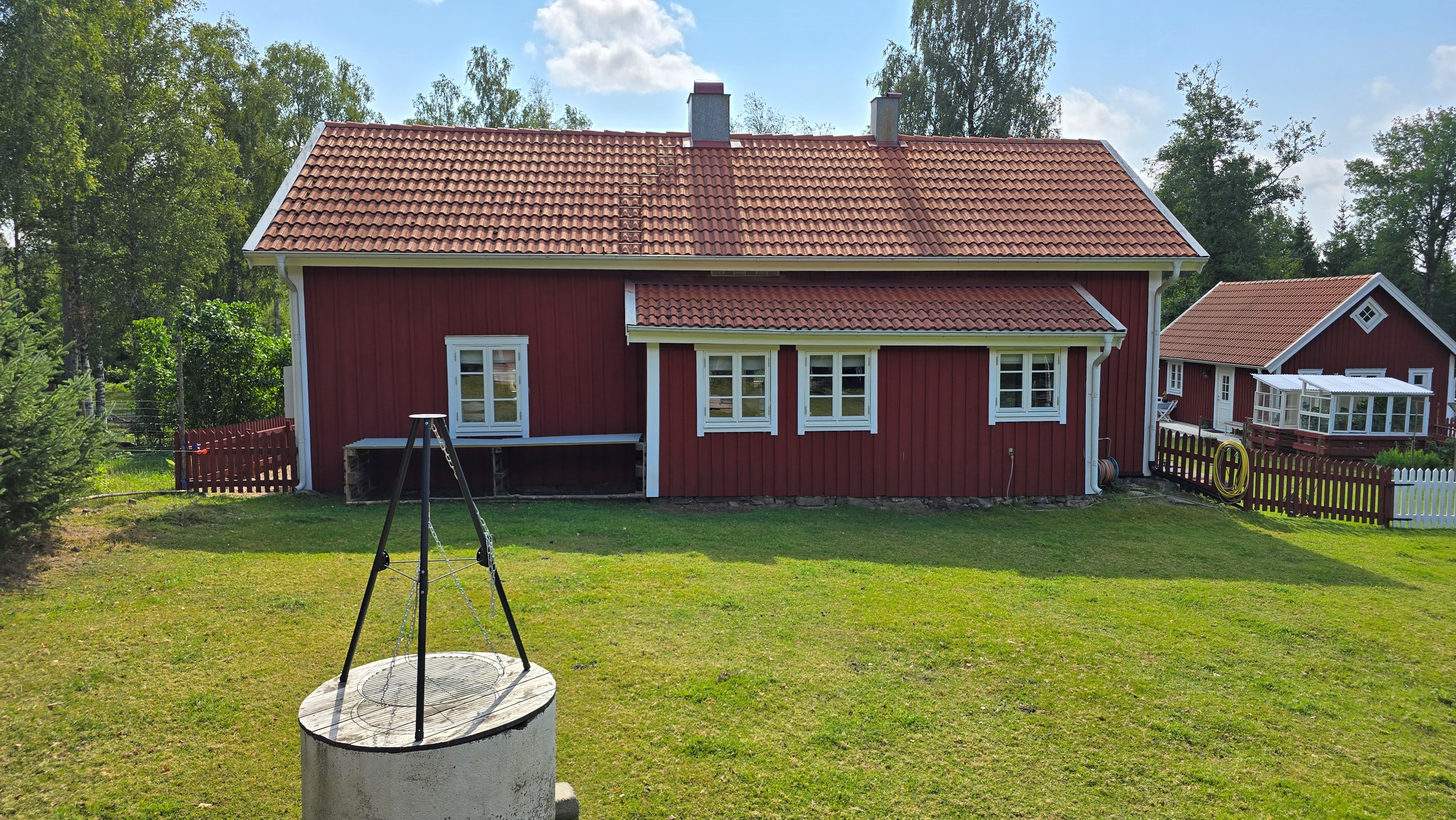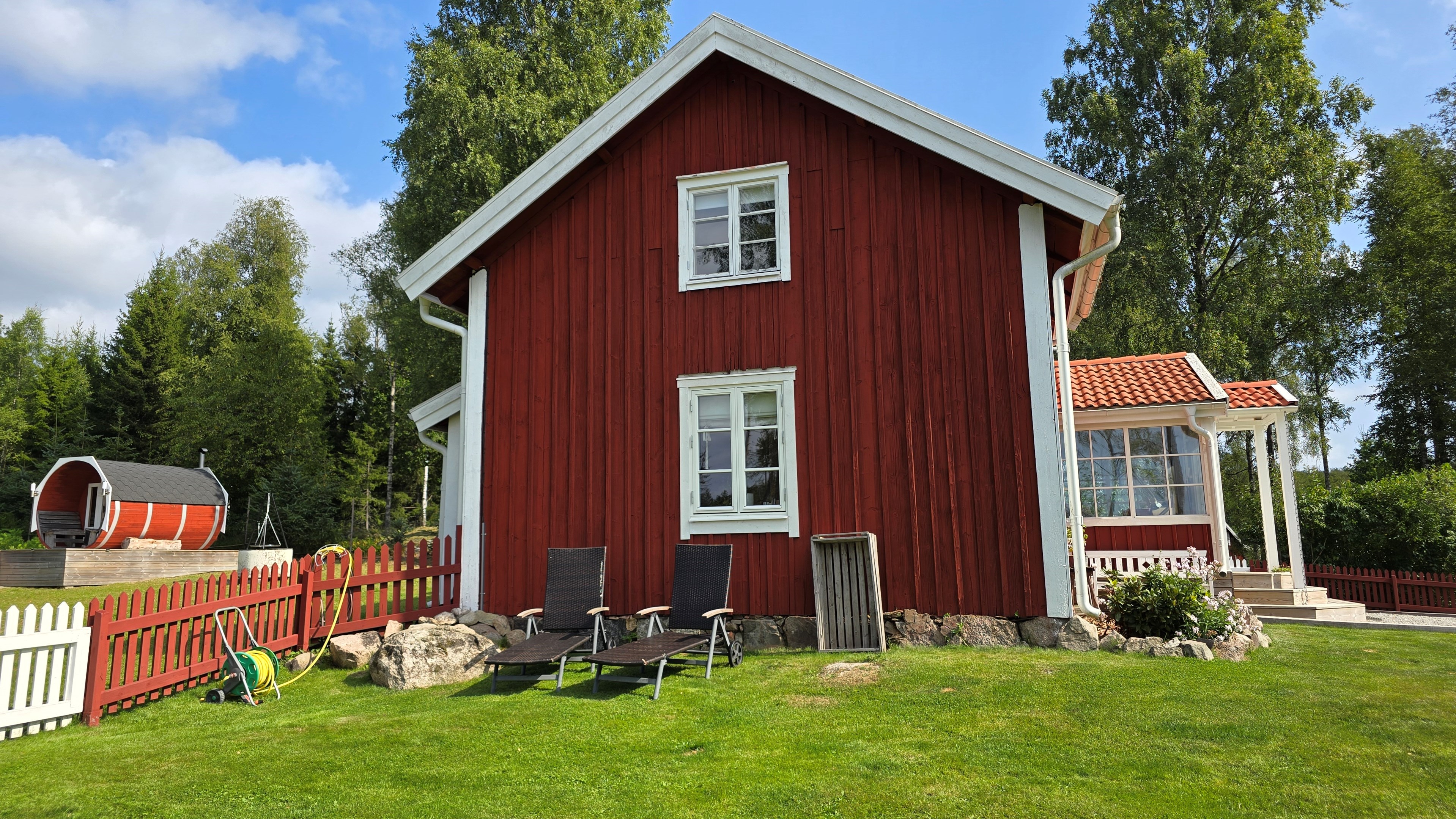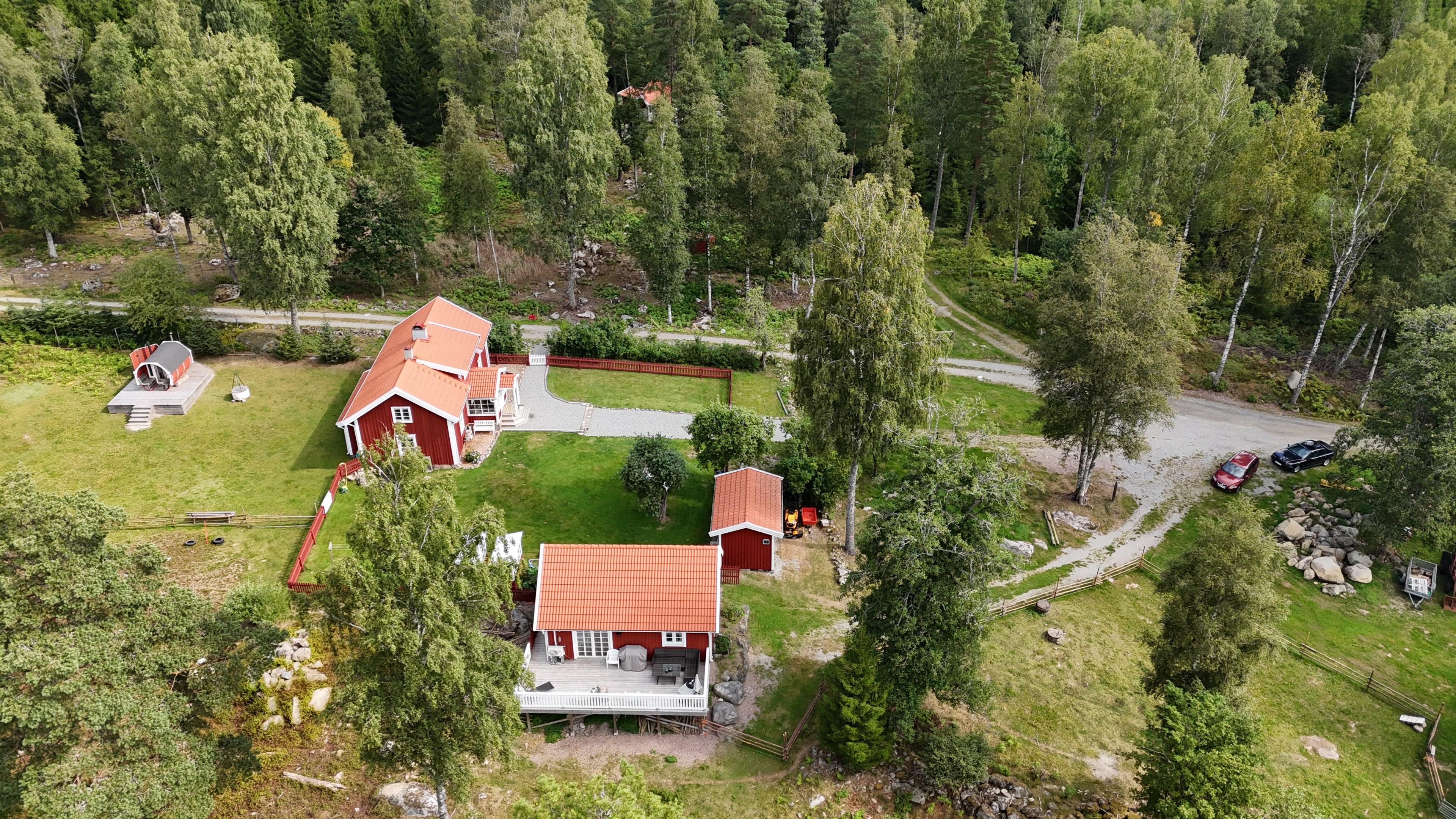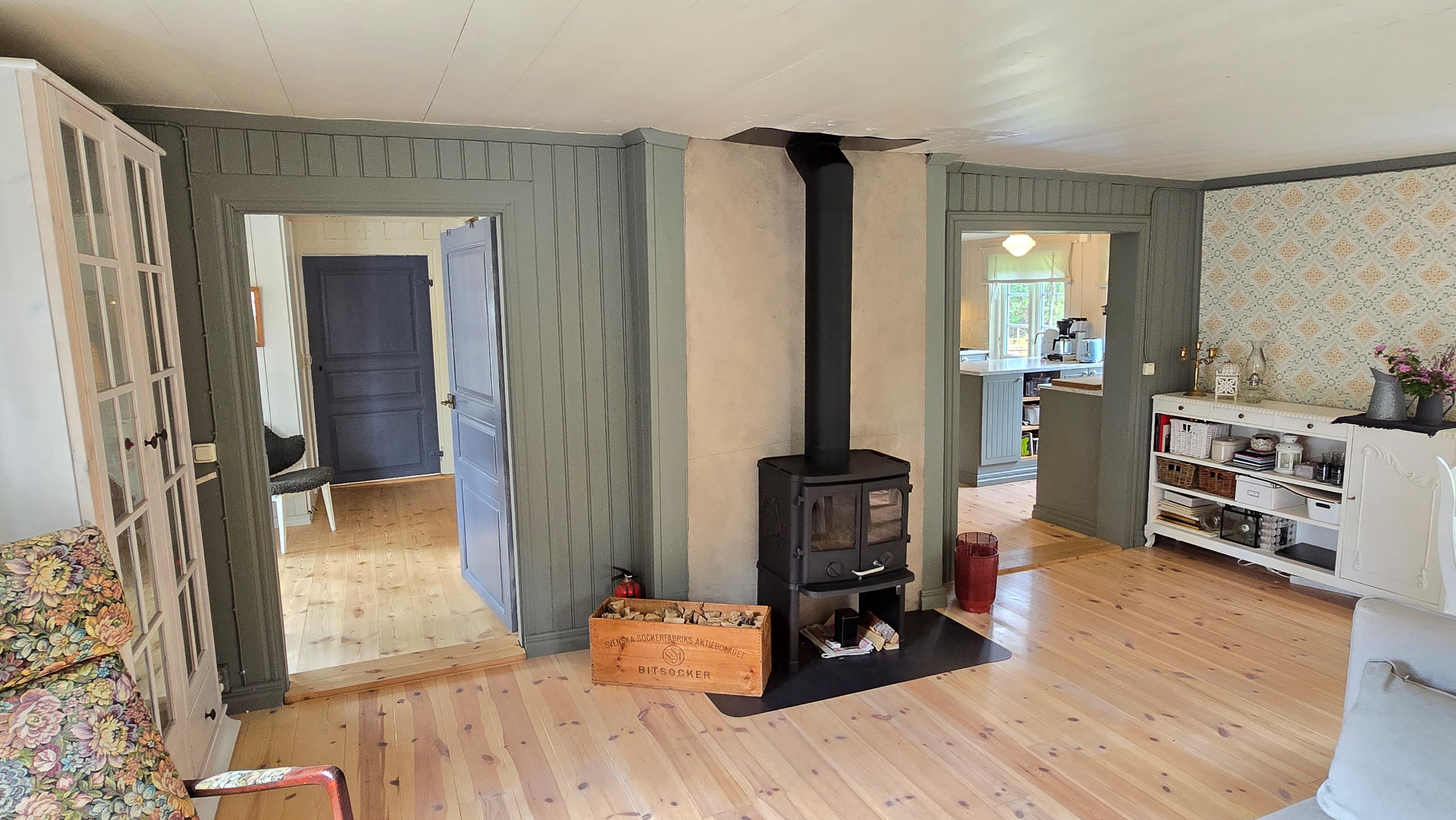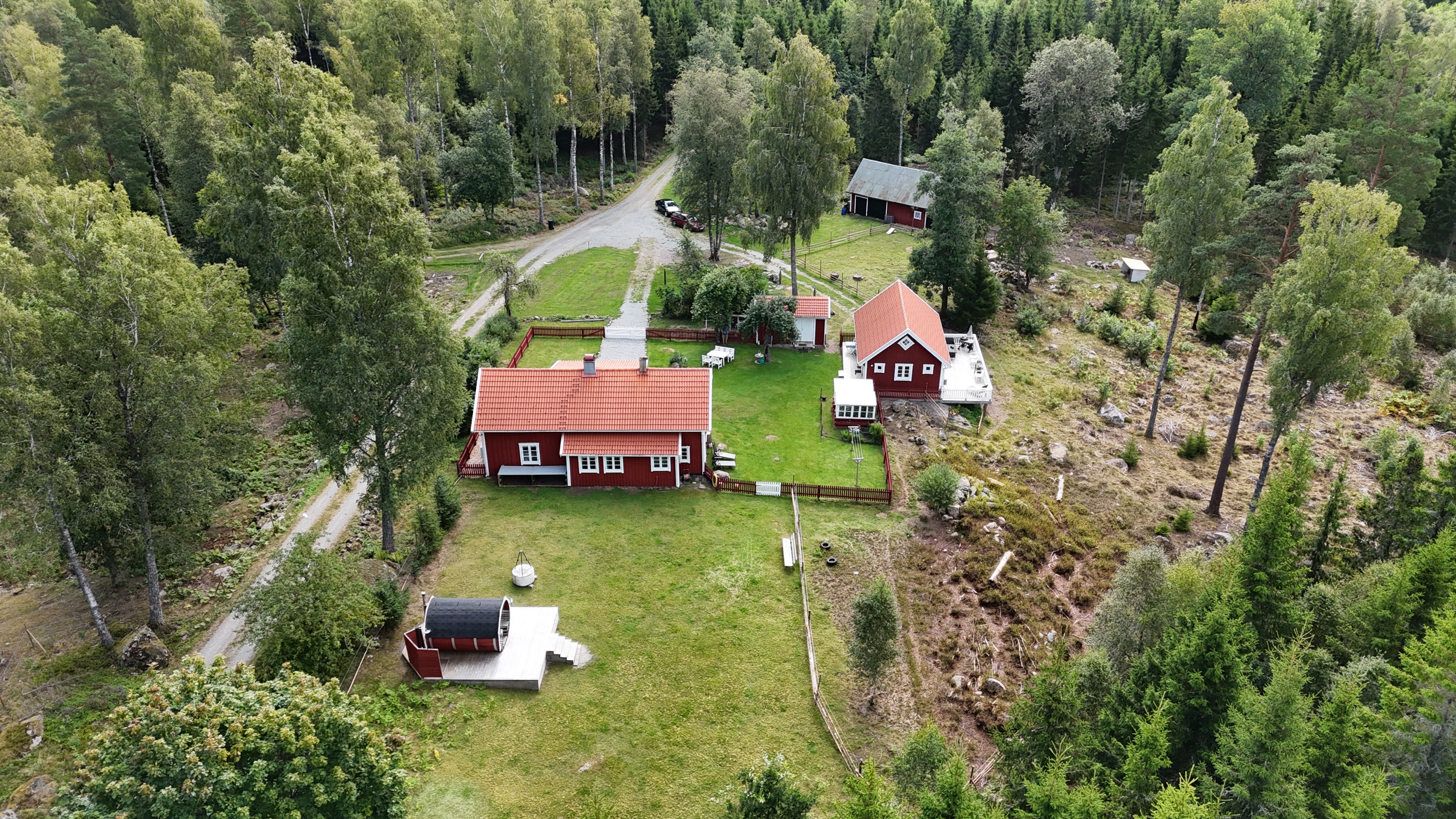 Lammafors är en skogsgård med mangårdsbyggnad från 1850:talet på ca. 125 m2 i mycket fint renoverat skick. Nytt undantag med egen toalett från 2019 på 40 m2 + sovloft på 20 m2 och en stor terrass på 35 m2. Självbärande gästhus i fint skick från 1960 på ca. 75 m2 också med stor terrass på ca. 35 m2, på egen (friköpt) tomt på 650 m2 och utsikt över ån. Gästhuset hyrs ut sommartid med gott resultat. Lada på ca. 75 m2 med tillbyggd hönsgård. Nytt uthus på ca. 12 m2. Vedeldad bastu med utedusch. 5,6 ha tomt med naturskönt och ensligt läge i skogen, genomlöpes av Bodaån. Möjlighet för småviltjakt och enklare djurhållning. 200 km. från Helsingborg. Filmvisning: https://youtu.be/WZXJCZs5Lm8 Lammaskog Lammafors 1 (och Lammaskog 5) vid Vrigstad är en gård med mangårdsbyggnad med anor från mitten på 1800-talet på ca. 125 m2 boyta och i mycket fint renoverat skick. Huset har bl.a. nyare tak med betongpannor (2015), nya isolerglasfönster, nyare elinstallationer, fint målat och tapetserat inne och ute med bevarande av den gamla stilen så långt som möjligt, men ändå med nytt badrum och kök (2022), så huset fungerar även i dagens värld. Helt ny golvkonstruktion under kök och badrum och alla golv i bottenplan är utbytta till breda golvplank. Gamla plankgolv bevarande på övervåningen och i flera tak. Renoverad och godkänd skorsten med rör till varje eldstad (utom bakugn och en kakelugn, som ej är i bruk). Här finns Morsø (2024) braskamin i vardagsrummet, en Jøtul braskamin i biblioteksrum, vedspis i köket och en öppen spis med insats på övervåningen. Därutöver finns Daikin luftvärmepump (2024). Tillbyggd och nu helt isolerad och integrerad veranda med isolerglasfönster (2023) och morgonsol. Vatten från borrad brunn på 70 m. (2018) och avlopp till godkänd trekammarbrunn med infiltration (2003). Fiber indraget (2022). Ingång via den inbyggda verandan med trägolv, pärlspont på väggar och i tak och en synlig timmervägg. Hall med trappa till övervåningen, säkringsskåp och trägolv. Stort vardagsrum med trägolv och i gamla plank i taket, effektiv Morsø braskamin och Daikin luftvärmepump. Nytt mysigt lantkök med trägolv pärlspont på väggar och tak, diskbänk, köksö, elspis med induktion, spisfläkt, mikro, diskmaskin, kyl/frys (med kallvatten/is), skafferi och den gamla eldstaden med vedspis och bakugn. Bibliotek, TV-rum eller extra sovrum med nytt trägolv, plank i taket och en effektiv Jøtul braskamin. Nytt badrum med plastmatta på golvet (ej våtrum) med diskbänk, tvättmaskin, torktumlare och duschkabin. Lucka i golvet med vatteninstallationer i torrt källarrum. Separat rum för WC och handfat. På övervåningen finns trapphall med lägre takhöjd (ca. 1,80 m.) med målat plankgolv. Sovrum 1 i kupan med trägolv, träpanel i tak, enkelsäng och brun porslinskakelugn (ej i funktion). Nyare sovrum 2 som är inrett upp i nocken med nya breda golvplank, träpanel i tak, bäddsoffa, enkelsäng och öppens spis med insats (godkänd). Sovrum 3 inrett upp nocken med nya breda golvplank, dubbelsäng och synlig timmervägg. Takhöjden i bottenvåningen är ca. 2,20 m. lite variabelt och lägre dörrar. En del möbler och andra inventarier kan köpas till eller medfölja, enl. önskemål och avtal med säljaren. Bredvid huvudhuset finns ett nybyggt (2019) gästhus som säljarna kallar "undantaget" på ca. 40 m2 + ca. 20 m2 inrett sovloft med låg takhöjd. Här finns också en stor terrass på ca. 35 m2 i sydväst läge med massor av sol hela dagen. Undantaget består av ett stort vardagsrum som är inrett upp i nocken med stor dubbel terrassdörr som ger fint ljusinsläpp och vacker utsikt. Stege leder upp till sovloftet. Toalett med WC och handfat (ej dusch). Två separata sovrum med var sin dubbelsäng, bröstpanel på väggarna och slipbart trälaminat på golvet. Ny luftvärmepump (2024). Härutöver finns även ett mindre hus på ca. 75 m2 som ligger på sin egen tomt, men i direkt anslutning till huvudfastigheten och ca. 100 m. fågelvägen från huvudhuset till gästhuset. Huset är byggt ca. 1960 och är likaledes genomgripande renoverat och i fint skick med samma stil som det stora huset. Bra betongpannor på taket. Enkelglasfönster med innerfönster. Här finns hall med trappa till övervåningen och säkringsskåp. Vardagsrum med trägolv, matplats, bäddsoffa, öppen spis med insats och ny luftvärmepump (2024). Kök med trägolv, liten matplats, diskbänk, kyl/frys, diskmaskin, elspis med spisfläkt och utgång till ca. 35 m2 stor terrass som har utsikt över Bodaån, som rinner precis nedanför huset. Hall med garderober, klinkergolv, säkringsskåp och larm till den slutna tanken (avlopp). Egen vattenbrunn som ej har sinat. Rejält badrum med klinkergolv, WC, handfat, dusch och tvättmaskin. På övervåningen finns liten trapphall med trägolv, pärlspont i taket och inbyggda garderober. Sovrum med trägolv, pärlspont i taket och två bäddsoffor. Allt säljs samlat som utgångspunkt, men om man vill kan man senare välja att sälja av det lilla huset med sin tomt på 650 m2, då den redan är avstyckad och utgör en självständig fastighet. Huset är också mycket lämpligt att använda till uthyrning, om man inte behöver platsen själv. Nuvarande ägare hyr ut huset ca. 2 månader sommartid för ca. 70 000 kr totalt via AirBnB. Man skulle lätt kunna hyra ut huset mer om man vill. Ut över bostadshusen finns en ladugård med plåttak på ca. 75 m2 med gott om plats för lagring. Ny elcentral i ladan och här finns rum för ved, lagring, litet stall till får och en tillbyggd utvändig hönsgård. Därutöver finns nyare (2019) oisolerat uthus i anslutning till undantaget på ca. 12 m2 med plats för ved och redskap. Slutligen finns även ett fristående bastuhus (2019) som är vedeldat och med sin egen lilla terrass och en utvändig dusch, som värms av solen. 56 200 m2 (ca. 5,6 hektar eller 11 tun