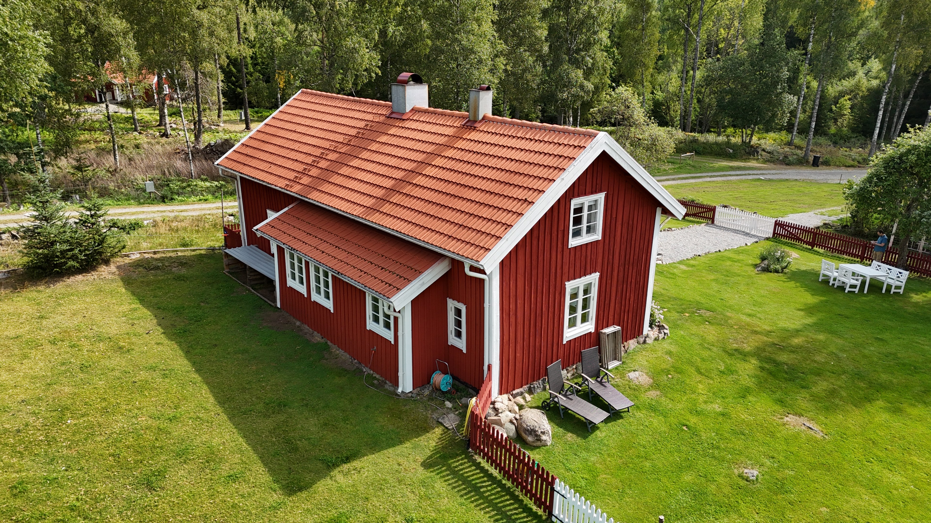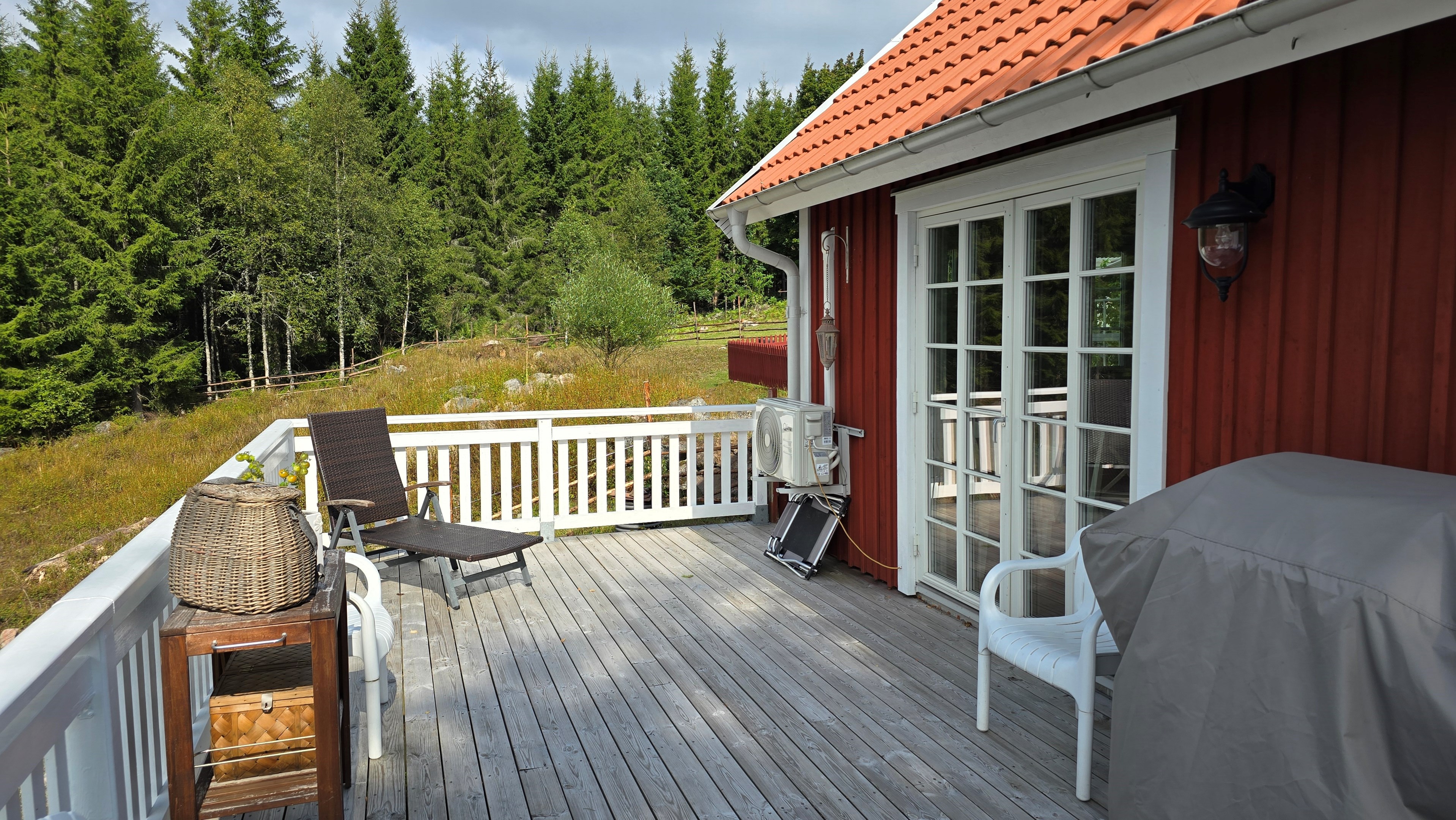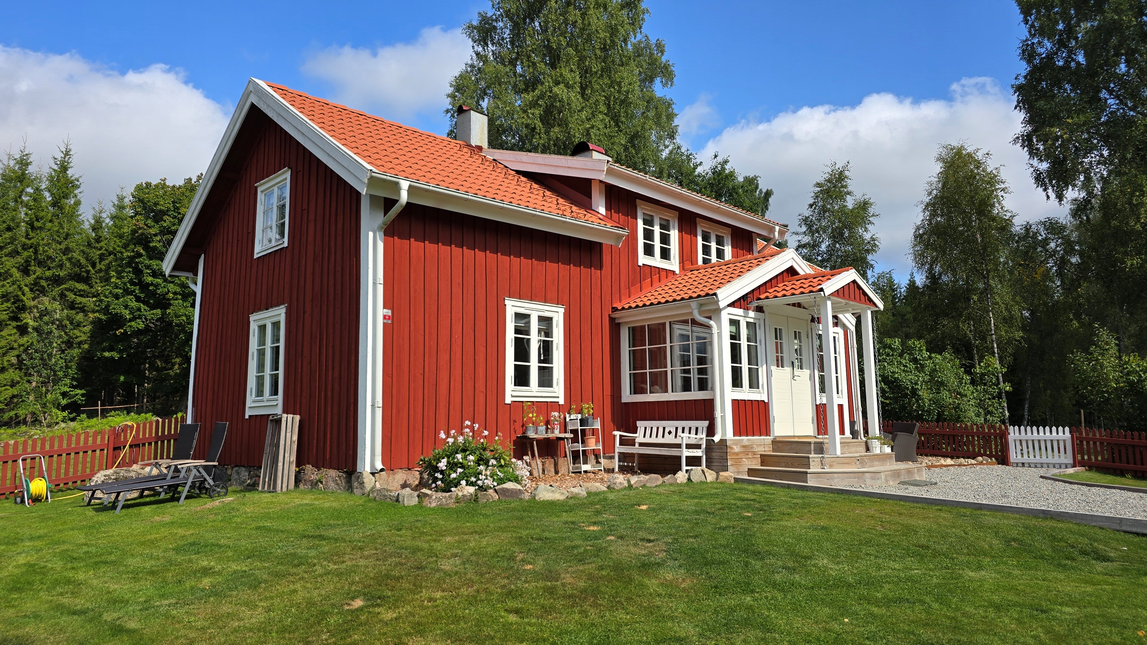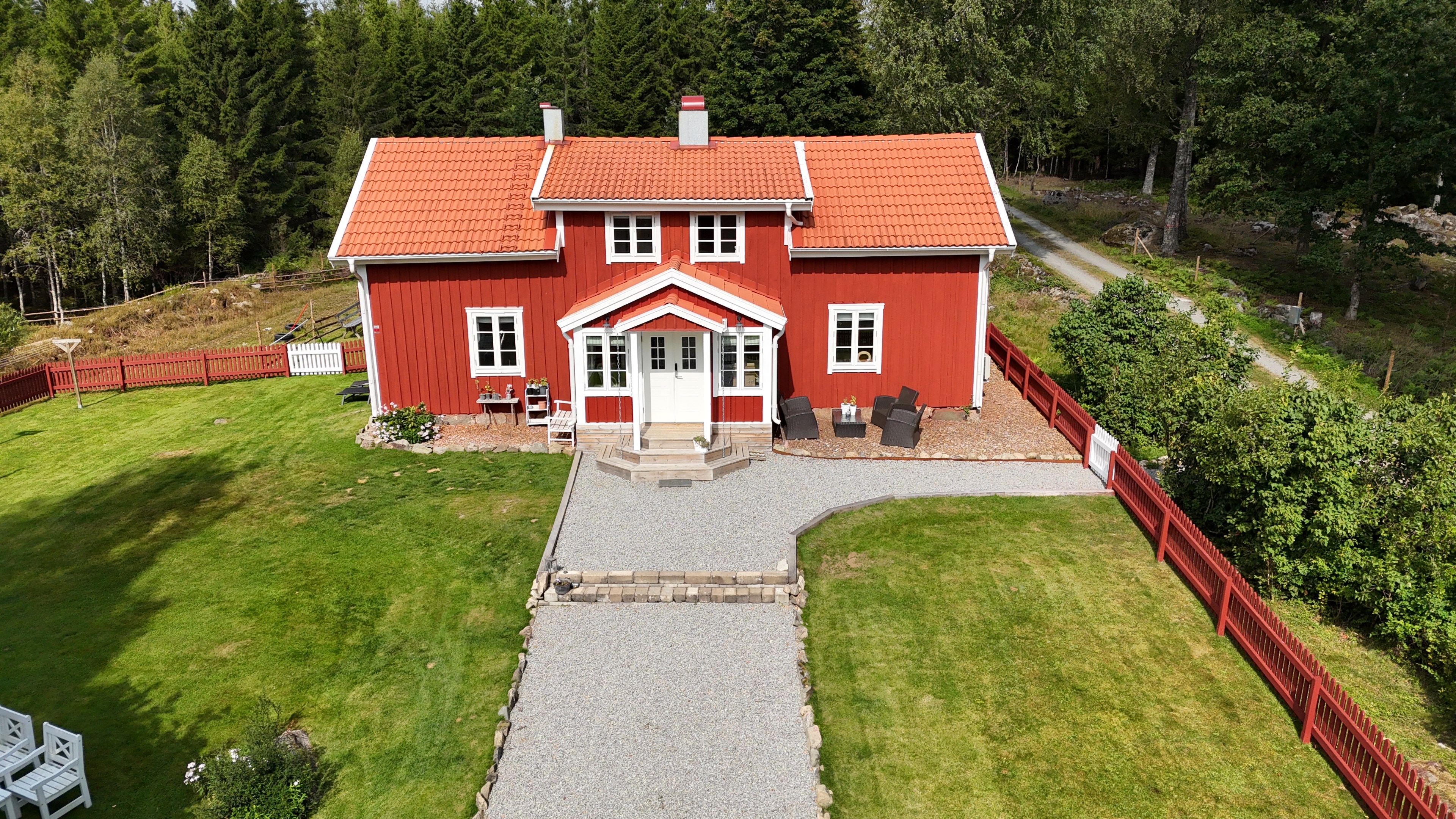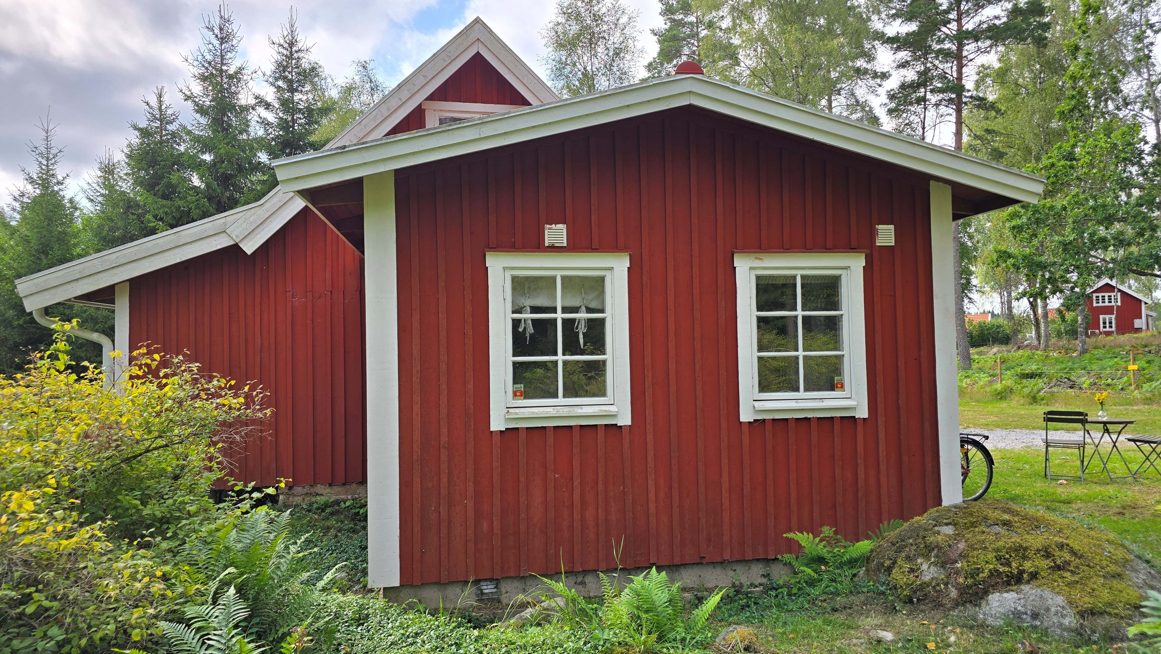 Lammafors är en skogsgård med mangårdsbyggnad från 1850:talet på ca. 125 m2 i mycket fint renoverat skick. Nytt undantag med egen toalett från 2019 på 40 m2 + sovloft på 20 m2 och en stor terrass på 35 m2. Självbärande gästhus i fint skick från 1960 på ca. 75 m2 också med stor terrass på ca. 35 m2, på egen (friköpt) tomt på 650 m2 och utsikt över ån. Gästhuset hyrs ut sommartid med gott resultat. Lada på ca. 75 m2 med tillbyggd hönsgård. Nytt uthus på ca. 12 m2. Vedeldad bastu med utedusch. 5,6 ha tomt med naturskönt och ensligt läge i skogen, genomlöpes av Bodaån. Möjlighet för småviltjakt och enklare djurhållning. 200 km. från Helsingborg. Filmvisning: https://youtu.be/WZXJCZs5Lm8 Lammaskog Lammafors 1 (och Lammaskog 5) vid Vrigstad är en gård med mangårdsbyggnad med anor från mitten på 1800-talet på ca. 125 m2 boyta och i mycket fint renoverat skick. Huset har bl.a. nyare tak med betongpannor (2015), nya isolerglasfönster, nyare elinstallationer, fint målat och tapetserat inne och ute med bevarande av den gamla stilen så långt som möjligt, men ändå med nytt badrum och kök (2022), så huset fungerar även i dagens värld. Helt ny golvkonstruktion under kök och badrum och alla golv i bottenplan är utbytta till breda golvplank. Gamla plankgolv bevarande på övervåningen och i flera tak. Renoverad och godkänd skorsten med rör till varje eldstad (utom bakugn och en kakelugn, som ej är i bruk). Här finns Morsø (2024) braskamin i vardagsrummet, en Jøtul braskamin i biblioteksrum, vedspis i köket och en öppen spis med insats på övervåningen. Därutöver finns Daikin luftvärmepump (2024). Tillbyggd och nu helt isolerad och integrerad veranda med isolerglasfönster (2023) och morgonsol. Vatten från borrad brunn på 70 m. (2018) och avlopp till godkänd trekammarbrunn med infiltration (2003). Fiber indraget (2022). Ingång via den inbyggda verandan med trägolv, pärlspont på väggar och i tak och en synlig timmervägg. Hall med trappa till övervåningen, säkringsskåp och trägolv. Stort vardagsrum med trägolv och i gamla plank i taket, effektiv Morsø braskamin och Daikin luftvärmepump. Nytt mysigt lantkök med trägolv pärlspont på väggar och tak, diskbänk, köksö, elspis med induktion, spisfläkt, mikro, diskmaskin, kyl/frys (med kallvatten/is), skafferi och den gamla eldstaden med vedspis och bakugn. Bibliotek, TV-rum eller extra sovrum med nytt trägolv, plank i taket och en effektiv Jøtul braskamin. Nytt badrum med plastmatta på golvet (ej våtrum) med diskbänk, tvättmaskin, torktumlare och duschkabin. Lucka i golvet med vatteninstallationer i torrt källarrum. Separat rum för WC och handfat. På övervåningen finns trapphall med lägre takhöjd (ca. 1,80 m.) med målat plankgolv. Sovrum 1 i kupan med trägolv, träpanel i tak, enkelsäng och brun porslinskakelugn (ej i funktion). Nyare sovrum 2 som är inrett upp i nocken med nya breda golvplank, träpanel i tak, bäddsoffa, enkelsäng och öppens spis med insats (godkänd). Sovrum 3 inrett upp nocken med nya breda golvplank, dubbelsäng och synlig timmervägg. Takhöjden i bottenvåningen är ca. 2,20 m. lite variabelt och lägre dörrar. En del möbler och andra inventarier kan köpas till eller medfölja, enl. önskemål och avtal med säljaren. Bredvid huvudhuset finns ett nybyggt (2019) gästhus som säljarna kallar "undantaget" på ca. 40 m2 + ca. 20 m2 inrett sovloft med låg takhöjd. Här finns också en stor terrass på ca. 35 m2 i sydväst läge med massor av sol hela dagen. Undantaget består av ett stort vardagsrum som är inrett upp i nocken med stor dubbel terrassdörr som ger fint ljusinsläpp och vacker utsikt. Stege leder upp till sovloftet. Toalett med WC och handfat (ej dusch). Två separata sovrum med var sin dubbelsäng, bröstpanel på väggarna och slipbart trälaminat på golvet. Ny luftvärmepump (2024). Härutöver finns även ett mindre hus på ca. 75 m2 som ligger på sin egen tomt, men i direkt anslutning till huvudfastigheten och ca. 100 m. fågelvägen från huvudhuset till gästhuset. Huset är byggt ca. 1960 och är likaledes genomgripande renoverat och i fint skick med samma stil som det stora huset. Bra betongpannor på taket. Enkelglasfönster med innerfönster. Här finns hall med trappa till övervåningen och säkringsskåp. Vardagsrum med trägolv, matplats, bäddsoffa, öppen spis med insats och ny luftvärmepump (2024). Kök med trägolv, liten matplats, diskbänk, kyl/frys, diskmaskin, elspis med spisfläkt och utgång till ca. 35 m2 stor terrass som har utsikt över Bodaån, som rinner precis nedanför huset. Hall med garderober, klinkergolv, säkringsskåp och larm till den slutna tanken (avlopp). Egen vattenbrunn som ej har sinat. Rejält badrum med klinkergolv, WC, handfat, dusch och tvättmaskin. På övervåningen finns liten trapphall med trägolv, pärlspont i taket och inbyggda garderober. Sovrum med trägolv, pärlspont i taket och två bäddsoffor. Allt säljs samlat som utgångspunkt, men om man vill kan man senare välja att sälja av det lilla huset med sin tomt på 650 m2, då den redan är avstyckad och utgör en självständig fastighet. Huset är också mycket lämpligt att använda till uthyrning, om man inte behöver platsen själv. Nuvarande ägare hyr ut huset ca. 2 månader sommartid för ca. 70 000 kr totalt via AirBnB. Man skulle lätt kunna hyra ut huset mer om man vill. Ut över bostadshusen finns en ladugård med plåttak på ca. 75 m2 med gott om plats för lagring. Ny elcentral i ladan och här finns rum för ved, lagring, litet stall till får och en tillbyggd utvändig hönsgård. Därutöver finns nyare (2019) oisolerat uthus i anslutning till undantaget på ca. 12 m2 med plats för ved och redskap. Slutligen finns även ett fristående bastuhus (2019) som är vedeldat och med sin egen lilla terrass och en utvändig dusch, som värms av solen. 56 200 m2 (ca. 5,6 hektar eller 11 tun