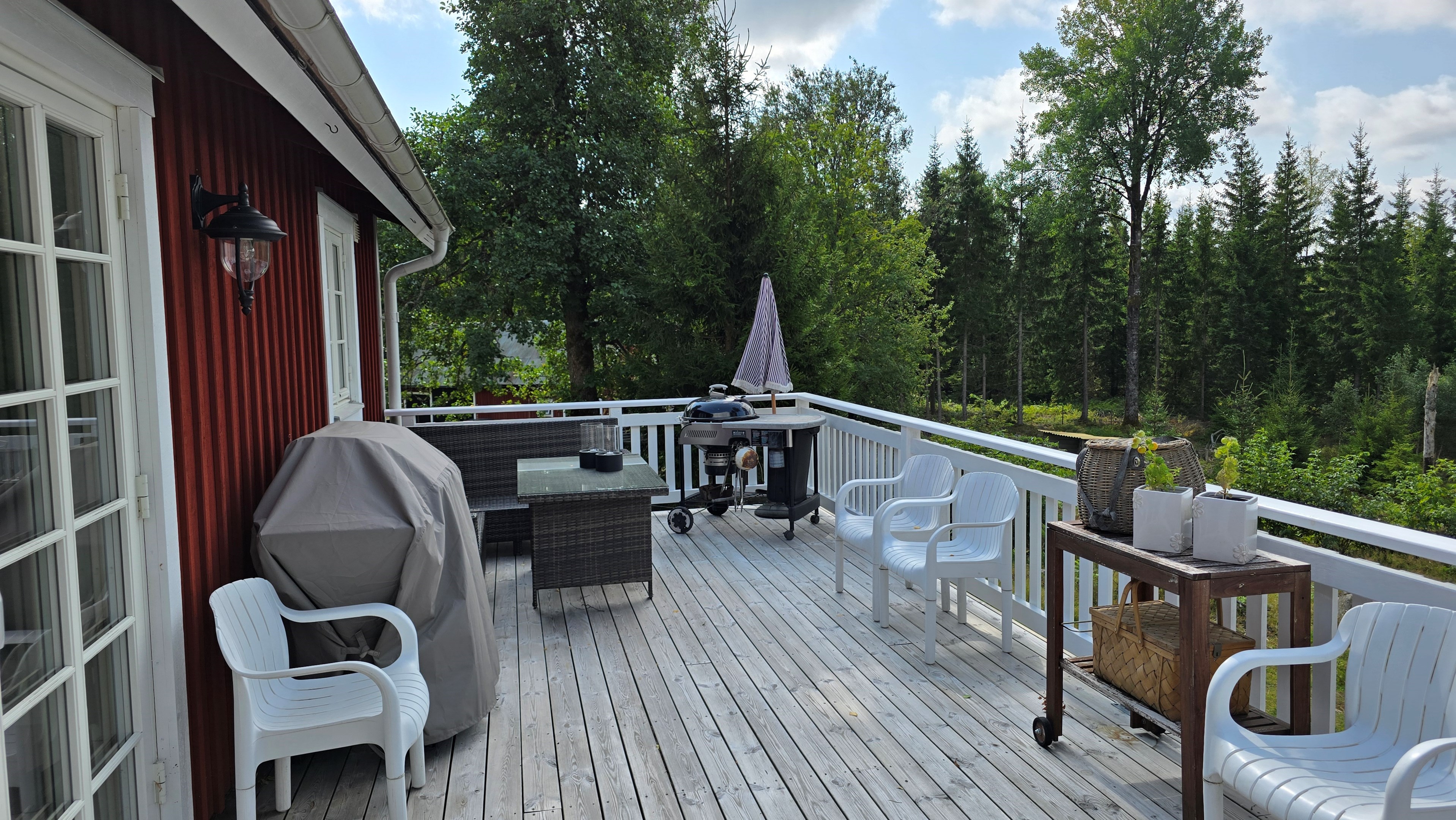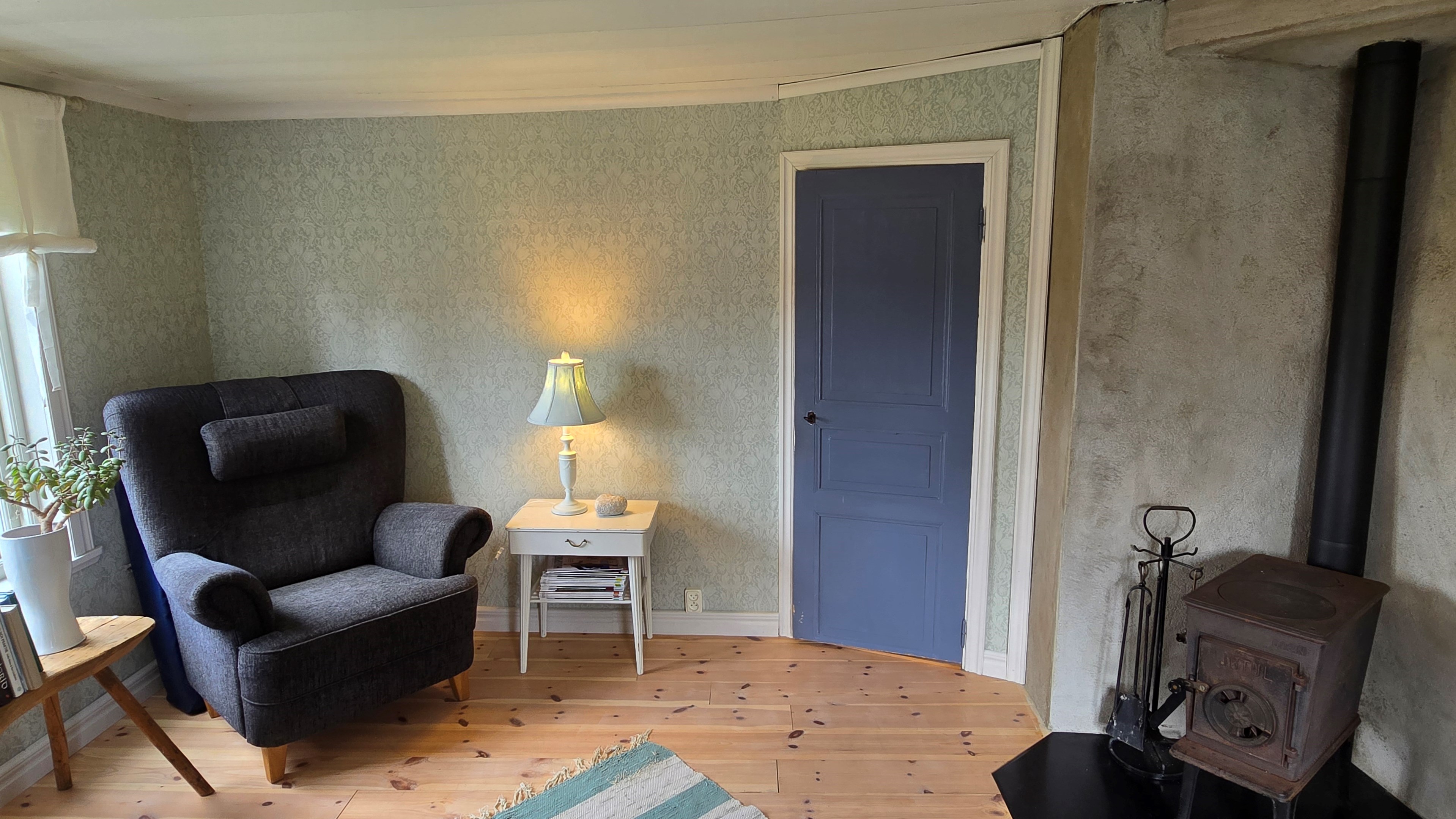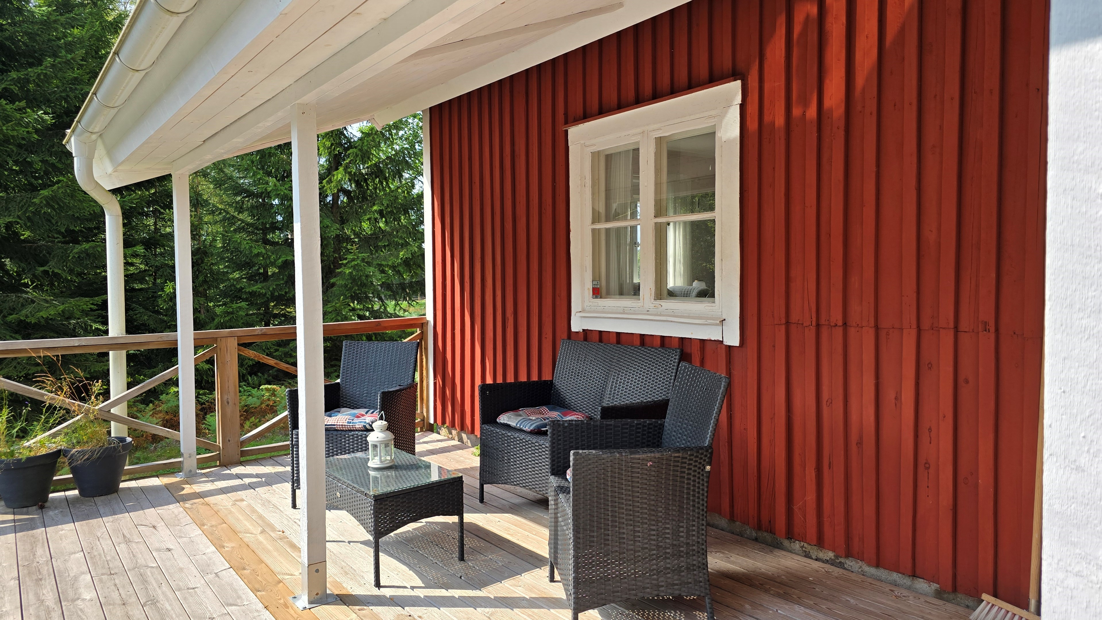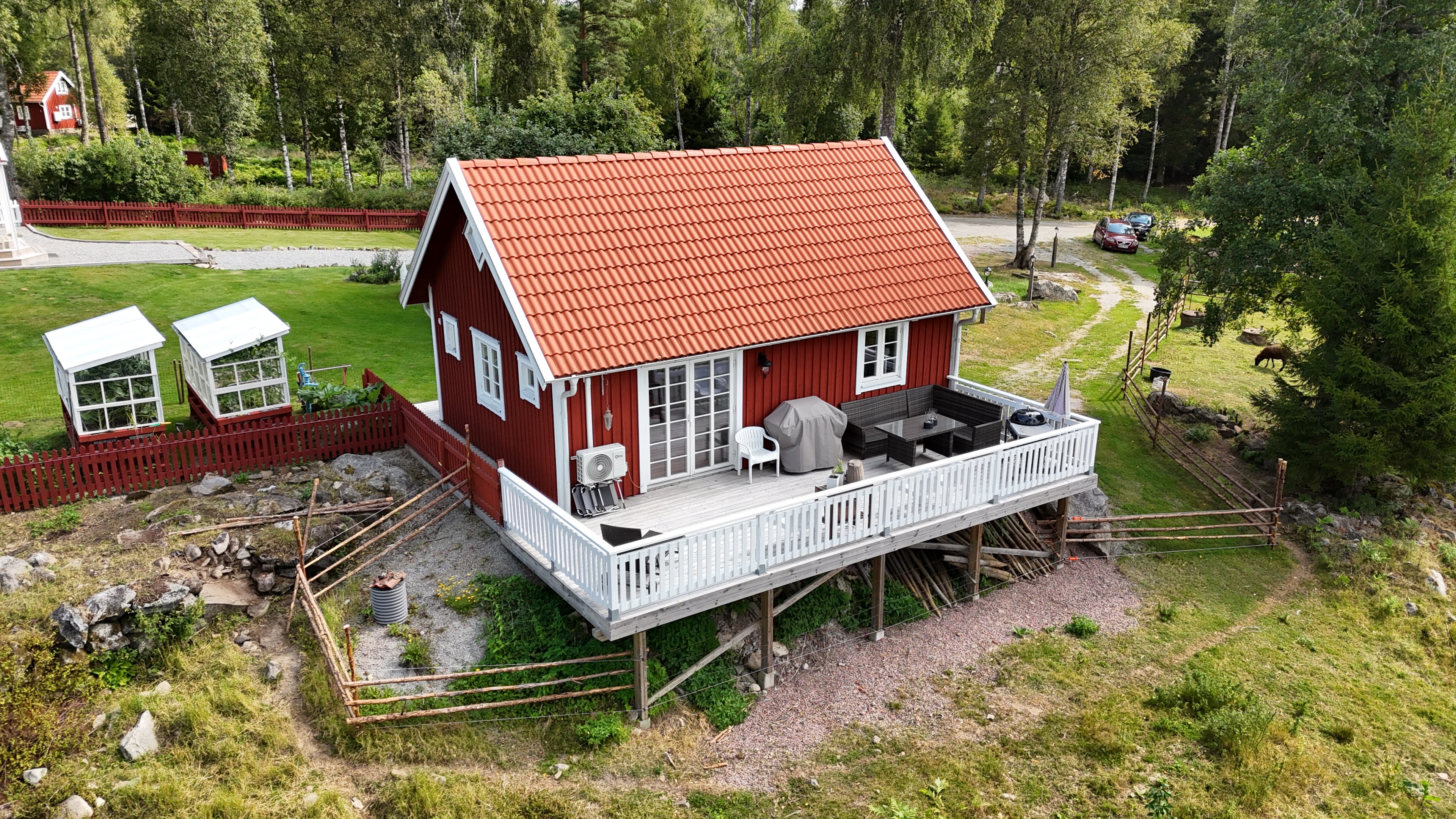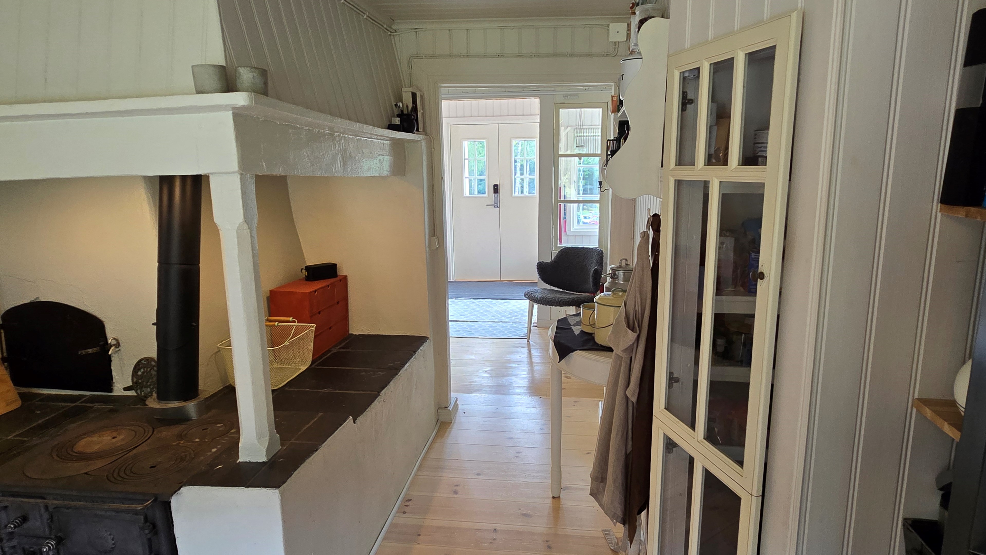 Lammafors är en skogsgård med mangårdsbyggnad från 1850:talet på ca. 125 m2 i mycket fint renoverat skick. Nytt undantag med egen toalett från 2019 på 40 m2 + sovloft på 20 m2 och en stor terrass på 35 m2. Självbärande gästhus i fint skick från 1960 på ca. 75 m2 också med stor terrass på ca. 35 m2, på egen (friköpt) tomt på 650 m2 och utsikt över ån. Gästhuset hyrs ut sommartid med gott resultat. Lada på ca. 75 m2 med tillbyggd hönsgård. Nytt uthus på ca. 12 m2. Vedeldad bastu med utedusch. 5,6 ha tomt med naturskönt och ensligt läge i skogen, genomlöpes av Bodaån. Möjlighet för småviltjakt och enklare djurhållning. 200 km. från Helsingborg. Filmvisning: https://youtu.be/WZXJCZs5Lm8 Lammaskog Lammafors 1 (och Lammaskog 5) vid Vrigstad är en gård med mangårdsbyggnad med anor från mitten på 1800-talet på ca. 125 m2 boyta och i mycket fint renoverat skick. Huset har bl.a. nyare tak med betongpannor (2015), nya isolerglasfönster, nyare elinstallationer, fint målat och tapetserat inne och ute med bevarande av den gamla stilen så långt som möjligt, men ändå med nytt badrum och kök (2022), så huset fungerar även i dagens värld. Helt ny golvkonstruktion under kök och badrum och alla golv i bottenplan är utbytta till breda golvplank. Gamla plankgolv bevarande på övervåningen och i flera tak. Renoverad och godkänd skorsten med rör till varje eldstad (utom bakugn och en kakelugn, som ej är i bruk). Här finns Morsø (2024) braskamin i vardagsrummet, en Jøtul braskamin i biblioteksrum, vedspis i köket och en öppen spis med insats på övervåningen. Därutöver finns Daikin luftvärmepump (2024). Tillbyggd och nu helt isolerad och integrerad veranda med isolerglasfönster (2023) och morgonsol. Vatten från borrad brunn på 70 m. (2018) och avlopp till godkänd trekammarbrunn med infiltration (2003). Fiber indraget (2022). Ingång via den inbyggda verandan med trägolv, pärlspont på väggar och i tak och en synlig timmervägg. Hall med trappa till övervåningen, säkringsskåp och trägolv. Stort vardagsrum med trägolv och i gamla plank i taket, effektiv Morsø braskamin och Daikin luftvärmepump. Nytt mysigt lantkök med trägolv pärlspont på väggar och tak, diskbänk, köksö, elspis med induktion, spisfläkt, mikro, diskmaskin, kyl/frys (med kallvatten/is), skafferi och den gamla eldstaden med vedspis och bakugn. Bibliotek, TV-rum eller extra sovrum med nytt trägolv, plank i taket och en effektiv Jøtul braskamin. Nytt badrum med plastmatta på golvet (ej våtrum) med diskbänk, tvättmaskin, torktumlare och duschkabin. Lucka i golvet med vatteninstallationer i torrt källarrum. Separat rum för WC och handfat. På övervåningen finns trapphall med lägre takhöjd (ca. 1,80 m.) med målat plankgolv. Sovrum 1 i kupan med trägolv, träpanel i tak, enkelsäng och brun porslinskakelugn (ej i funktion). Nyare sovrum 2 som är inrett upp i nocken med nya breda golvplank, träpanel i tak, bäddsoffa, enkelsäng och öppens spis med insats (godkänd). Sovrum 3 inrett upp nocken med nya breda golvplank, dubbelsäng och synlig timmervägg. Takhöjden i bottenvåningen är ca. 2,20 m. lite variabelt och lägre dörrar. En del möbler och andra inventarier kan köpas till eller medfölja, enl. önskemål och avtal med säljaren. Bredvid huvudhuset finns ett nybyggt (2019) gästhus som säljarna kallar "undantaget" på ca. 40 m2 + ca. 20 m2 inrett sovloft med låg takhöjd. Här finns också en stor terrass på ca. 35 m2 i sydväst läge med massor av sol hela dagen. Undantaget består av ett stort vardagsrum som är inrett upp i nocken med stor dubbel terrassdörr som ger fint ljusinsläpp och vacker utsikt. Stege leder upp till sovloftet. Toalett med WC och handfat (ej dusch). Två separata sovrum med var sin dubbelsäng, bröstpanel på väggarna och slipbart trälaminat på golvet. Ny luftvärmepump (2024). Härutöver finns även ett mindre hus på ca. 75 m2 som ligger på sin egen tomt, men i direkt anslutning till huvudfastigheten och ca. 100 m. fågelvägen från huvudhuset till gästhuset. Huset är byggt ca. 1960 och är likaledes genomgripande renoverat och i fint skick med samma stil som det stora huset. Bra betongpannor på taket. Enkelglasfönster med innerfönster. Här finns hall med trappa till övervåningen och säkringsskåp. Vardagsrum med trägolv, matplats, bäddsoffa, öppen spis med insats och ny luftvärmepump (2024). Kök med trägolv, liten matplats, diskbänk, kyl/frys, diskmaskin, elspis med spisfläkt och utgång till ca. 35 m2 stor terrass som har utsikt över Bodaån, som rinner precis nedanför huset. Hall med garderober, klinkergolv, säkringsskåp och larm till den slutna tanken (avlopp). Egen vattenbrunn som ej har sinat. Rejält badrum med klinkergolv, WC, handfat, dusch och tvättmaskin. På övervåningen finns liten trapphall med trägolv, pärlspont i taket och inbyggda garderober. Sovrum med trägolv, pärlspont i taket och två bäddsoffor. Allt säljs samlat som utgångspunkt, men om man vill kan man senare välja att sälja av det lilla huset med sin tomt på 650 m2, då den redan är avstyckad och utgör en självständig fastighet. Huset är också mycket lämpligt att använda till uthyrning, om man inte behöver platsen själv. Nuvarande ägare hyr ut huset ca. 2 månader sommartid för ca. 70 000 kr totalt via AirBnB. Man skulle lätt kunna hyra ut huset mer om man vill. Ut över bostadshusen finns en ladugård med plåttak på ca. 75 m2 med gott om plats för lagring. Ny elcentral i ladan och här finns rum för ved, lagring, litet stall till får och en tillbyggd utvändig hönsgård. Därutöver finns nyare (2019) oisolerat uthus i anslutning till undantaget på ca. 12 m2 med plats för ved och redskap. Slutligen finns även ett fristående bastuhus (2019) som är vedeldat och med sin egen lilla terrass och en utvändig dusch, som värms av solen. 56 200 m2 (ca. 5,6 hektar eller 11 tun