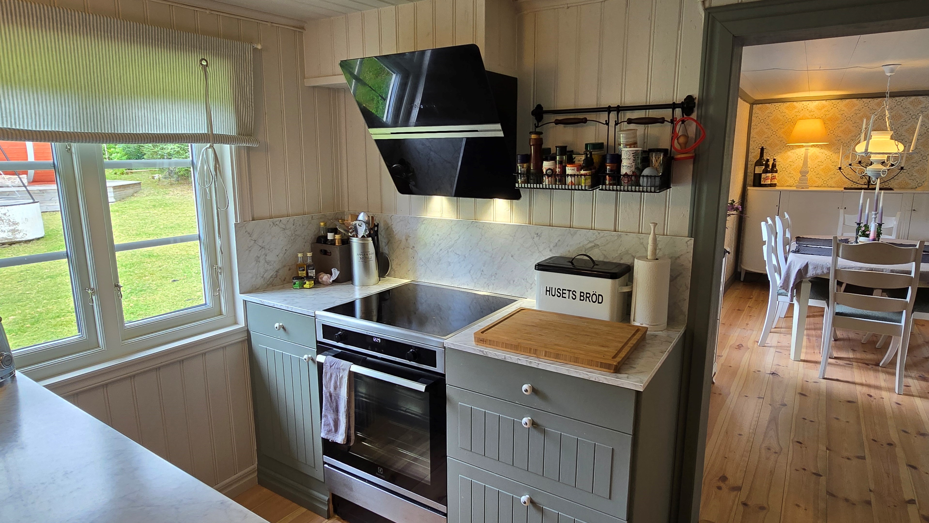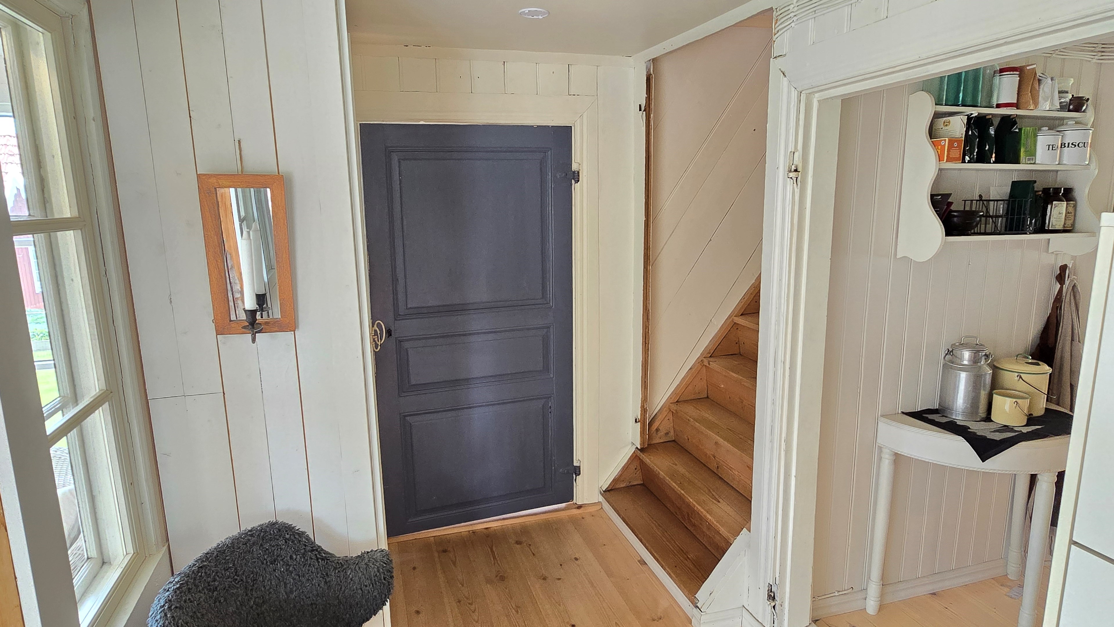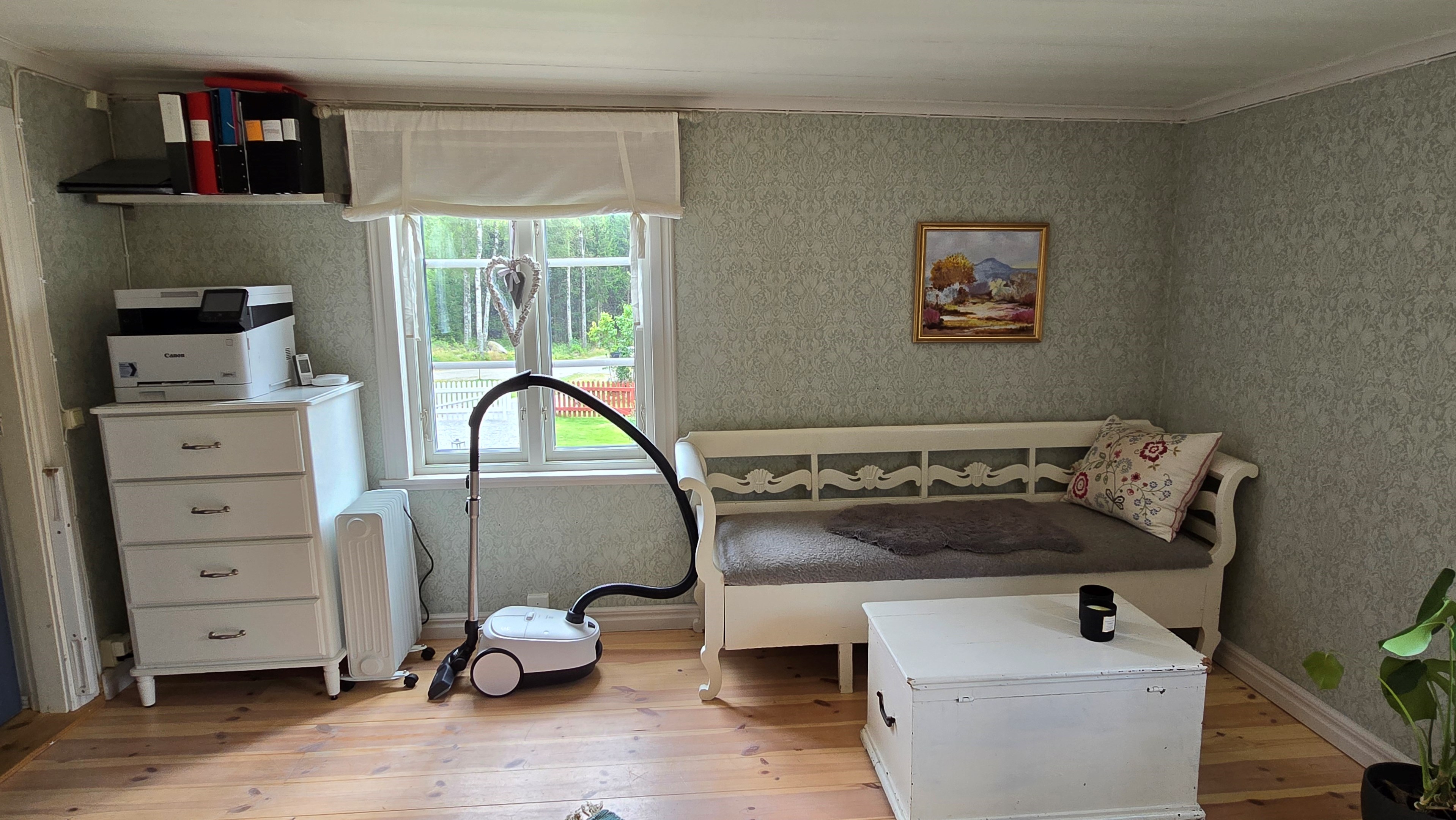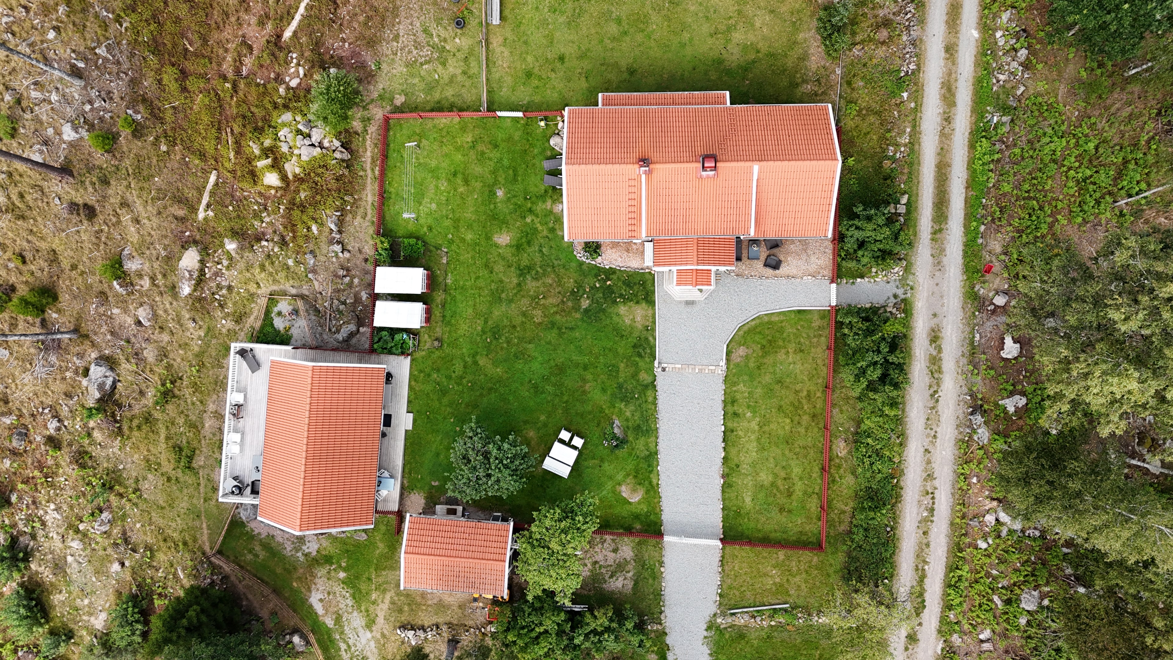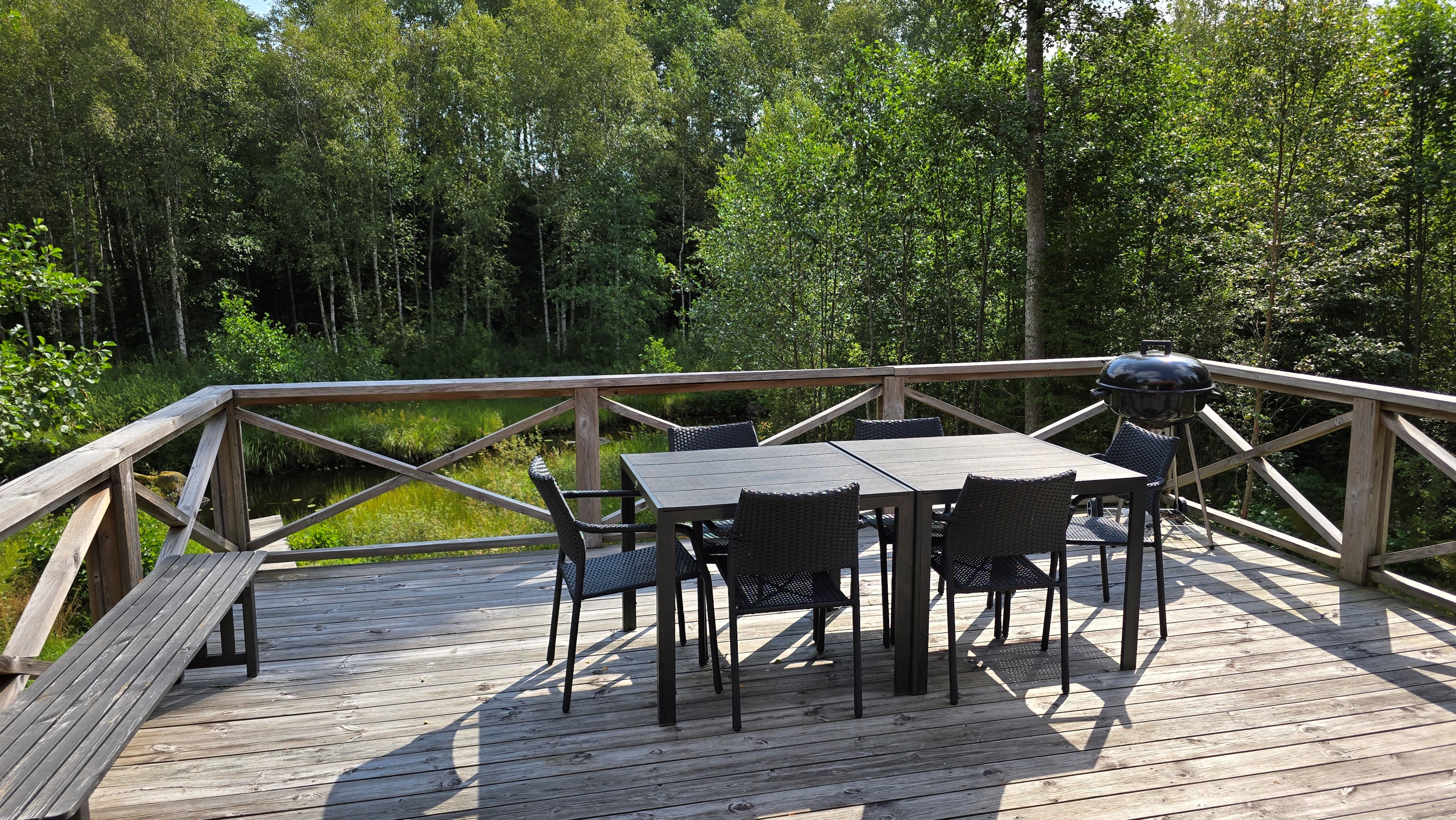 Lammafors är en skogsgård med mangårdsbyggnad från 1850:talet på ca. 125 m2 i mycket fint renoverat skick. Nytt undantag med egen toalett från 2019 på 40 m2 + sovloft på 20 m2 och en stor terrass på 35 m2. Självbärande gästhus i fint skick från 1960 på ca. 75 m2 också med stor terrass på ca. 35 m2, på egen (friköpt) tomt på 650 m2 och utsikt över ån. Gästhuset hyrs ut sommartid med gott resultat. Lada på ca. 75 m2 med tillbyggd hönsgård. Nytt uthus på ca. 12 m2. Vedeldad bastu med utedusch. 5,6 ha tomt med naturskönt och ensligt läge i skogen, genomlöpes av Bodaån. Möjlighet för småviltjakt och enklare djurhållning. 200 km. från Helsingborg. Filmvisning: https://youtu.be/WZXJCZs5Lm8 Lammaskog Lammafors 1 (och Lammaskog 5) vid Vrigstad är en gård med mangårdsbyggnad med anor från mitten på 1800-talet på ca. 125 m2 boyta och i mycket fint renoverat skick. Huset har bl.a. nyare tak med betongpannor (2015), nya isolerglasfönster, nyare elinstallationer, fint målat och tapetserat inne och ute med bevarande av den gamla stilen så långt som möjligt, men ändå med nytt badrum och kök (2022), så huset fungerar även i dagens värld. Helt ny golvkonstruktion under kök och badrum och alla golv i bottenplan är utbytta till breda golvplank. Gamla plankgolv bevarande på övervåningen och i flera tak. Renoverad och godkänd skorsten med rör till varje eldstad (utom bakugn och en kakelugn, som ej är i bruk). Här finns Morsø (2024) braskamin i vardagsrummet, en Jøtul braskamin i biblioteksrum, vedspis i köket och en öppen spis med insats på övervåningen. Därutöver finns Daikin luftvärmepump (2024). Tillbyggd och nu helt isolerad och integrerad veranda med isolerglasfönster (2023) och morgonsol. Vatten från borrad brunn på 70 m. (2018) och avlopp till godkänd trekammarbrunn med infiltration (2003). Fiber indraget (2022). Ingång via den inbyggda verandan med trägolv, pärlspont på väggar och i tak och en synlig timmervägg. Hall med trappa till övervåningen, säkringsskåp och trägolv. Stort vardagsrum med trägolv och i gamla plank i taket, effektiv Morsø braskamin och Daikin luftvärmepump. Nytt mysigt lantkök med trägolv pärlspont på väggar och tak, diskbänk, köksö, elspis med induktion, spisfläkt, mikro, diskmaskin, kyl/frys (med kallvatten/is), skafferi och den gamla eldstaden med vedspis och bakugn. Bibliotek, TV-rum eller extra sovrum med nytt trägolv, plank i taket och en effektiv Jøtul braskamin. Nytt badrum med plastmatta på golvet (ej våtrum) med diskbänk, tvättmaskin, torktumlare och duschkabin. Lucka i golvet med vatteninstallationer i torrt källarrum. Separat rum för WC och handfat. På övervåningen finns trapphall med lägre takhöjd (ca. 1,80 m.) med målat plankgolv. Sovrum 1 i kupan med trägolv, träpanel i tak, enkelsäng och brun porslinskakelugn (ej i funktion). Nyare sovrum 2 som är inrett upp i nocken med nya breda golvplank, träpanel i tak, bäddsoffa, enkelsäng och öppens spis med insats (godkänd). Sovrum 3 inrett upp nocken med nya breda golvplank, dubbelsäng och synlig timmervägg. Takhöjden i bottenvåningen är ca. 2,20 m. lite variabelt och lägre dörrar. En del möbler och andra inventarier kan köpas till eller medfölja, enl. önskemål och avtal med säljaren. Bredvid huvudhuset finns ett nybyggt (2019) gästhus som säljarna kallar "undantaget" på ca. 40 m2 + ca. 20 m2 inrett sovloft med låg takhöjd. Här finns också en stor terrass på ca. 35 m2 i sydväst läge med massor av sol hela dagen. Undantaget består av ett stort vardagsrum som är inrett upp i nocken med stor dubbel terrassdörr som ger fint ljusinsläpp och vacker utsikt. Stege leder upp till sovloftet. Toalett med WC och handfat (ej dusch). Två separata sovrum med var sin dubbelsäng, bröstpanel på väggarna och slipbart trälaminat på golvet. Ny luftvärmepump (2024). Härutöver finns även ett mindre hus på ca. 75 m2 som ligger på sin egen tomt, men i direkt anslutning till huvudfastigheten och ca. 100 m. fågelvägen från huvudhuset till gästhuset. Huset är byggt ca. 1960 och är likaledes genomgripande renoverat och i fint skick med samma stil som det stora huset. Bra betongpannor på taket. Enkelglasfönster med innerfönster. Här finns hall med trappa till övervåningen och säkringsskåp. Vardagsrum med trägolv, matplats, bäddsoffa, öppen spis med insats och ny luftvärmepump (2024). Kök med trägolv, liten matplats, diskbänk, kyl/frys, diskmaskin, elspis med spisfläkt och utgång till ca. 35 m2 stor terrass som har utsikt över Bodaån, som rinner precis nedanför huset. Hall med garderober, klinkergolv, säkringsskåp och larm till den slutna tanken (avlopp). Egen vattenbrunn som ej har sinat. Rejält badrum med klinkergolv, WC, handfat, dusch och tvättmaskin. På övervåningen finns liten trapphall med trägolv, pärlspont i taket och inbyggda garderober. Sovrum med trägolv, pärlspont i taket och två bäddsoffor. Allt säljs samlat som utgångspunkt, men om man vill kan man senare välja att sälja av det lilla huset med sin tomt på 650 m2, då den redan är avstyckad och utgör en självständig fastighet. Huset är också mycket lämpligt att använda till uthyrning, om man inte behöver platsen själv. Nuvarande ägare hyr ut huset ca. 2 månader sommartid för ca. 70 000 kr totalt via AirBnB. Man skulle lätt kunna hyra ut huset mer om man vill. Ut över bostadshusen finns en ladugård med plåttak på ca. 75 m2 med gott om plats för lagring. Ny elcentral i ladan och här finns rum för ved, lagring, litet stall till får och en tillbyggd utvändig hönsgård. Därutöver finns nyare (2019) oisolerat uthus i anslutning till undantaget på ca. 12 m2 med plats för ved och redskap. Slutligen finns även ett fristående bastuhus (2019) som är vedeldat och med sin egen lilla terrass och en utvändig dusch, som värms av solen. 56 200 m2 (ca. 5,6 hektar eller 11 tun