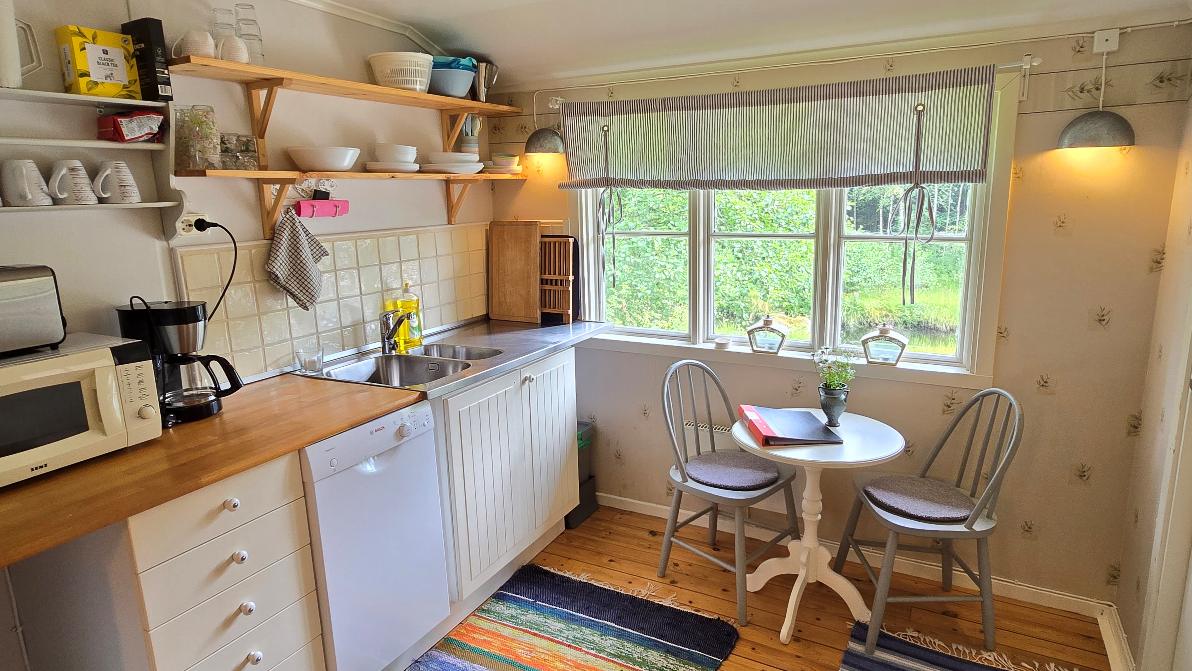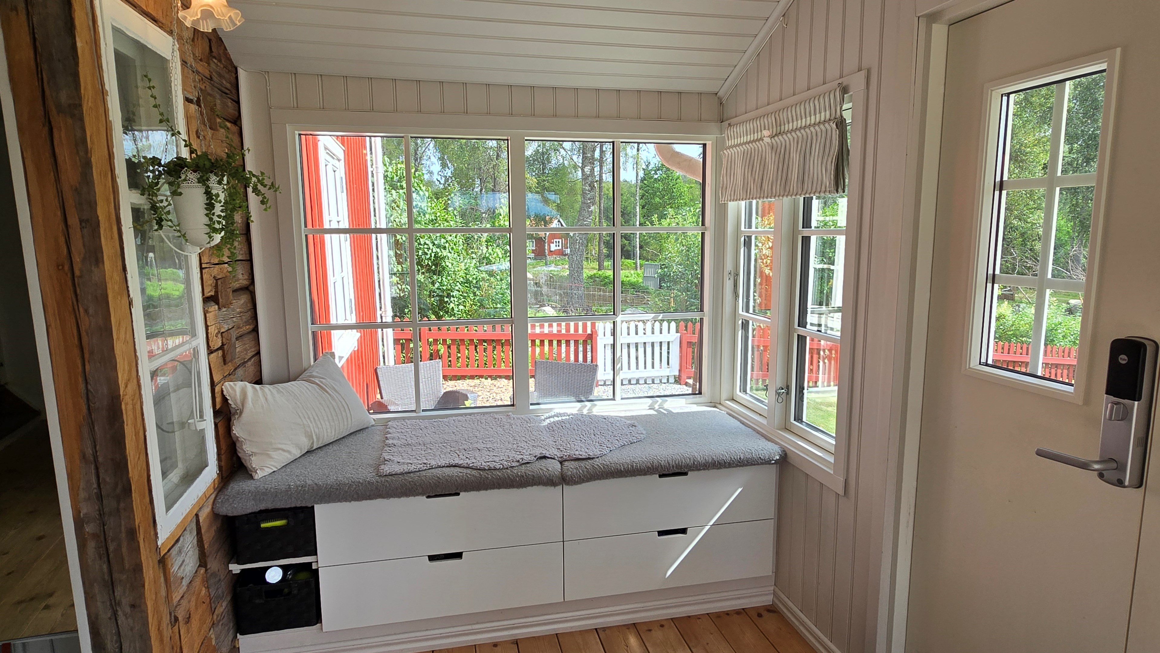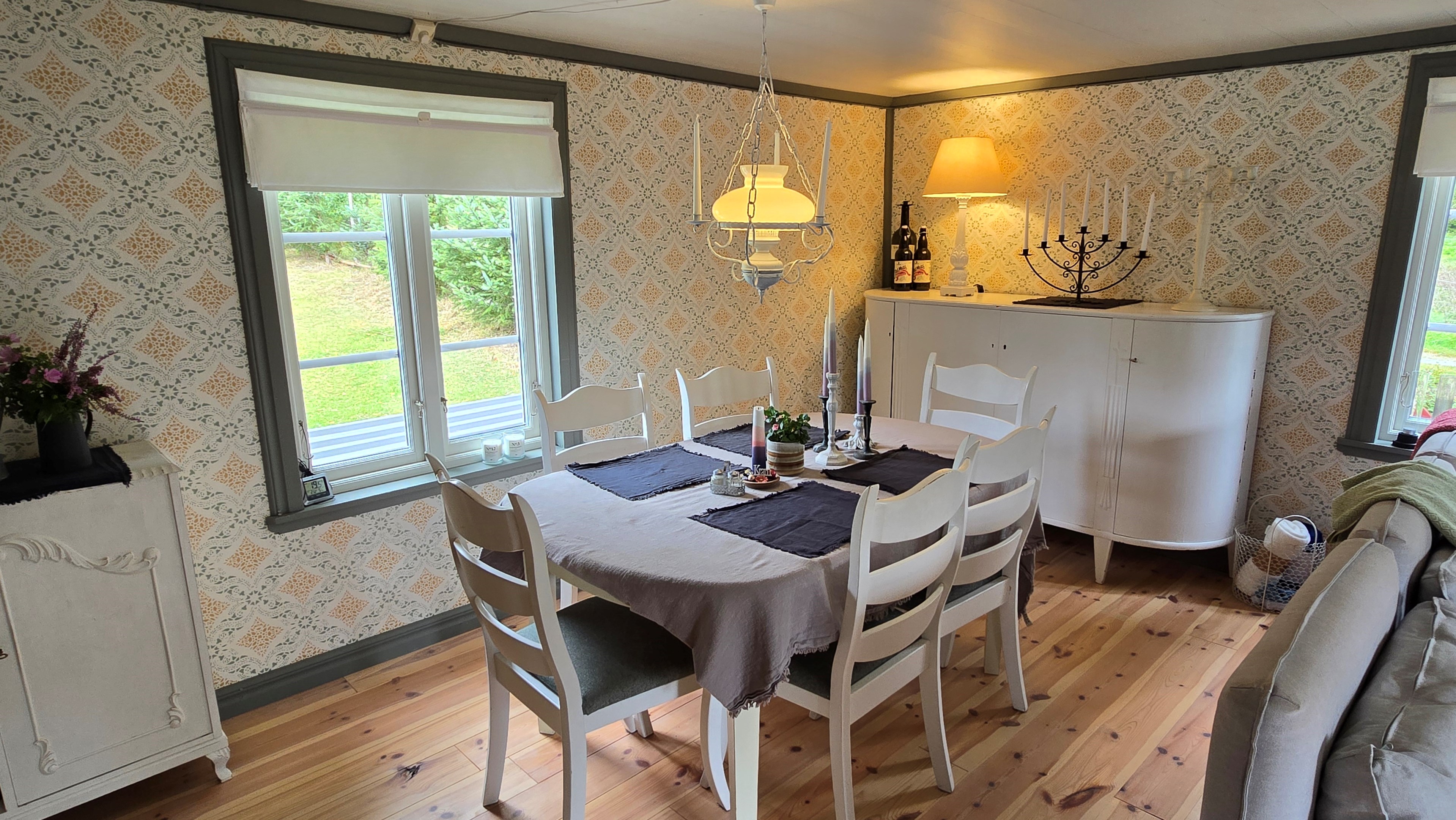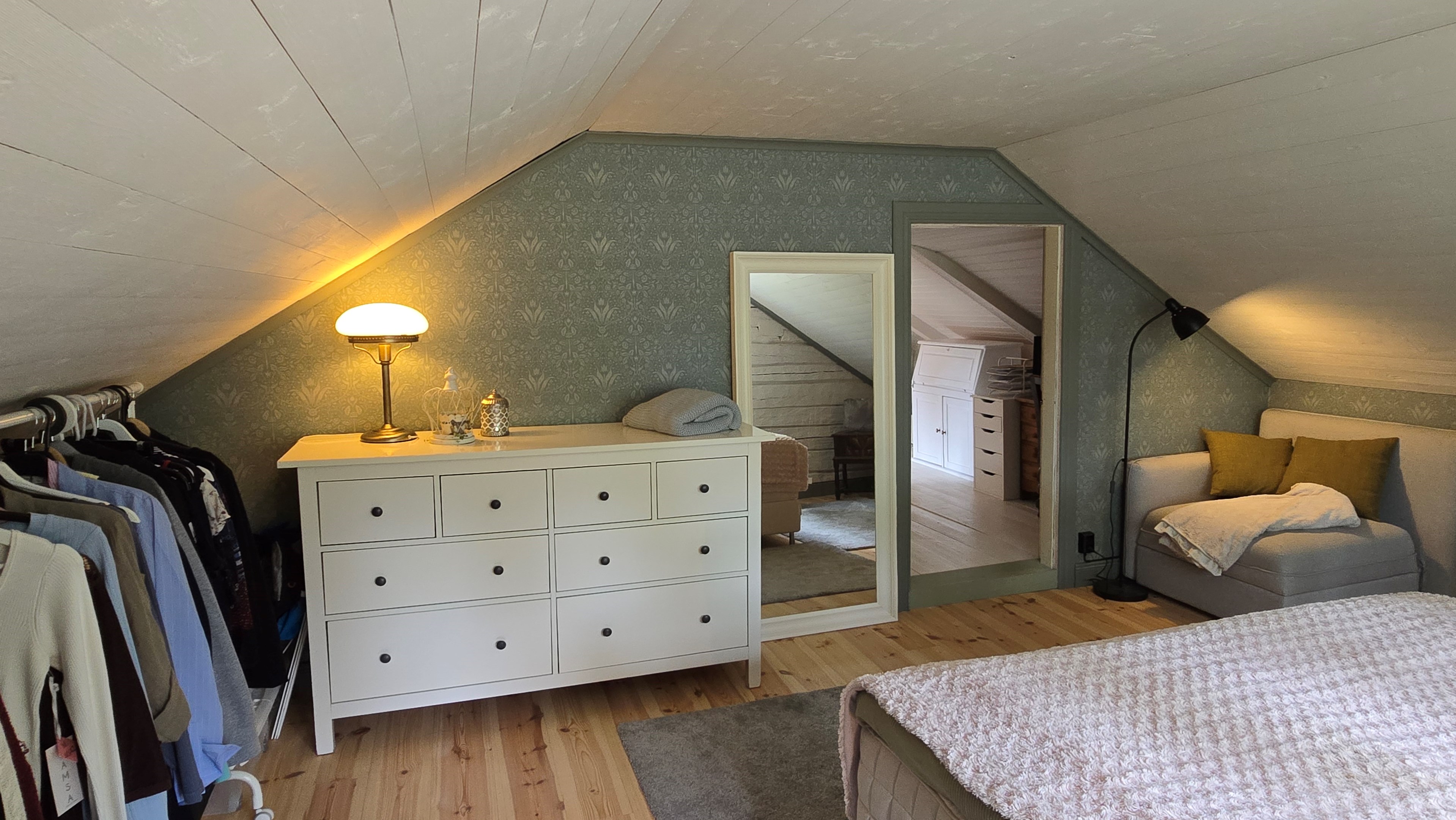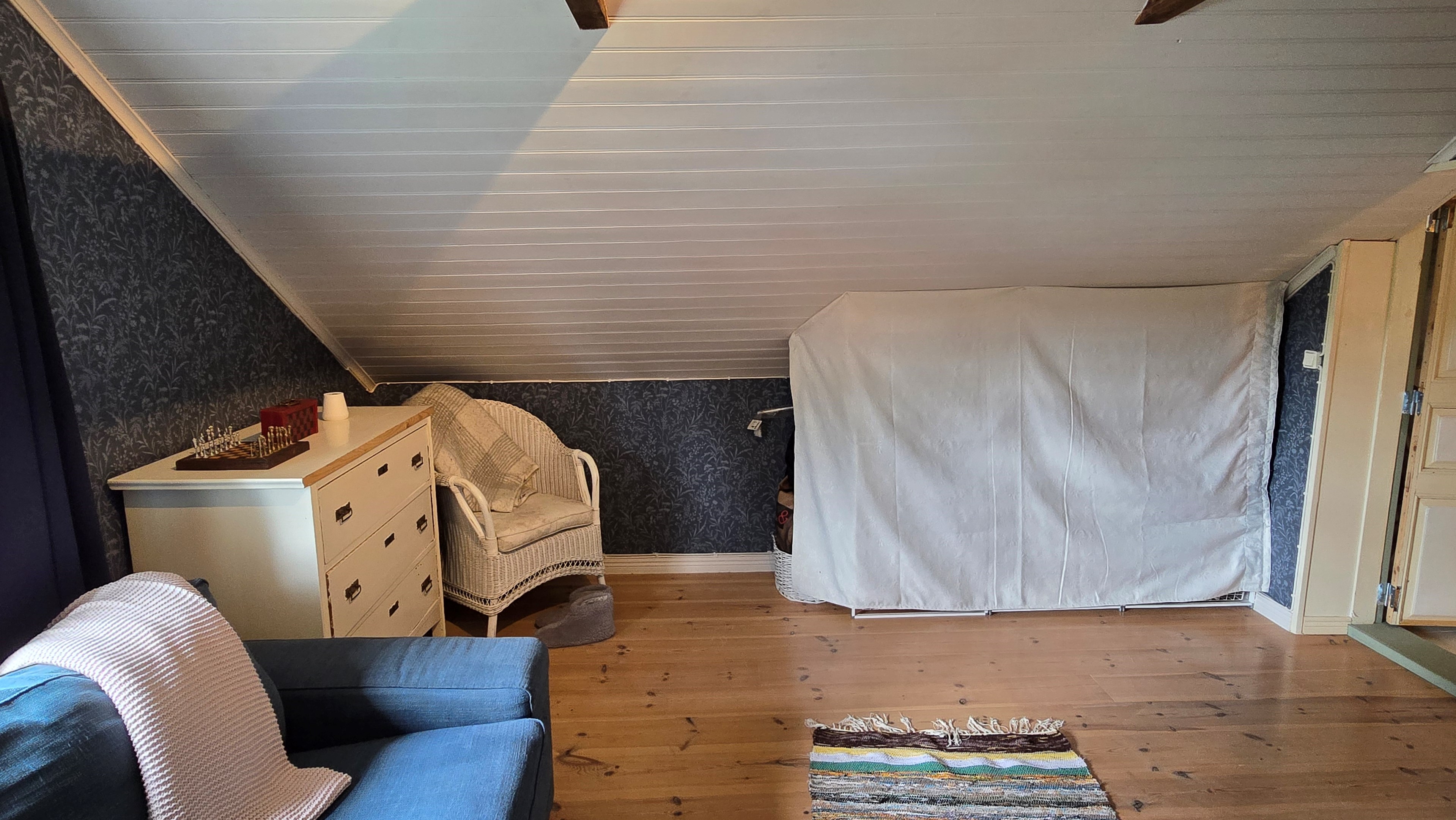 Lammafors är en skogsgård med mangårdsbyggnad från 1850:talet på ca. 125 m2 i mycket fint renoverat skick. Nytt undantag med egen toalett från 2019 på 40 m2 + sovloft på 20 m2 och en stor terrass på 35 m2. Självbärande gästhus i fint skick från 1960 på ca. 75 m2 också med stor terrass på ca. 35 m2, på egen (friköpt) tomt på 650 m2 och utsikt över ån. Gästhuset hyrs ut sommartid med gott resultat. Lada på ca. 75 m2 med tillbyggd hönsgård. Nytt uthus på ca. 12 m2. Vedeldad bastu med utedusch. 5,6 ha tomt med naturskönt och ensligt läge i skogen, genomlöpes av Bodaån. Möjlighet för småviltjakt och enklare djurhållning. 200 km. från Helsingborg. Filmvisning: https://youtu.be/WZXJCZs5Lm8 Lammaskog Lammafors 1 (och Lammaskog 5) vid Vrigstad är en gård med mangårdsbyggnad med anor från mitten på 1800-talet på ca. 125 m2 boyta och i mycket fint renoverat skick. Huset har bl.a. nyare tak med betongpannor (2015), nya isolerglasfönster, nyare elinstallationer, fint målat och tapetserat inne och ute med bevarande av den gamla stilen så långt som möjligt, men ändå med nytt badrum och kök (2022), så huset fungerar även i dagens värld. Helt ny golvkonstruktion under kök och badrum och alla golv i bottenplan är utbytta till breda golvplank. Gamla plankgolv bevarande på övervåningen och i flera tak. Renoverad och godkänd skorsten med rör till varje eldstad (utom bakugn och en kakelugn, som ej är i bruk). Här finns Morsø (2024) braskamin i vardagsrummet, en Jøtul braskamin i biblioteksrum, vedspis i köket och en öppen spis med insats på övervåningen. Därutöver finns Daikin luftvärmepump (2024). Tillbyggd och nu helt isolerad och integrerad veranda med isolerglasfönster (2023) och morgonsol. Vatten från borrad brunn på 70 m. (2018) och avlopp till godkänd trekammarbrunn med infiltration (2003). Fiber indraget (2022). Ingång via den inbyggda verandan med trägolv, pärlspont på väggar och i tak och en synlig timmervägg. Hall med trappa till övervåningen, säkringsskåp och trägolv. Stort vardagsrum med trägolv och i gamla plank i taket, effektiv Morsø braskamin och Daikin luftvärmepump. Nytt mysigt lantkök med trägolv pärlspont på väggar och tak, diskbänk, köksö, elspis med induktion, spisfläkt, mikro, diskmaskin, kyl/frys (med kallvatten/is), skafferi och den gamla eldstaden med vedspis och bakugn. Bibliotek, TV-rum eller extra sovrum med nytt trägolv, plank i taket och en effektiv Jøtul braskamin. Nytt badrum med plastmatta på golvet (ej våtrum) med diskbänk, tvättmaskin, torktumlare och duschkabin. Lucka i golvet med vatteninstallationer i torrt källarrum. Separat rum för WC och handfat. På övervåningen finns trapphall med lägre takhöjd (ca. 1,80 m.) med målat plankgolv. Sovrum 1 i kupan med trägolv, träpanel i tak, enkelsäng och brun porslinskakelugn (ej i funktion). Nyare sovrum 2 som är inrett upp i nocken med nya breda golvplank, träpanel i tak, bäddsoffa, enkelsäng och öppens spis med insats (godkänd). Sovrum 3 inrett upp nocken med nya breda golvplank, dubbelsäng och synlig timmervägg. Takhöjden i bottenvåningen är ca. 2,20 m. lite variabelt och lägre dörrar. En del möbler och andra inventarier kan köpas till eller medfölja, enl. önskemål och avtal med säljaren. Bredvid huvudhuset finns ett nybyggt (2019) gästhus som säljarna kallar "undantaget" på ca. 40 m2 + ca. 20 m2 inrett sovloft med låg takhöjd. Här finns också en stor terrass på ca. 35 m2 i sydväst läge med massor av sol hela dagen. Undantaget består av ett stort vardagsrum som är inrett upp i nocken med stor dubbel terrassdörr som ger fint ljusinsläpp och vacker utsikt. Stege leder upp till sovloftet. Toalett med WC och handfat (ej dusch). Två separata sovrum med var sin dubbelsäng, bröstpanel på väggarna och slipbart trälaminat på golvet. Ny luftvärmepump (2024). Härutöver finns även ett mindre hus på ca. 75 m2 som ligger på sin egen tomt, men i direkt anslutning till huvudfastigheten och ca. 100 m. fågelvägen från huvudhuset till gästhuset. Huset är byggt ca. 1960 och är likaledes genomgripande renoverat och i fint skick med samma stil som det stora huset. Bra betongpannor på taket. Enkelglasfönster med innerfönster. Här finns hall med trappa till övervåningen och säkringsskåp. Vardagsrum med trägolv, matplats, bäddsoffa, öppen spis med insats och ny luftvärmepump (2024). Kök med trägolv, liten matplats, diskbänk, kyl/frys, diskmaskin, elspis med spisfläkt och utgång till ca. 35 m2 stor terrass som har utsikt över Bodaån, som rinner precis nedanför huset. Hall med garderober, klinkergolv, säkringsskåp och larm till den slutna tanken (avlopp). Egen vattenbrunn som ej har sinat. Rejält badrum med klinkergolv, WC, handfat, dusch och tvättmaskin. På övervåningen finns liten trapphall med trägolv, pärlspont i taket och inbyggda garderober. Sovrum med trägolv, pärlspont i taket och två bäddsoffor. Allt säljs samlat som utgångspunkt, men om man vill kan man senare välja att sälja av det lilla huset med sin tomt på 650 m2, då den redan är avstyckad och utgör en självständig fastighet. Huset är också mycket lämpligt att använda till uthyrning, om man inte behöver platsen själv. Nuvarande ägare hyr ut huset ca. 2 månader sommartid för ca. 70 000 kr totalt via AirBnB. Man skulle lätt kunna hyra ut huset mer om man vill. Ut över bostadshusen finns en ladugård med plåttak på ca. 75 m2 med gott om plats för lagring. Ny elcentral i ladan och här finns rum för ved, lagring, litet stall till får och en tillbyggd utvändig hönsgård. Därutöver finns nyare (2019) oisolerat uthus i anslutning till undantaget på ca. 12 m2 med plats för ved och redskap. Slutligen finns även ett fristående bastuhus (2019) som är vedeldat och med sin egen lilla terrass och en utvändig dusch, som värms av solen. 56 200 m2 (ca. 5,6 hektar eller 11 tun