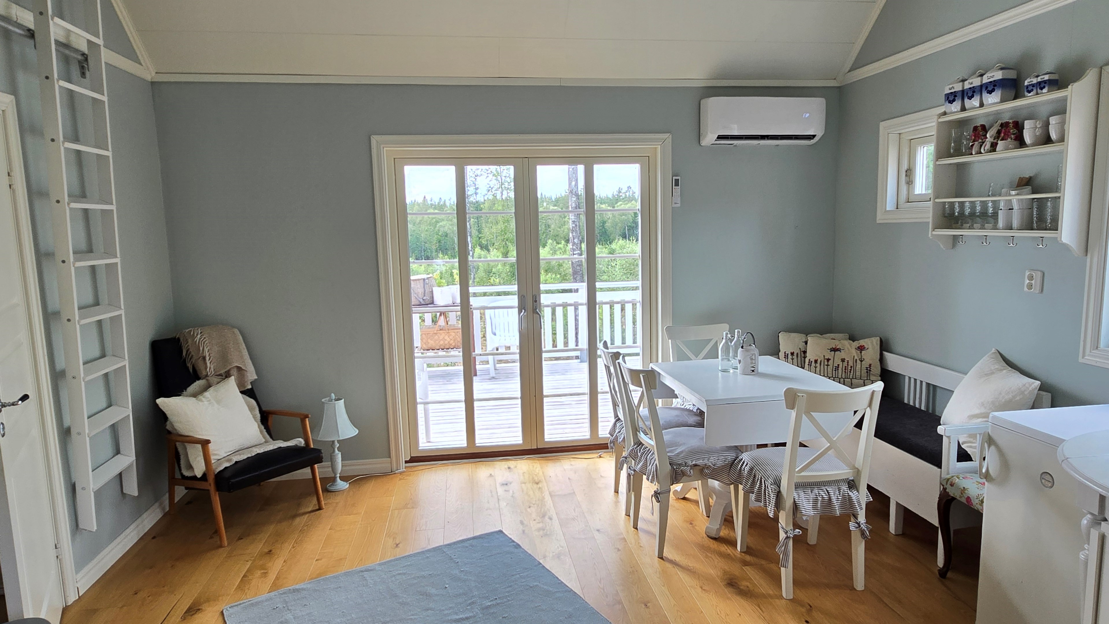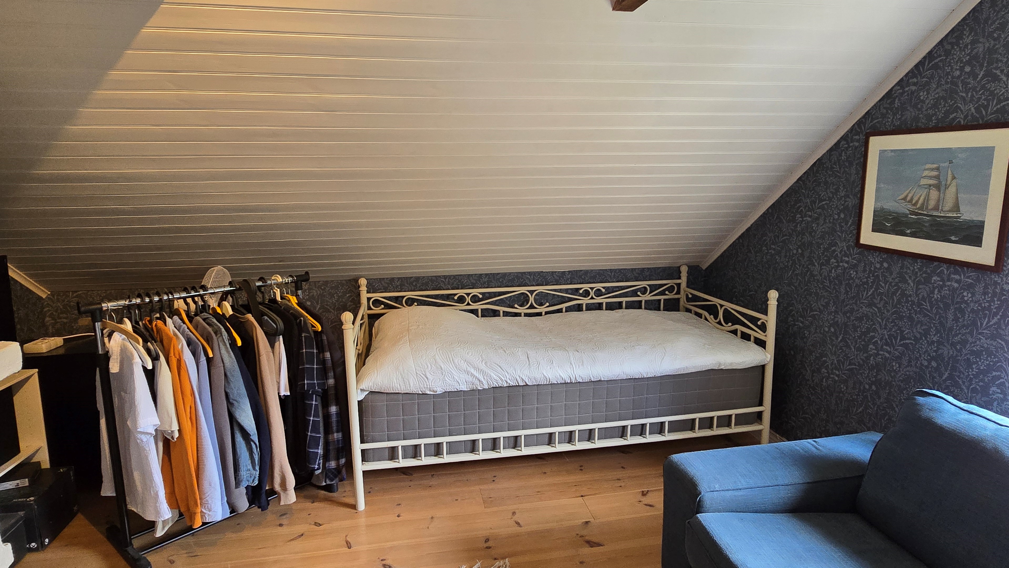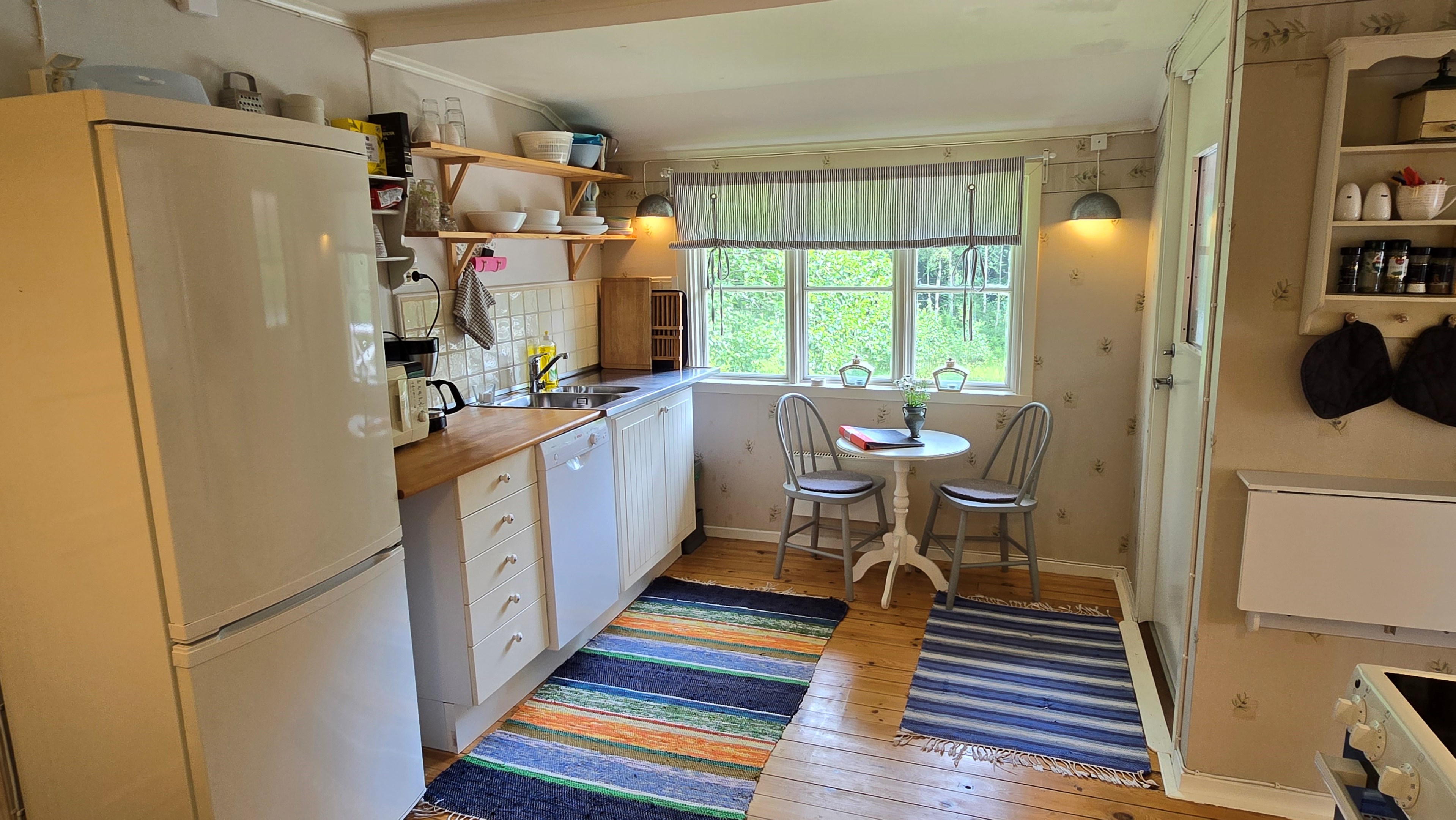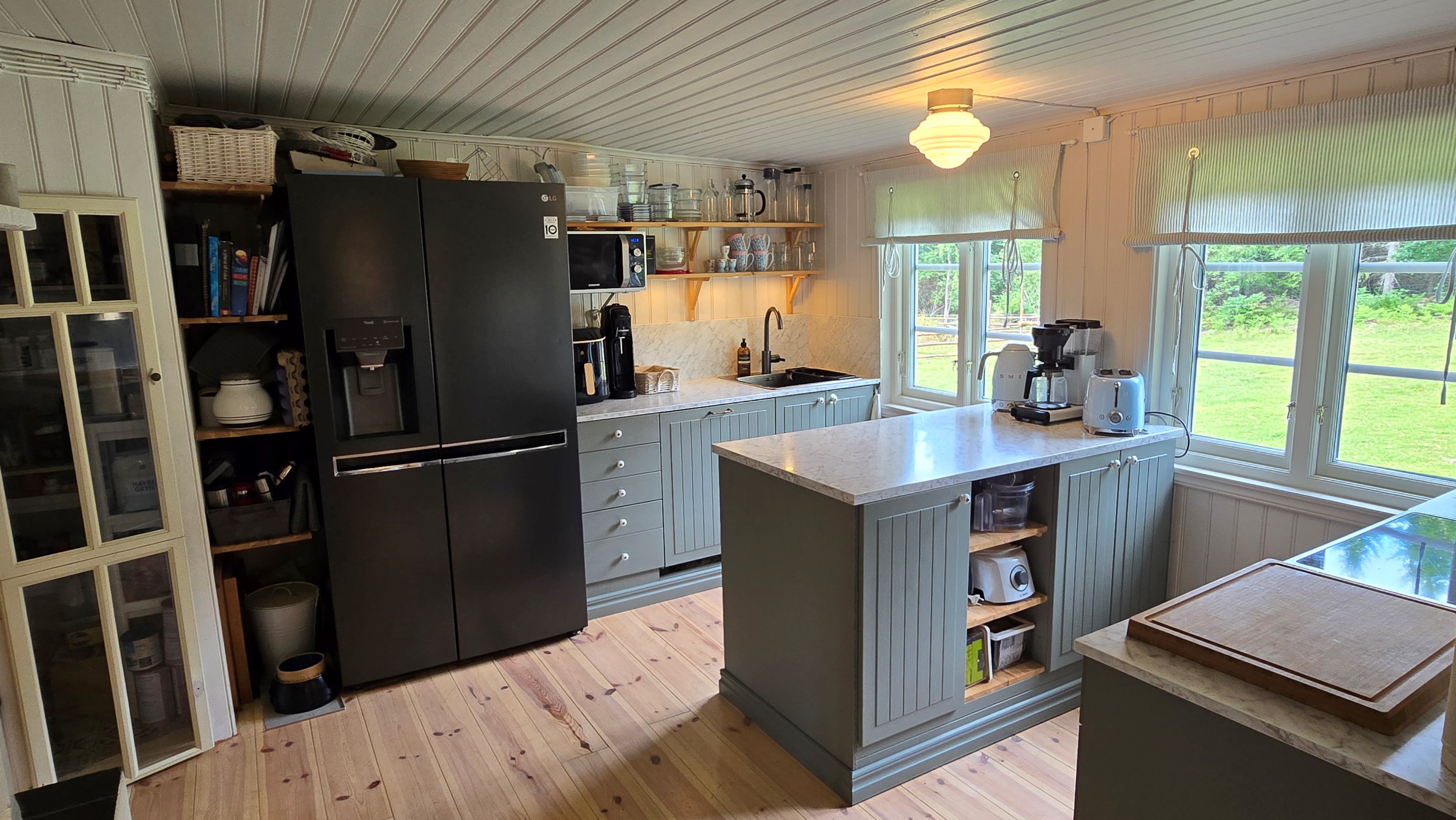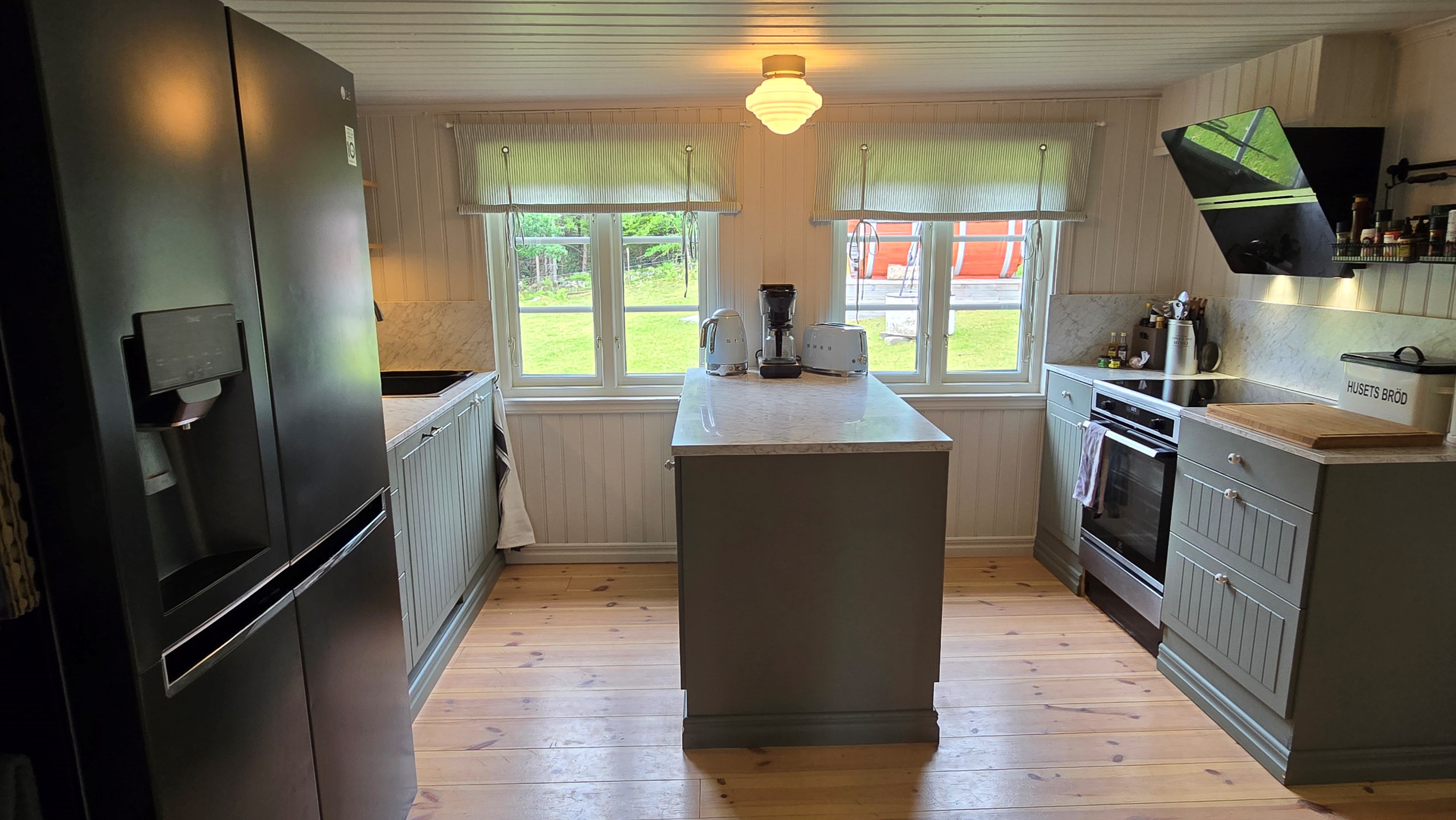 Lammafors är en skogsgård med mangårdsbyggnad från 1850:talet på ca. 125 m2 i mycket fint renoverat skick. Nytt undantag med egen toalett från 2019 på 40 m2 + sovloft på 20 m2 och en stor terrass på 35 m2. Självbärande gästhus i fint skick från 1960 på ca. 75 m2 också med stor terrass på ca. 35 m2, på egen (friköpt) tomt på 650 m2 och utsikt över ån. Gästhuset hyrs ut sommartid med gott resultat. Lada på ca. 75 m2 med tillbyggd hönsgård. Nytt uthus på ca. 12 m2. Vedeldad bastu med utedusch. 5,6 ha tomt med naturskönt och ensligt läge i skogen, genomlöpes av Bodaån. Möjlighet för småviltjakt och enklare djurhållning. 200 km. från Helsingborg. Filmvisning: https://youtu.be/WZXJCZs5Lm8 Lammaskog Lammafors 1 (och Lammaskog 5) vid Vrigstad är en gård med mangårdsbyggnad med anor från mitten på 1800-talet på ca. 125 m2 boyta och i mycket fint renoverat skick. Huset har bl.a. nyare tak med betongpannor (2015), nya isolerglasfönster, nyare elinstallationer, fint målat och tapetserat inne och ute med bevarande av den gamla stilen så långt som möjligt, men ändå med nytt badrum och kök (2022), så huset fungerar även i dagens värld. Helt ny golvkonstruktion under kök och badrum och alla golv i bottenplan är utbytta till breda golvplank. Gamla plankgolv bevarande på övervåningen och i flera tak. Renoverad och godkänd skorsten med rör till varje eldstad (utom bakugn och en kakelugn, som ej är i bruk). Här finns Morsø (2024) braskamin i vardagsrummet, en Jøtul braskamin i biblioteksrum, vedspis i köket och en öppen spis med insats på övervåningen. Därutöver finns Daikin luftvärmepump (2024). Tillbyggd och nu helt isolerad och integrerad veranda med isolerglasfönster (2023) och morgonsol. Vatten från borrad brunn på 70 m. (2018) och avlopp till godkänd trekammarbrunn med infiltration (2003). Fiber indraget (2022). Ingång via den inbyggda verandan med trägolv, pärlspont på väggar och i tak och en synlig timmervägg. Hall med trappa till övervåningen, säkringsskåp och trägolv. Stort vardagsrum med trägolv och i gamla plank i taket, effektiv Morsø braskamin och Daikin luftvärmepump. Nytt mysigt lantkök med trägolv pärlspont på väggar och tak, diskbänk, köksö, elspis med induktion, spisfläkt, mikro, diskmaskin, kyl/frys (med kallvatten/is), skafferi och den gamla eldstaden med vedspis och bakugn. Bibliotek, TV-rum eller extra sovrum med nytt trägolv, plank i taket och en effektiv Jøtul braskamin. Nytt badrum med plastmatta på golvet (ej våtrum) med diskbänk, tvättmaskin, torktumlare och duschkabin. Lucka i golvet med vatteninstallationer i torrt källarrum. Separat rum för WC och handfat. På övervåningen finns trapphall med lägre takhöjd (ca. 1,80 m.) med målat plankgolv. Sovrum 1 i kupan med trägolv, träpanel i tak, enkelsäng och brun porslinskakelugn (ej i funktion). Nyare sovrum 2 som är inrett upp i nocken med nya breda golvplank, träpanel i tak, bäddsoffa, enkelsäng och öppens spis med insats (godkänd). Sovrum 3 inrett upp nocken med nya breda golvplank, dubbelsäng och synlig timmervägg. Takhöjden i bottenvåningen är ca. 2,20 m. lite variabelt och lägre dörrar. En del möbler och andra inventarier kan köpas till eller medfölja, enl. önskemål och avtal med säljaren. Bredvid huvudhuset finns ett nybyggt (2019) gästhus som säljarna kallar "undantaget" på ca. 40 m2 + ca. 20 m2 inrett sovloft med låg takhöjd. Här finns också en stor terrass på ca. 35 m2 i sydväst läge med massor av sol hela dagen. Undantaget består av ett stort vardagsrum som är inrett upp i nocken med stor dubbel terrassdörr som ger fint ljusinsläpp och vacker utsikt. Stege leder upp till sovloftet. Toalett med WC och handfat (ej dusch). Två separata sovrum med var sin dubbelsäng, bröstpanel på väggarna och slipbart trälaminat på golvet. Ny luftvärmepump (2024). Härutöver finns även ett mindre hus på ca. 75 m2 som ligger på sin egen tomt, men i direkt anslutning till huvudfastigheten och ca. 100 m. fågelvägen från huvudhuset till gästhuset. Huset är byggt ca. 1960 och är likaledes genomgripande renoverat och i fint skick med samma stil som det stora huset. Bra betongpannor på taket. Enkelglasfönster med innerfönster. Här finns hall med trappa till övervåningen och säkringsskåp. Vardagsrum med trägolv, matplats, bäddsoffa, öppen spis med insats och ny luftvärmepump (2024). Kök med trägolv, liten matplats, diskbänk, kyl/frys, diskmaskin, elspis med spisfläkt och utgång till ca. 35 m2 stor terrass som har utsikt över Bodaån, som rinner precis nedanför huset. Hall med garderober, klinkergolv, säkringsskåp och larm till den slutna tanken (avlopp). Egen vattenbrunn som ej har sinat. Rejält badrum med klinkergolv, WC, handfat, dusch och tvättmaskin. På övervåningen finns liten trapphall med trägolv, pärlspont i taket och inbyggda garderober. Sovrum med trägolv, pärlspont i taket och två bäddsoffor. Allt säljs samlat som utgångspunkt, men om man vill kan man senare välja att sälja av det lilla huset med sin tomt på 650 m2, då den redan är avstyckad och utgör en självständig fastighet. Huset är också mycket lämpligt att använda till uthyrning, om man inte behöver platsen själv. Nuvarande ägare hyr ut huset ca. 2 månader sommartid för ca. 70 000 kr totalt via AirBnB. Man skulle lätt kunna hyra ut huset mer om man vill. Ut över bostadshusen finns en ladugård med plåttak på ca. 75 m2 med gott om plats för lagring. Ny elcentral i ladan och här finns rum för ved, lagring, litet stall till får och en tillbyggd utvändig hönsgård. Därutöver finns nyare (2019) oisolerat uthus i anslutning till undantaget på ca. 12 m2 med plats för ved och redskap. Slutligen finns även ett fristående bastuhus (2019) som är vedeldat och med sin egen lilla terrass och en utvändig dusch, som värms av solen. 56 200 m2 (ca. 5,6 hektar eller 11 tun