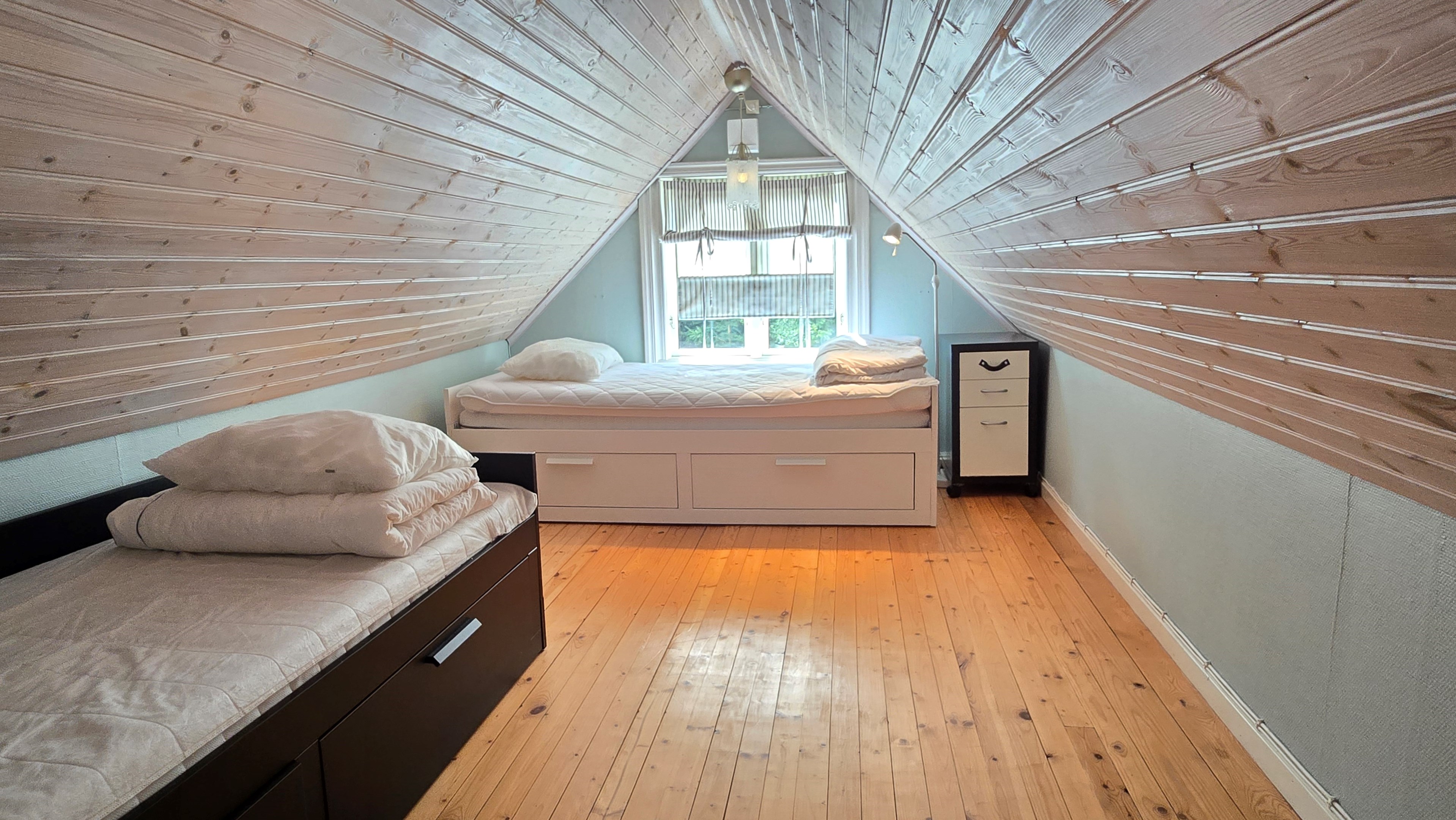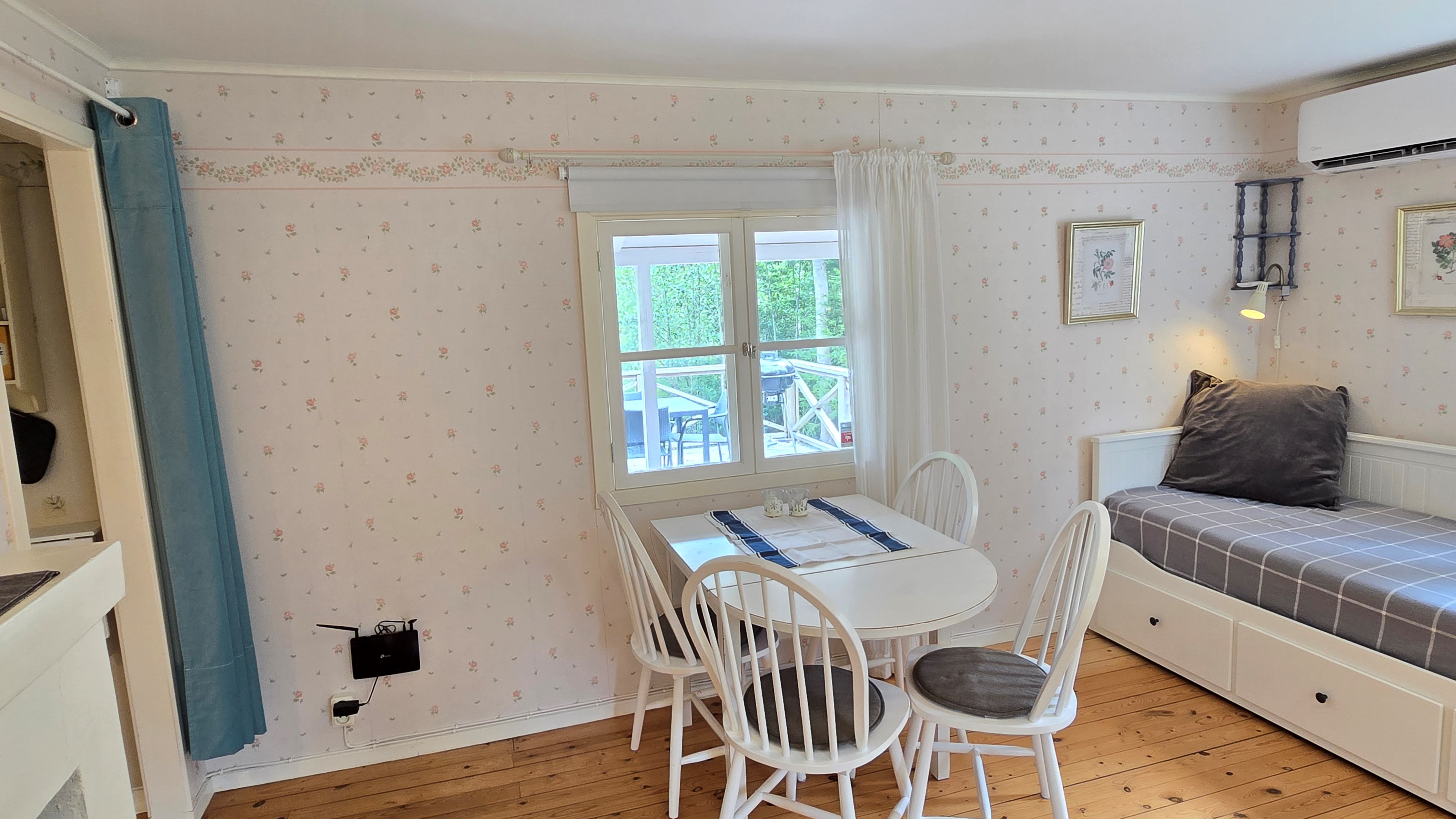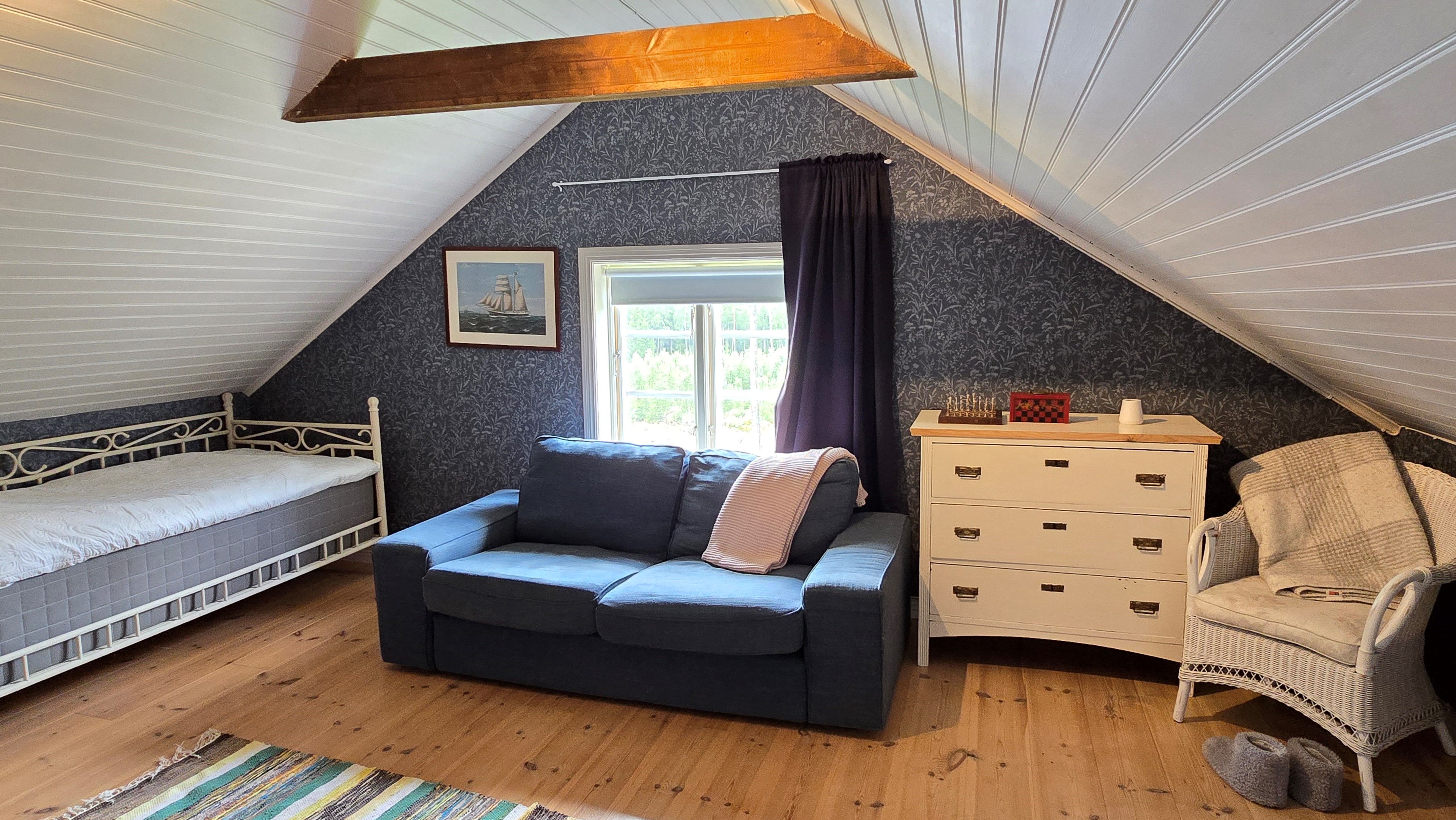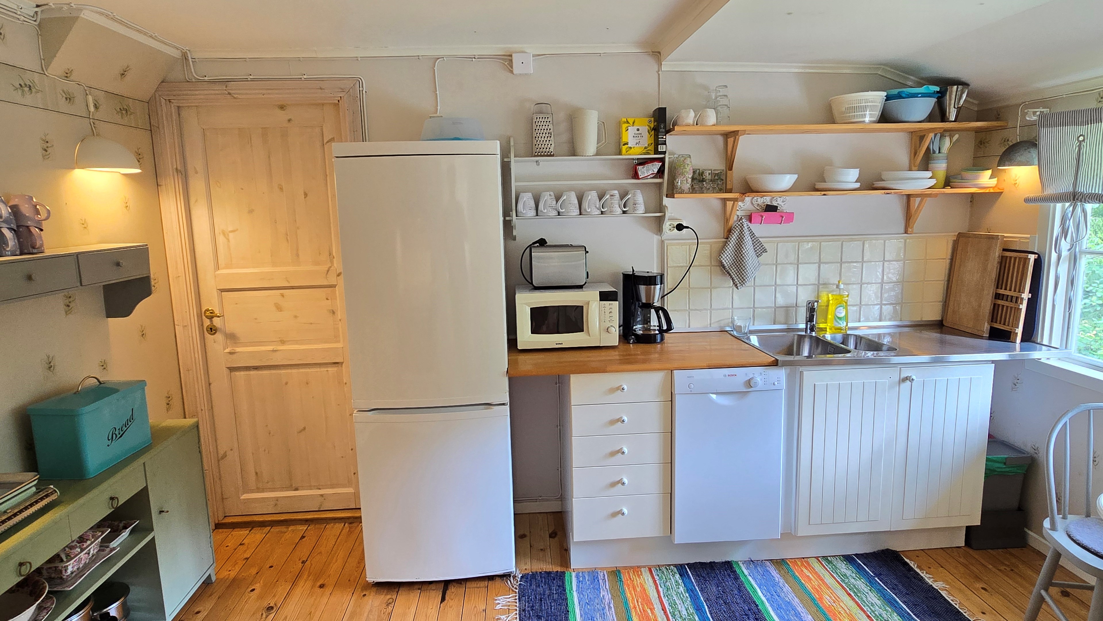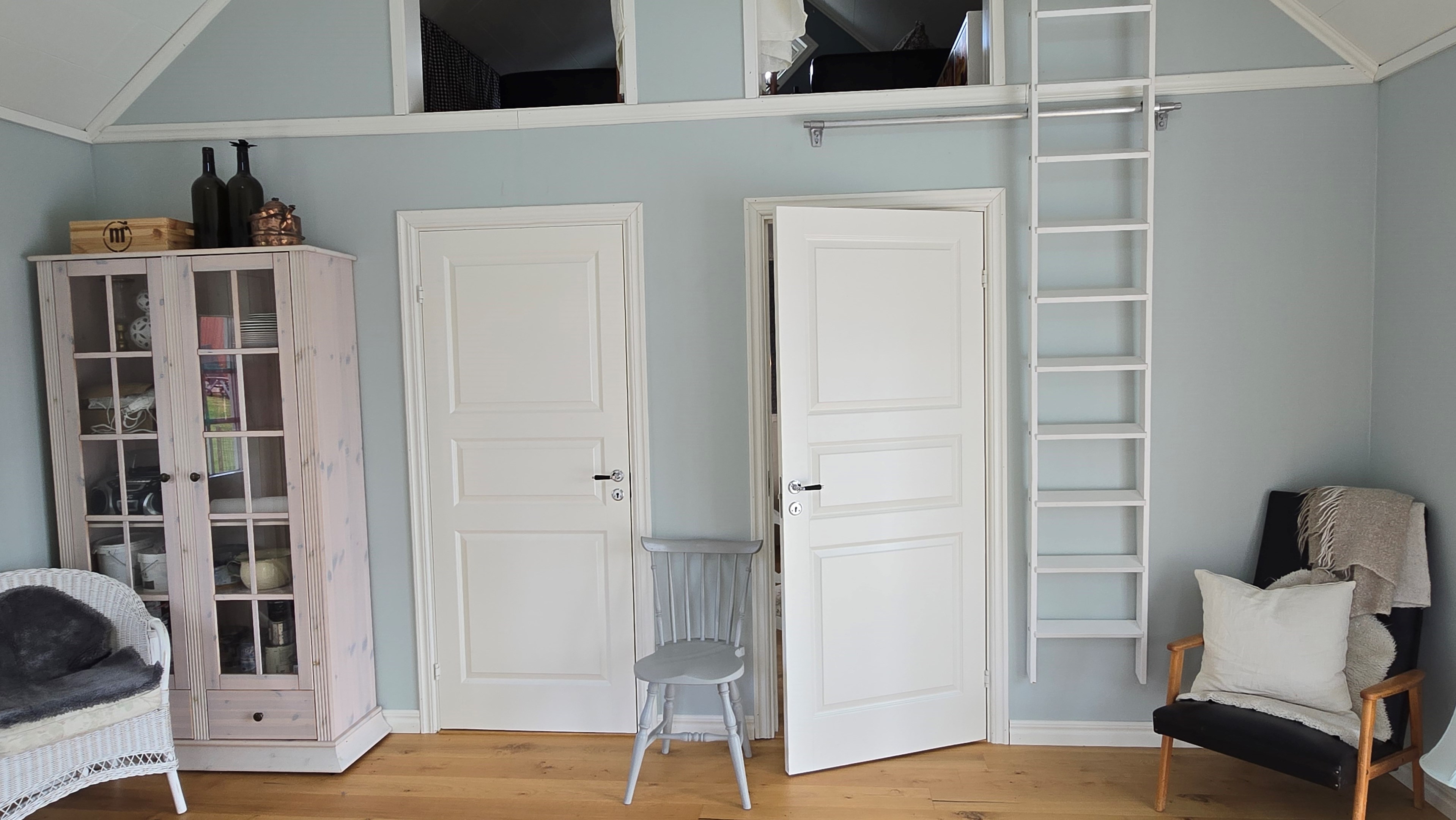 Lammafors är en skogsgård med mangårdsbyggnad från 1850:talet på ca. 125 m2 i mycket fint renoverat skick. Nytt undantag med egen toalett från 2019 på 40 m2 + sovloft på 20 m2 och en stor terrass på 35 m2. Självbärande gästhus i fint skick från 1960 på ca. 75 m2 också med stor terrass på ca. 35 m2, på egen (friköpt) tomt på 650 m2 och utsikt över ån. Gästhuset hyrs ut sommartid med gott resultat. Lada på ca. 75 m2 med tillbyggd hönsgård. Nytt uthus på ca. 12 m2. Vedeldad bastu med utedusch. 5,6 ha tomt med naturskönt och ensligt läge i skogen, genomlöpes av Bodaån. Möjlighet för småviltjakt och enklare djurhållning. 200 km. från Helsingborg. Filmvisning: https://youtu.be/WZXJCZs5Lm8 Lammaskog Lammafors 1 (och Lammaskog 5) vid Vrigstad är en gård med mangårdsbyggnad med anor från mitten på 1800-talet på ca. 125 m2 boyta och i mycket fint renoverat skick. Huset har bl.a. nyare tak med betongpannor (2015), nya isolerglasfönster, nyare elinstallationer, fint målat och tapetserat inne och ute med bevarande av den gamla stilen så långt som möjligt, men ändå med nytt badrum och kök (2022), så huset fungerar även i dagens värld. Helt ny golvkonstruktion under kök och badrum och alla golv i bottenplan är utbytta till breda golvplank. Gamla plankgolv bevarande på övervåningen och i flera tak. Renoverad och godkänd skorsten med rör till varje eldstad (utom bakugn och en kakelugn, som ej är i bruk). Här finns Morsø (2024) braskamin i vardagsrummet, en Jøtul braskamin i biblioteksrum, vedspis i köket och en öppen spis med insats på övervåningen. Därutöver finns Daikin luftvärmepump (2024). Tillbyggd och nu helt isolerad och integrerad veranda med isolerglasfönster (2023) och morgonsol. Vatten från borrad brunn på 70 m. (2018) och avlopp till godkänd trekammarbrunn med infiltration (2003). Fiber indraget (2022). Ingång via den inbyggda verandan med trägolv, pärlspont på väggar och i tak och en synlig timmervägg. Hall med trappa till övervåningen, säkringsskåp och trägolv. Stort vardagsrum med trägolv och i gamla plank i taket, effektiv Morsø braskamin och Daikin luftvärmepump. Nytt mysigt lantkök med trägolv pärlspont på väggar och tak, diskbänk, köksö, elspis med induktion, spisfläkt, mikro, diskmaskin, kyl/frys (med kallvatten/is), skafferi och den gamla eldstaden med vedspis och bakugn. Bibliotek, TV-rum eller extra sovrum med nytt trägolv, plank i taket och en effektiv Jøtul braskamin. Nytt badrum med plastmatta på golvet (ej våtrum) med diskbänk, tvättmaskin, torktumlare och duschkabin. Lucka i golvet med vatteninstallationer i torrt källarrum. Separat rum för WC och handfat. På övervåningen finns trapphall med lägre takhöjd (ca. 1,80 m.) med målat plankgolv. Sovrum 1 i kupan med trägolv, träpanel i tak, enkelsäng och brun porslinskakelugn (ej i funktion). Nyare sovrum 2 som är inrett upp i nocken med nya breda golvplank, träpanel i tak, bäddsoffa, enkelsäng och öppens spis med insats (godkänd). Sovrum 3 inrett upp nocken med nya breda golvplank, dubbelsäng och synlig timmervägg. Takhöjden i bottenvåningen är ca. 2,20 m. lite variabelt och lägre dörrar. En del möbler och andra inventarier kan köpas till eller medfölja, enl. önskemål och avtal med säljaren. Bredvid huvudhuset finns ett nybyggt (2019) gästhus som säljarna kallar "undantaget" på ca. 40 m2 + ca. 20 m2 inrett sovloft med låg takhöjd. Här finns också en stor terrass på ca. 35 m2 i sydväst läge med massor av sol hela dagen. Undantaget består av ett stort vardagsrum som är inrett upp i nocken med stor dubbel terrassdörr som ger fint ljusinsläpp och vacker utsikt. Stege leder upp till sovloftet. Toalett med WC och handfat (ej dusch). Två separata sovrum med var sin dubbelsäng, bröstpanel på väggarna och slipbart trälaminat på golvet. Ny luftvärmepump (2024). Härutöver finns även ett mindre hus på ca. 75 m2 som ligger på sin egen tomt, men i direkt anslutning till huvudfastigheten och ca. 100 m. fågelvägen från huvudhuset till gästhuset. Huset är byggt ca. 1960 och är likaledes genomgripande renoverat och i fint skick med samma stil som det stora huset. Bra betongpannor på taket. Enkelglasfönster med innerfönster. Här finns hall med trappa till övervåningen och säkringsskåp. Vardagsrum med trägolv, matplats, bäddsoffa, öppen spis med insats och ny luftvärmepump (2024). Kök med trägolv, liten matplats, diskbänk, kyl/frys, diskmaskin, elspis med spisfläkt och utgång till ca. 35 m2 stor terrass som har utsikt över Bodaån, som rinner precis nedanför huset. Hall med garderober, klinkergolv, säkringsskåp och larm till den slutna tanken (avlopp). Egen vattenbrunn som ej har sinat. Rejält badrum med klinkergolv, WC, handfat, dusch och tvättmaskin. På övervåningen finns liten trapphall med trägolv, pärlspont i taket och inbyggda garderober. Sovrum med trägolv, pärlspont i taket och två bäddsoffor. Allt säljs samlat som utgångspunkt, men om man vill kan man senare välja att sälja av det lilla huset med sin tomt på 650 m2, då den redan är avstyckad och utgör en självständig fastighet. Huset är också mycket lämpligt att använda till uthyrning, om man inte behöver platsen själv. Nuvarande ägare hyr ut huset ca. 2 månader sommartid för ca. 70 000 kr totalt via AirBnB. Man skulle lätt kunna hyra ut huset mer om man vill. Ut över bostadshusen finns en ladugård med plåttak på ca. 75 m2 med gott om plats för lagring. Ny elcentral i ladan och här finns rum för ved, lagring, litet stall till får och en tillbyggd utvändig hönsgård. Därutöver finns nyare (2019) oisolerat uthus i anslutning till undantaget på ca. 12 m2 med plats för ved och redskap. Slutligen finns även ett fristående bastuhus (2019) som är vedeldat och med sin egen lilla terrass och en utvändig dusch, som värms av solen. 56 200 m2 (ca. 5,6 hektar eller 11 tun