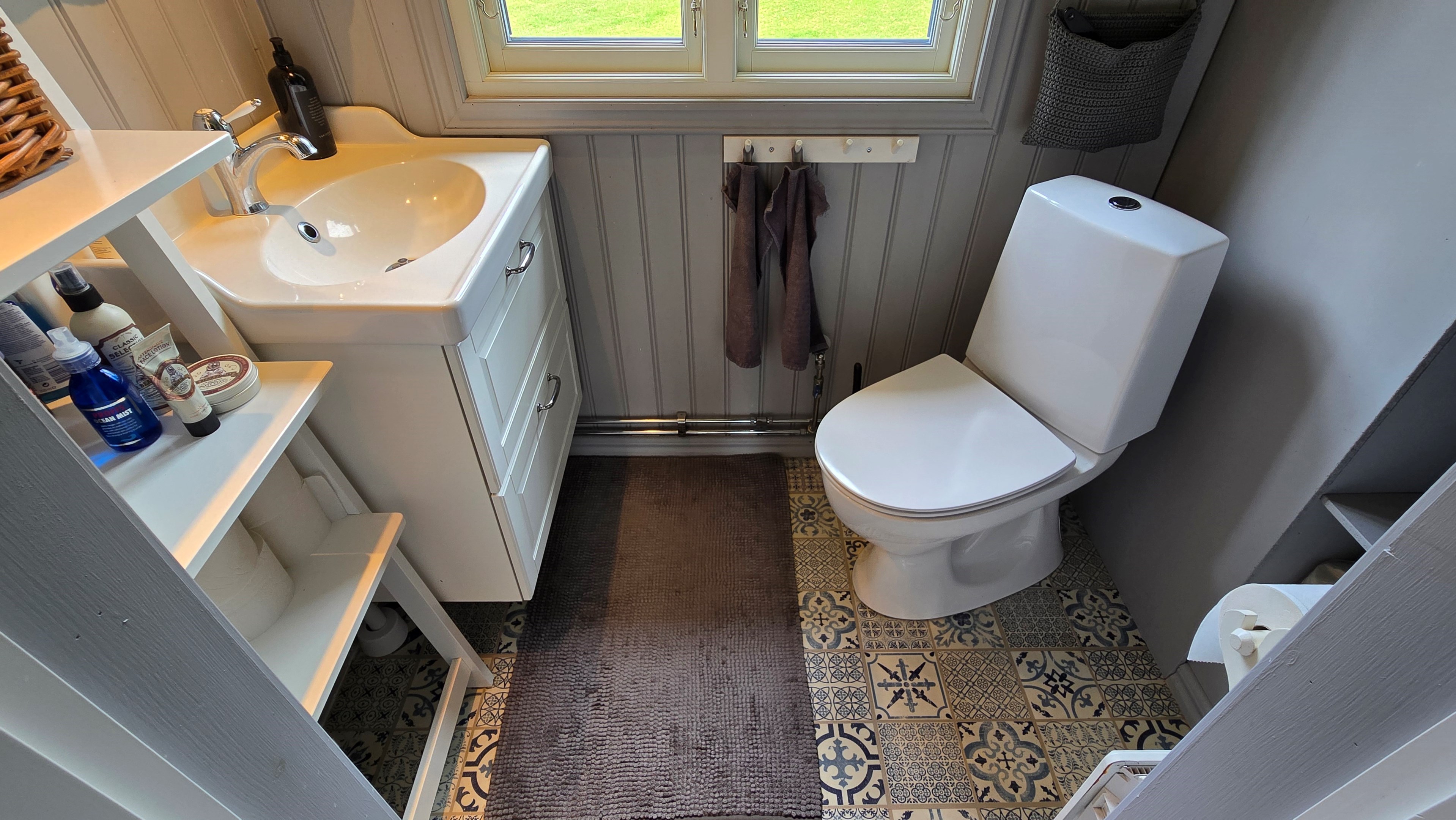 Vatten och avlopp gemensamt med huvudbyggnaden. Avloppet har egen pumpbrunn, där avloppsvattnet pumpas till trekammarbrunnen.