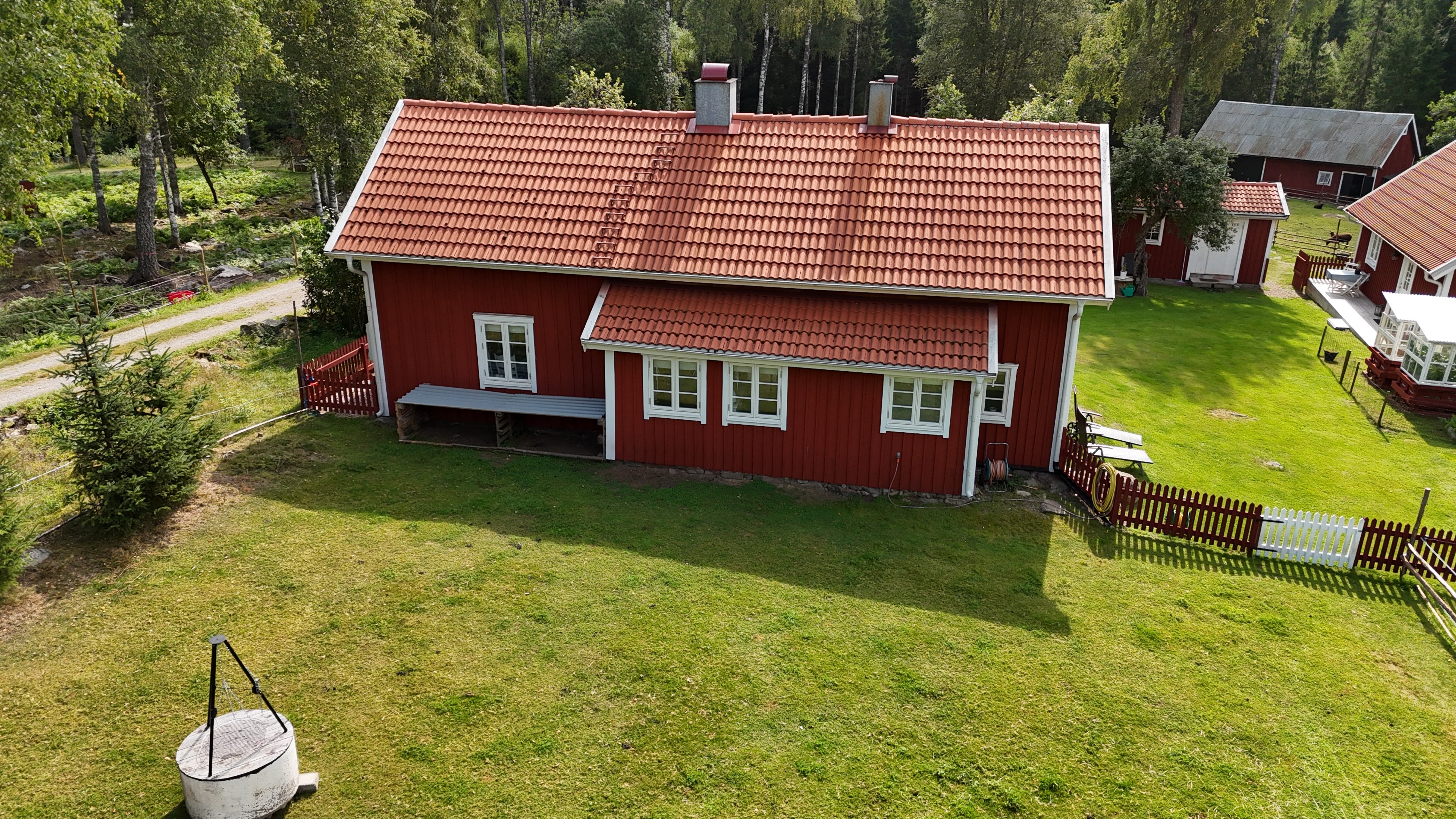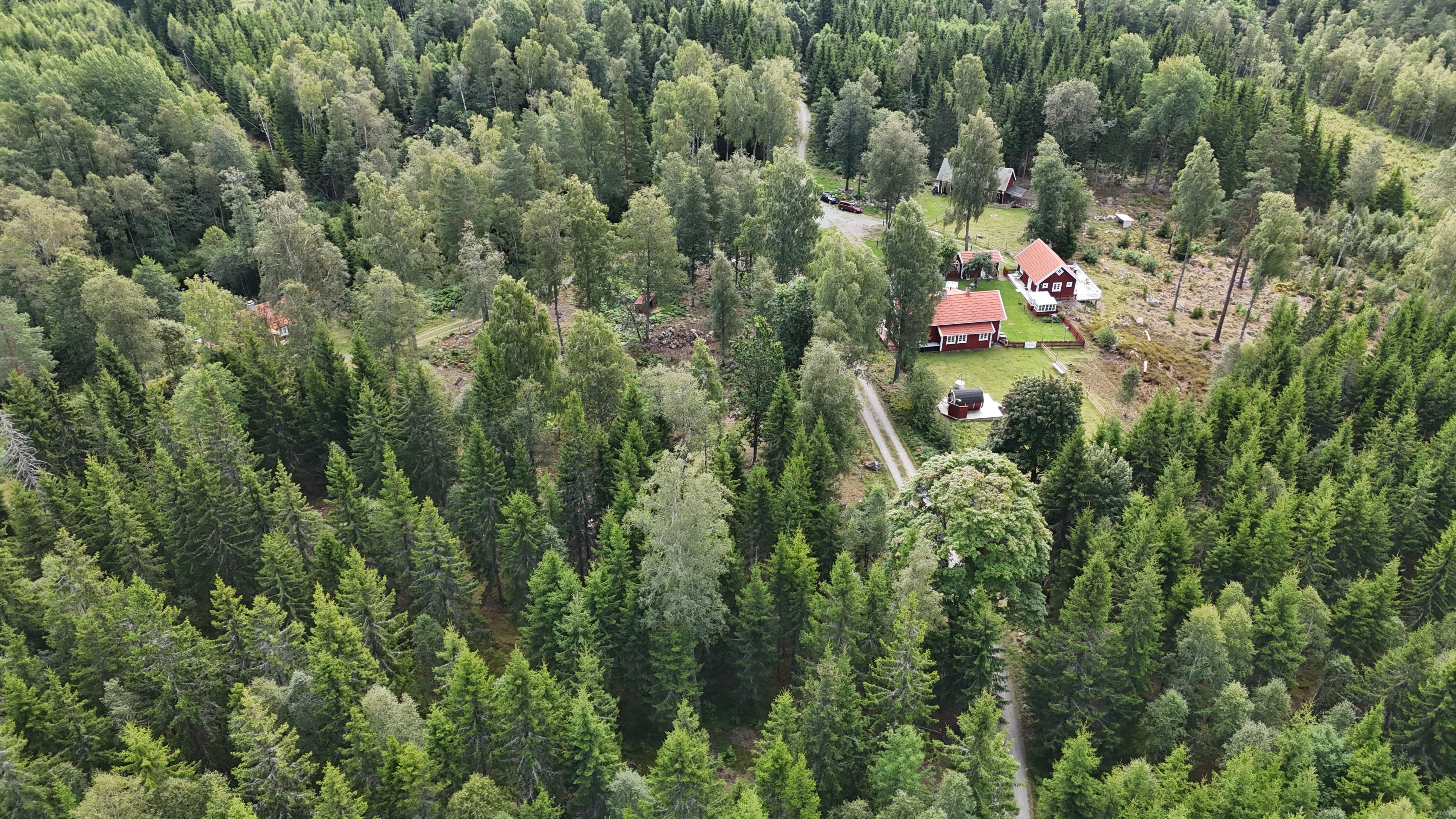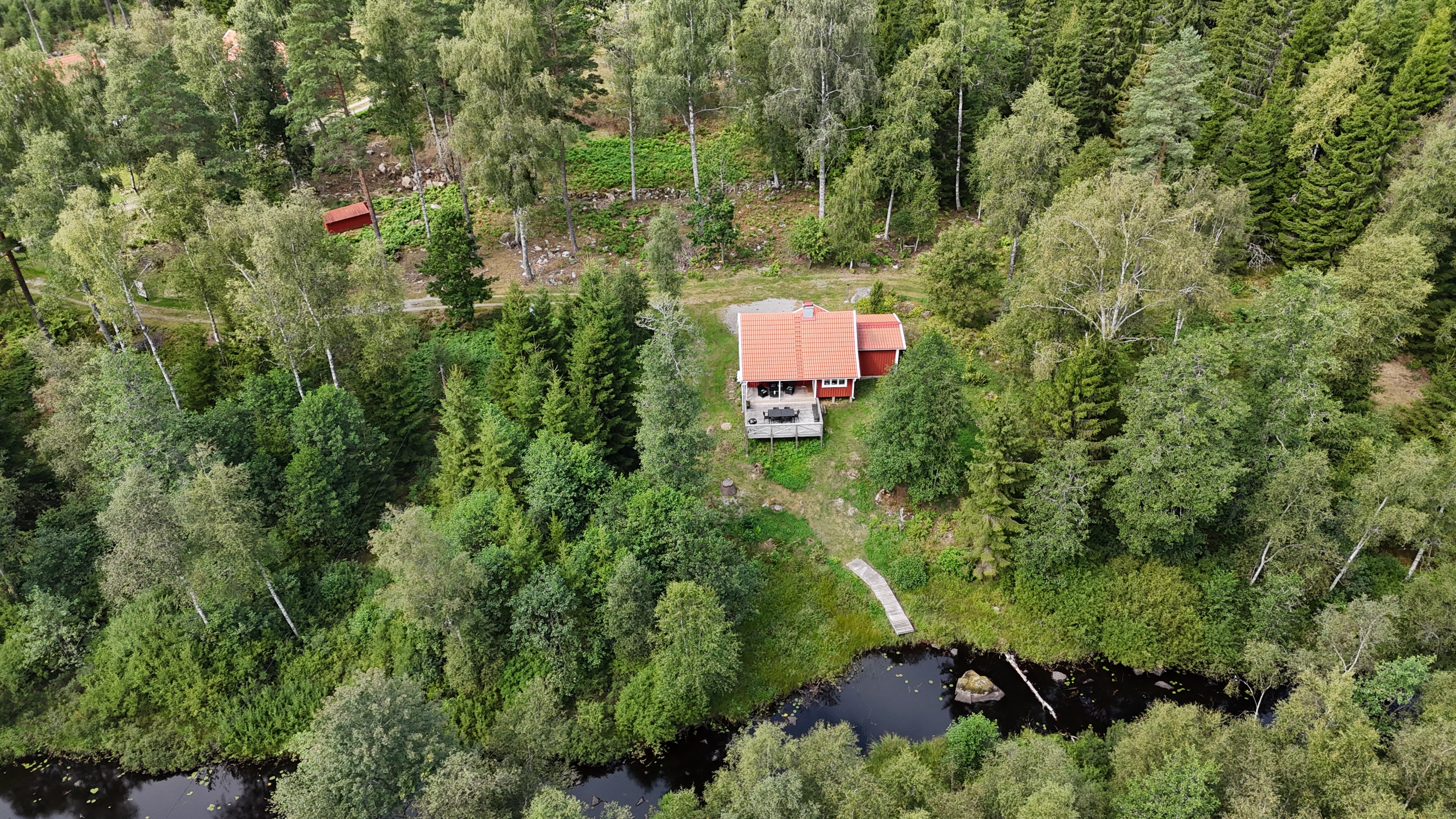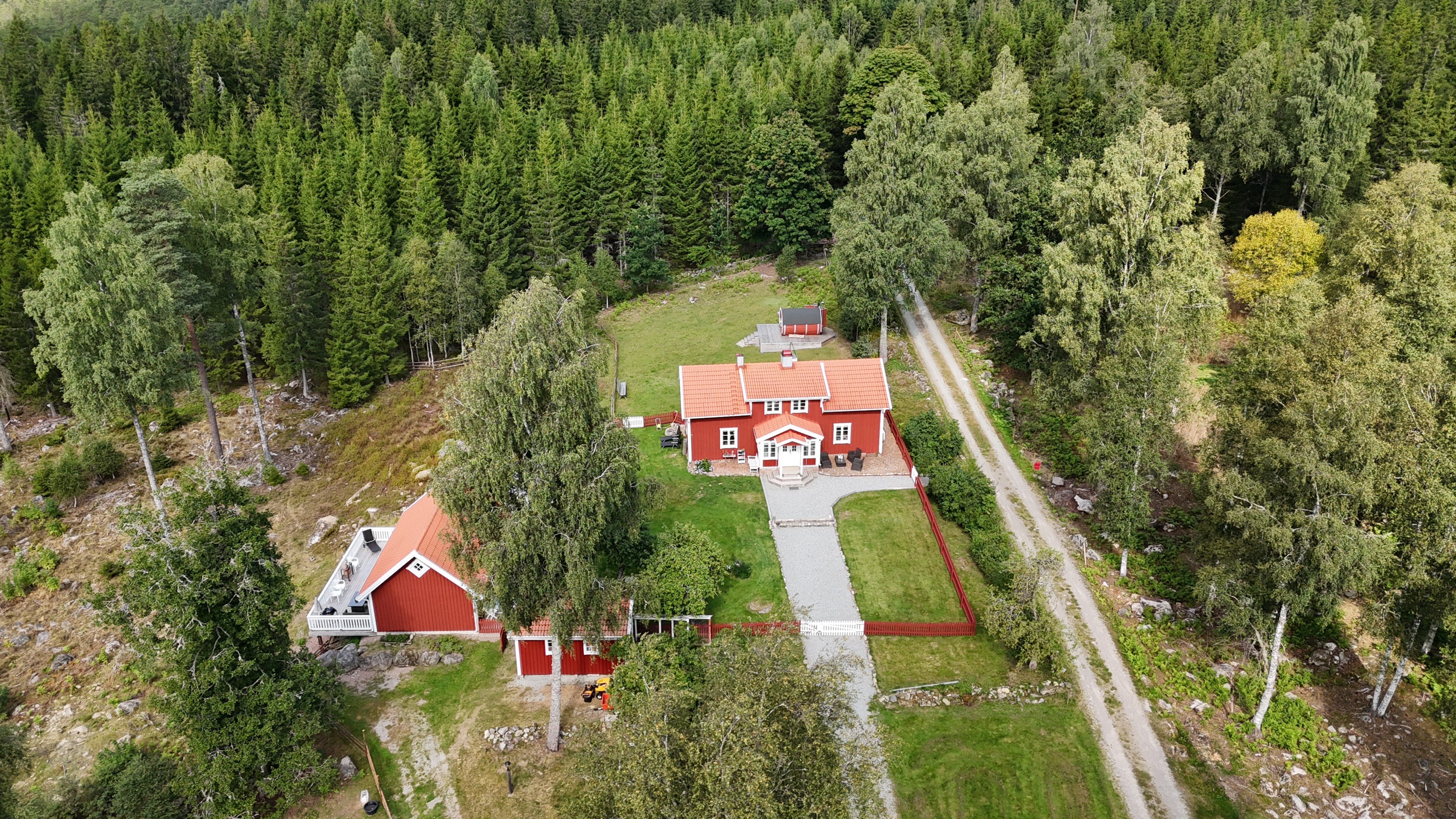Skogsgård på ca. 5,6 ha med två bostadshus, undantag, lada, ensligt läge och genomlöpes av Bodaån.