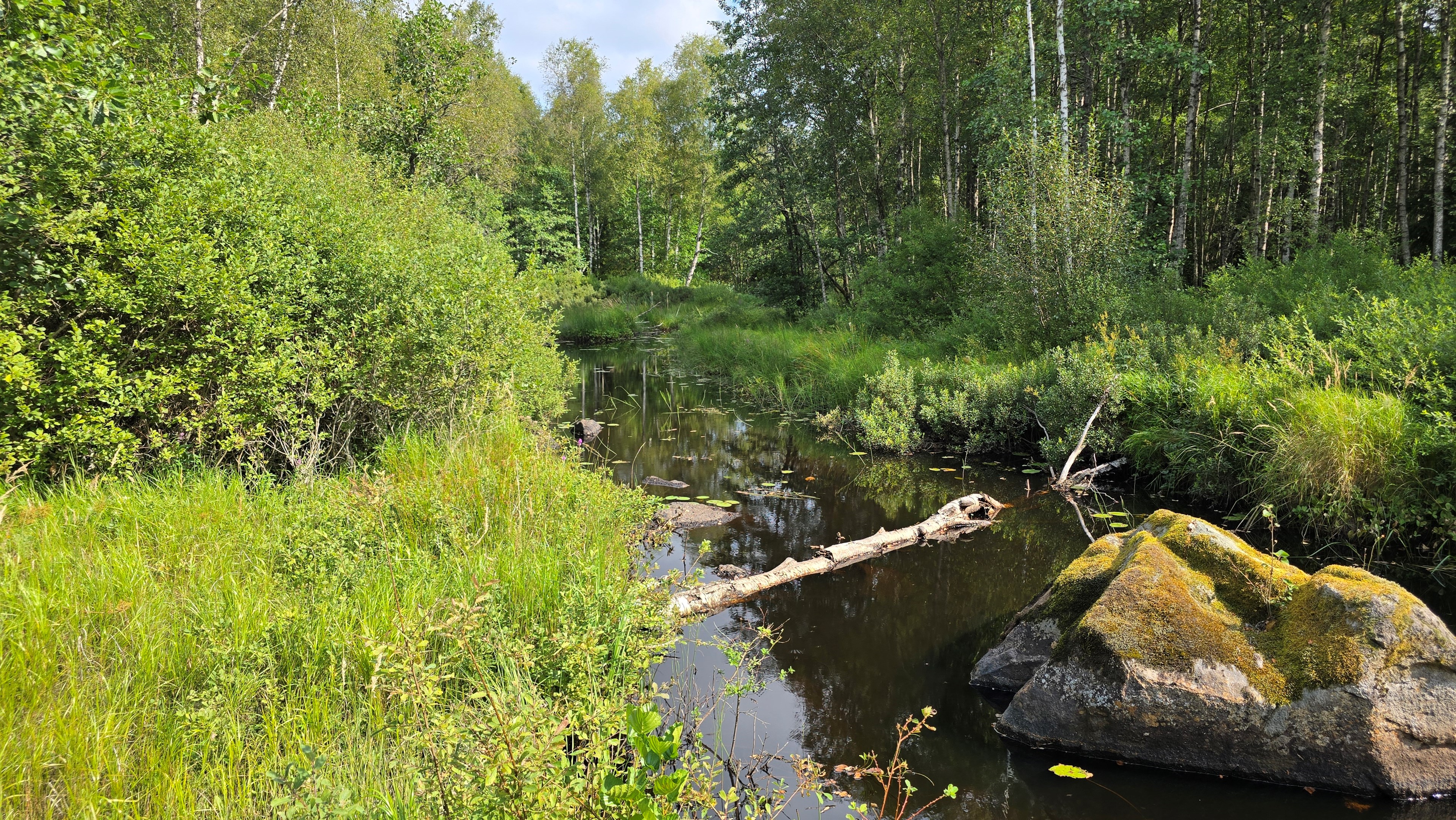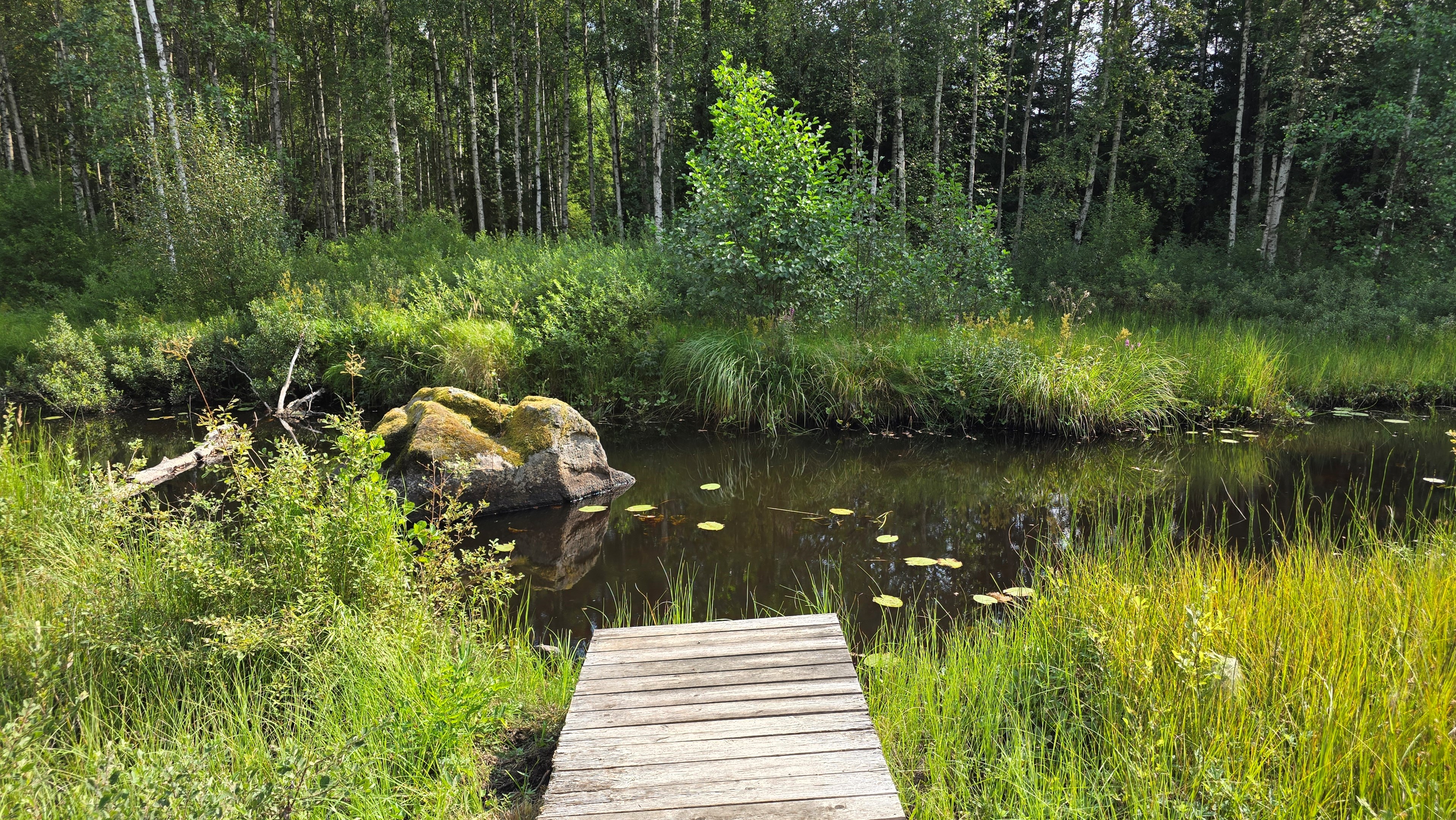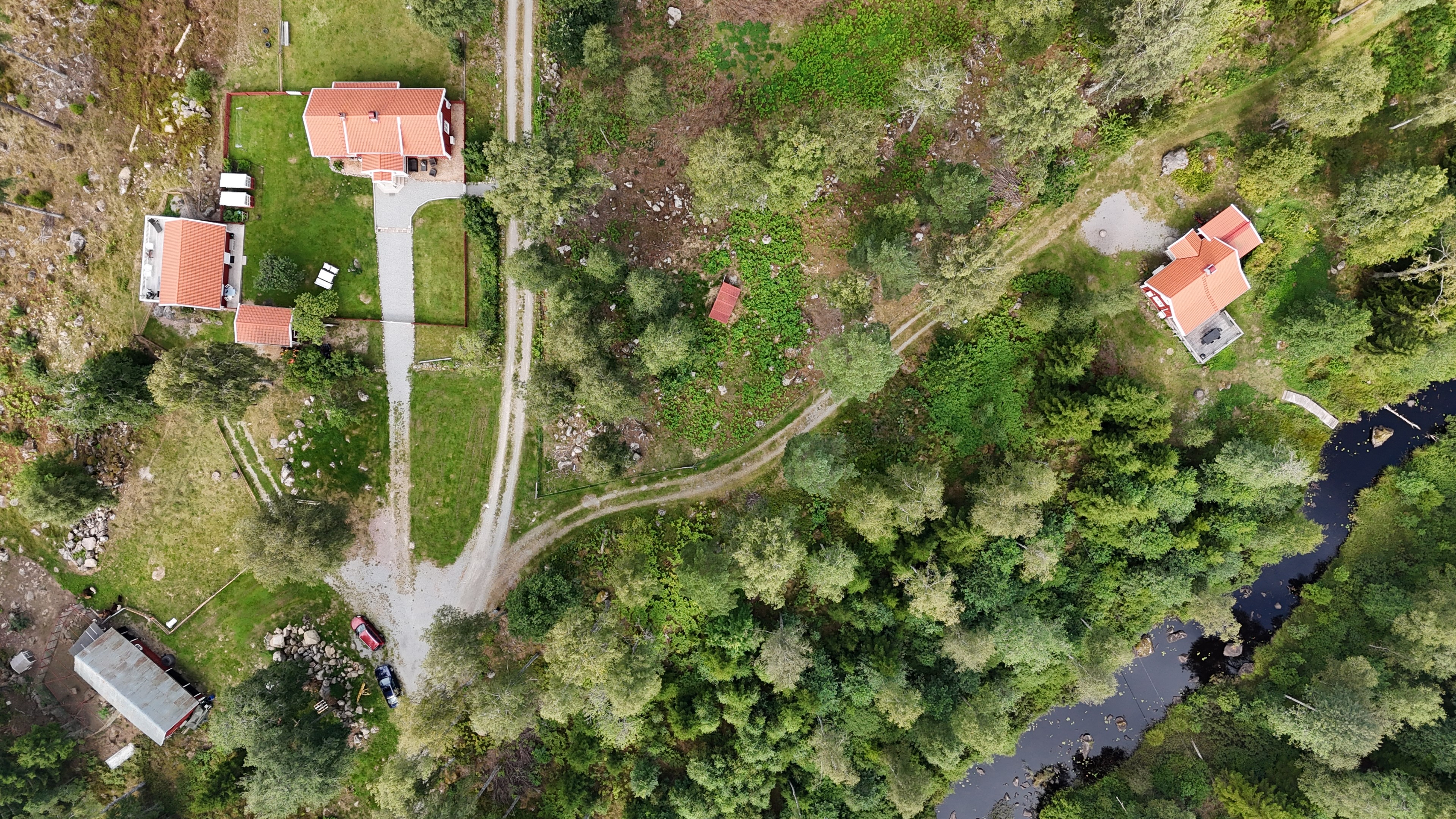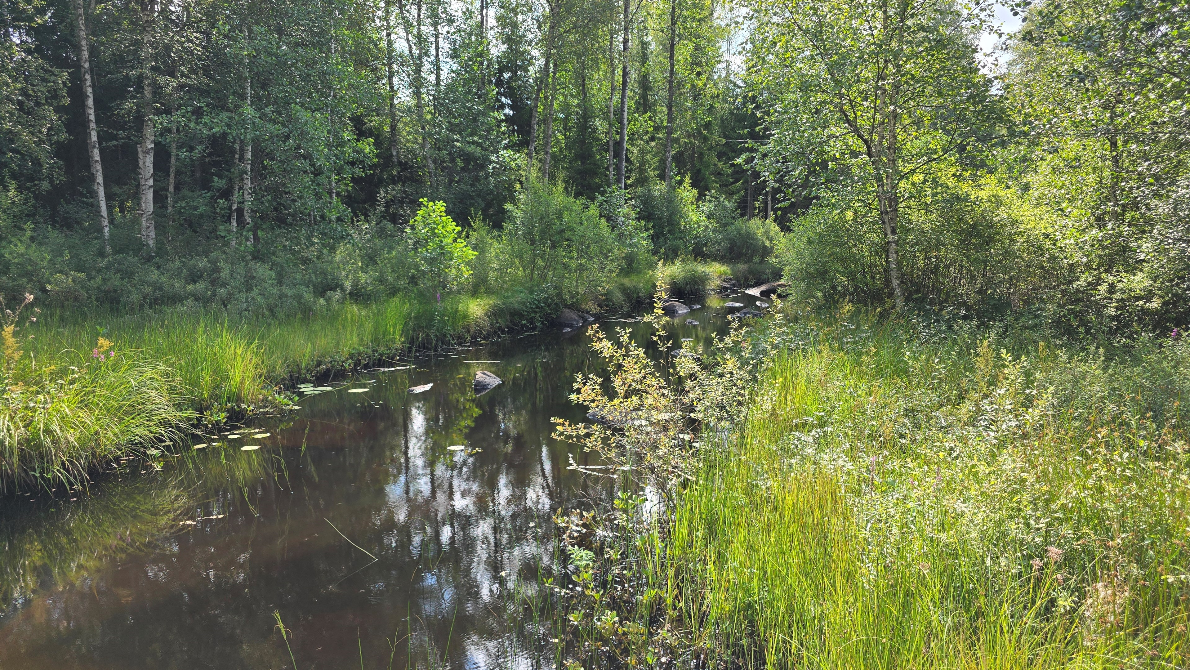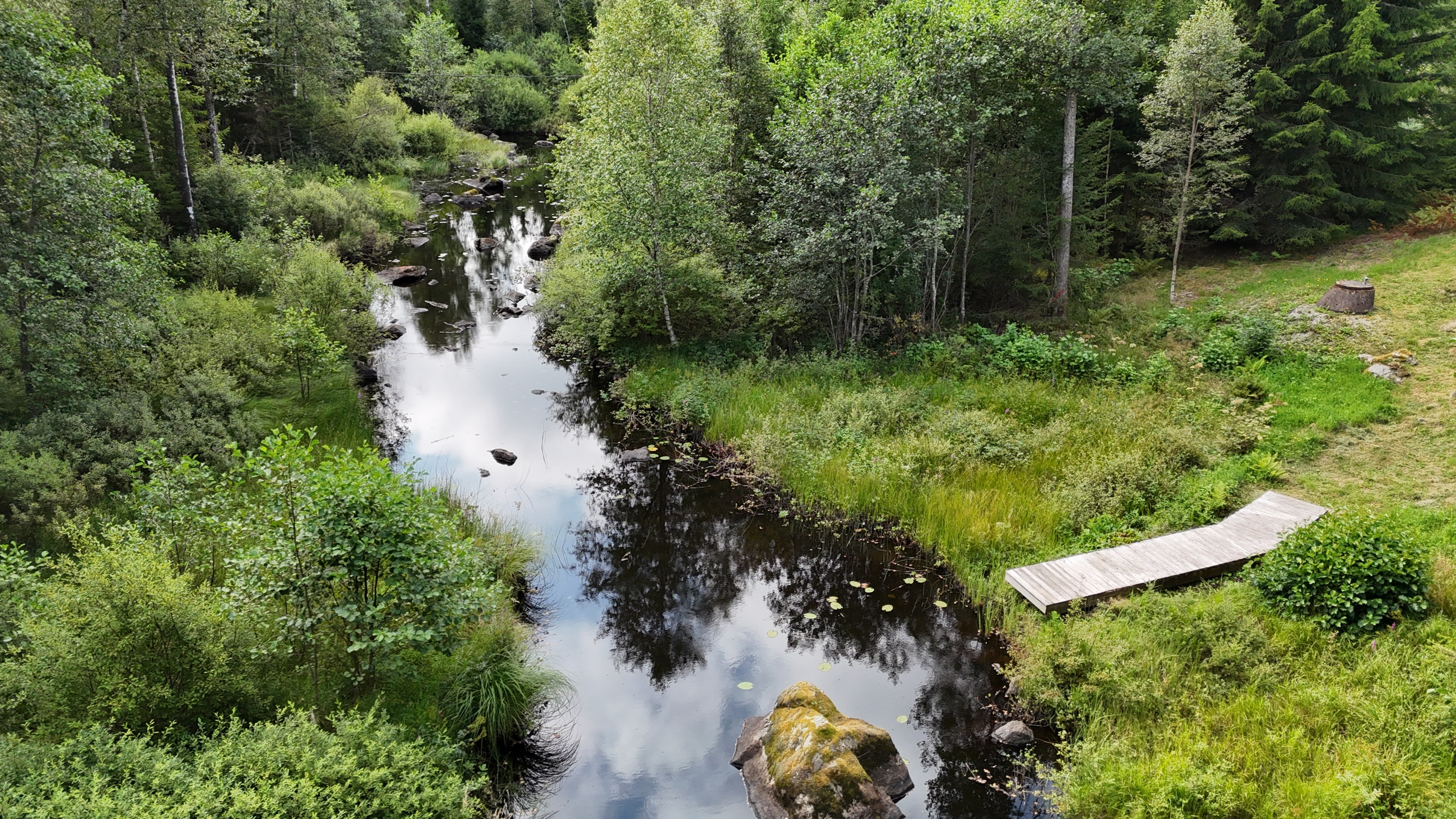 Skogsgård på ca. 5,6 ha med två bostadshus, undantag, lada, ensligt läge och genomlöpes av Bodaån.