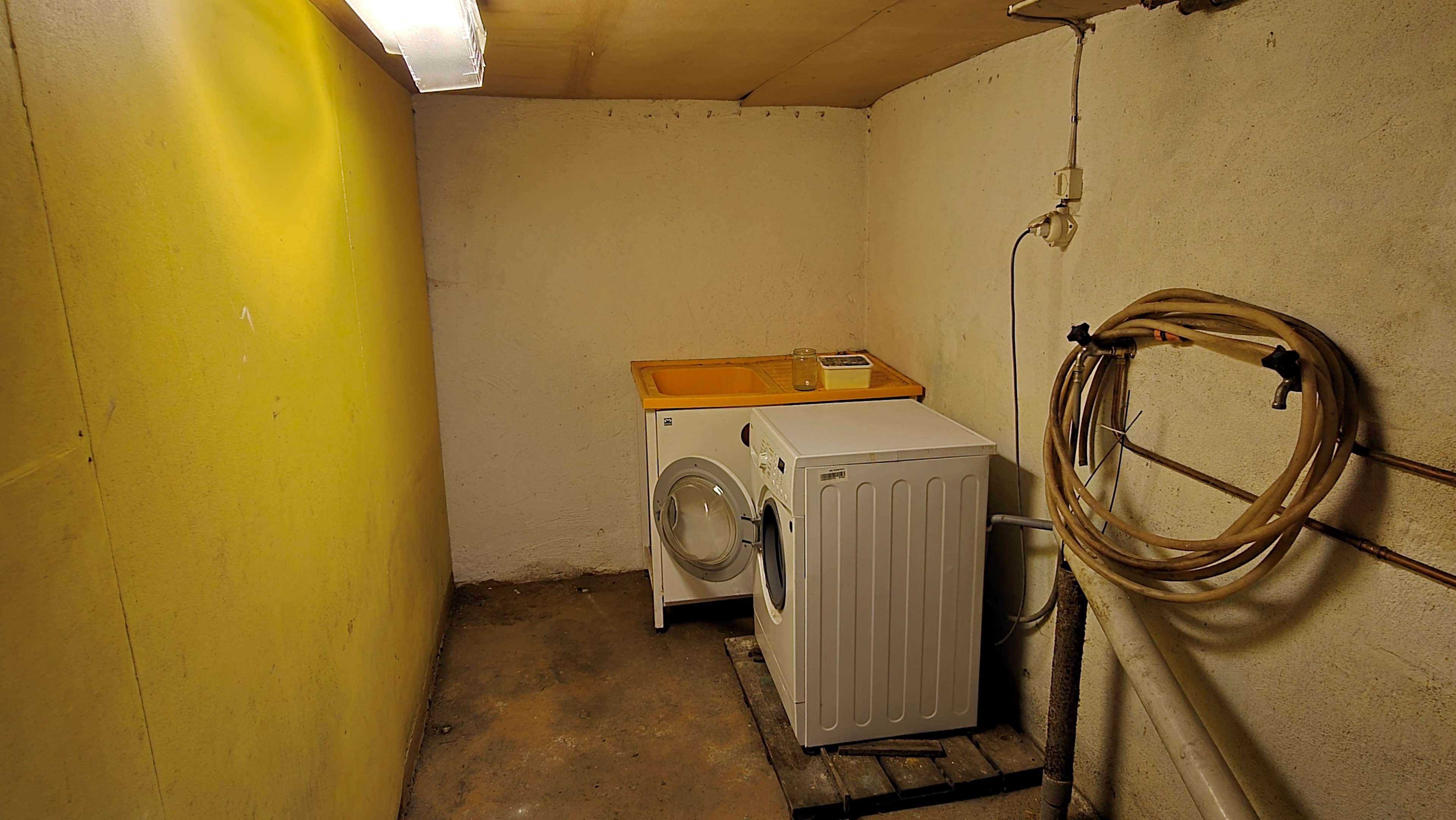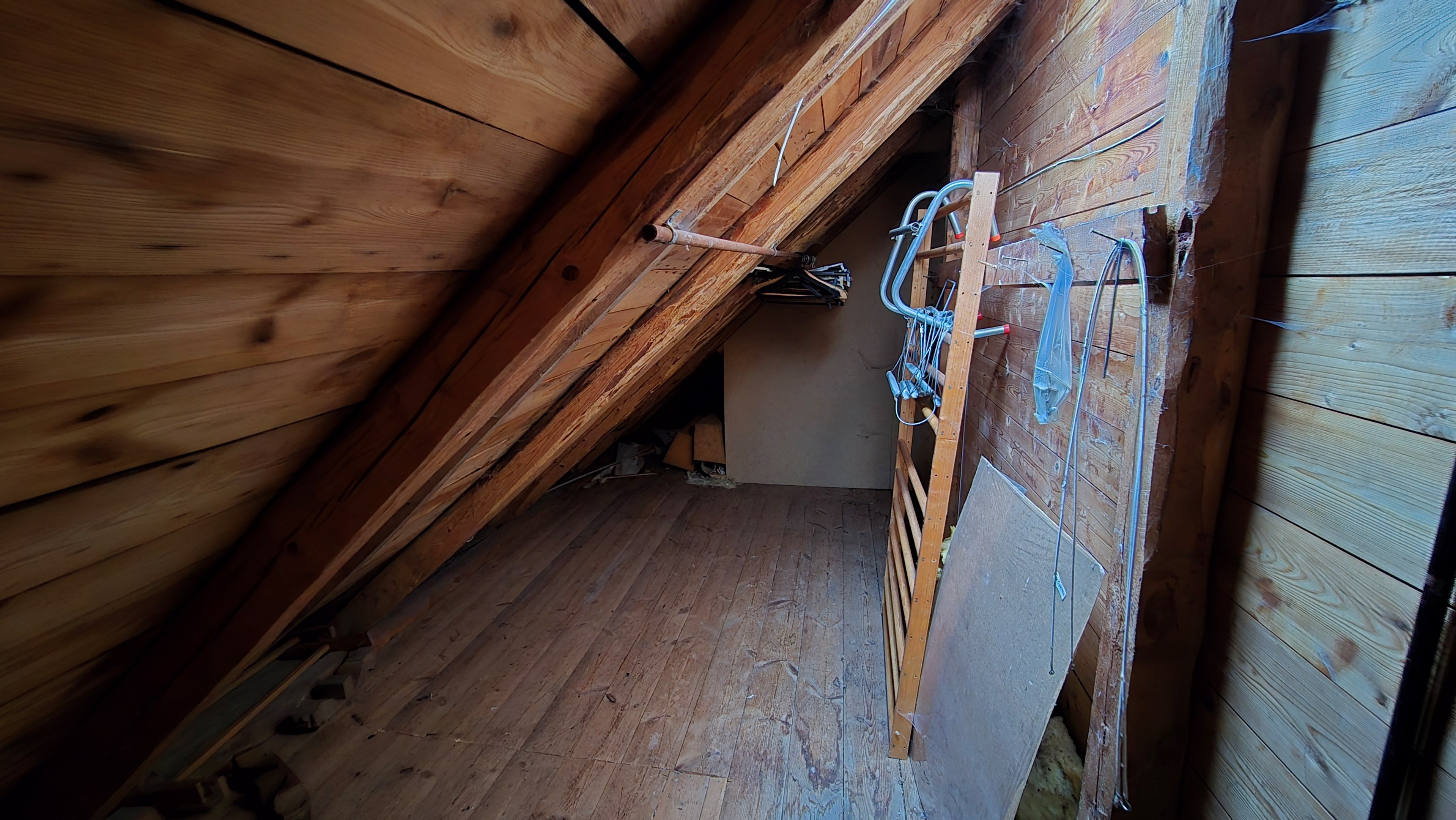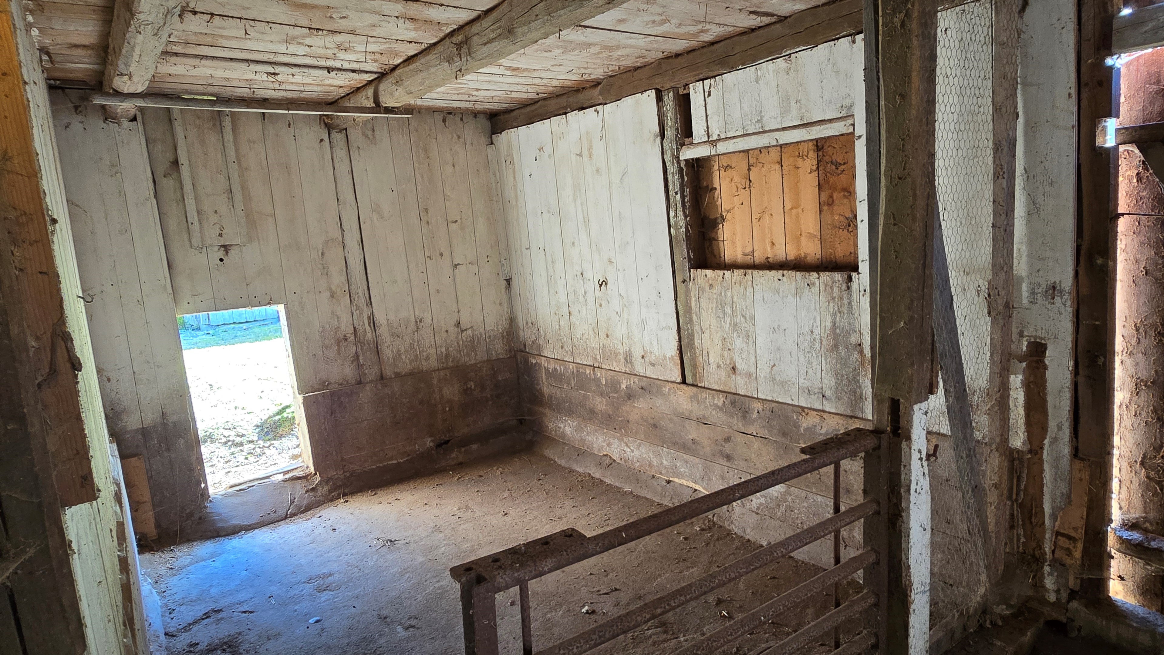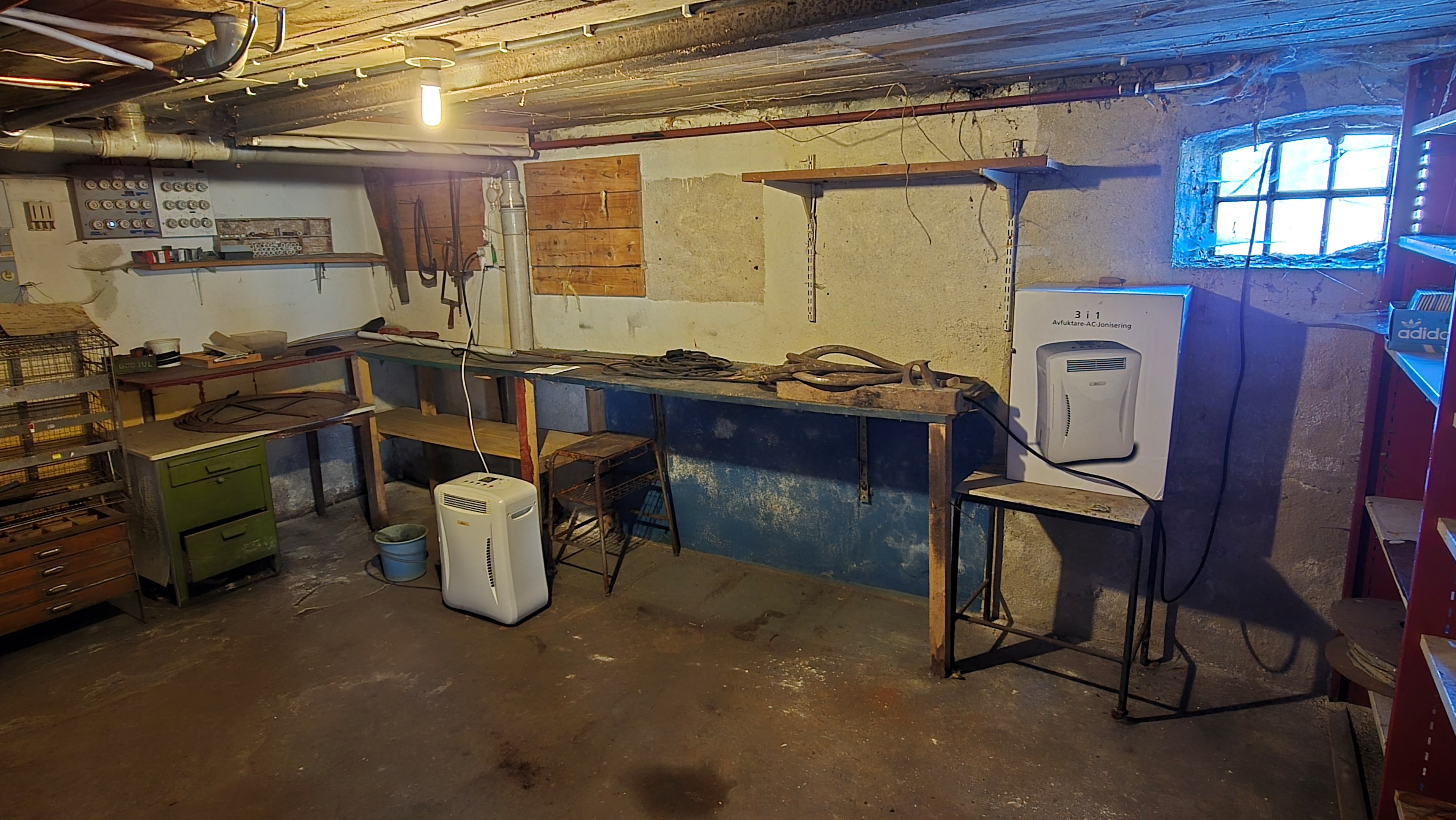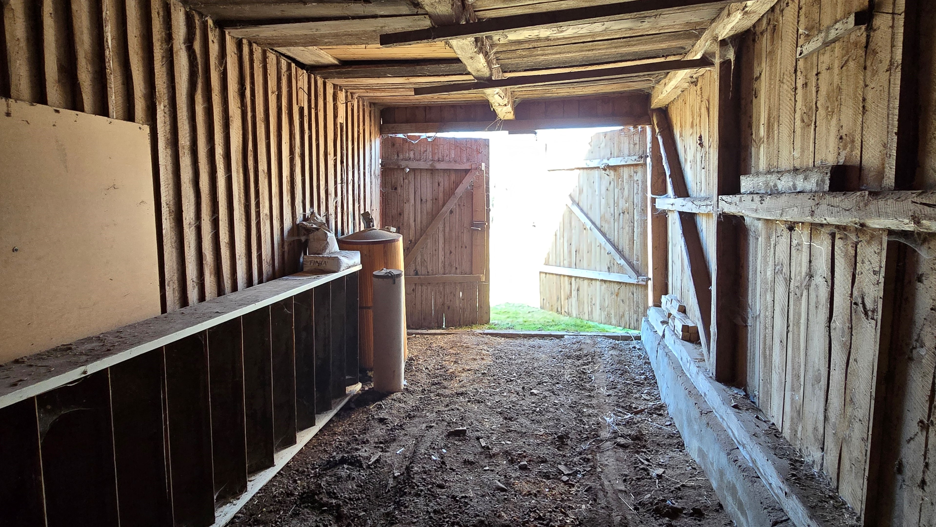 Lada/uthus på ca 60 m² med stort rum med gjutet golv med plats för t ex gym, hobby eller lek + vindsrum med gammalt bordtennisbord. -