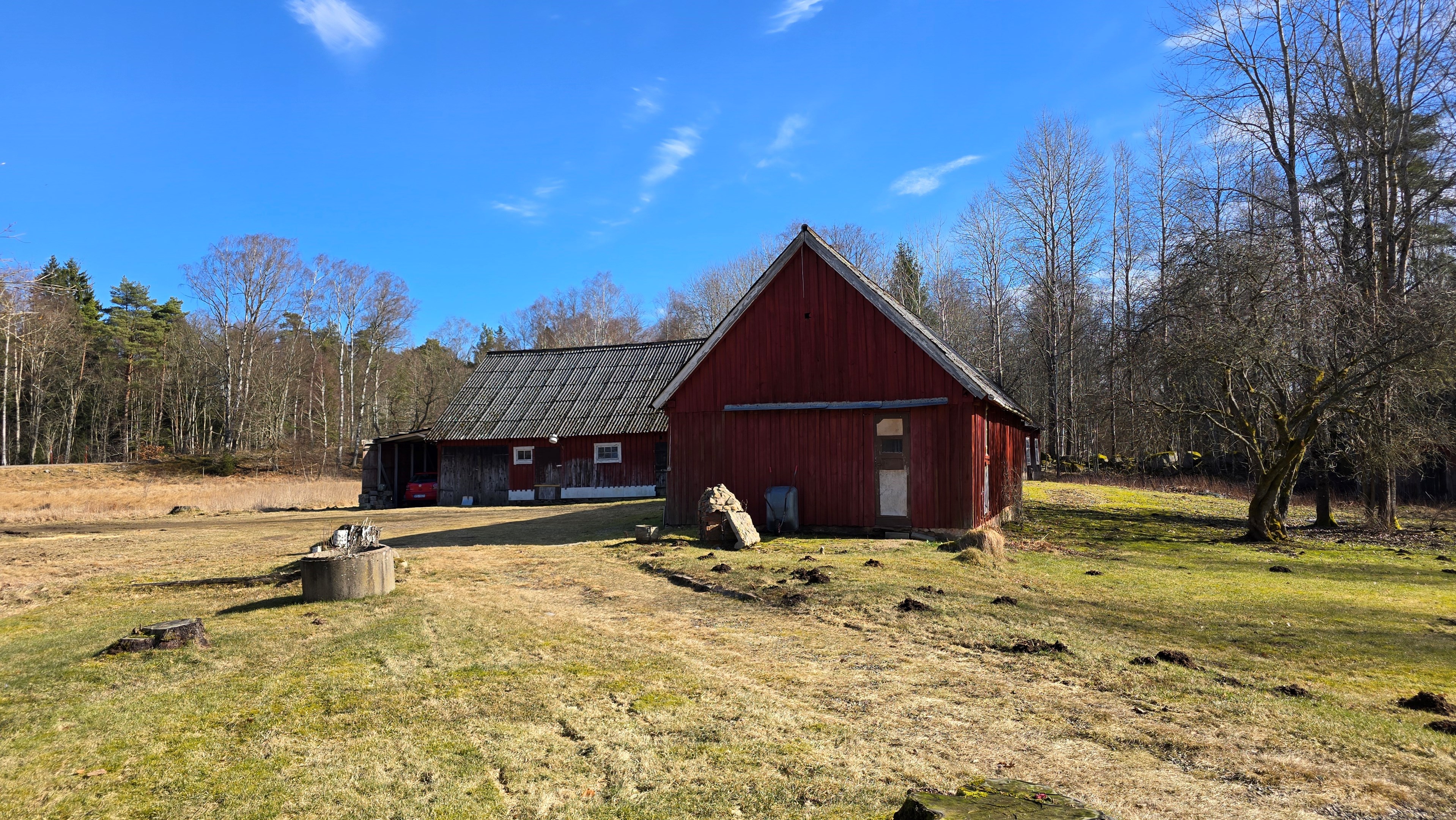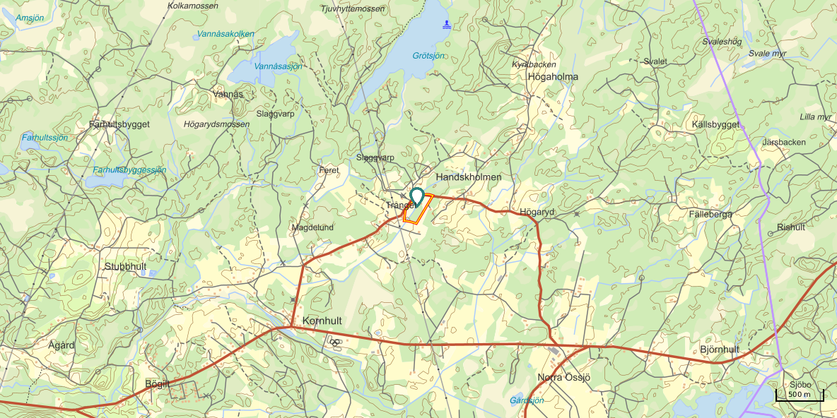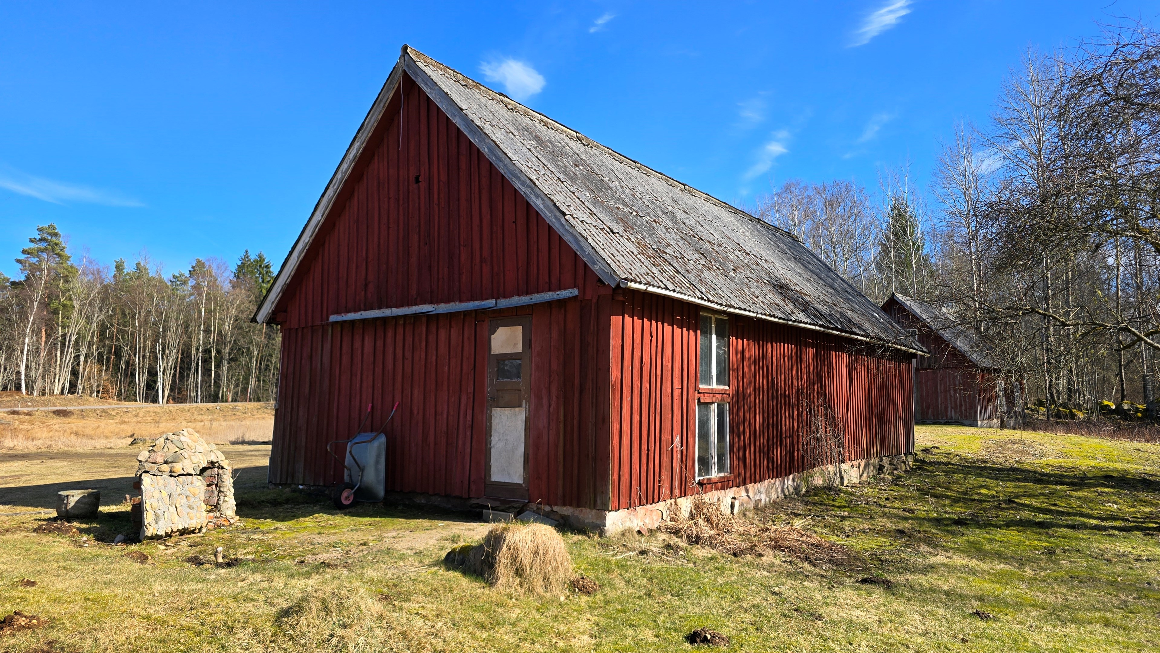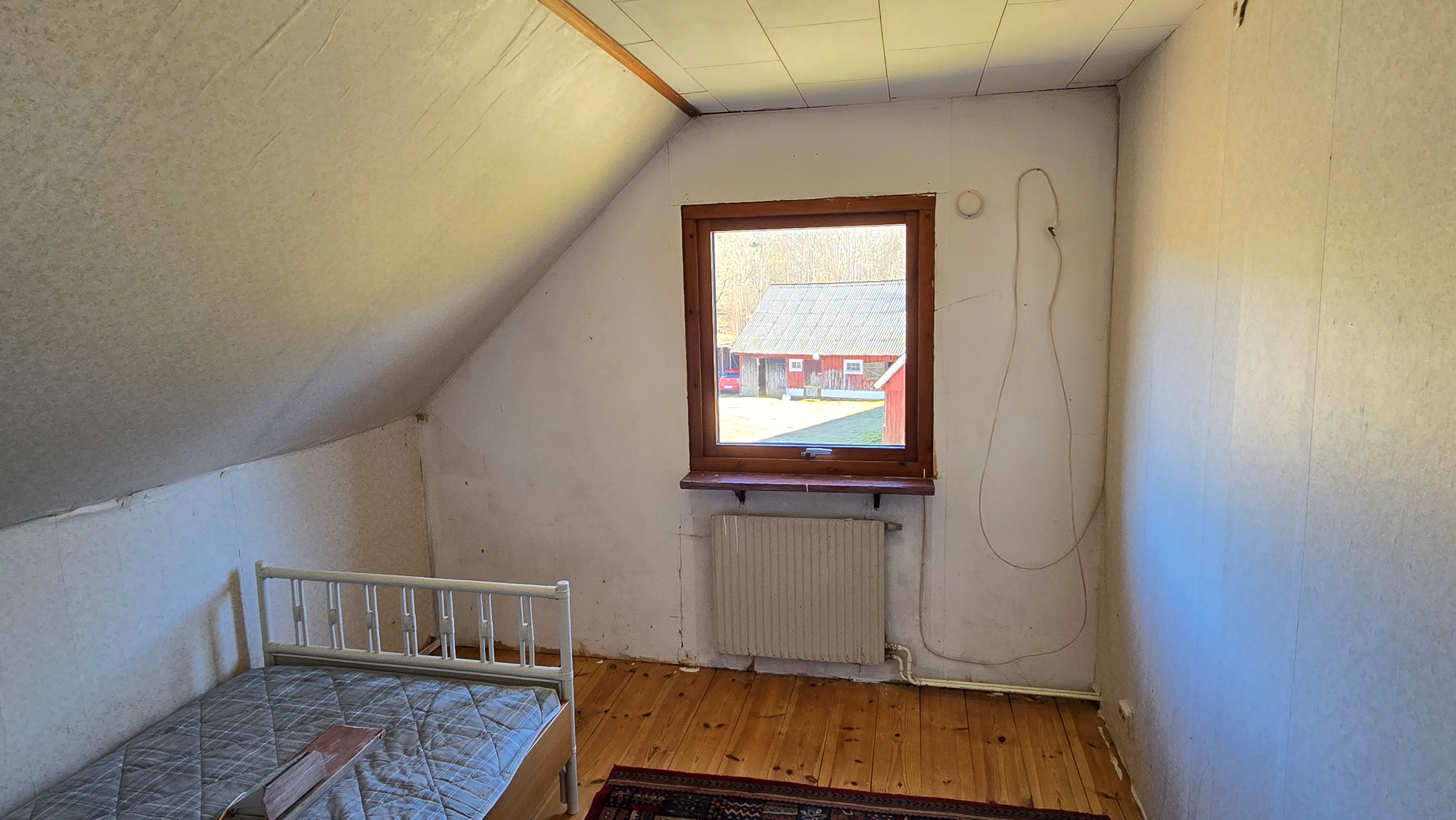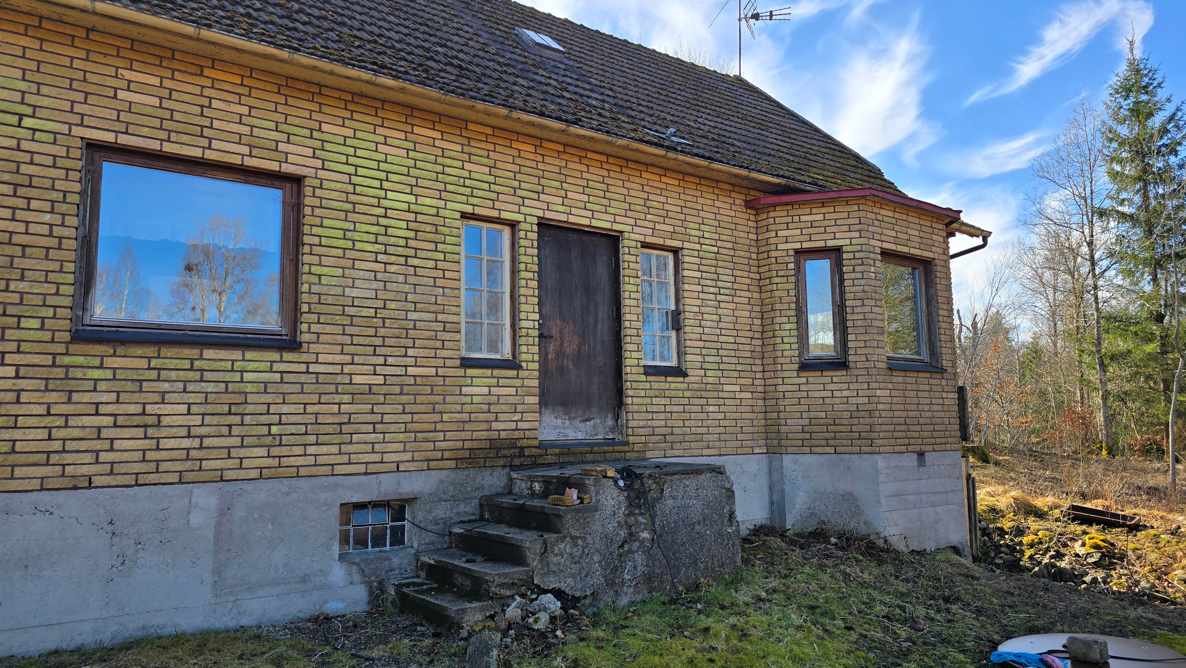 Gård med landvilla från ca 1925 med en boyta om 117 m² samt full källare. Uppvärmning sker med braskamin och elvärme, tidigare även vattenburen värme med olja/vedpanna (ej i drift). Vatten från egen brunn med en del nya ledningar, godkänt avlopp från 2008. Lador på 90 m², två på 60 m² var och uthus på 30 m². Tomten är 50 130 m² (5 ha) med gräsängar, skog och egen damm. Avstånd till närmaste sjö med badplats är ca 5 km. Ca 70 km från Helsingborg och 130 km från Malmö. Filmvisning: https://youtu.be/Wdzltk5wAGk Högarydsvägen 54 vid Hishult är en gård med villa på ca. 117 m² boyta + full källare på ca. 65 m². Huset är byggt omkring 1925, med en stomme i trä och skalmur av tegel. Uteplats på ca. 25 m² på baksidan av huset med betongsten och ungefär hälften är under tak. Huset används idag som permanentbostad, men är i behov av omfattande renovering både invändigt och utvändigt. Taket är av betongtegel, men flera vindskivor och takutsprång behöver bytas och det kan vara aktuellt att lägga om hela taket inom en snar framtid. Reservtegel finns att göra reparationer med. Fönstren är isolerglas, men två av rutorna är punkterade och behöver bytas. Skorstenen är nyligen renoverad och godkänd av sotare. Elsystemet är äldre med porslinssäkringar, utan jordfelsbrytare och med flera provisoriska lösningar, varför en genomgång och uppdatering eller byte rekommenderas. Uppvärmning sker med en godkänd braskamin (Handöl) i vardagsrummet, en braskamin i hallen på övervåningen samt några direktverkande element. Det finns ett äldre vattenburet system med gammal olja/vedpanna och ackumulatortankar (1 000 liter), men detta är inte i drift. Man kan överväga att montera en luft/vatten värmepump istället, eller en ved/pelletspanna, för att dra nytta av det befintliga systemet. Vatten tas från egen grävd brunn med några nya ledningar och brunnen har inte sinat. Avloppet är en trekammarbrunn med infiltration från 2008 med ny avloppspump 2025. Entré via köksingång med laminatgolv (trägolv under), träpanel i tak och trappa till källaren. Köket är rymligt med gott om skåp, äldre elspis, spisfläkt och diskmaskin (gammal, men fungerar), samt nyare kyl/frys. Litet skafferi och dörr till terrassen på baksidan (isolerglasfönster punkterat). Man har börjat en renovering genom att börjar riva tapet mm, men arbetet har stannat. Mindre vardagsrum med heltäckningsmatta och äldre gipsskivor i taket samt effektiv nyare Handöl braskamin med glaslucka (godkänd). Stort dubbelt vardagsrum eller kanske vardagsrum och matsal med trägolv och burspråk med utsikt mot dammen. Huvudentré med trappa till övervåning. Gammalt badrum med våtrumsmatta på golv och väggar, dusch, nytt WC (2025) och handfat. Ytskikten är slitna och våtrumsmattan har börjat släppa i duschen och bör bytas. På övervåningen finns liten trapphall och dörr till oinrett vindsrum. Stor hall med stora inbyggda garderober och en godkänd Norrahammar braskamin. Större sovrum med dubbelsäng, trägolv och trä på väggarna. Två mindre sovrum med trägolv slitna ytskikt. Källaren nås via trappa från köksingången och har flera utrymmen för förvaring. Här finns bastu (ej helt färdig), skafferi med frysbox (defekt), pannrum (defekt panna) och verkstadsrum med elcentral, mycket gammalt badrum (ej i bruk) med dusch, gammalt badkar och en braskamin (ej godkänd). Tvättstuga med tvättmaskin, vattenpump och hydrofor. På gården finns flera uthus/lador. Lada på ca 90 m² + tillbyggd carport med eternittak. Här finns stall med många olika bås, garage med reservtegel och carporten. Mindre lada på ca 60 m² med eternittak och dålig klädselpanel. Här finns rum med gammal oljetank, stort verkstadsrum och garage med 3-fas kontakt. Ännu en lada på ca 60 m² med stort rum med gjutet golv med plats för t ex gym, hobby eller lek + vindsrum med gammalt bordtennisbord. Mindre uthus med eternittak på ca 30 m² med plats för ved och förvaring. Tomten omfattar 50 130 m² (ca 5 hektar eller 10 tunnland) med gräsängar, yngre och blandad skog samt en egen damm med liten ö närmast huset. Dammen är delvist igenvuxen, men kan återställas. Säljaren ser till att buskar och parkslide vid dammen rensas bort under våren. Gården ligger naturskönt och ensligt med ca 100 m. till närmaste granne, som inte syns eller stör. Liten landsväg passerar gården, men den är mycket lätt trafikerad och snöröjs vintertid. På tomten finns gott om plats för enklare djurhållning, odling för självhushåll eller liknande. Här finns även möjlighet för lite småviltjakt. Gott om vedskog på tomten, men inte någon värdefull skov av betydelse. Ca 2 km. till Grötsjön och samma avstånd till den mysiga Kvarnen i Kornhult med goda smörrebröd och hemmagjord gelato på sommaren. Ca 5 km. till riktig anlagd badplats i Store Sjö. Ca 7 km. till Hishult samhälle med närmaste affärer och den berömda Hishult Konsthall. Ca. 14 till Knäred samhälle och ca. 15 km. till Markaryd. Ca 25 km. till Vallåsen skidbacke och Bike-Park och ungefär samma avstånd till Kungsbyggets Äventyrspark. Ca. 70 km. från Helsingborg och ca 130 km. från Malmö. OBS! Fastigheten ligger i glesbygdsområde där förvärvstillstånd krävs från Länsstyrelsen i Hallands län. Ansökningsavgift på 5 200 kr betalas av köparen och återbetalas ej vid avslag. Normal handläggningstid är ca. 30 dagar och affären villkoras givetvis av att förvärvstillstånd beviljas för köparen. Fastighetens pris är s.k. "maxpris", dvs. det blir ingen budgivning ut över detta pris. Det är givetvis tillåtet att lämna ett bud under det marknadsförda priset, men det kan då bli budgivning upp till maxpriset. Läs mer på hemsidan "Om att köpa ett hus": https://www.oedegaarde.dk/Kopa/S13270.