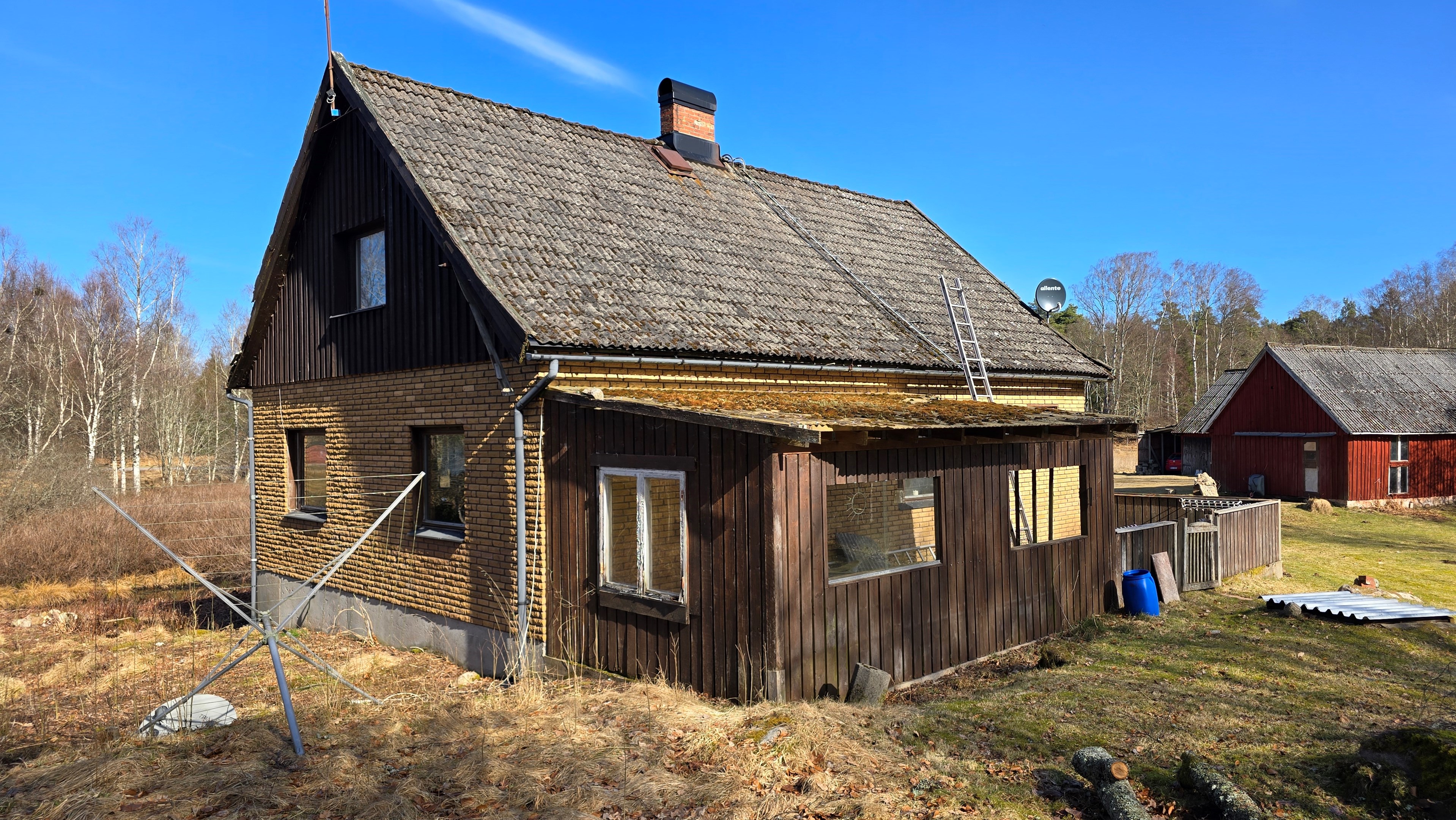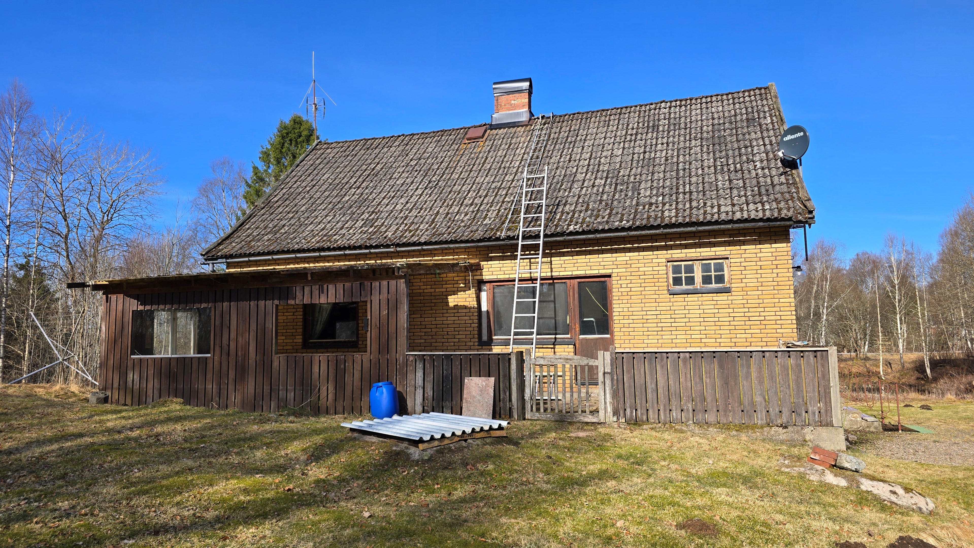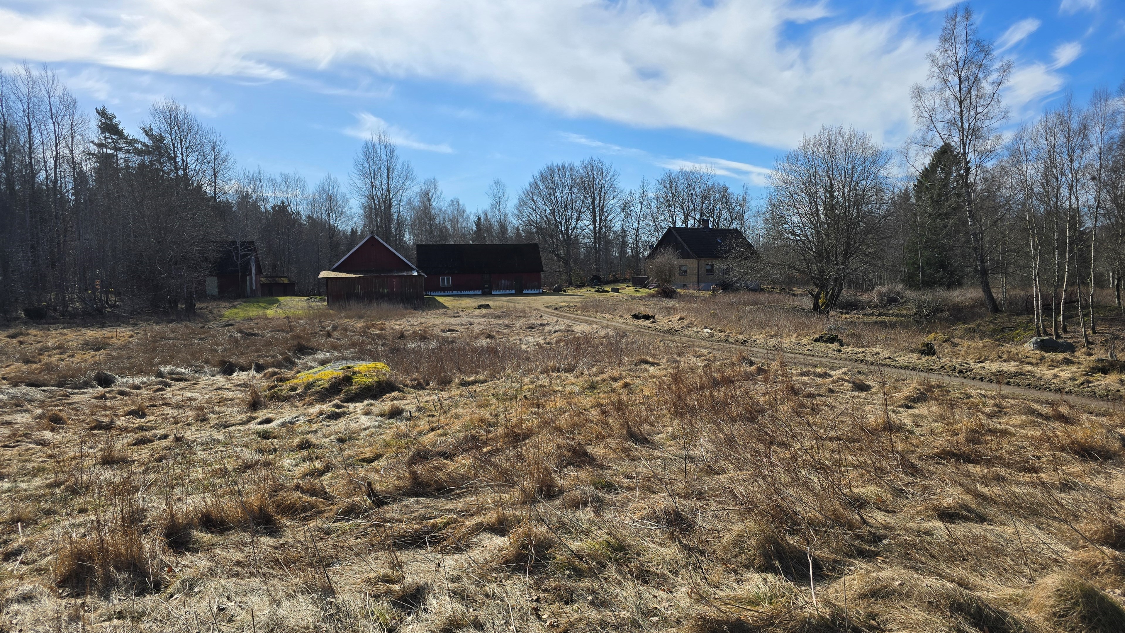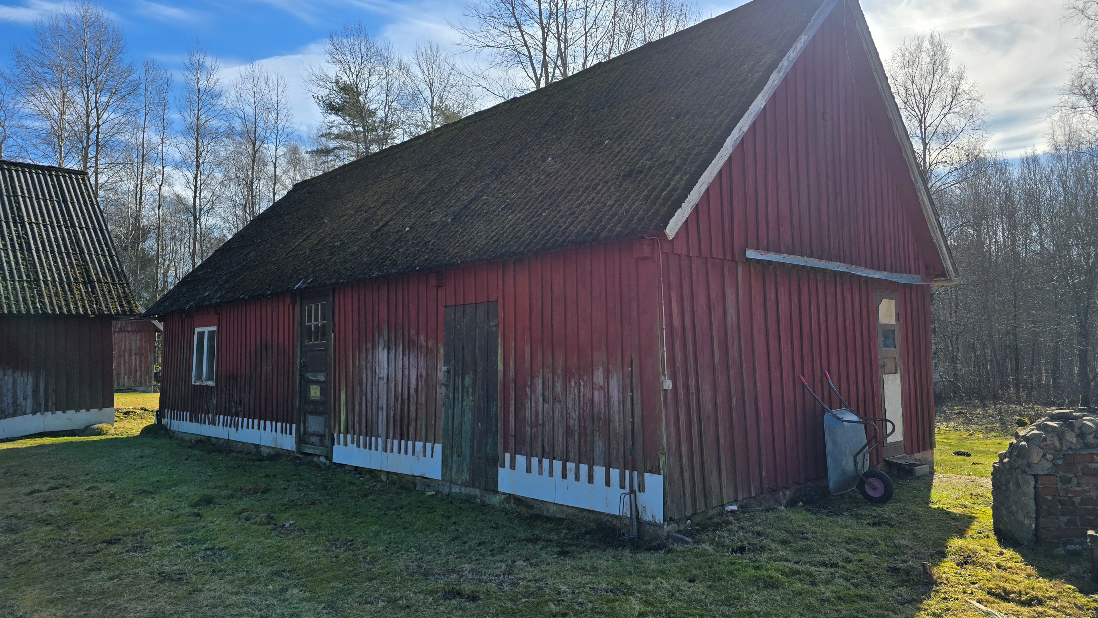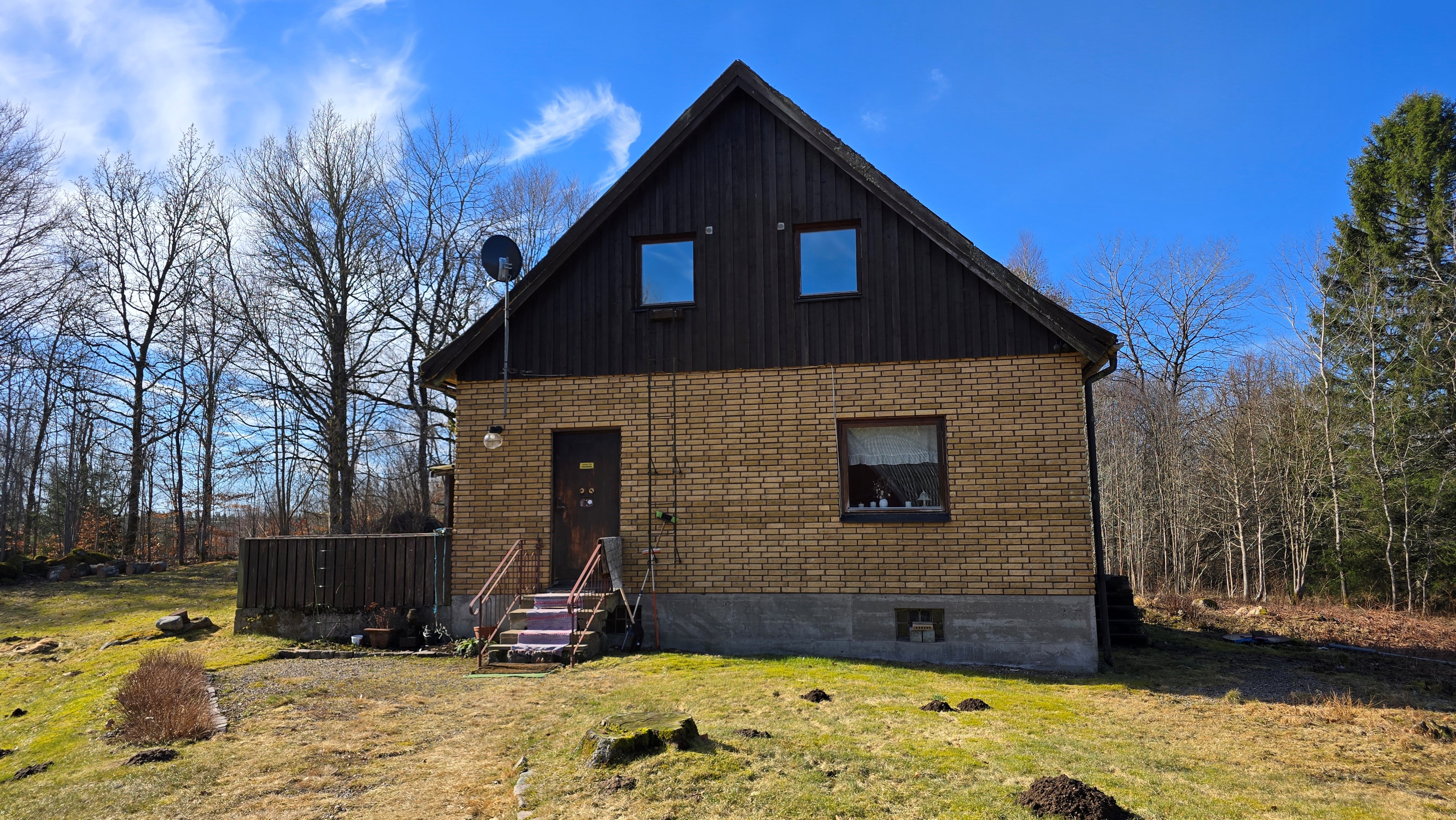 Gård med landvilla från ca 1925 med en boyta om 117 m² samt full källare. Uppvärmning sker med braskamin och elvärme, tidigare även vattenburen värme med olja/vedpanna (ej i drift). Vatten från egen brunn med en del nya ledningar, godkänt avlopp från 2008. Lador på 90 m², två på 60 m² var och uthus på 30 m². Tomten är 50 130 m² (5 ha) med gräsängar, skog och egen damm. Avstånd till närmaste sjö med badplats är ca 5 km. Ca 70 km från Helsingborg och 130 km från Malmö. Filmvisning: https://youtu.be/Wdzltk5wAGk Högarydsvägen 54 vid Hishult är en gård med villa på ca. 117 m² boyta + full källare på ca. 65 m². Huset är byggt omkring 1925, med en stomme i trä och skalmur av tegel. Uteplats på ca. 25 m² på baksidan av huset med betongsten och ungefär hälften är under tak. Huset används idag som permanentbostad, men är i behov av omfattande renovering både invändigt och utvändigt. Taket är av betongtegel, men flera vindskivor och takutsprång behöver bytas och det kan vara aktuellt att lägga om hela taket inom en snar framtid. Reservtegel finns att göra reparationer med. Fönstren är isolerglas, men två av rutorna är punkterade och behöver bytas. Skorstenen är nyligen renoverad och godkänd av sotare. Elsystemet är äldre med porslinssäkringar, utan jordfelsbrytare och med flera provisoriska lösningar, varför en genomgång och uppdatering eller byte rekommenderas. Uppvärmning sker med en godkänd braskamin (Handöl) i vardagsrummet, en braskamin i hallen på övervåningen samt några direktverkande element. Det finns ett äldre vattenburet system med gammal olja/vedpanna och ackumulatortankar (1 000 liter), men detta är inte i drift. Man kan överväga att montera en luft/vatten värmepump istället, eller en ved/pelletspanna, för att dra nytta av det befintliga systemet. Vatten tas från egen grävd brunn med några nya ledningar och brunnen har inte sinat. Avloppet är en trekammarbrunn med infiltration från 2008 med ny avloppspump 2025. Entré via köksingång med laminatgolv (trägolv under), träpanel i tak och trappa till källaren. Köket är rymligt med gott om skåp, äldre elspis, spisfläkt och diskmaskin (gammal, men fungerar), samt nyare kyl/frys. Litet skafferi och dörr till terrassen på baksidan (isolerglasfönster punkterat). Man har börjat en renovering genom att börjar riva tapet mm, men arbetet har stannat. Mindre vardagsrum med heltäckningsmatta och äldre gipsskivor i taket samt effektiv nyare Handöl braskamin med glaslucka (godkänd). Stort dubbelt vardagsrum eller kanske vardagsrum och matsal med trägolv och burspråk med utsikt mot dammen. Huvudentré med trappa till övervåning. Gammalt badrum med våtrumsmatta på golv och väggar, dusch, nytt WC (2025) och handfat. Ytskikten är slitna och våtrumsmattan har börjat släppa i duschen och bör bytas. På övervåningen finns liten trapphall och dörr till oinrett vindsrum. Stor hall med stora inbyggda garderober och en godkänd Norrahammar braskamin. Större sovrum med dubbelsäng, trägolv och trä på väggarna. Två mindre sovrum med trägolv slitna ytskikt. Källaren nås via trappa från köksingången och har flera utrymmen för förvaring. Här finns bastu (ej helt färdig), skafferi med frysbox (defekt), pannrum (defekt panna) och verkstadsrum med elcentral, mycket gammalt badrum (ej i bruk) med dusch, gammalt badkar och en braskamin (ej godkänd). Tvättstuga med tvättmaskin, vattenpump och hydrofor. På gården finns flera uthus/lador. Lada på ca 90 m² + tillbyggd carport med eternittak. Här finns stall med många olika bås, garage med reservtegel och carporten. Mindre lada på ca 60 m² med eternittak och dålig klädselpanel. Här finns rum med gammal oljetank, stort verkstadsrum och garage med 3-fas kontakt. Ännu en lada på ca 60 m² med stort rum med gjutet golv med plats för t ex gym, hobby eller lek + vindsrum med gammalt bordtennisbord. Mindre uthus med eternittak på ca 30 m² med plats för ved och förvaring. Tomten omfattar 50 130 m² (ca 5 hektar eller 10 tunnland) med gräsängar, yngre och blandad skog samt en egen damm med liten ö närmast huset. Dammen är delvist igenvuxen, men kan återställas. Säljaren ser till att buskar och parkslide vid dammen rensas bort under våren. Gården ligger naturskönt och ensligt med ca 100 m. till närmaste granne, som inte syns eller stör. Liten landsväg passerar gården, men den är mycket lätt trafikerad och snöröjs vintertid. På tomten finns gott om plats för enklare djurhållning, odling för självhushåll eller liknande. Här finns även möjlighet för lite småviltjakt. Gott om vedskog på tomten, men inte någon värdefull skov av betydelse. Ca 2 km. till Grötsjön och samma avstånd till den mysiga Kvarnen i Kornhult med goda smörrebröd och hemmagjord gelato på sommaren. Ca 5 km. till riktig anlagd badplats i Store Sjö. Ca 7 km. till Hishult samhälle med närmaste affärer och den berömda Hishult Konsthall. Ca. 14 till Knäred samhälle och ca. 15 km. till Markaryd. Ca 25 km. till Vallåsen skidbacke och Bike-Park och ungefär samma avstånd till Kungsbyggets Äventyrspark. Ca. 70 km. från Helsingborg och ca 130 km. från Malmö. OBS! Fastigheten ligger i glesbygdsområde där förvärvstillstånd krävs från Länsstyrelsen i Hallands län. Ansökningsavgift på 5 200 kr betalas av köparen och återbetalas ej vid avslag. Normal handläggningstid är ca. 30 dagar och affären villkoras givetvis av att förvärvstillstånd beviljas för köparen. Fastighetens pris är s.k. "maxpris", dvs. det blir ingen budgivning ut över detta pris. Det är givetvis tillåtet att lämna ett bud under det marknadsförda priset, men det kan då bli budgivning upp till maxpriset. Läs mer på hemsidan "Om att köpa ett hus": https://www.oedegaarde.dk/Kopa/S13270.