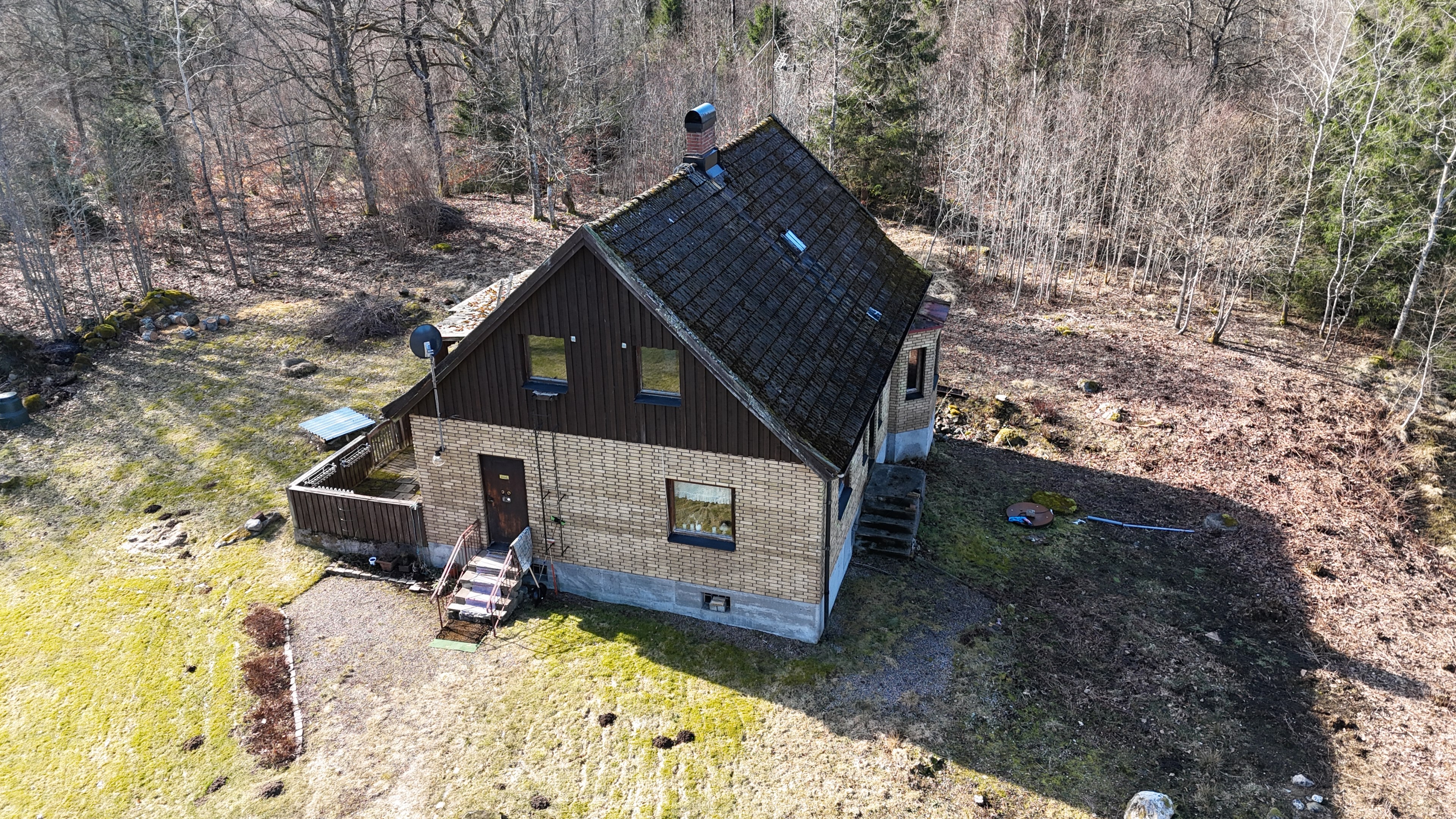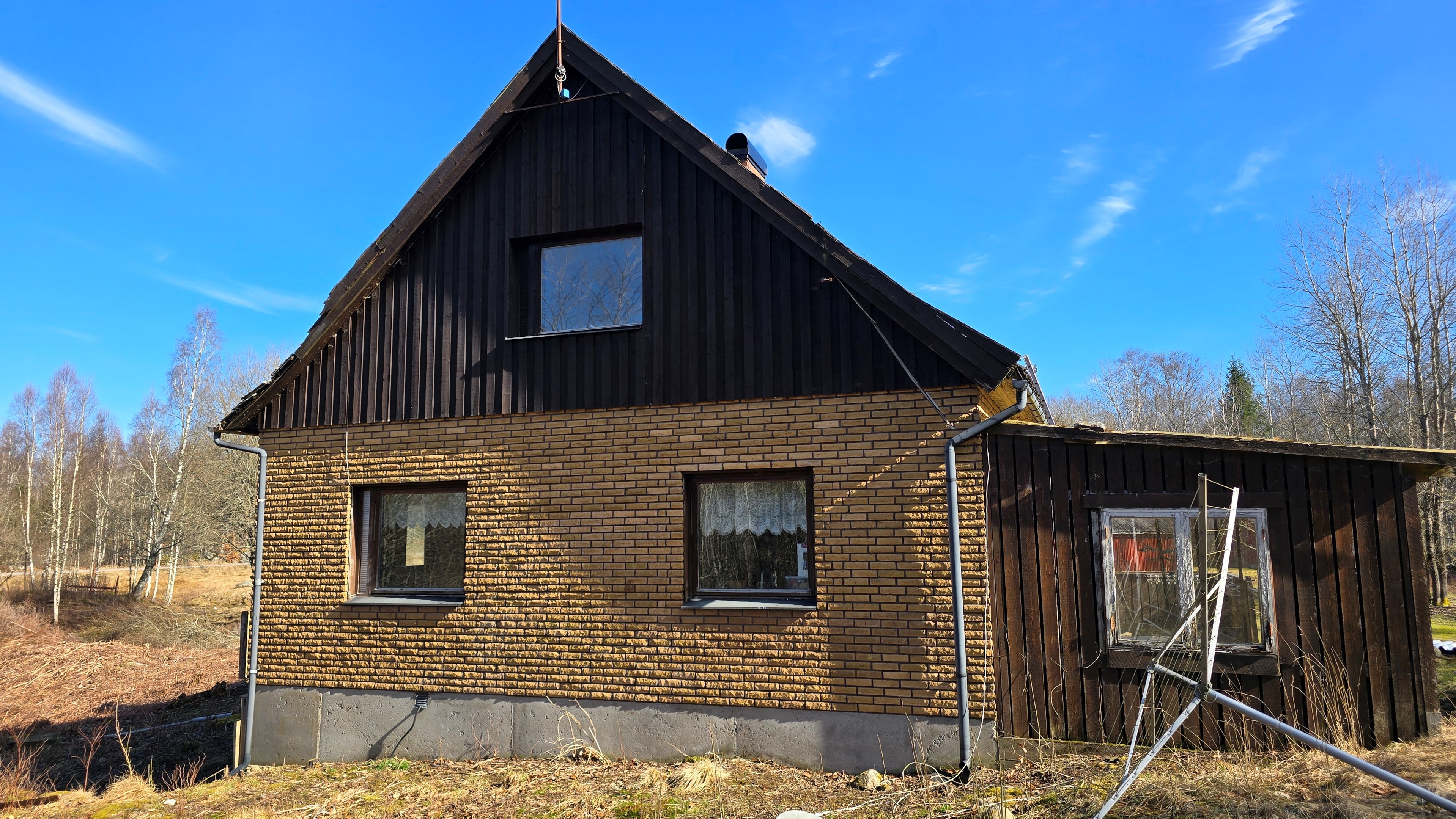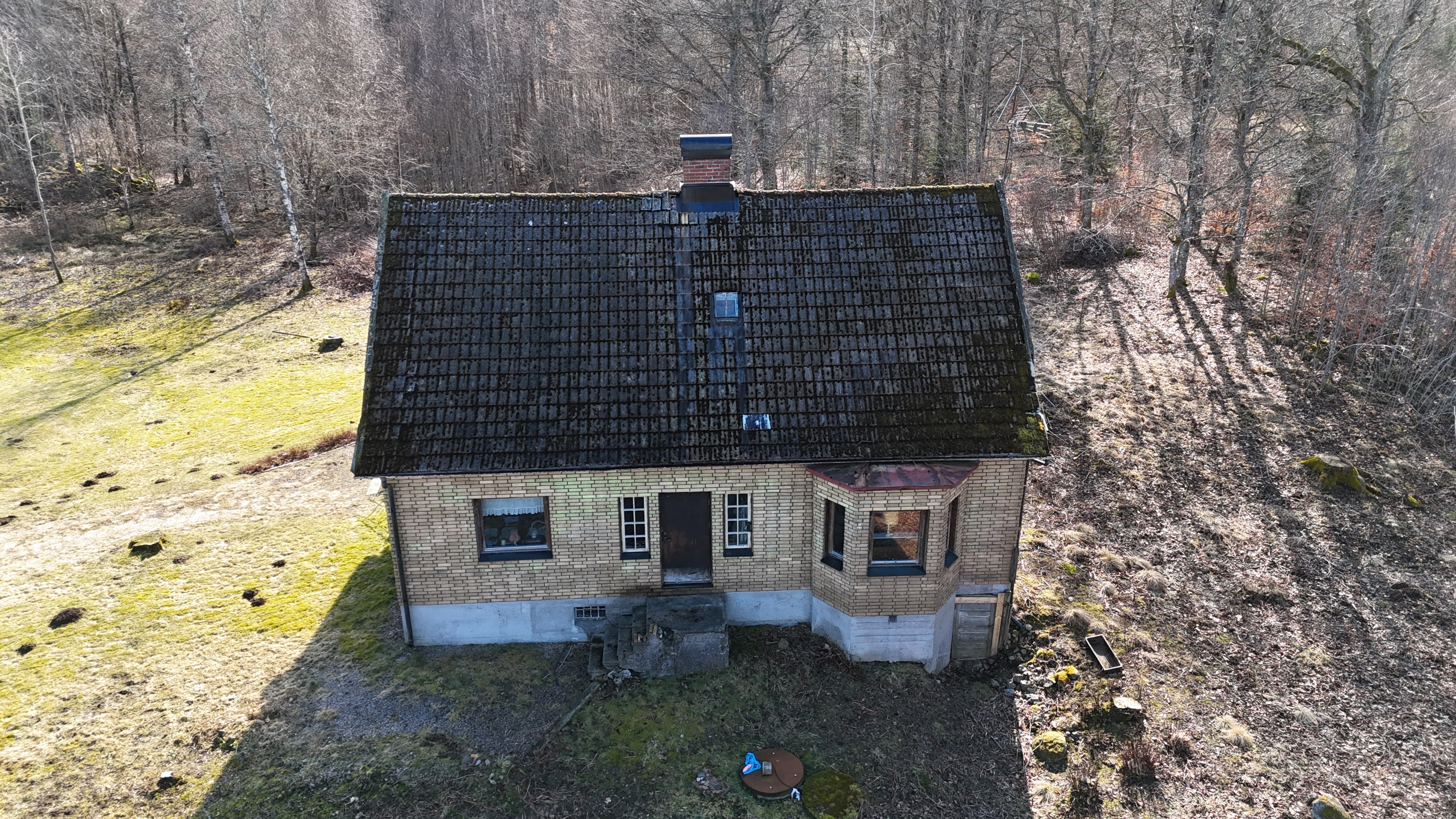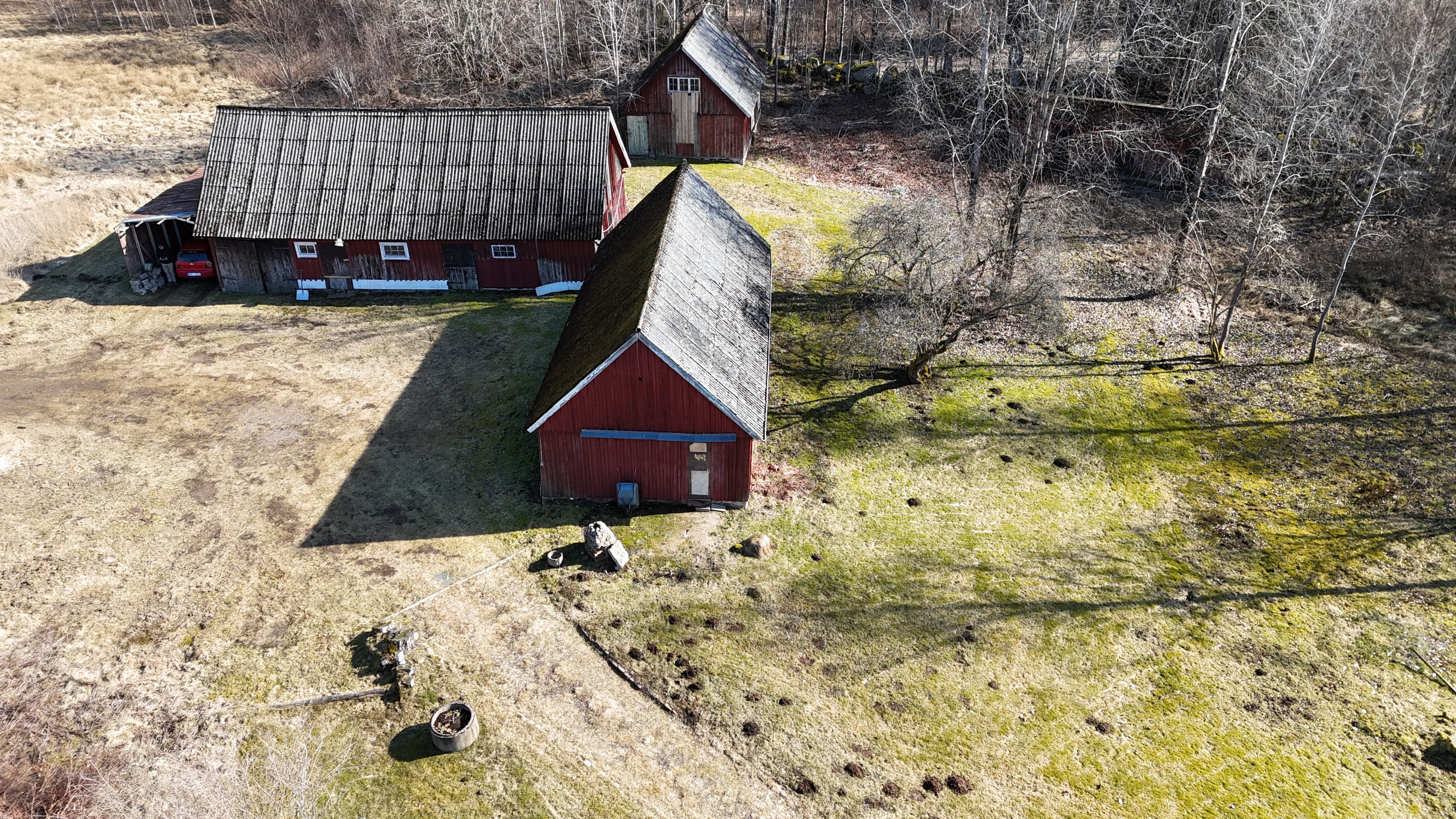 Gård med landvilla från ca 1925 med en boyta om 117 m² samt full källare. Uppvärmning sker med braskamin och elvärme, tidigare även vattenburen värme med olja/vedpanna (ej i drift). Vatten från egen brunn med en del nya ledningar, godkänt avlopp från 2008. Lador på 90 m², två på 60 m² var och uthus på 30 m². Tomten är 50 130 m² (5 ha) med gräsängar, skog och egen damm. Avstånd till närmaste sjö med badplats är ca 5 km. Ca 70 km från Helsingborg och 130 km från Malmö. Filmvisning: https://youtu.be/Wdzltk5wAGk Högarydsvägen 54 vid Hishult är en gård med villa på ca. 117 m² boyta + full källare på ca. 65 m². Huset är byggt omkring 1925, med en stomme i trä och skalmur av tegel. Uteplats på ca. 25 m² på baksidan av huset med betongsten och ungefär hälften är under tak. Huset används idag som permanentbostad, men är i behov av omfattande renovering både invändigt och utvändigt. Taket är av betongtegel, men flera vindskivor och takutsprång behöver bytas och det kan vara aktuellt att lägga om hela taket inom en snar framtid. Reservtegel finns att göra reparationer med. Fönstren är isolerglas, men två av rutorna är punkterade och behöver bytas. Skorstenen är nyligen renoverad och godkänd av sotare. Elsystemet är äldre med porslinssäkringar, utan jordfelsbrytare och med flera provisoriska lösningar, varför en genomgång och uppdatering eller byte rekommenderas. Uppvärmning sker med en godkänd braskamin (Handöl) i vardagsrummet, en braskamin i hallen på övervåningen samt några direktverkande element. Det finns ett äldre vattenburet system med gammal olja/vedpanna och ackumulatortankar (1 000 liter), men detta är inte i drift. Man kan överväga att montera en luft/vatten värmepump istället, eller en ved/pelletspanna, för att dra nytta av det befintliga systemet. Vatten tas från egen grävd brunn med några nya ledningar och brunnen har inte sinat. Avloppet är en trekammarbrunn med infiltration från 2008 med ny avloppspump 2025. Entré via köksingång med laminatgolv (trägolv under), träpanel i tak och trappa till källaren. Köket är rymligt med gott om skåp, äldre elspis, spisfläkt och diskmaskin (gammal, men fungerar), samt nyare kyl/frys. Litet skafferi och dörr till terrassen på baksidan (isolerglasfönster punkterat). Man har börjat en renovering genom att börjar riva tapet mm, men arbetet har stannat. Mindre vardagsrum med heltäckningsmatta och äldre gipsskivor i taket samt effektiv nyare Handöl braskamin med glaslucka (godkänd). Stort dubbelt vardagsrum eller kanske vardagsrum och matsal med trägolv och burspråk med utsikt mot dammen. Huvudentré med trappa till övervåning. Gammalt badrum med våtrumsmatta på golv och väggar, dusch, nytt WC (2025) och handfat. Ytskikten är slitna och våtrumsmattan har börjat släppa i duschen och bör bytas. På övervåningen finns liten trapphall och dörr till oinrett vindsrum. Stor hall med stora inbyggda garderober och en godkänd Norrahammar braskamin. Större sovrum med dubbelsäng, trägolv och trä på väggarna. Två mindre sovrum med trägolv slitna ytskikt. Källaren nås via trappa från köksingången och har flera utrymmen för förvaring. Här finns bastu (ej helt färdig), skafferi med frysbox (defekt), pannrum (defekt panna) och verkstadsrum med elcentral, mycket gammalt badrum (ej i bruk) med dusch, gammalt badkar och en braskamin (ej godkänd). Tvättstuga med tvättmaskin, vattenpump och hydrofor. På gården finns flera uthus/lador. Lada på ca 90 m² + tillbyggd carport med eternittak. Här finns stall med många olika bås, garage med reservtegel och carporten. Mindre lada på ca 60 m² med eternittak och dålig klädselpanel. Här finns rum med gammal oljetank, stort verkstadsrum och garage med 3-fas kontakt. Ännu en lada på ca 60 m² med stort rum med gjutet golv med plats för t ex gym, hobby eller lek + vindsrum med gammalt bordtennisbord. Mindre uthus med eternittak på ca 30 m² med plats för ved och förvaring. Tomten omfattar 50 130 m² (ca 5 hektar eller 10 tunnland) med gräsängar, yngre och blandad skog samt en egen damm med liten ö närmast huset. Dammen är delvist igenvuxen, men kan återställas. Säljaren ser till att buskar och parkslide vid dammen rensas bort under våren. Gården ligger naturskönt och ensligt med ca 100 m. till närmaste granne, som inte syns eller stör. Liten landsväg passerar gården, men den är mycket lätt trafikerad och snöröjs vintertid. På tomten finns gott om plats för enklare djurhållning, odling för självhushåll eller liknande. Här finns även möjlighet för lite småviltjakt. Gott om vedskog på tomten, men inte någon värdefull skov av betydelse. Ca 2 km. till Grötsjön och samma avstånd till den mysiga Kvarnen i Kornhult med goda smörrebröd och hemmagjord gelato på sommaren. Ca 5 km. till riktig anlagd badplats i Store Sjö. Ca 7 km. till Hishult samhälle med närmaste affärer och den berömda Hishult Konsthall. Ca. 14 till Knäred samhälle och ca. 15 km. till Markaryd. Ca 25 km. till Vallåsen skidbacke och Bike-Park och ungefär samma avstånd till Kungsbyggets Äventyrspark. Ca. 70 km. från Helsingborg och ca 130 km. från Malmö. OBS! Fastigheten ligger i glesbygdsområde där förvärvstillstånd krävs från Länsstyrelsen i Hallands län. Ansökningsavgift på 5 200 kr betalas av köparen och återbetalas ej vid avslag. Normal handläggningstid är ca. 30 dagar och affären villkoras givetvis av att förvärvstillstånd beviljas för köparen. Fastighetens pris är s.k. "maxpris", dvs. det blir ingen budgivning ut över detta pris. Det är givetvis tillåtet att lämna ett bud under det marknadsförda priset, men det kan då bli budgivning upp till maxpriset. Läs mer på hemsidan "Om att köpa ett hus": https://www.oedegaarde.dk/Kopa/S13270.
