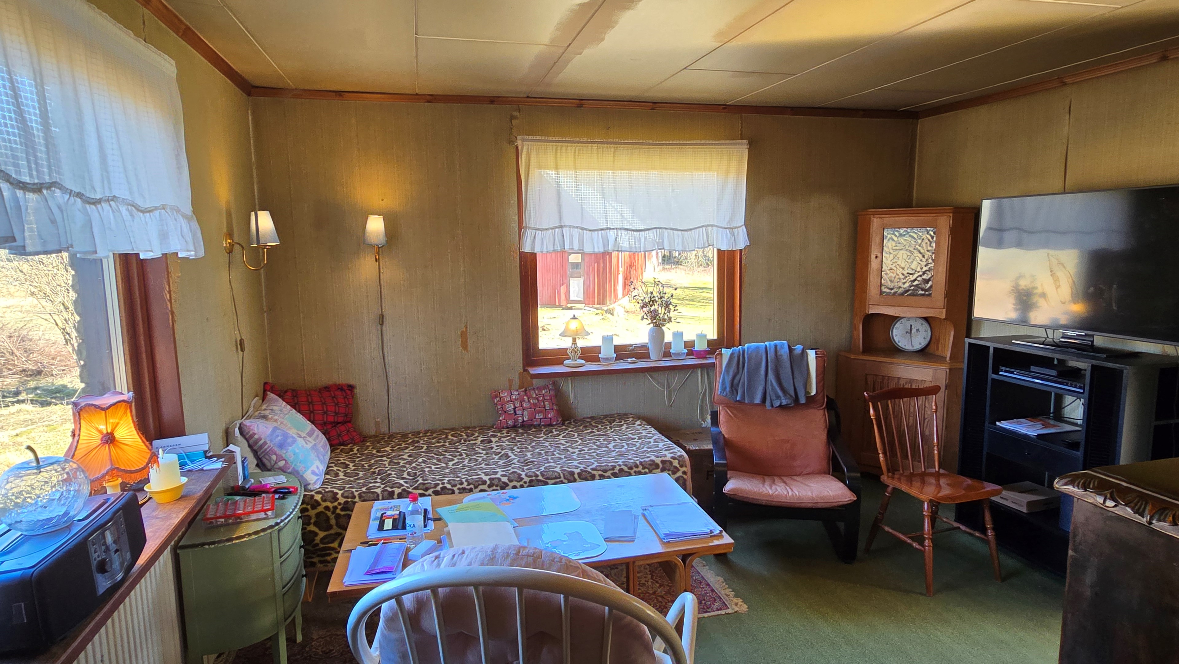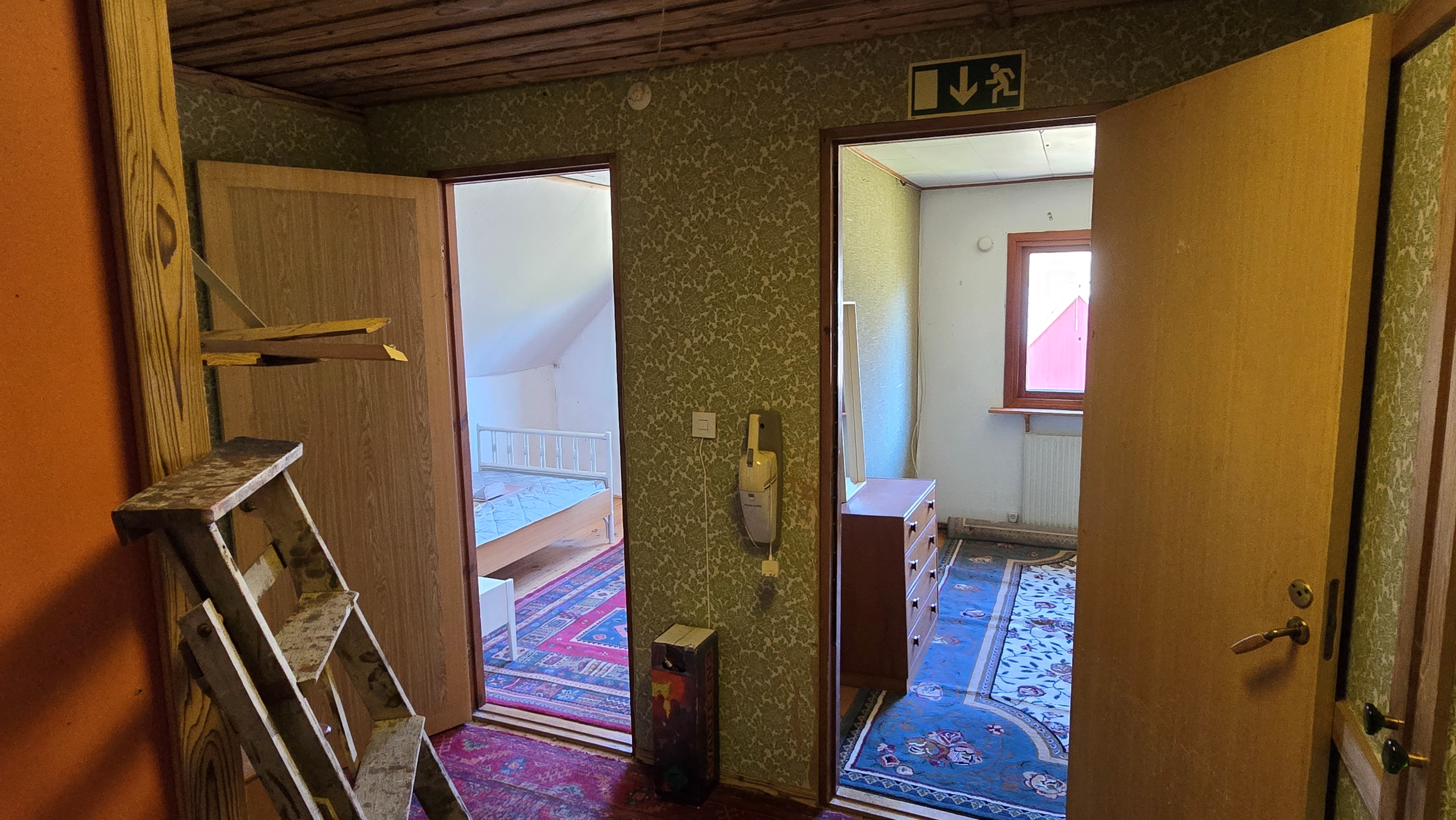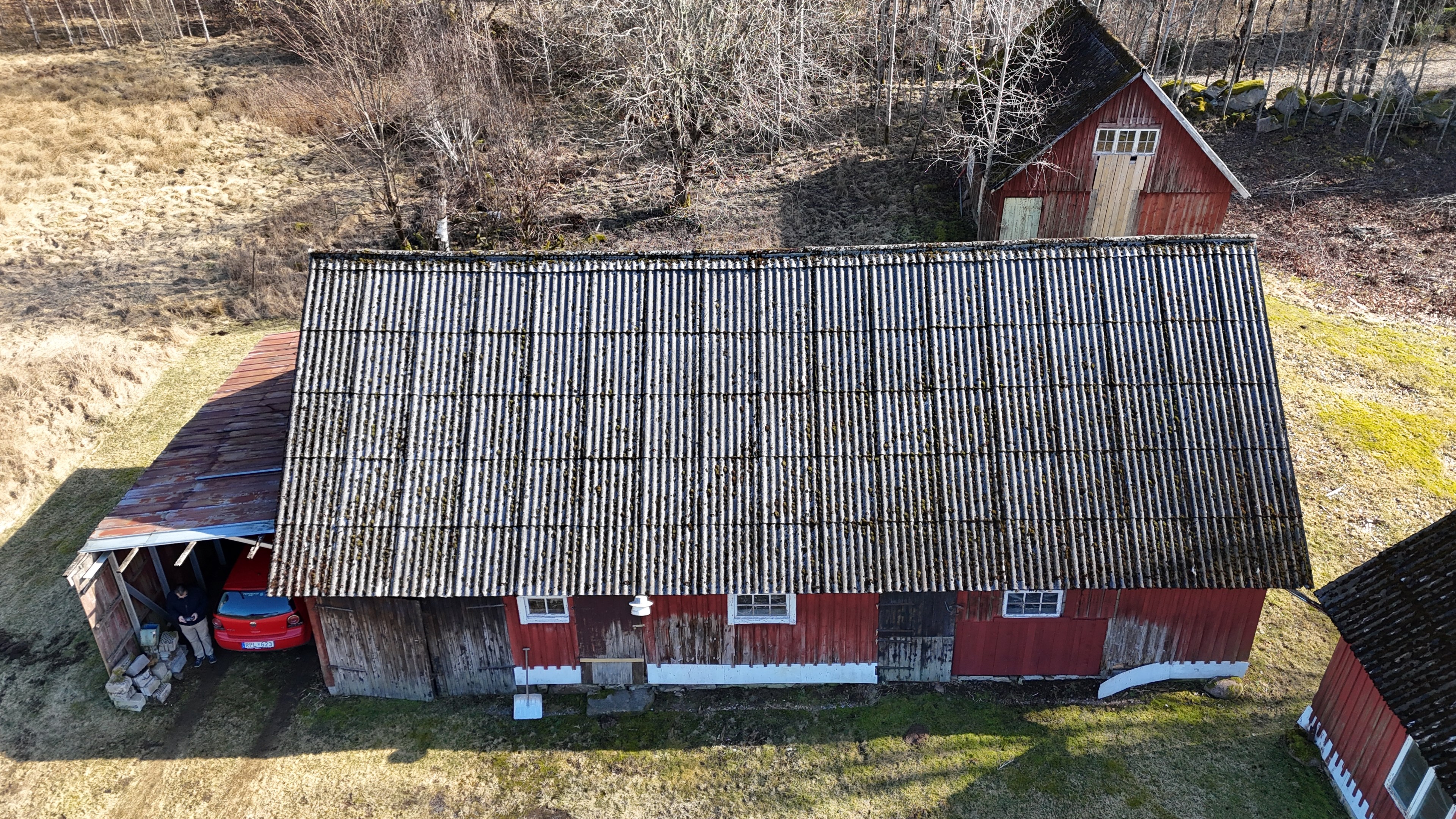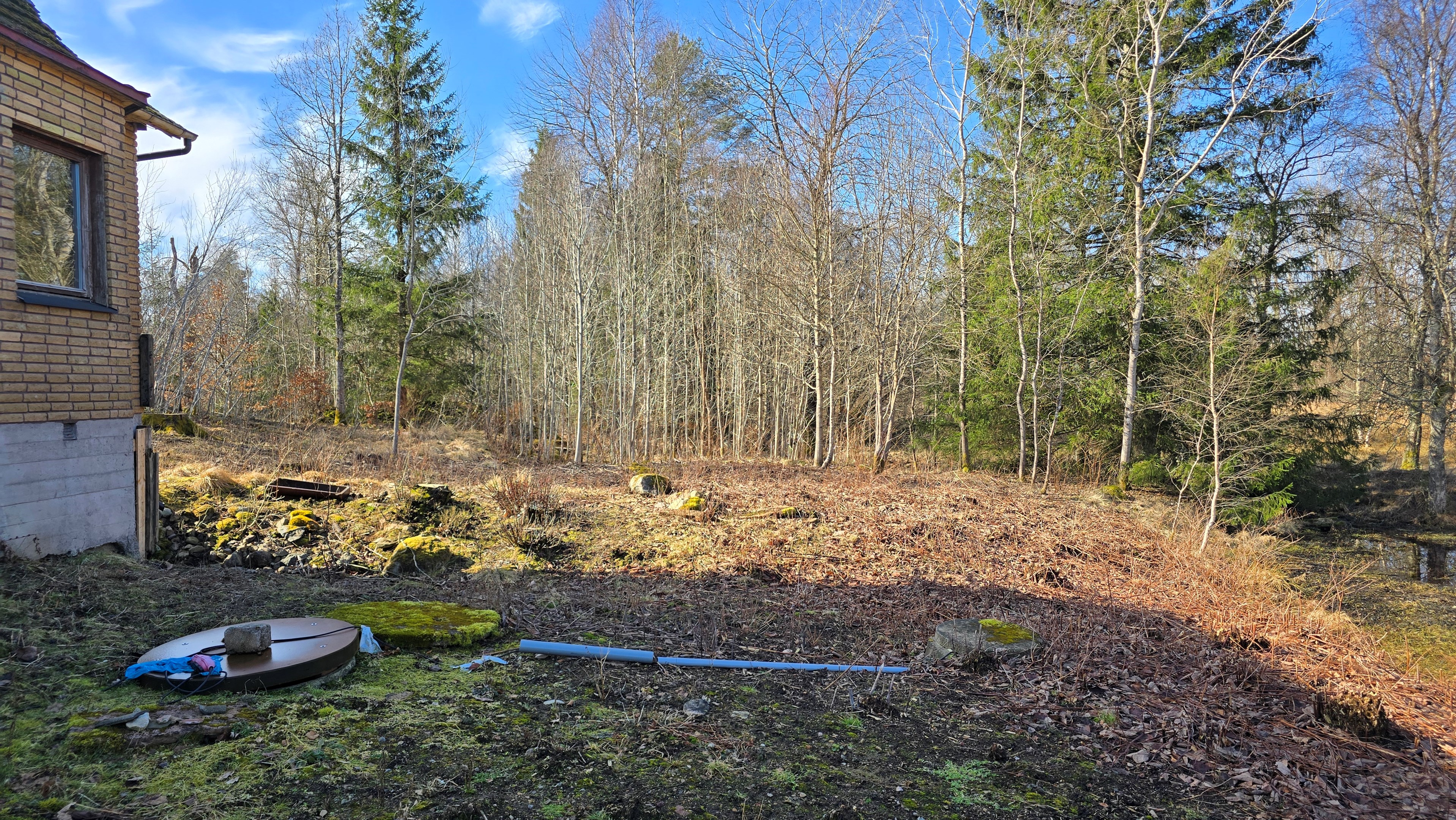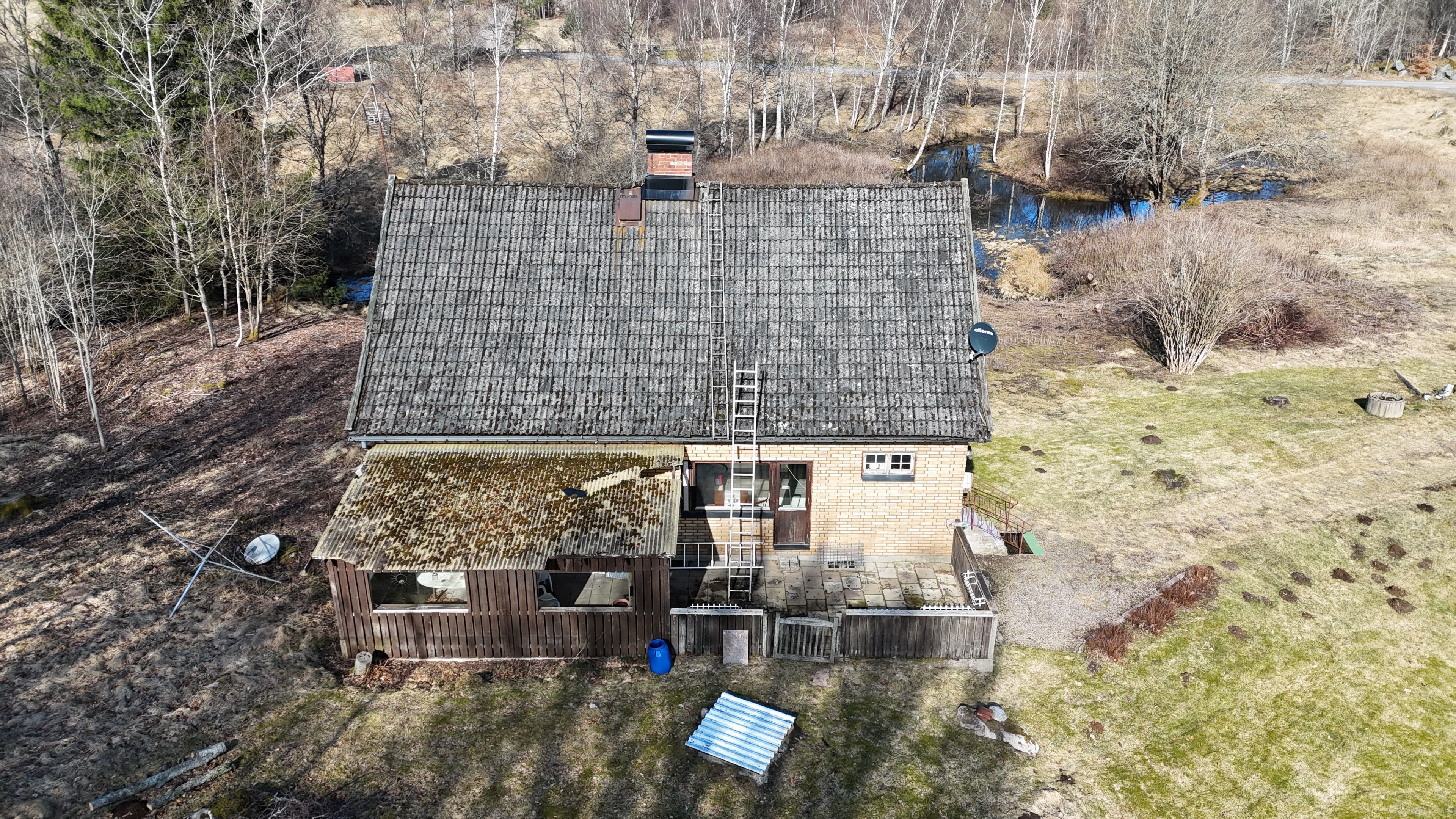 Gård med landvilla från ca 1925 med en boyta om 117 m² samt full källare. Uppvärmning sker med braskamin och elvärme, tidigare även vattenburen värme med olja/vedpanna (ej i drift). Vatten från egen brunn med en del nya ledningar, godkänt avlopp från 2008. Lador på 90 m², två på 60 m² var och uthus på 30 m². Tomten är 50 130 m² (5 ha) med gräsängar, skog och egen damm. Avstånd till närmaste sjö med badplats är ca 5 km. Ca 70 km från Helsingborg och 130 km från Malmö. Filmvisning: https://youtu.be/Wdzltk5wAGk Högarydsvägen 54 vid Hishult är en gård med villa på ca. 117 m² boyta + full källare på ca. 65 m². Huset är byggt omkring 1925, med en stomme i trä och skalmur av tegel. Uteplats på ca. 25 m² på baksidan av huset med betongsten och ungefär hälften är under tak. Huset används idag som permanentbostad, men är i behov av omfattande renovering både invändigt och utvändigt. Taket är av betongtegel, men flera vindskivor och takutsprång behöver bytas och det kan vara aktuellt att lägga om hela taket inom en snar framtid. Reservtegel finns att göra reparationer med. Fönstren är isolerglas, men två av rutorna är punkterade och behöver bytas. Skorstenen är nyligen renoverad och godkänd av sotare. Elsystemet är äldre med porslinssäkringar, utan jordfelsbrytare och med flera provisoriska lösningar, varför en genomgång och uppdatering eller byte rekommenderas. Uppvärmning sker med en godkänd braskamin (Handöl) i vardagsrummet, en braskamin i hallen på övervåningen samt några direktverkande element. Det finns ett äldre vattenburet system med gammal olja/vedpanna och ackumulatortankar (1 000 liter), men detta är inte i drift. Man kan överväga att montera en luft/vatten värmepump istället, eller en ved/pelletspanna, för att dra nytta av det befintliga systemet. Vatten tas från egen grävd brunn med några nya ledningar och brunnen har inte sinat. Avloppet är en trekammarbrunn med infiltration från 2008 med ny avloppspump 2025. Entré via köksingång med laminatgolv (trägolv under), träpanel i tak och trappa till källaren. Köket är rymligt med gott om skåp, äldre elspis, spisfläkt och diskmaskin (gammal, men fungerar), samt nyare kyl/frys. Litet skafferi och dörr till terrassen på baksidan (isolerglasfönster punkterat). Man har börjat en renovering genom att börjar riva tapet mm, men arbetet har stannat. Mindre vardagsrum med heltäckningsmatta och äldre gipsskivor i taket samt effektiv nyare Handöl braskamin med glaslucka (godkänd). Stort dubbelt vardagsrum eller kanske vardagsrum och matsal med trägolv och burspråk med utsikt mot dammen. Huvudentré med trappa till övervåning. Gammalt badrum med våtrumsmatta på golv och väggar, dusch, nytt WC (2025) och handfat. Ytskikten är slitna och våtrumsmattan har börjat släppa i duschen och bör bytas. På övervåningen finns liten trapphall och dörr till oinrett vindsrum. Stor hall med stora inbyggda garderober och en godkänd Norrahammar braskamin. Större sovrum med dubbelsäng, trägolv och trä på väggarna. Två mindre sovrum med trägolv slitna ytskikt. Källaren nås via trappa från köksingången och har flera utrymmen för förvaring. Här finns bastu (ej helt färdig), skafferi med frysbox (defekt), pannrum (defekt panna) och verkstadsrum med elcentral, mycket gammalt badrum (ej i bruk) med dusch, gammalt badkar och en braskamin (ej godkänd). Tvättstuga med tvättmaskin, vattenpump och hydrofor. På gården finns flera uthus/lador. Lada på ca 90 m² + tillbyggd carport med eternittak. Här finns stall med många olika bås, garage med reservtegel och carporten. Mindre lada på ca 60 m² med eternittak och dålig klädselpanel. Här finns rum med gammal oljetank, stort verkstadsrum och garage med 3-fas kontakt. Ännu en lada på ca 60 m² med stort rum med gjutet golv med plats för t ex gym, hobby eller lek + vindsrum med gammalt bordtennisbord. Mindre uthus med eternittak på ca 30 m² med plats för ved och förvaring. Tomten omfattar 50 130 m² (ca 5 hektar eller 10 tunnland) med gräsängar, yngre och blandad skog samt en egen damm med liten ö närmast huset. Dammen är delvist igenvuxen, men kan återställas. Säljaren ser till att buskar och parkslide vid dammen rensas bort under våren. Gården ligger naturskönt och ensligt med ca 100 m. till närmaste granne, som inte syns eller stör. Liten landsväg passerar gården, men den är mycket lätt trafikerad och snöröjs vintertid. På tomten finns gott om plats för enklare djurhållning, odling för självhushåll eller liknande. Här finns även möjlighet för lite småviltjakt. Gott om vedskog på tomten, men inte någon värdefull skov av betydelse. Ca 2 km. till Grötsjön och samma avstånd till den mysiga Kvarnen i Kornhult med goda smörrebröd och hemmagjord gelato på sommaren. Ca 5 km. till riktig anlagd badplats i Store Sjö. Ca 7 km. till Hishult samhälle med närmaste affärer och den berömda Hishult Konsthall. Ca. 14 till Knäred samhälle och ca. 15 km. till Markaryd. Ca 25 km. till Vallåsen skidbacke och Bike-Park och ungefär samma avstånd till Kungsbyggets Äventyrspark. Ca. 70 km. från Helsingborg och ca 130 km. från Malmö. OBS! Fastigheten ligger i glesbygdsområde där förvärvstillstånd krävs från Länsstyrelsen i Hallands län. Ansökningsavgift på 5 200 kr betalas av köparen och återbetalas ej vid avslag. Normal handläggningstid är ca. 30 dagar och affären villkoras givetvis av att förvärvstillstånd beviljas för köparen. Fastighetens pris är s.k. "maxpris", dvs. det blir ingen budgivning ut över detta pris. Det är givetvis tillåtet att lämna ett bud under det marknadsförda priset, men det kan då bli budgivning upp till maxpriset. Läs mer på hemsidan "Om att köpa ett hus": https://www.oedegaarde.dk/Kopa/S13270.