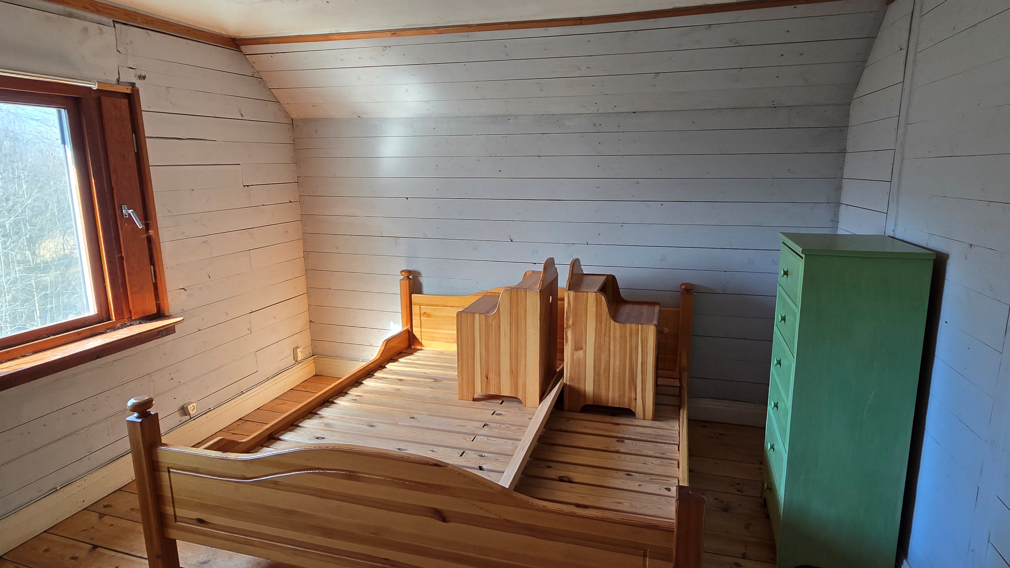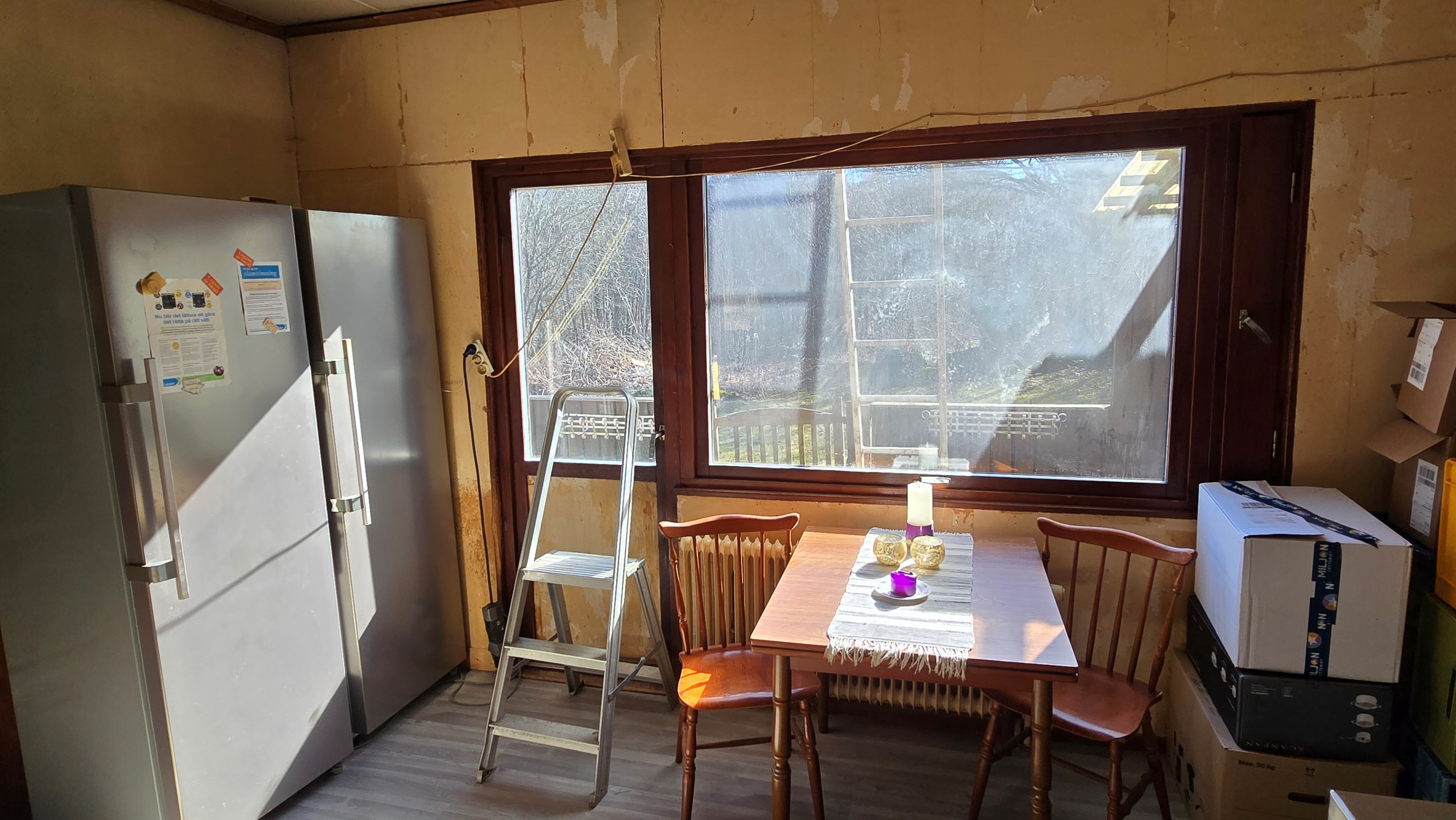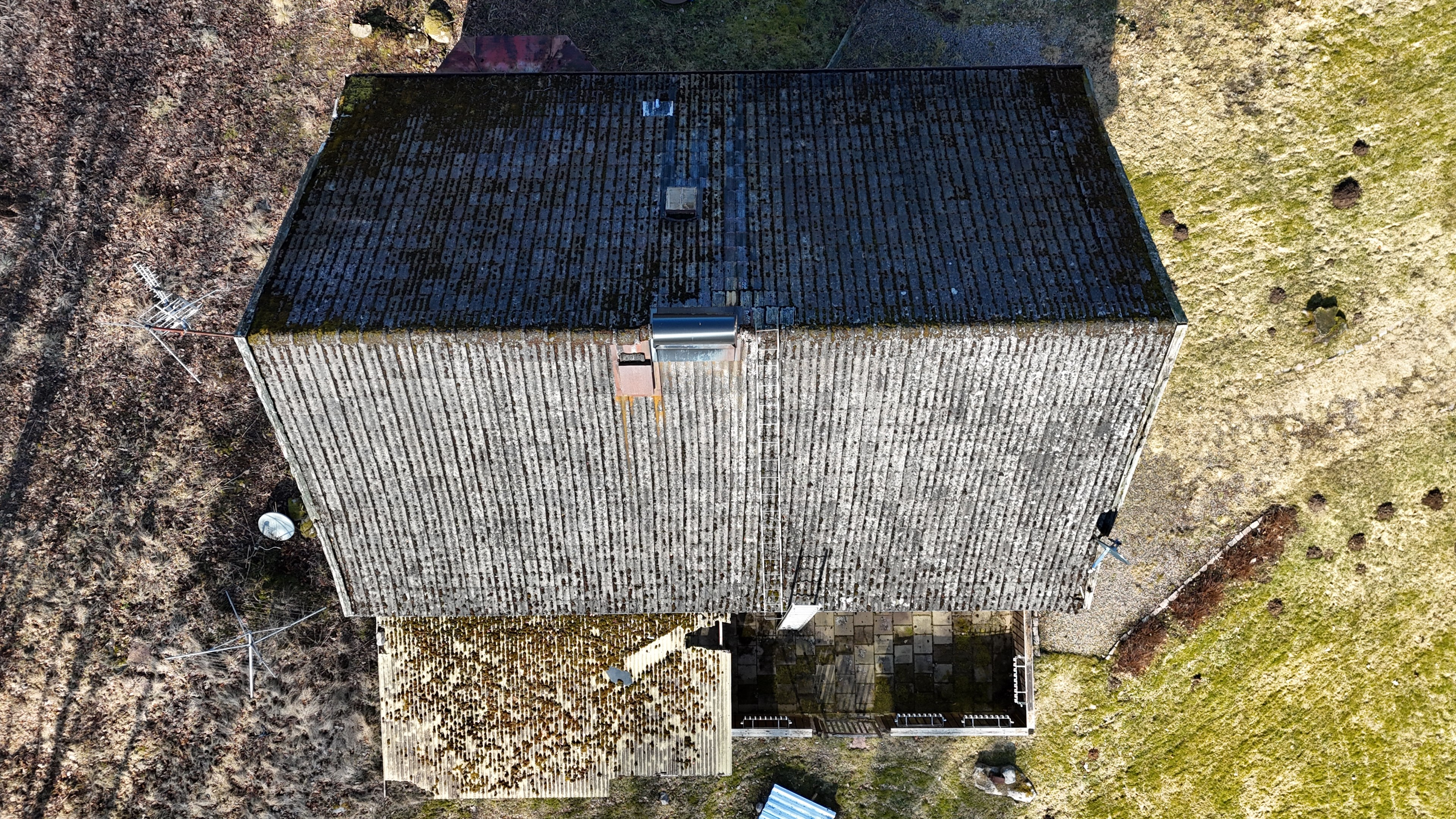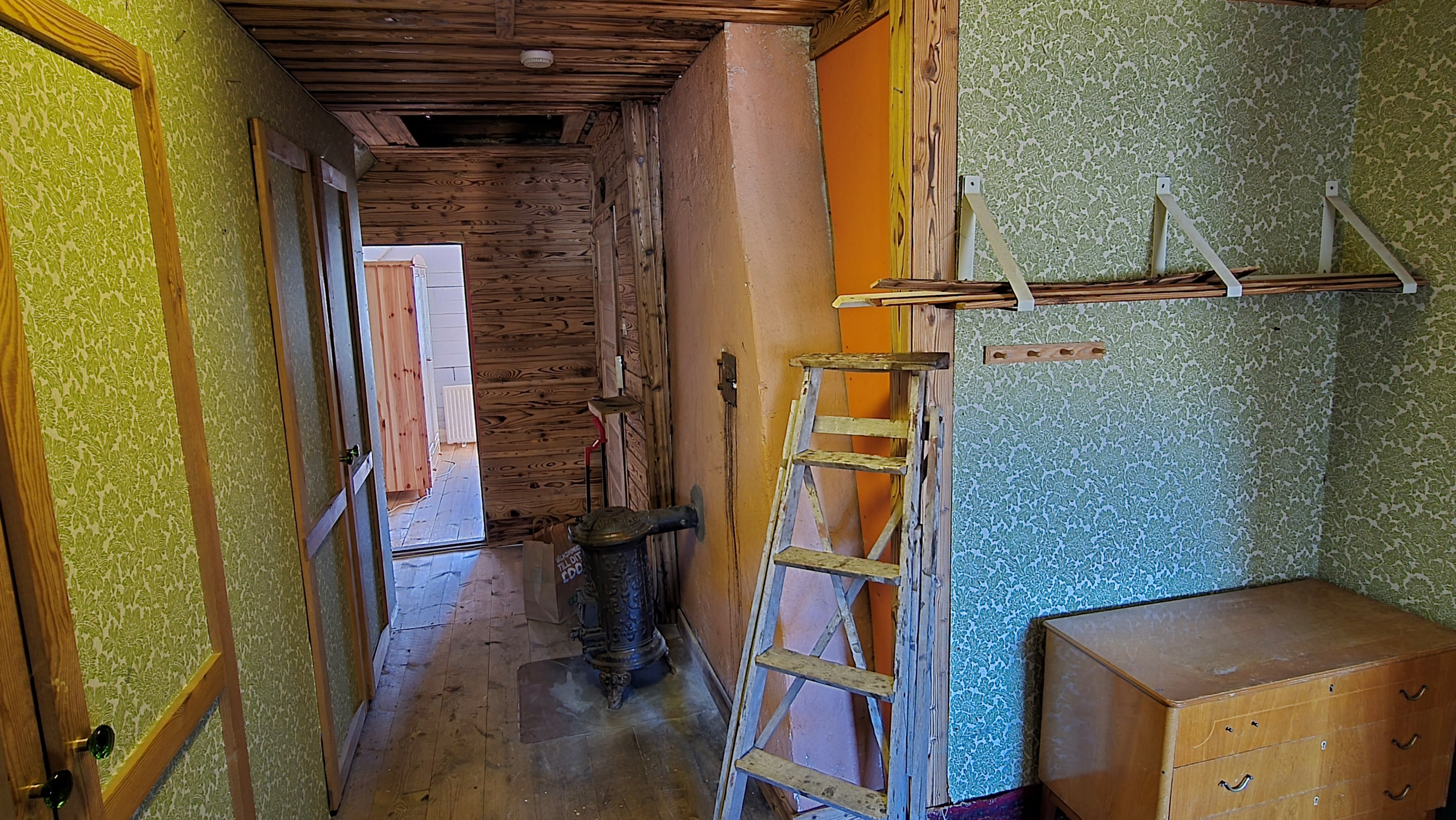 Gård med landvilla från ca 1925 med en boyta om 117 m² samt full källare. Uppvärmning sker med braskamin och elvärme, tidigare även vattenburen värme med olja/vedpanna (ej i drift). Vatten från egen brunn med en del nya ledningar, godkänt avlopp från 2008. Lador på 90 m², två på 60 m² var och uthus på 30 m². Tomten är 50 130 m² (5 ha) med gräsängar, skog och egen damm. Avstånd till närmaste sjö med badplats är ca 5 km. Ca 70 km från Helsingborg och 130 km från Malmö. Filmvisning: https://youtu.be/Wdzltk5wAGk Högarydsvägen 54 vid Hishult är en gård med villa på ca. 117 m² boyta + full källare på ca. 65 m². Huset är byggt omkring 1925, med en stomme i trä och skalmur av tegel. Uteplats på ca. 25 m² på baksidan av huset med betongsten och ungefär hälften är under tak. Huset används idag som permanentbostad, men är i behov av omfattande renovering både invändigt och utvändigt. Taket är av betongtegel, men flera vindskivor och takutsprång behöver bytas och det kan vara aktuellt att lägga om hela taket inom en snar framtid. Reservtegel finns att göra reparationer med. Fönstren är isolerglas, men två av rutorna är punkterade och behöver bytas. Skorstenen är nyligen renoverad och godkänd av sotare. Elsystemet är äldre med porslinssäkringar, utan jordfelsbrytare och med flera provisoriska lösningar, varför en genomgång och uppdatering eller byte rekommenderas. Uppvärmning sker med en godkänd braskamin (Handöl) i vardagsrummet, en braskamin i hallen på övervåningen samt några direktverkande element. Det finns ett äldre vattenburet system med gammal olja/vedpanna och ackumulatortankar (1 000 liter), men detta är inte i drift. Man kan överväga att montera en luft/vatten värmepump istället, eller en ved/pelletspanna, för att dra nytta av det befintliga systemet. Vatten tas från egen grävd brunn med några nya ledningar och brunnen har inte sinat. Avloppet är en trekammarbrunn med infiltration från 2008 med ny avloppspump 2025. Entré via köksingång med laminatgolv (trägolv under), träpanel i tak och trappa till källaren. Köket är rymligt med gott om skåp, äldre elspis, spisfläkt och diskmaskin (gammal, men fungerar), samt nyare kyl/frys. Litet skafferi och dörr till terrassen på baksidan (isolerglasfönster punkterat). Man har börjat en renovering genom att börjar riva tapet mm, men arbetet har stannat. Mindre vardagsrum med heltäckningsmatta och äldre gipsskivor i taket samt effektiv nyare Handöl braskamin med glaslucka (godkänd). Stort dubbelt vardagsrum eller kanske vardagsrum och matsal med trägolv och burspråk med utsikt mot dammen. Huvudentré med trappa till övervåning. Gammalt badrum med våtrumsmatta på golv och väggar, dusch, nytt WC (2025) och handfat. Ytskikten är slitna och våtrumsmattan har börjat släppa i duschen och bör bytas. På övervåningen finns liten trapphall och dörr till oinrett vindsrum. Stor hall med stora inbyggda garderober och en godkänd Norrahammar braskamin. Större sovrum med dubbelsäng, trägolv och trä på väggarna. Två mindre sovrum med trägolv slitna ytskikt. Källaren nås via trappa från köksingången och har flera utrymmen för förvaring. Här finns bastu (ej helt färdig), skafferi med frysbox (defekt), pannrum (defekt panna) och verkstadsrum med elcentral, mycket gammalt badrum (ej i bruk) med dusch, gammalt badkar och en braskamin (ej godkänd). Tvättstuga med tvättmaskin, vattenpump och hydrofor. På gården finns flera uthus/lador. Lada på ca 90 m² + tillbyggd carport med eternittak. Här finns stall med många olika bås, garage med reservtegel och carporten. Mindre lada på ca 60 m² med eternittak och dålig klädselpanel. Här finns rum med gammal oljetank, stort verkstadsrum och garage med 3-fas kontakt. Ännu en lada på ca 60 m² med stort rum med gjutet golv med plats för t ex gym, hobby eller lek + vindsrum med gammalt bordtennisbord. Mindre uthus med eternittak på ca 30 m² med plats för ved och förvaring. Tomten omfattar 50 130 m² (ca 5 hektar eller 10 tunnland) med gräsängar, yngre och blandad skog samt en egen damm med liten ö närmast huset. Dammen är delvist igenvuxen, men kan återställas. Säljaren ser till att buskar och parkslide vid dammen rensas bort under våren. Gården ligger naturskönt och ensligt med ca 100 m. till närmaste granne, som inte syns eller stör. Liten landsväg passerar gården, men den är mycket lätt trafikerad och snöröjs vintertid. På tomten finns gott om plats för enklare djurhållning, odling för självhushåll eller liknande. Här finns även möjlighet för lite småviltjakt. Gott om vedskog på tomten, men inte någon värdefull skov av betydelse. Ca 2 km. till Grötsjön och samma avstånd till den mysiga Kvarnen i Kornhult med goda smörrebröd och hemmagjord gelato på sommaren. Ca 5 km. till riktig anlagd badplats i Store Sjö. Ca 7 km. till Hishult samhälle med närmaste affärer och den berömda Hishult Konsthall. Ca. 14 till Knäred samhälle och ca. 15 km. till Markaryd. Ca 25 km. till Vallåsen skidbacke och Bike-Park och ungefär samma avstånd till Kungsbyggets Äventyrspark. Ca. 70 km. från Helsingborg och ca 130 km. från Malmö. OBS! Fastigheten ligger i glesbygdsområde där förvärvstillstånd krävs från Länsstyrelsen i Hallands län. Ansökningsavgift på 5 200 kr betalas av köparen och återbetalas ej vid avslag. Normal handläggningstid är ca. 30 dagar och affären villkoras givetvis av att förvärvstillstånd beviljas för köparen. Fastighetens pris är s.k. "maxpris", dvs. det blir ingen budgivning ut över detta pris. Det är givetvis tillåtet att lämna ett bud under det marknadsförda priset, men det kan då bli budgivning upp till maxpriset. Läs mer på hemsidan "Om att köpa ett hus": https://www.oedegaarde.dk/Kopa/S13270.