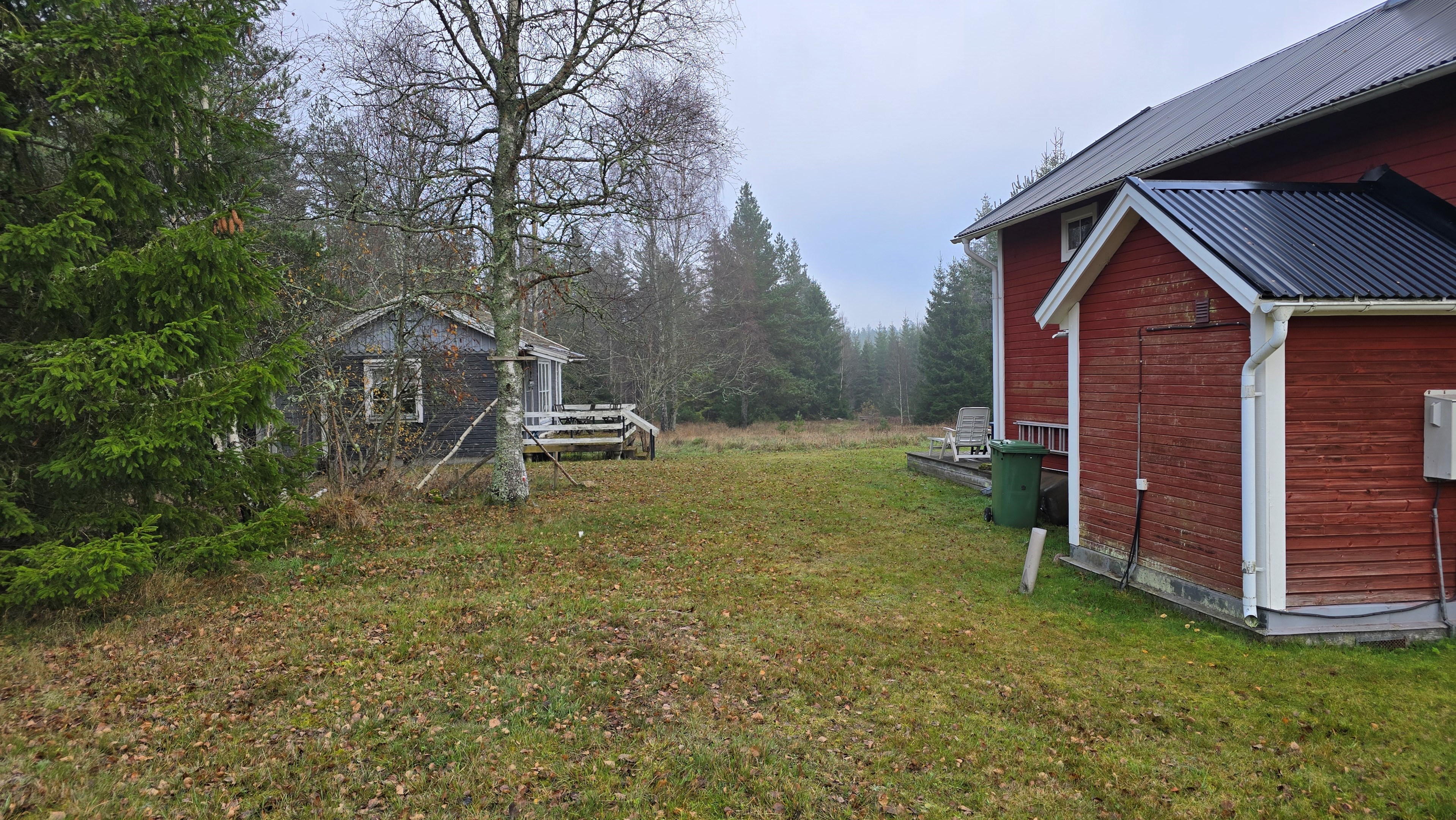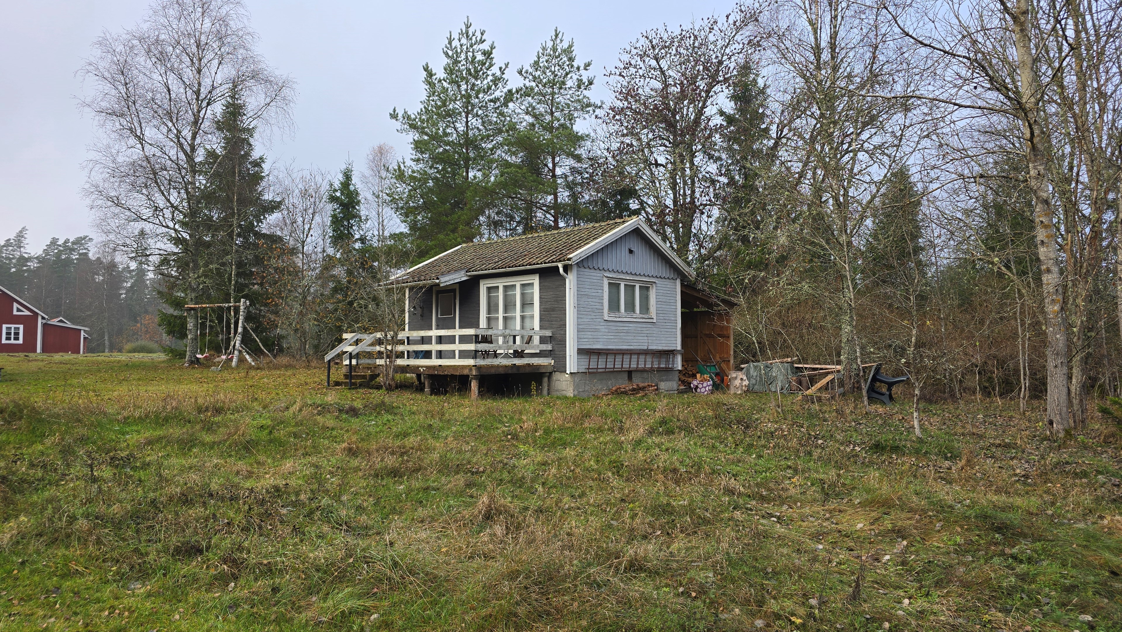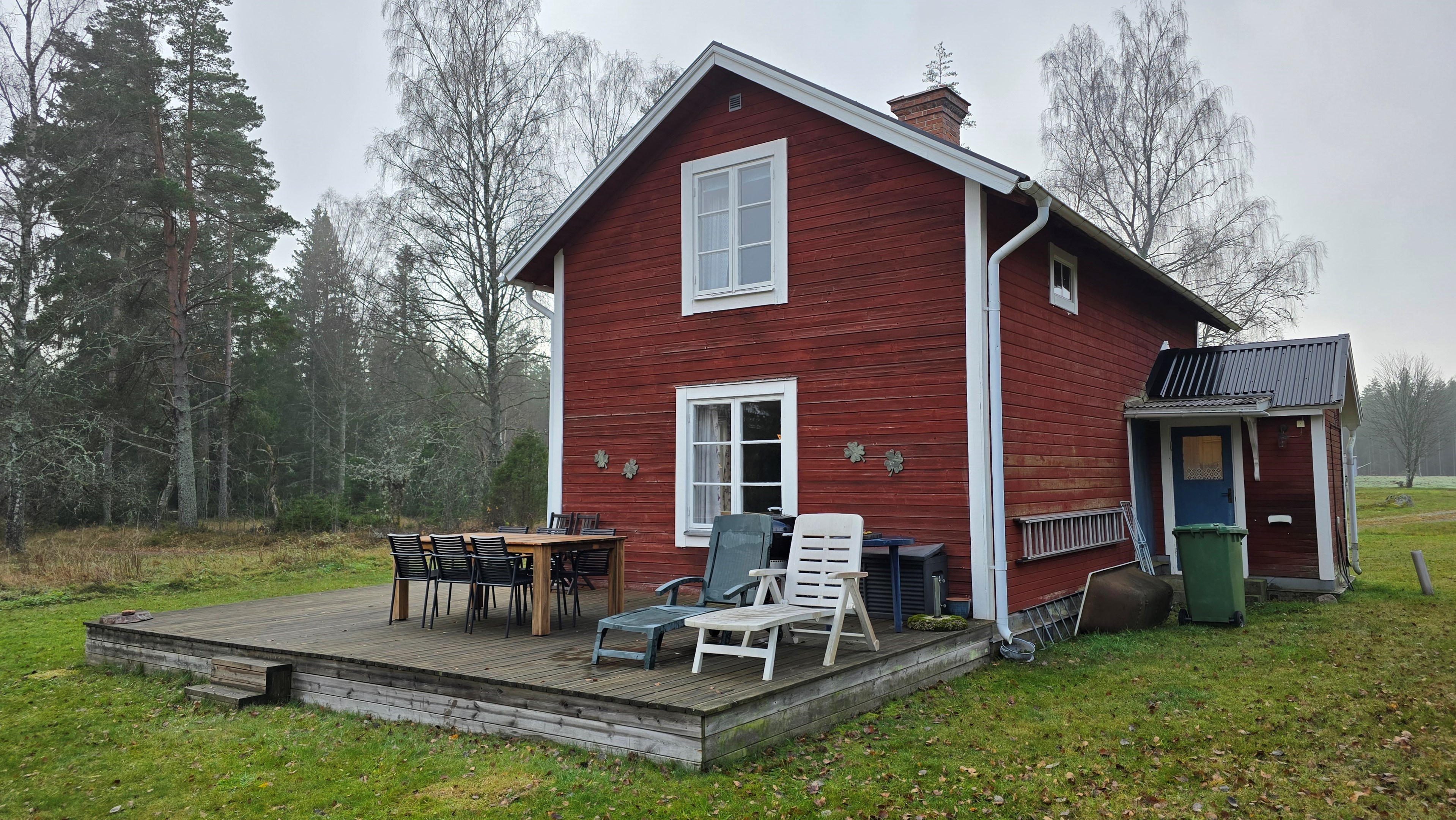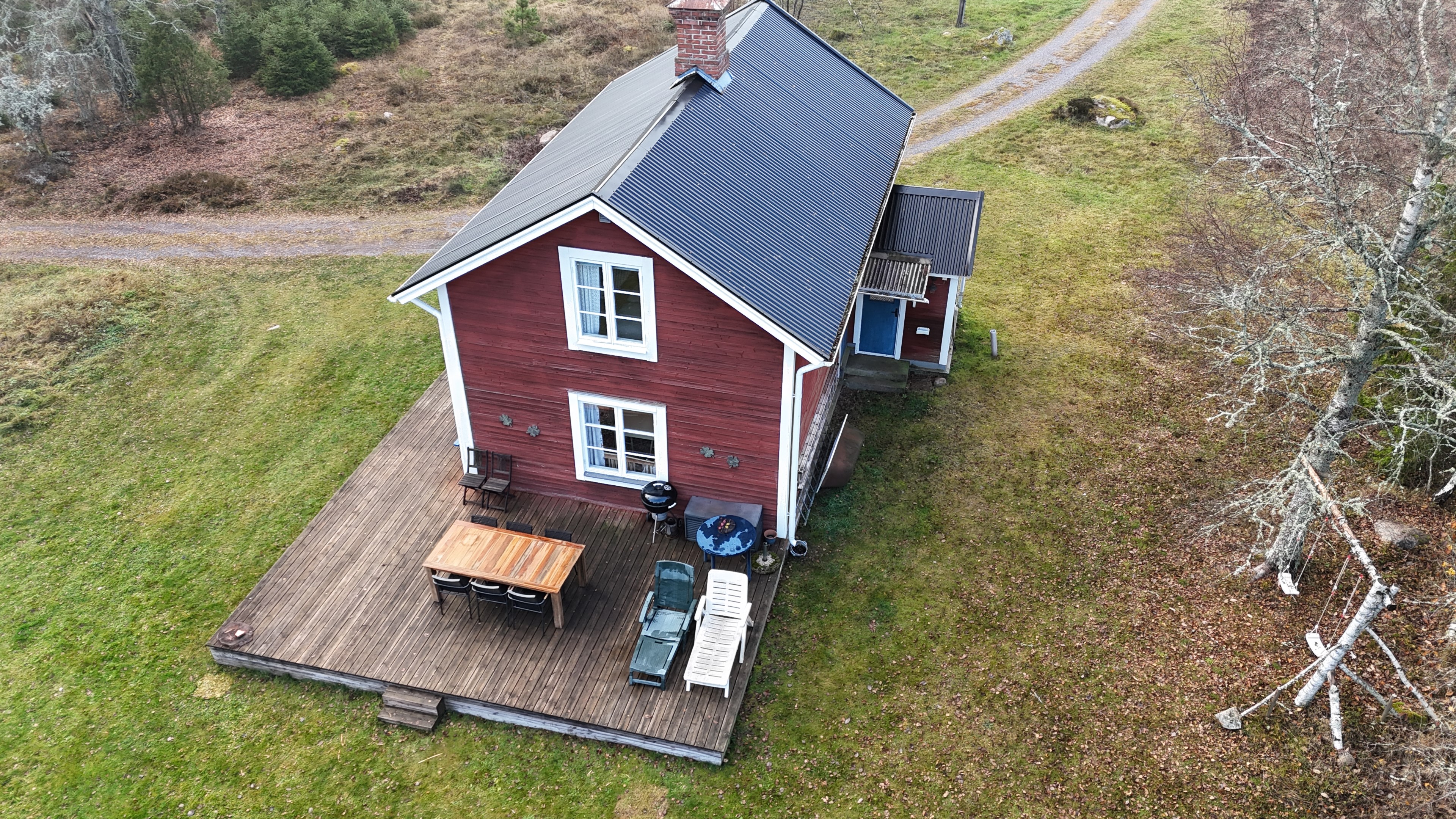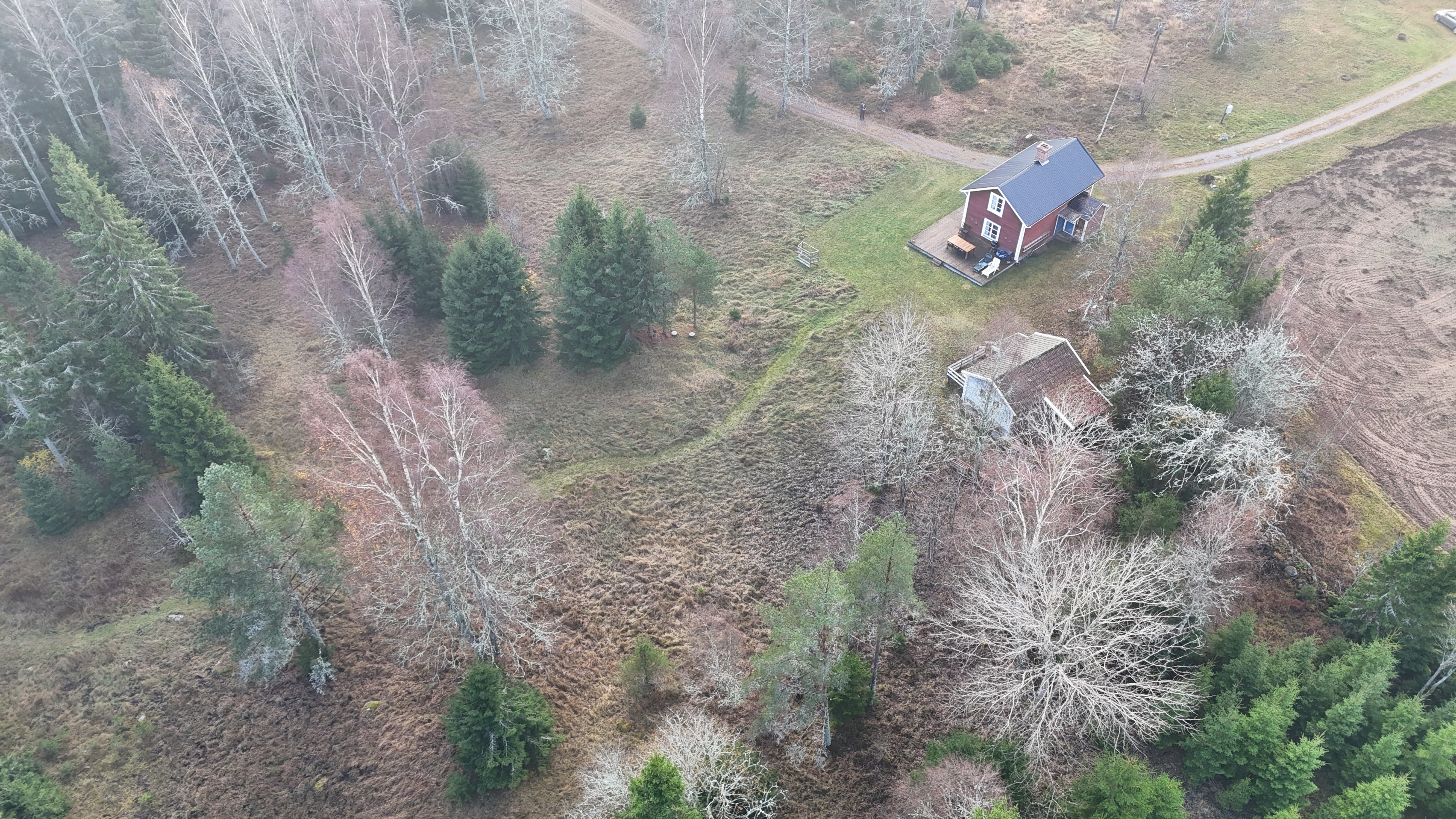Torp med anor från 1760-talet, ombyggt och tillbyggt genom åren, på ca 95 m² boyta. Nytt tak 2025. Uppvärmning med el-element, öppen spis, rörspis och vedspis. Vatten från borrad brunn (gemensam med granne), avlopp till trekammarbrunn med infiltration (inspekterad 2011). Gäststuga om ca 24 m² med elvärme och WC (end. kallt vatten). Uthus och vedskjul om ca 10 m² tillbyggt på gäststugan. Tomten är 68 343 m² (6,8 ha) med skog, öppna ytor närmast huset och bålplats. Ca 6 km till sjön Läen. Cirka 230 km från Helsingborg och Malmö. Filmvisning: https://youtu.be/Gi4PuBOoqZU Fagerhult Lyckans Höjd vid Lessebo är ett torp med anor från 1760-talet, som genomgått flera om- och tillbyggnader. Huvudbyggnaden har fått nytt plåttak 2025 och det vita är målat 2024, men det röda behöver också målas snart. Fasaden är i trä och fönstren är kopplade dubbelglas, utom ett äldre enkelglasfönster på övervåningen. Elsystemet är äldre men fungerar, och huset värms med direktverkande el och därutöver öppen rörspis i vardagsrum, samt vedspis i köket (ej i bruk, men godkänd för eldning efter montering av gnistskydd). På övervåningen finns ytterligare en rörspis i sovrummet. Vatten från borrad brunn gemensam med grannen och avloppet leds till trekammarbrunn med infiltration (inspekterad 2011, ingen åtgärd krävs idag). Entrén nås via veranda med dubbeldörr, målade trägolv, trappa till övervåning och skrubb under trappan. Köket är renoverat på 1990-talet med plastmatta på golvet, gott om skåp, diskbänk, nyare elspis med inbyggd airfryer, kyl/frys, matplats och den gamla vedspisen. Tillbyggd köksingång med våtrumsmatta på golv och väggar, säkringsskåp och varmvattenberedare (ca. 5 år). I tillbyggnaden finns även ett mindre badrum med våtrumsmatta på golv och väggar, WC, handfat och dusch. Vardagsrummet är rymligt med plastmatta på golvet (trä under), spännpapp i taket (trä bakom), öppen spis/rörspis och plats för både matbord och soffgrupp/bäddsoffa. I taket finns spår av tidigare läckage från det gamla taket, men orsaken är åtgärdad, så det är endast kosmetisk. På övervåningen finns rymlig trapphall med plastmatta på golvet. Sovrum med två enkelsängar. Större sovrum med dubbelsäng och vitputsad rörspis. Det finns även kattvinden, där man också kan se spår av den tidigare läckan i taket och man ser de breda golvplanken, som finns under plastmattorna, om man vill plocka fram dem igen. De flesta möbler och annat lösöre kan köpas till eller medfölja, enl. önskemål och avtal med säljaren. Ut över huset finns en gäststuga om ca 24 m² med äldre tegeltak och en stor terrass i betong (behöver mossrensas och nytt räcke). Gästhuset behöver också målas. Här finns entré med laminatgolv, toalett med WC och handfat (endast kallvatten), rum som kan användas som sovrum eller pentry med enkel skåpsinredning (ingen diskbänk i dag). Vatten finns till WC, men ej till köksdelen – möjlighet finns att dra in vatten och skapa riktigt kök och installera varmvattenberedare om man vill. Stort sovrum med dubbelsäng, garderob och stort panoramafönster. På baksidan av gäststugan finns tillbyggt redskapsrum och vedskjul om ca 10 m². Tomten omfattar ca 6,8 hektar (68 343 m²) med blandad skog, öppna ytor och mysig bålplats närmast huset med bord och bänkar. En liten plattform i skogen ger ytterligare plats för avkoppling. Fastigheten ligger längst in på sidoväg till grusväg, helt utan genomfartstrafik och med endast en fritidsboende granne på behörigt avstånd. Området är tyst och ostört, med goda möjligheter till småviltsjakt (här finns vildsvin, råvilt, räv, grävling och lodjur). Rikligt självförsörjande med ved och timmer från egen mark. Skogsbruksplan är under upprättande, men inte klar ännu. Gott om svamp och blåbär i området. En elledning passerar genom tomten, men ca. 200 m. från huset, så den varken syns eller stör. Cirka 6 km till den stora sjön Läen med bad och fiskemöjligheter, och ca 8 km till Lessebo samhälle med service och butiker och ca 8 km. till Kosta i Glasriket med outlet butik. Ca 38 km från Växjö, ca 60 km. till Hanaslövsbacken vid Alvesta och ca. 80 km från Kalmar och Öland. Ca 230 km från både Helsingborg och Malmö. OBS! Fastigheten ligger i glesbygdsområde där förvärvstillstånd krävs från Länsstyrelsen i Kronobergs län. Ansökningsavgift på 5 200 kr betalas av köparen och återbetalas ej vid avslag. Normal handläggningstid är ca. 30 dagar och affären villkoras givetvis av att förvärvstillstånd beviljas för köparen. Fastighetens pris är s.k. "maxpris", dvs. det blir ingen budgivning ut över detta pris. Det är givetvis tillåtet att lämna ett bud under det marknadsförda priset, men det kan då bli budgivning upp till maxpriset. Läs mer på hemsidan "Om att köpa ett hus": https://www.oedegaarde.dk/Kopa/S13270.
