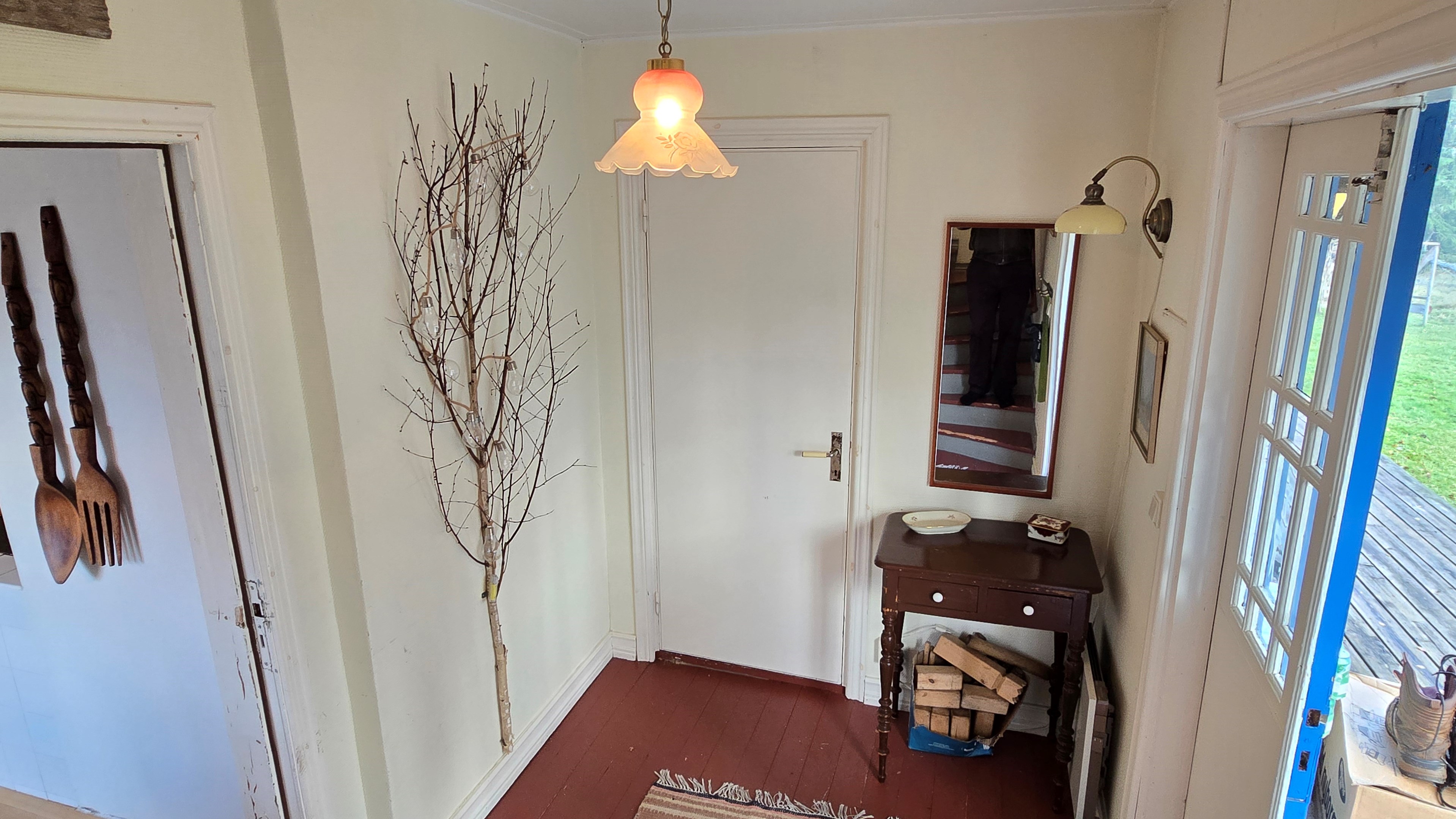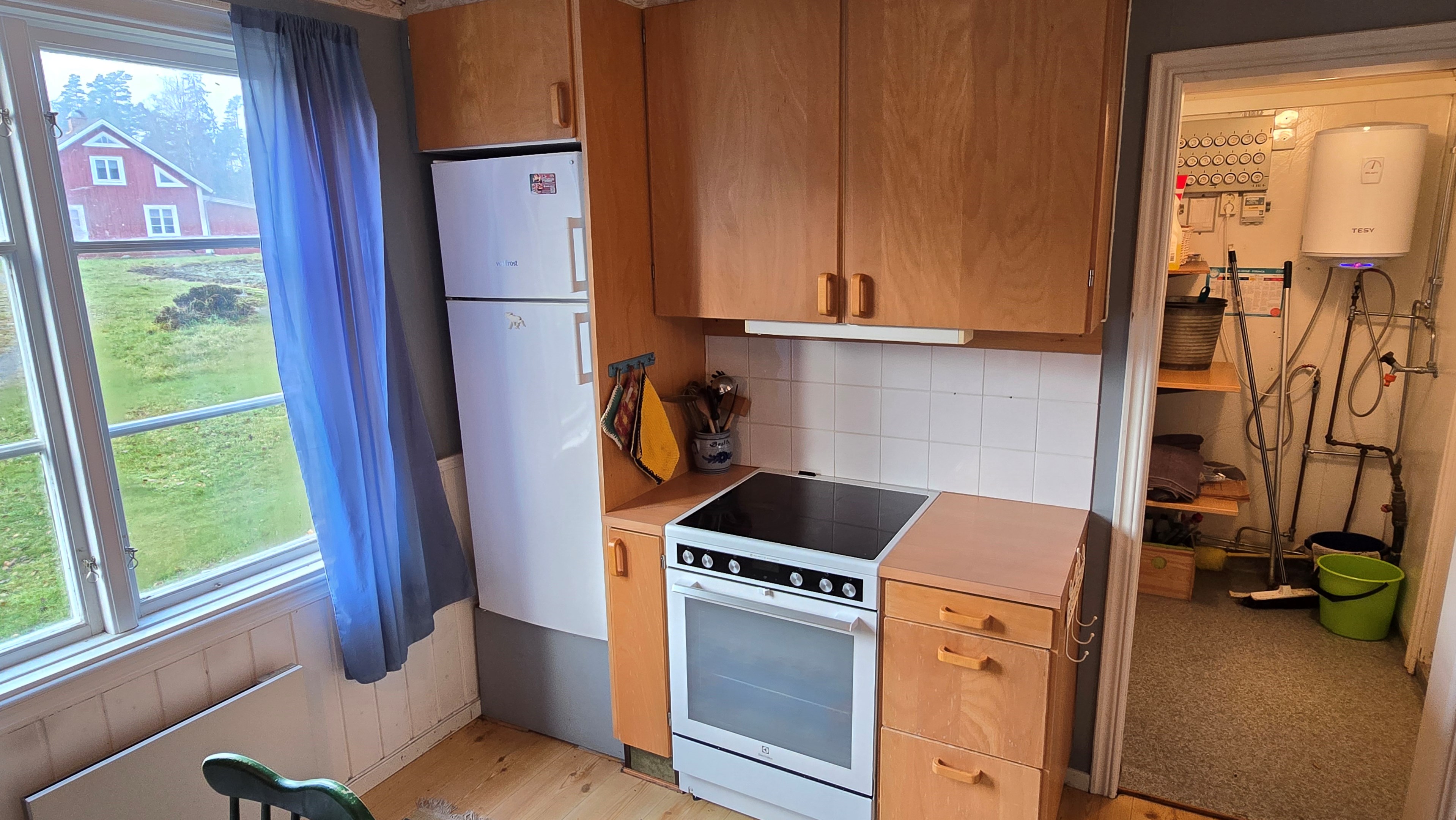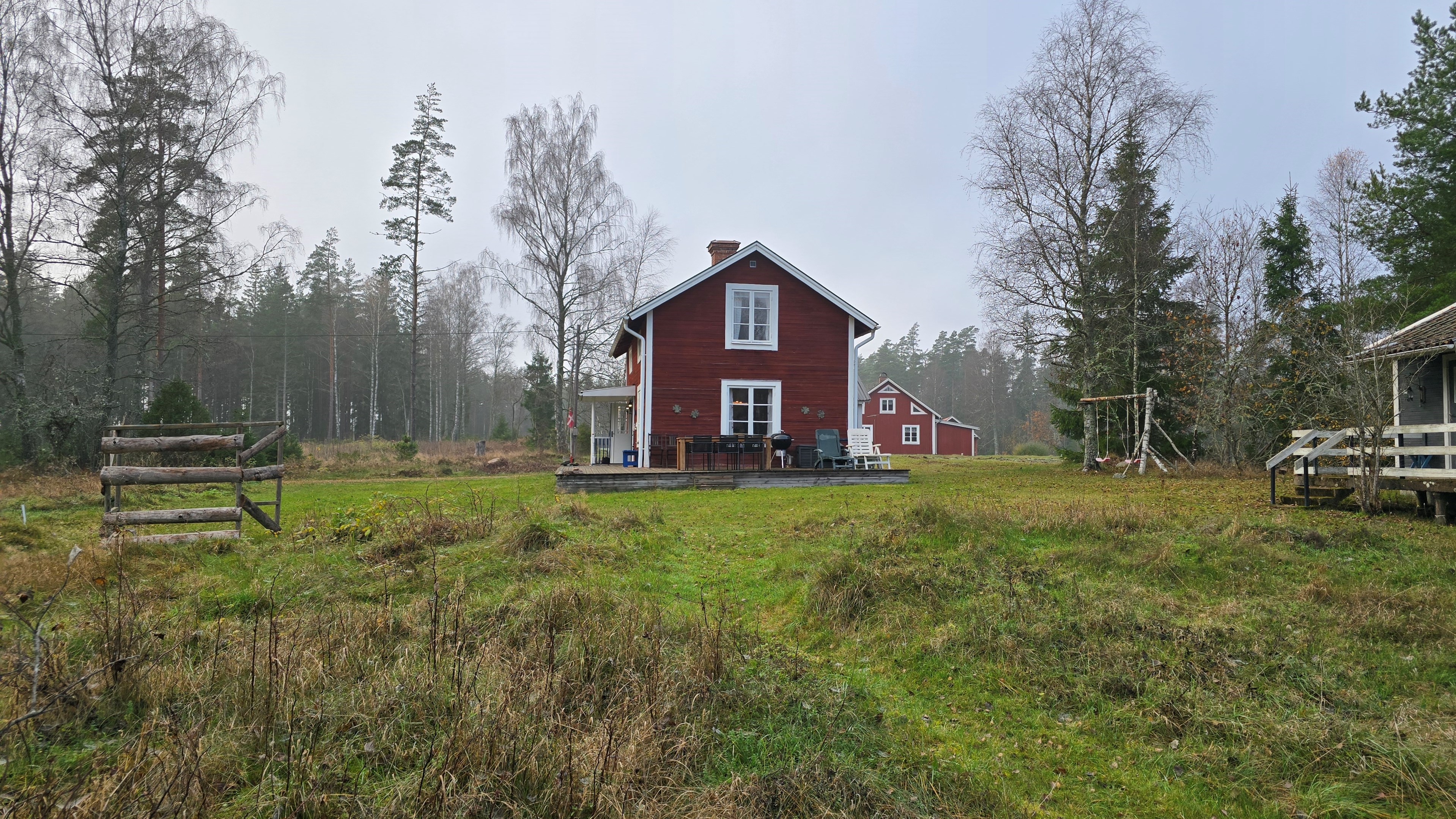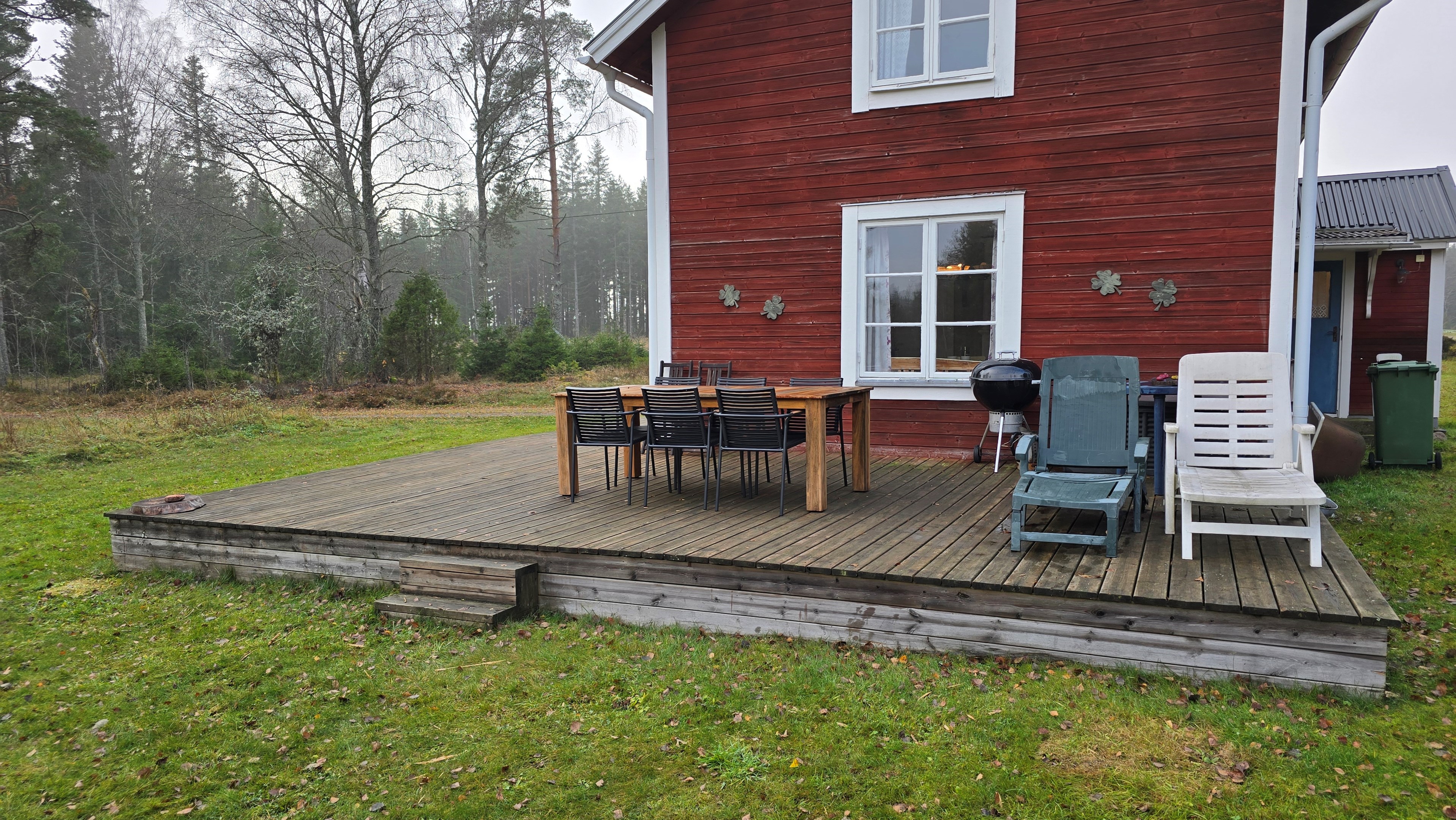 Torp med anor från 1760-talet, ombyggt och tillbyggt genom åren, på ca 95 m² boyta. Nytt tak 2025. Uppvärmning med el-element, öppen spis, rörspis och vedspis. Vatten från borrad brunn (gemensam med granne), avlopp till trekammarbrunn med infiltration (inspekterad 2011). Gäststuga om ca 24 m² med elvärme och WC (end. kallt vatten). Uthus och vedskjul om ca 10 m² tillbyggt på gäststugan. Tomten är 68 343 m² (6,8 ha) med skog, öppna ytor närmast huset och bålplats. Ca 6 km till sjön Läen. Cirka 230 km från Helsingborg och Malmö. Filmvisning: https://youtu.be/Gi4PuBOoqZU Fagerhult Lyckans Höjd vid Lessebo är ett torp med anor från 1760-talet, som genomgått flera om- och tillbyggnader. Huvudbyggnaden har fått nytt plåttak 2025 och det vita är målat 2024, men det röda behöver också målas snart. Fasaden är i trä och fönstren är kopplade dubbelglas, utom ett äldre enkelglasfönster på övervåningen. Elsystemet är äldre men fungerar, och huset värms med direktverkande el och därutöver öppen rörspis i vardagsrum, samt vedspis i köket (ej i bruk, men godkänd för eldning efter montering av gnistskydd). På övervåningen finns ytterligare en rörspis i sovrummet. Vatten från borrad brunn gemensam med grannen och avloppet leds till trekammarbrunn med infiltration (inspekterad 2011, ingen åtgärd krävs idag). Entrén nås via veranda med dubbeldörr, målade trägolv, trappa till övervåning och skrubb under trappan. Köket är renoverat på 1990-talet med plastmatta på golvet, gott om skåp, diskbänk, nyare elspis med inbyggd airfryer, kyl/frys, matplats och den gamla vedspisen. Tillbyggd köksingång med våtrumsmatta på golv och väggar, säkringsskåp och varmvattenberedare (ca. 5 år). I tillbyggnaden finns även ett mindre badrum med våtrumsmatta på golv och väggar, WC, handfat och dusch. Vardagsrummet är rymligt med plastmatta på golvet (trä under), spännpapp i taket (trä bakom), öppen spis/rörspis och plats för både matbord och soffgrupp/bäddsoffa. I taket finns spår av tidigare läckage från det gamla taket, men orsaken är åtgärdad, så det är endast kosmetisk. På övervåningen finns rymlig trapphall med plastmatta på golvet. Sovrum med två enkelsängar. Större sovrum med dubbelsäng och vitputsad rörspis. Det finns även kattvinden, där man också kan se spår av den tidigare läckan i taket och man ser de breda golvplanken, som finns under plastmattorna, om man vill plocka fram dem igen. De flesta möbler och annat lösöre kan köpas till eller medfölja, enl. önskemål och avtal med säljaren. Ut över huset finns en gäststuga om ca 24 m² med äldre tegeltak och en stor terrass i betong (behöver mossrensas och nytt räcke). Gästhuset behöver också målas. Här finns entré med laminatgolv, toalett med WC och handfat (endast kallvatten), rum som kan användas som sovrum eller pentry med enkel skåpsinredning (ingen diskbänk i dag). Vatten finns till WC, men ej till köksdelen – möjlighet finns att dra in vatten och skapa riktigt kök och installera varmvattenberedare om man vill. Stort sovrum med dubbelsäng, garderob och stort panoramafönster. På baksidan av gäststugan finns tillbyggt redskapsrum och vedskjul om ca 10 m². Tomten omfattar ca 6,8 hektar (68 343 m²) med blandad skog, öppna ytor och mysig bålplats närmast huset med bord och bänkar. En liten plattform i skogen ger ytterligare plats för avkoppling. Fastigheten ligger längst in på sidoväg till grusväg, helt utan genomfartstrafik och med endast en fritidsboende granne på behörigt avstånd. Området är tyst och ostört, med goda möjligheter till småviltsjakt (här finns vildsvin, råvilt, räv, grävling och lodjur). Rikligt självförsörjande med ved och timmer från egen mark. Skogsbruksplan är under upprättande, men inte klar ännu. Gott om svamp och blåbär i området. En elledning passerar genom tomten, men ca. 200 m. från huset, så den varken syns eller stör. Cirka 6 km till den stora sjön Läen med bad och fiskemöjligheter, och ca 8 km till Lessebo samhälle med service och butiker och ca 8 km. till Kosta i Glasriket med outlet butik. Ca 38 km från Växjö, ca 60 km. till Hanaslövsbacken vid Alvesta och ca. 80 km från Kalmar och Öland. Ca 230 km från både Helsingborg och Malmö. OBS! Fastigheten ligger i glesbygdsområde där förvärvstillstånd krävs från Länsstyrelsen i Kronobergs län. Ansökningsavgift på 5 200 kr betalas av köparen och återbetalas ej vid avslag. Normal handläggningstid är ca. 30 dagar och affären villkoras givetvis av att förvärvstillstånd beviljas för köparen. Fastighetens pris är s.k. "maxpris", dvs. det blir ingen budgivning ut över detta pris. Det är givetvis tillåtet att lämna ett bud under det marknadsförda priset, men det kan då bli budgivning upp till maxpriset. Läs mer på hemsidan "Om att köpa ett hus": https://www.oedegaarde.dk/Kopa/S13270.
