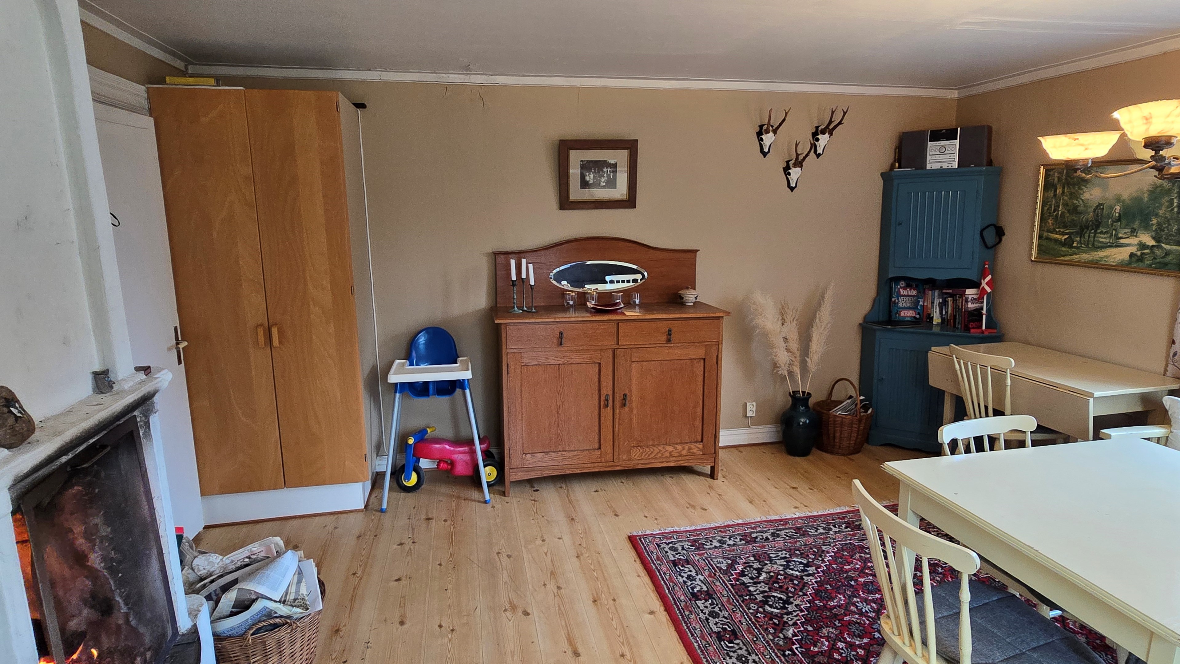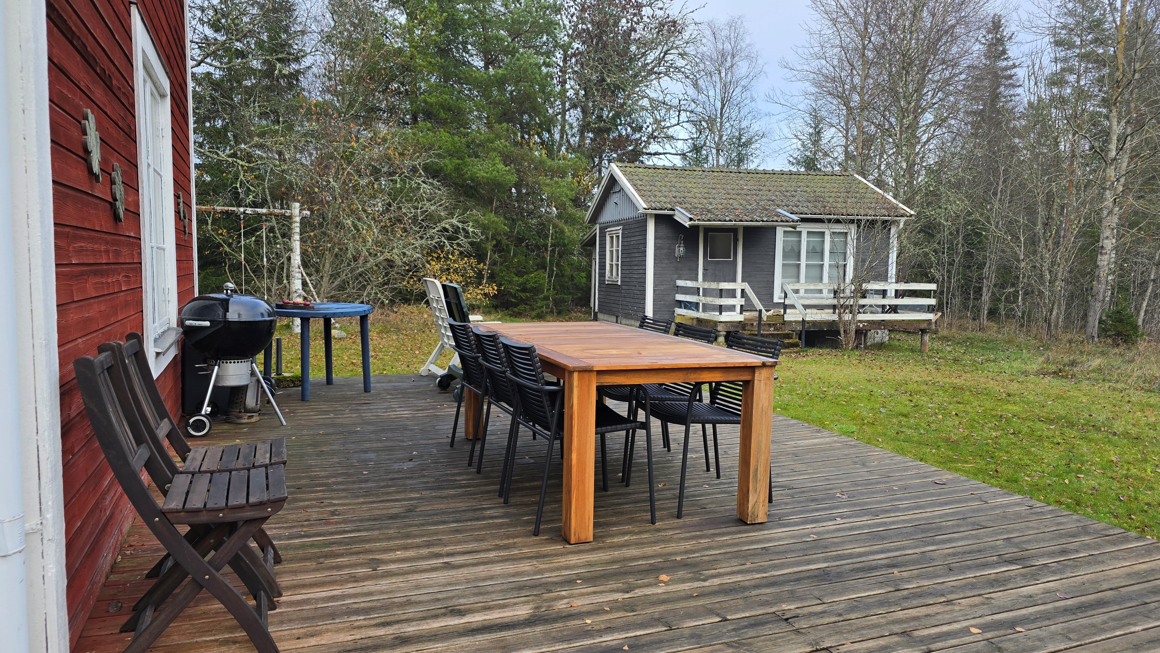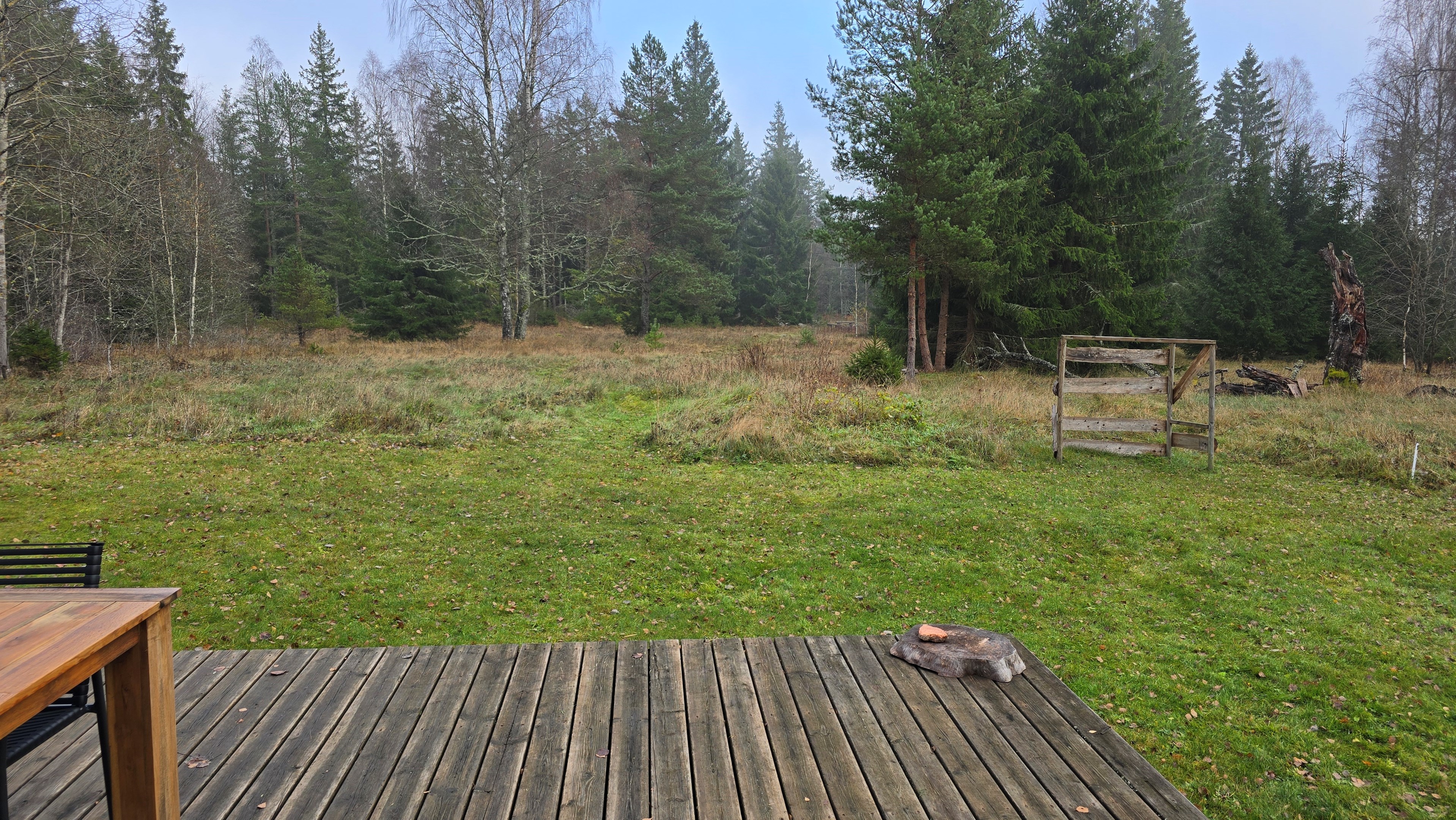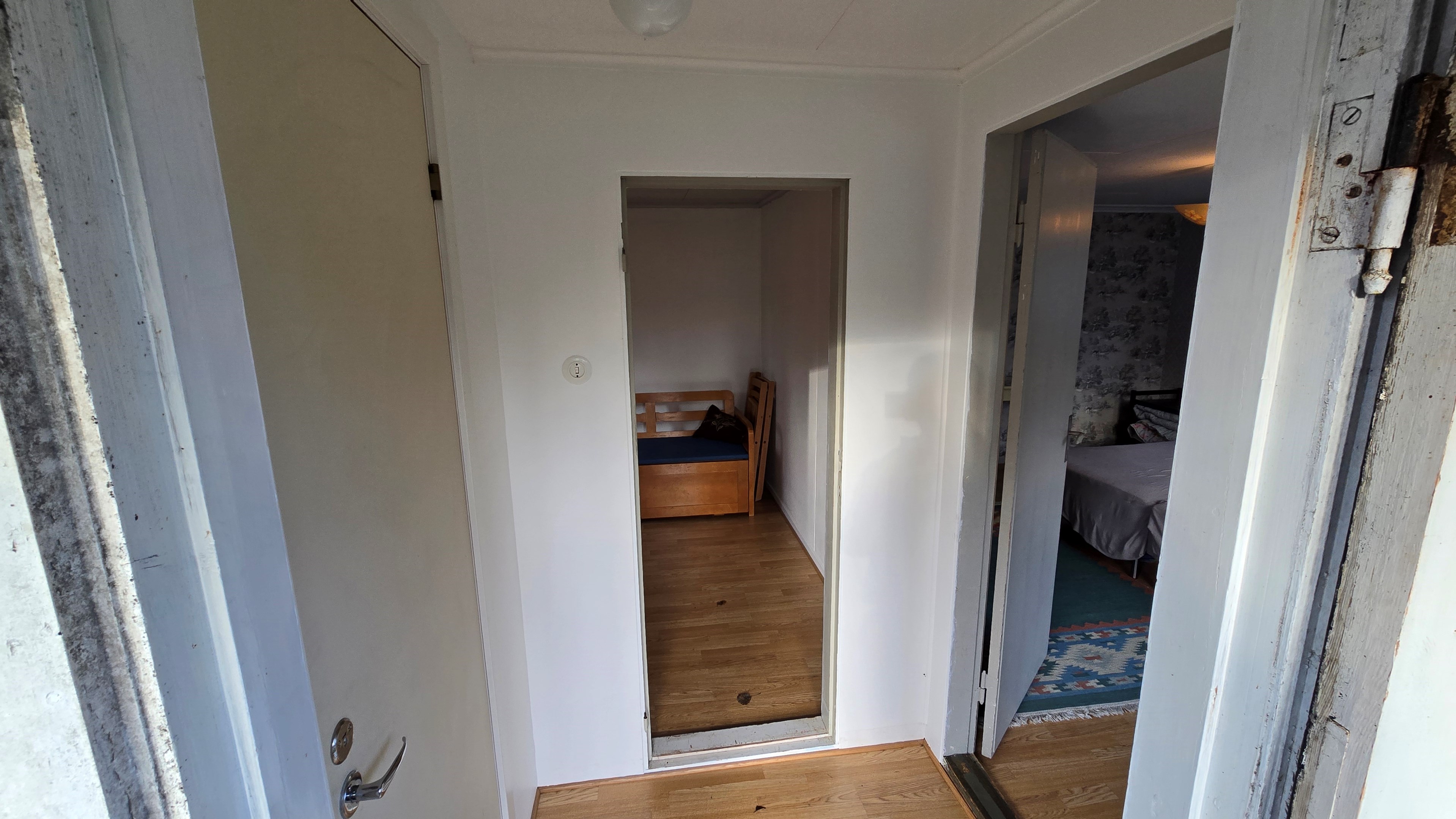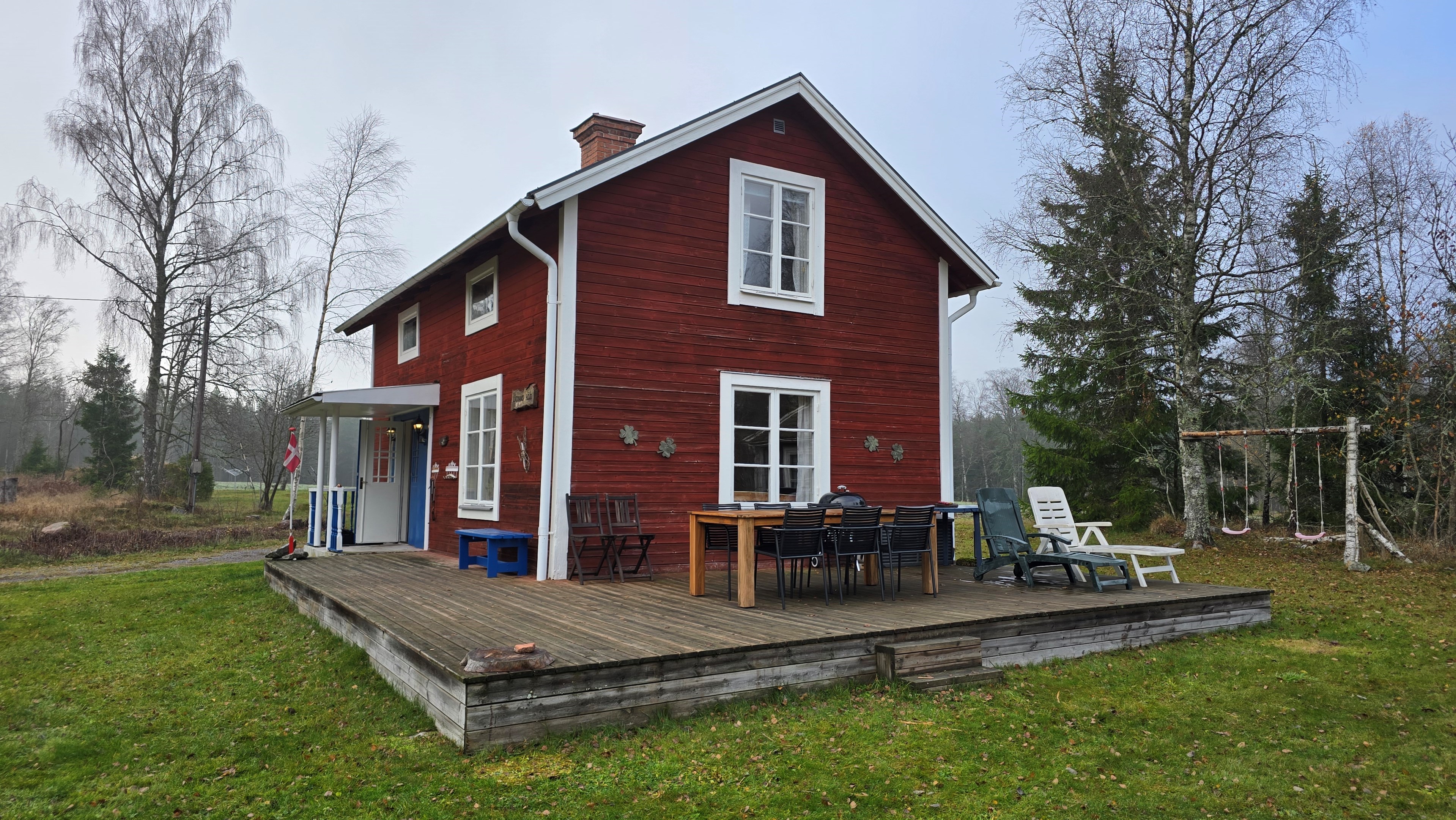 Torp med anor från 1760-talet, ombyggt och tillbyggt genom åren, på ca 95 m² boyta. Nytt tak 2025. Uppvärmning med el-element, öppen spis, rörspis och vedspis. Vatten från borrad brunn (gemensam med granne), avlopp till trekammarbrunn med infiltration (inspekterad 2011). Gäststuga om ca 24 m² med elvärme och WC (end. kallt vatten). Uthus och vedskjul om ca 10 m² tillbyggt på gäststugan. Tomten är 68 343 m² (6,8 ha) med skog, öppna ytor närmast huset och bålplats. Ca 6 km till sjön Läen. Cirka 230 km från Helsingborg och Malmö. Filmvisning: https://youtu.be/Gi4PuBOoqZU Fagerhult Lyckans Höjd vid Lessebo är ett torp med anor från 1760-talet, som genomgått flera om- och tillbyggnader. Huvudbyggnaden har fått nytt plåttak 2025 och det vita är målat 2024, men det röda behöver också målas snart. Fasaden är i trä och fönstren är kopplade dubbelglas, utom ett äldre enkelglasfönster på övervåningen. Elsystemet är äldre men fungerar, och huset värms med direktverkande el och därutöver öppen rörspis i vardagsrum, samt vedspis i köket (ej i bruk, men godkänd för eldning efter montering av gnistskydd). På övervåningen finns ytterligare en rörspis i sovrummet. Vatten från borrad brunn gemensam med grannen och avloppet leds till trekammarbrunn med infiltration (inspekterad 2011, ingen åtgärd krävs idag). Entrén nås via veranda med dubbeldörr, målade trägolv, trappa till övervåning och skrubb under trappan. Köket är renoverat på 1990-talet med plastmatta på golvet, gott om skåp, diskbänk, nyare elspis med inbyggd airfryer, kyl/frys, matplats och den gamla vedspisen. Tillbyggd köksingång med våtrumsmatta på golv och väggar, säkringsskåp och varmvattenberedare (ca. 5 år). I tillbyggnaden finns även ett mindre badrum med våtrumsmatta på golv och väggar, WC, handfat och dusch. Vardagsrummet är rymligt med plastmatta på golvet (trä under), spännpapp i taket (trä bakom), öppen spis/rörspis och plats för både matbord och soffgrupp/bäddsoffa. I taket finns spår av tidigare läckage från det gamla taket, men orsaken är åtgärdad, så det är endast kosmetisk. På övervåningen finns rymlig trapphall med plastmatta på golvet. Sovrum med två enkelsängar. Större sovrum med dubbelsäng och vitputsad rörspis. Det finns även kattvinden, där man också kan se spår av den tidigare läckan i taket och man ser de breda golvplanken, som finns under plastmattorna, om man vill plocka fram dem igen. De flesta möbler och annat lösöre kan köpas till eller medfölja, enl. önskemål och avtal med säljaren. Ut över huset finns en gäststuga om ca 24 m² med äldre tegeltak och en stor terrass i betong (behöver mossrensas och nytt räcke). Gästhuset behöver också målas. Här finns entré med laminatgolv, toalett med WC och handfat (endast kallvatten), rum som kan användas som sovrum eller pentry med enkel skåpsinredning (ingen diskbänk i dag). Vatten finns till WC, men ej till köksdelen – möjlighet finns att dra in vatten och skapa riktigt kök och installera varmvattenberedare om man vill. Stort sovrum med dubbelsäng, garderob och stort panoramafönster. På baksidan av gäststugan finns tillbyggt redskapsrum och vedskjul om ca 10 m². Tomten omfattar ca 6,8 hektar (68 343 m²) med blandad skog, öppna ytor och mysig bålplats närmast huset med bord och bänkar. En liten plattform i skogen ger ytterligare plats för avkoppling. Fastigheten ligger längst in på sidoväg till grusväg, helt utan genomfartstrafik och med endast en fritidsboende granne på behörigt avstånd. Området är tyst och ostört, med goda möjligheter till småviltsjakt (här finns vildsvin, råvilt, räv, grävling och lodjur). Rikligt självförsörjande med ved och timmer från egen mark. Skogsbruksplan är under upprättande, men inte klar ännu. Gott om svamp och blåbär i området. En elledning passerar genom tomten, men ca. 200 m. från huset, så den varken syns eller stör. Cirka 6 km till den stora sjön Läen med bad och fiskemöjligheter, och ca 8 km till Lessebo samhälle med service och butiker och ca 8 km. till Kosta i Glasriket med outlet butik. Ca 38 km från Växjö, ca 60 km. till Hanaslövsbacken vid Alvesta och ca. 80 km från Kalmar och Öland. Ca 230 km från både Helsingborg och Malmö. OBS! Fastigheten ligger i glesbygdsområde där förvärvstillstånd krävs från Länsstyrelsen i Kronobergs län. Ansökningsavgift på 5 200 kr betalas av köparen och återbetalas ej vid avslag. Normal handläggningstid är ca. 30 dagar och affären villkoras givetvis av att förvärvstillstånd beviljas för köparen. Fastighetens pris är s.k. "maxpris", dvs. det blir ingen budgivning ut över detta pris. Det är givetvis tillåtet att lämna ett bud under det marknadsförda priset, men det kan då bli budgivning upp till maxpriset. Läs mer på hemsidan "Om att köpa ett hus": https://www.oedegaarde.dk/Kopa/S13270.