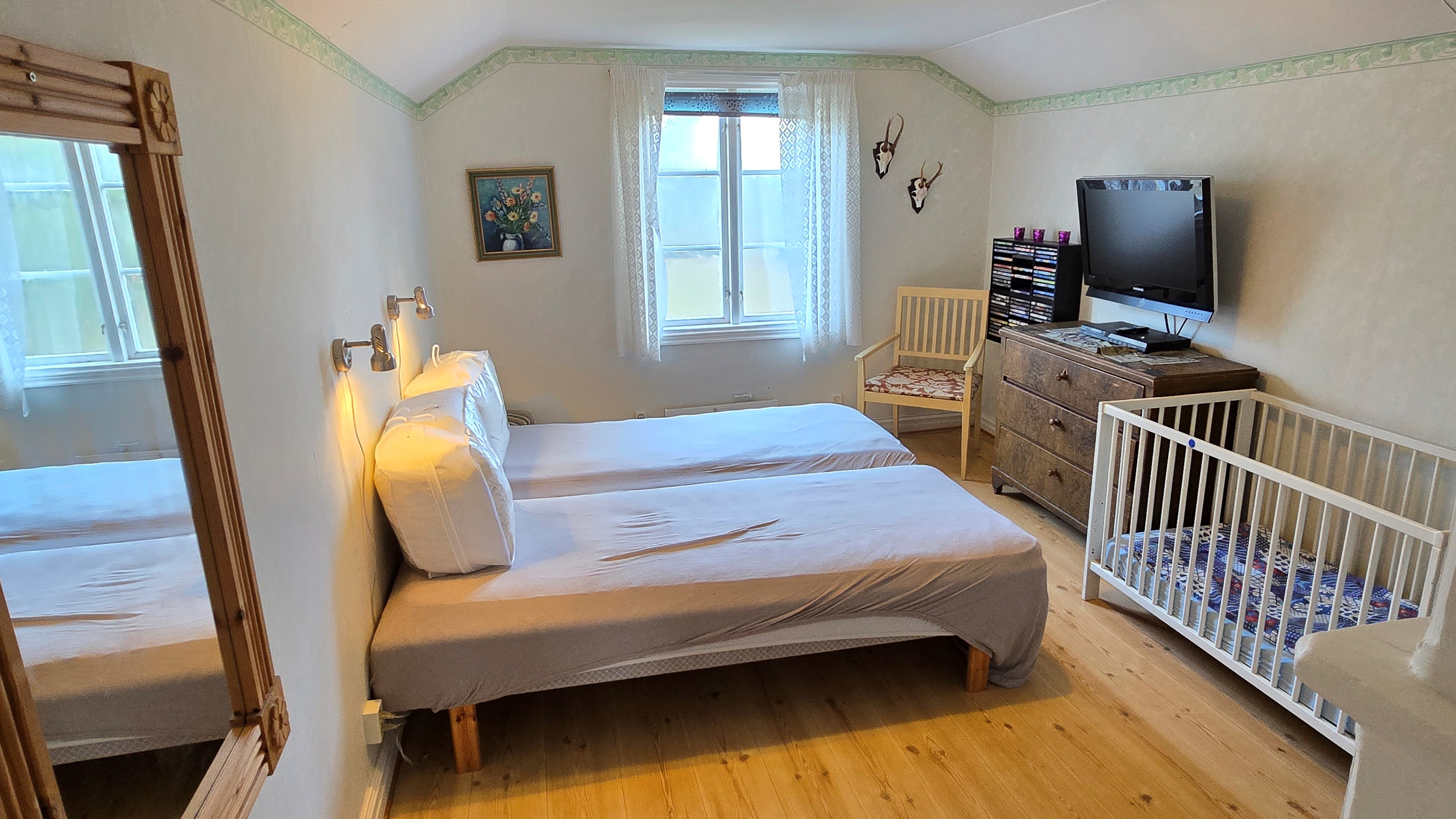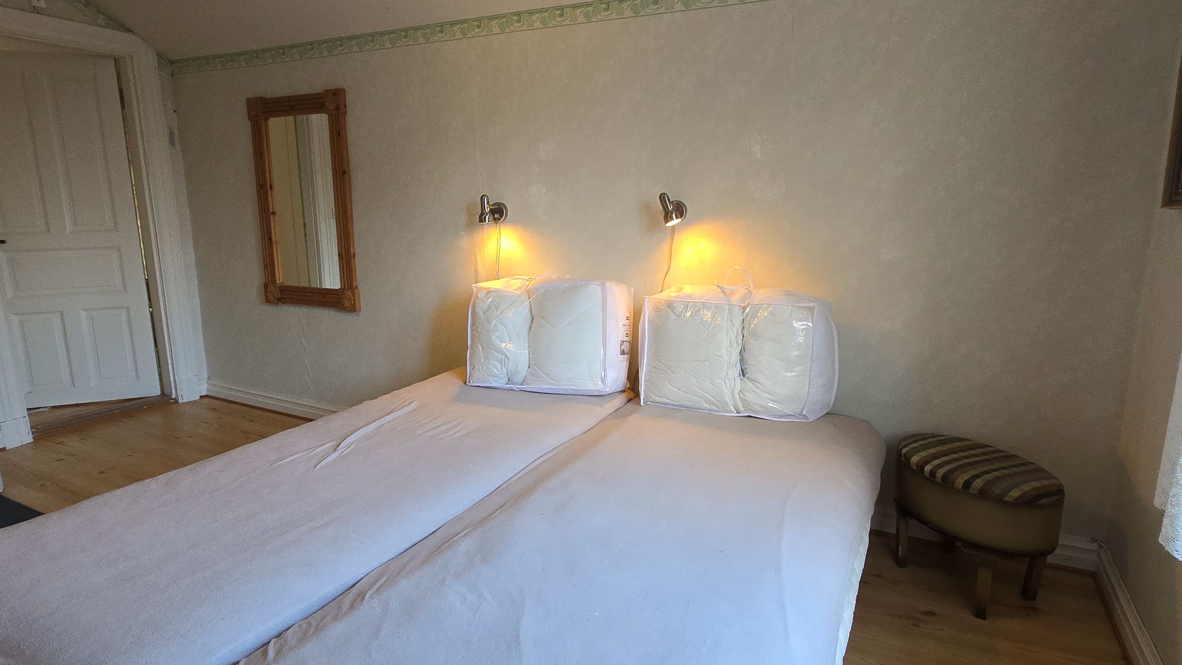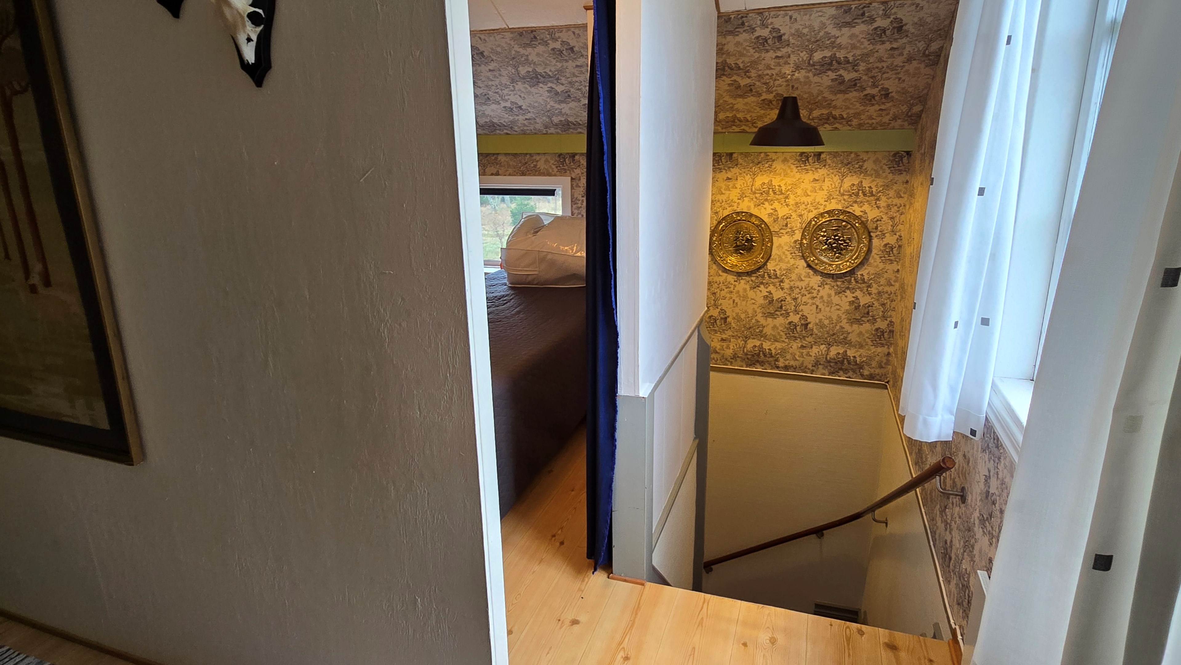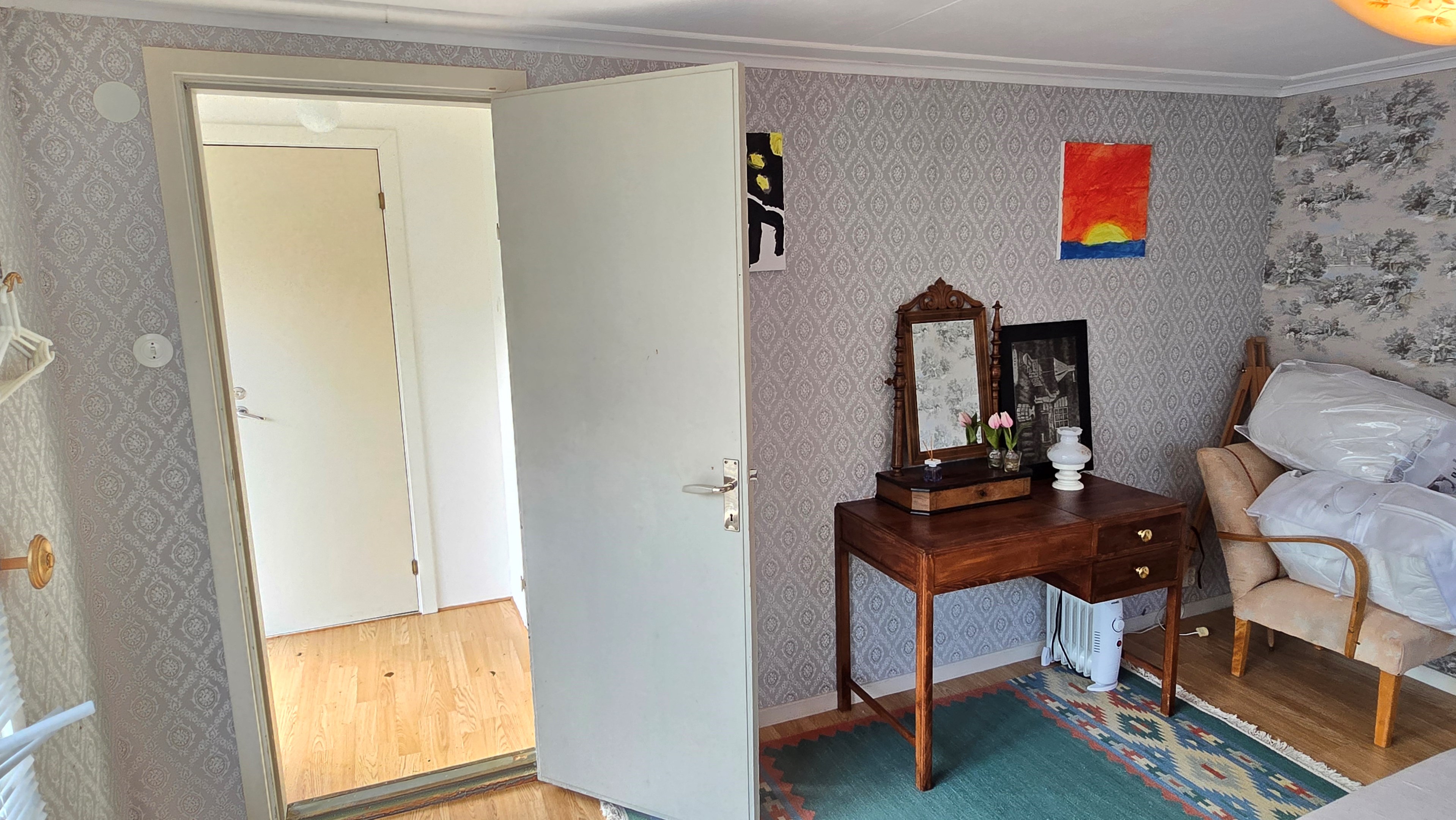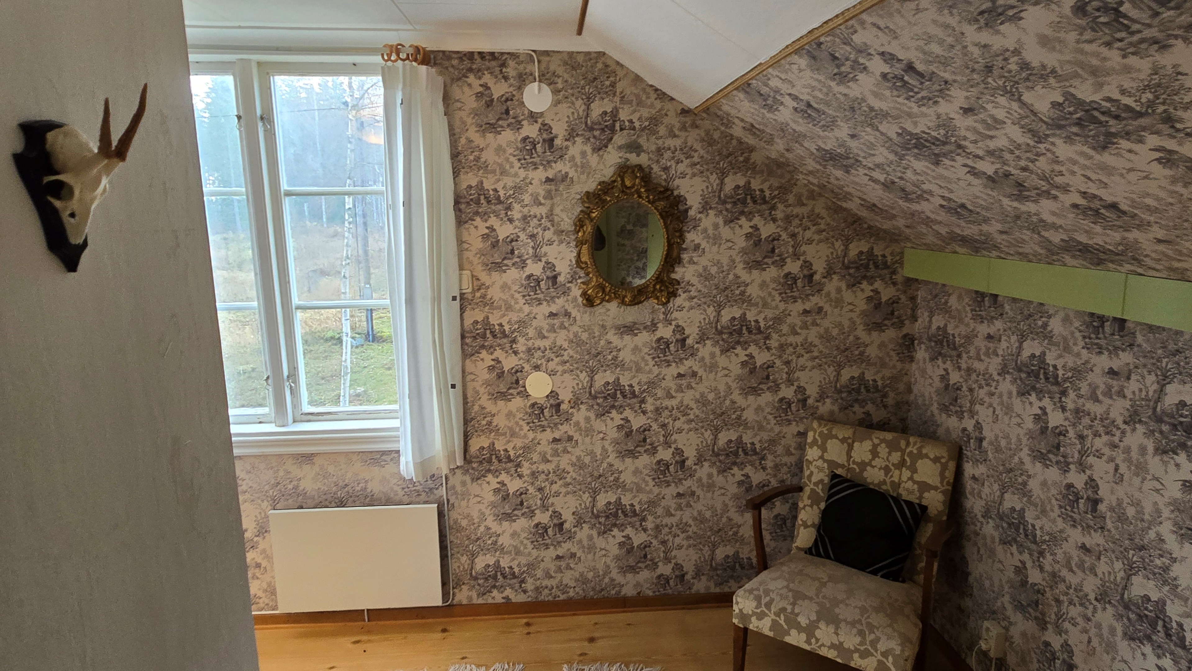Torp med anor från 1760-talet, ombyggt och tillbyggt genom åren, på ca 95 m² boyta. Nytt tak 2025. Uppvärmning med el-element, öppen spis, rörspis och vedspis. Vatten från borrad brunn (gemensam med granne), avlopp till trekammarbrunn med infiltration (inspekterad 2011). Gäststuga om ca 24 m² med elvärme och WC (end. kallt vatten). Uthus och vedskjul om ca 10 m² tillbyggt på gäststugan. Tomten är 68 343 m² (6,8 ha) med skog, öppna ytor närmast huset och bålplats. Ca 6 km till sjön Läen. Cirka 230 km från Helsingborg och Malmö. Filmvisning: https://youtu.be/Gi4PuBOoqZU Fagerhult Lyckans Höjd vid Lessebo är ett torp med anor från 1760-talet, som genomgått flera om- och tillbyggnader. Huvudbyggnaden har fått nytt plåttak 2025 och det vita är målat 2024, men det röda behöver också målas snart. Fasaden är i trä och fönstren är kopplade dubbelglas, utom ett äldre enkelglasfönster på övervåningen. Elsystemet är äldre men fungerar, och huset värms med direktverkande el och därutöver öppen rörspis i vardagsrum, samt vedspis i köket (ej i bruk, men godkänd för eldning efter montering av gnistskydd). På övervåningen finns ytterligare en rörspis i sovrummet. Vatten från borrad brunn gemensam med grannen och avloppet leds till trekammarbrunn med infiltration (inspekterad 2011, ingen åtgärd krävs idag). Entrén nås via veranda med dubbeldörr, målade trägolv, trappa till övervåning och skrubb under trappan. Köket är renoverat på 1990-talet med plastmatta på golvet, gott om skåp, diskbänk, nyare elspis med inbyggd airfryer, kyl/frys, matplats och den gamla vedspisen. Tillbyggd köksingång med våtrumsmatta på golv och väggar, säkringsskåp och varmvattenberedare (ca. 5 år). I tillbyggnaden finns även ett mindre badrum med våtrumsmatta på golv och väggar, WC, handfat och dusch. Vardagsrummet är rymligt med plastmatta på golvet (trä under), spännpapp i taket (trä bakom), öppen spis/rörspis och plats för både matbord och soffgrupp/bäddsoffa. I taket finns spår av tidigare läckage från det gamla taket, men orsaken är åtgärdad, så det är endast kosmetisk. På övervåningen finns rymlig trapphall med plastmatta på golvet. Sovrum med två enkelsängar. Större sovrum med dubbelsäng och vitputsad rörspis. Det finns även kattvinden, där man också kan se spår av den tidigare läckan i taket och man ser de breda golvplanken, som finns under plastmattorna, om man vill plocka fram dem igen. De flesta möbler och annat lösöre kan köpas till eller medfölja, enl. önskemål och avtal med säljaren. Ut över huset finns en gäststuga om ca 24 m² med äldre tegeltak och en stor terrass i betong (behöver mossrensas och nytt räcke). Gästhuset behöver också målas. Här finns entré med laminatgolv, toalett med WC och handfat (endast kallvatten), rum som kan användas som sovrum eller pentry med enkel skåpsinredning (ingen diskbänk i dag). Vatten finns till WC, men ej till köksdelen – möjlighet finns att dra in vatten och skapa riktigt kök och installera varmvattenberedare om man vill. Stort sovrum med dubbelsäng, garderob och stort panoramafönster. På baksidan av gäststugan finns tillbyggt redskapsrum och vedskjul om ca 10 m². Tomten omfattar ca 6,8 hektar (68 343 m²) med blandad skog, öppna ytor och mysig bålplats närmast huset med bord och bänkar. En liten plattform i skogen ger ytterligare plats för avkoppling. Fastigheten ligger längst in på sidoväg till grusväg, helt utan genomfartstrafik och med endast en fritidsboende granne på behörigt avstånd. Området är tyst och ostört, med goda möjligheter till småviltsjakt (här finns vildsvin, råvilt, räv, grävling och lodjur). Rikligt självförsörjande med ved och timmer från egen mark. Skogsbruksplan är under upprättande, men inte klar ännu. Gott om svamp och blåbär i området. En elledning passerar genom tomten, men ca. 200 m. från huset, så den varken syns eller stör. Cirka 6 km till den stora sjön Läen med bad och fiskemöjligheter, och ca 8 km till Lessebo samhälle med service och butiker och ca 8 km. till Kosta i Glasriket med outlet butik. Ca 38 km från Växjö, ca 60 km. till Hanaslövsbacken vid Alvesta och ca. 80 km från Kalmar och Öland. Ca 230 km från både Helsingborg och Malmö. OBS! Fastigheten ligger i glesbygdsområde där förvärvstillstånd krävs från Länsstyrelsen i Kronobergs län. Ansökningsavgift på 5 200 kr betalas av köparen och återbetalas ej vid avslag. Normal handläggningstid är ca. 30 dagar och affären villkoras givetvis av att förvärvstillstånd beviljas för köparen. Fastighetens pris är s.k. "maxpris", dvs. det blir ingen budgivning ut över detta pris. Det är givetvis tillåtet att lämna ett bud under det marknadsförda priset, men det kan då bli budgivning upp till maxpriset. Läs mer på hemsidan "Om att köpa ett hus": https://www.oedegaarde.dk/Kopa/S13270.