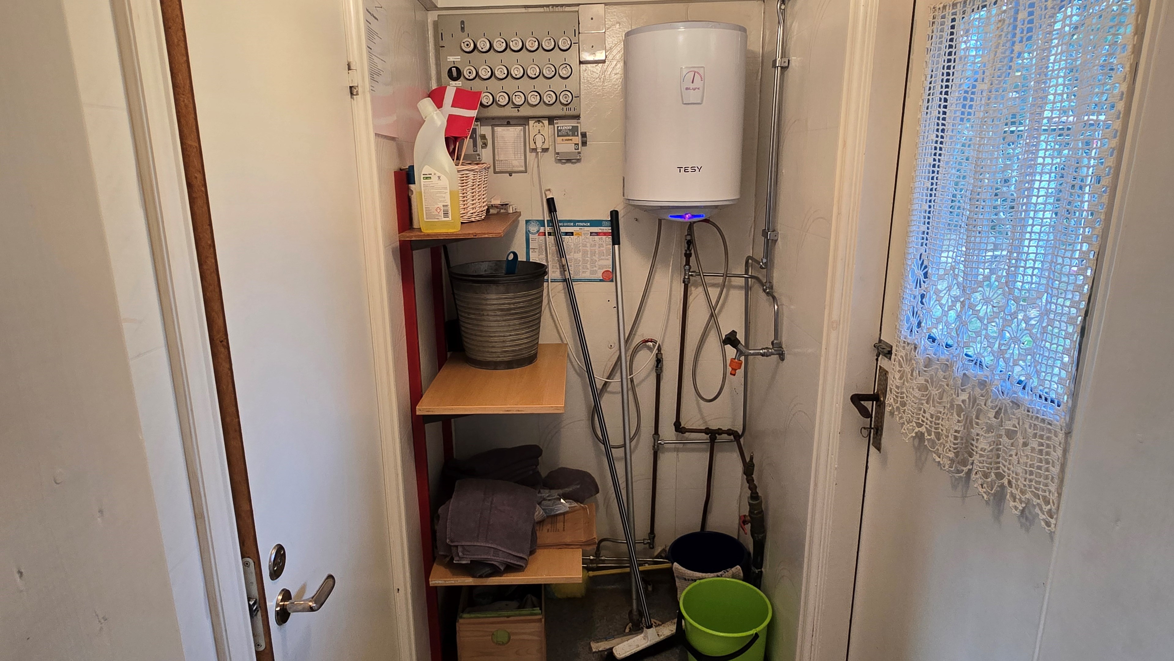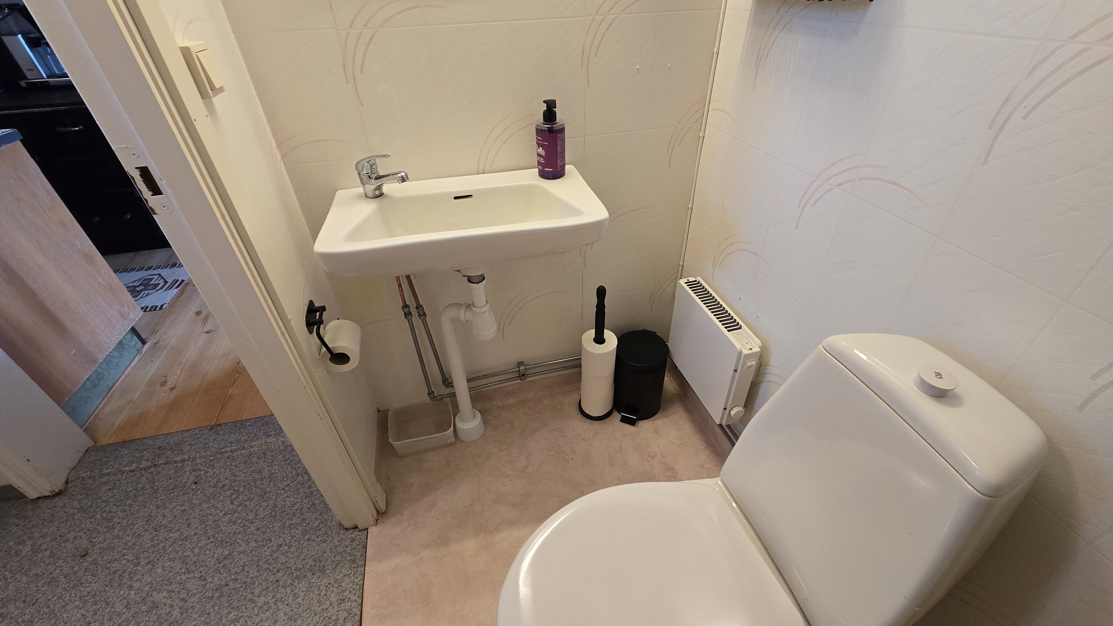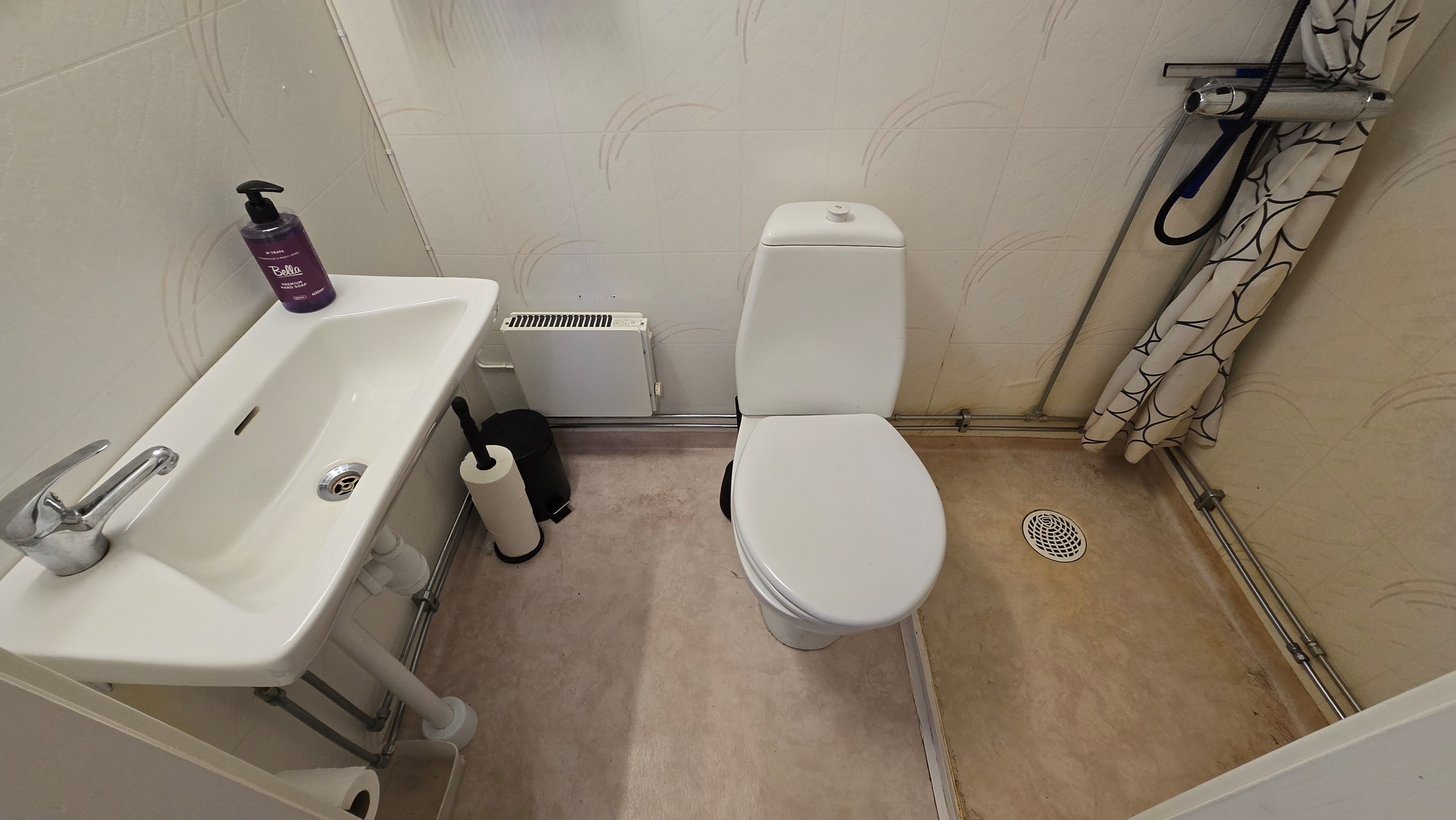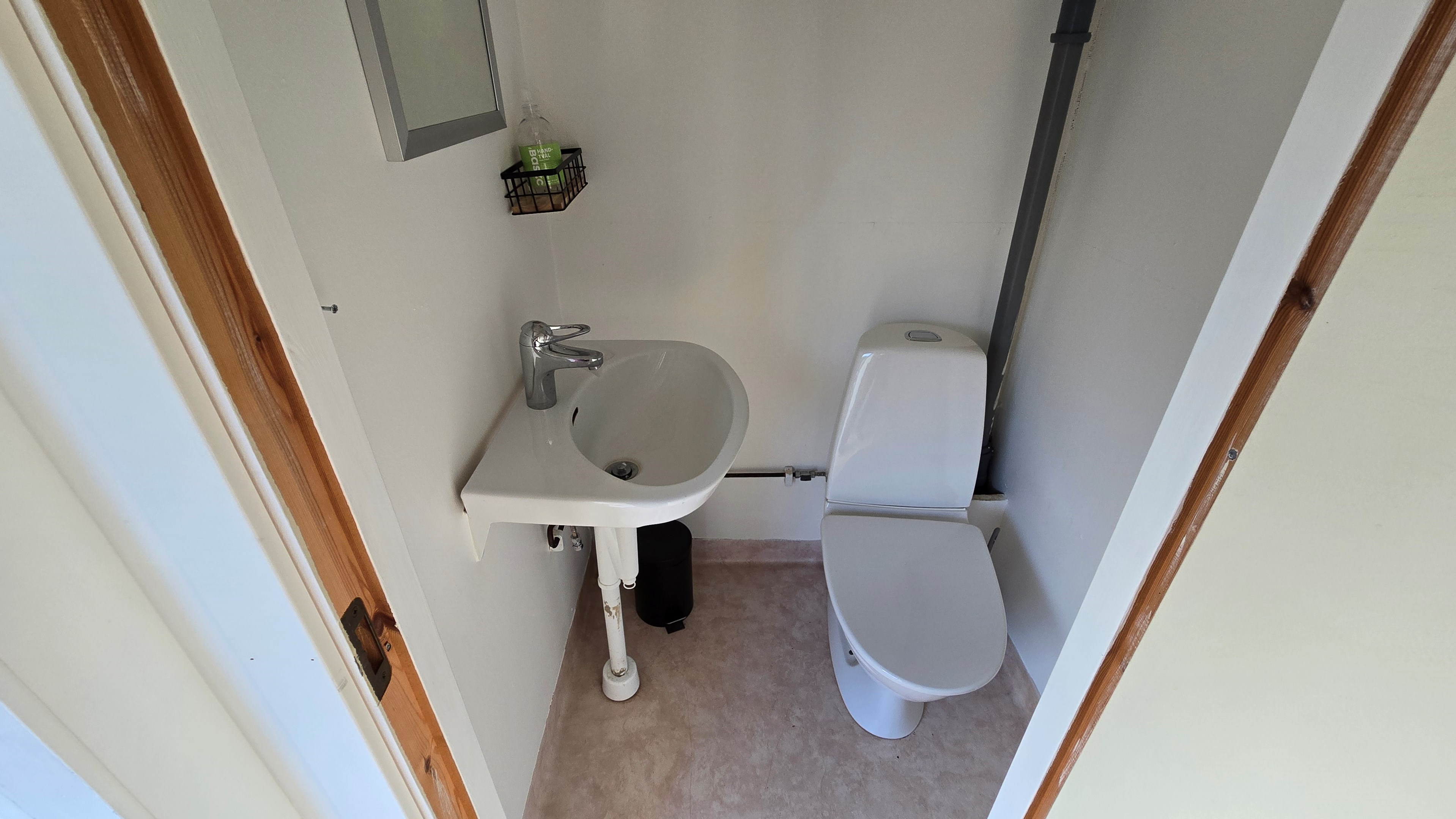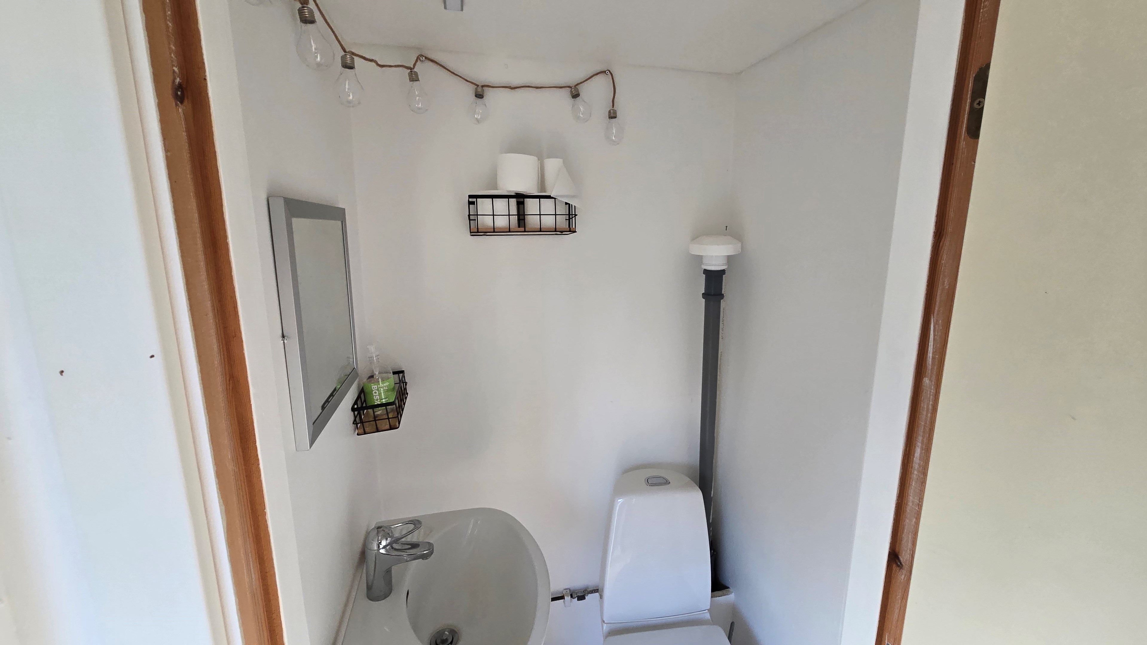 Kallt vatten indraget till toalett. Avlopp till samma trekammarbrunn som från huvudhuset.