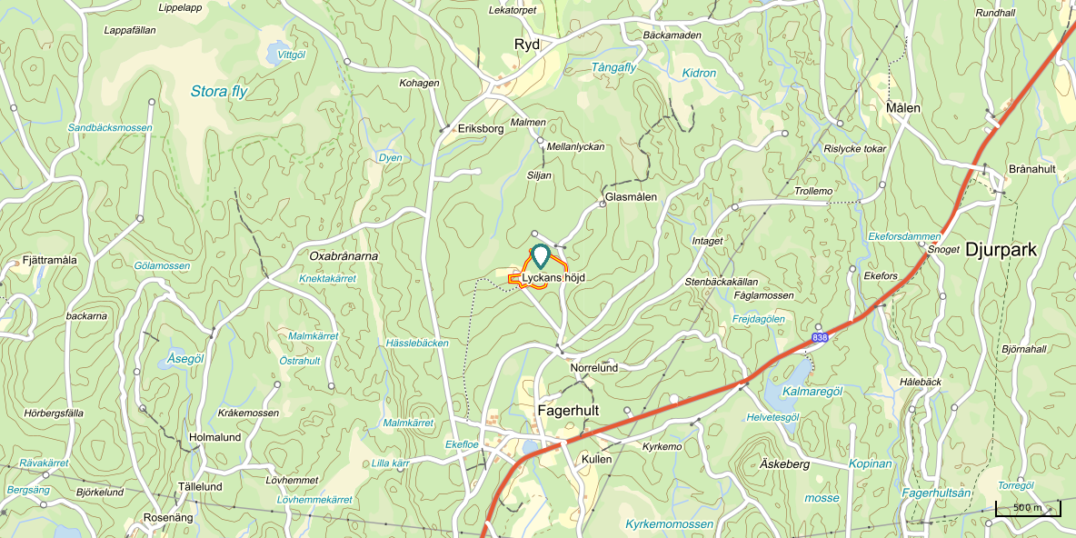 Adress: Fagerhult Lyckans Höjd, Lessebo. GPS-koordinater: N 56° 48.6027', E 15° 19.1818'. Decimal: 56.81004, 15.31970. RT90: 6298234.07, 1470342.781. För vägbeskrivning, besök www.hitta.se och skriv in ovanstående adress.