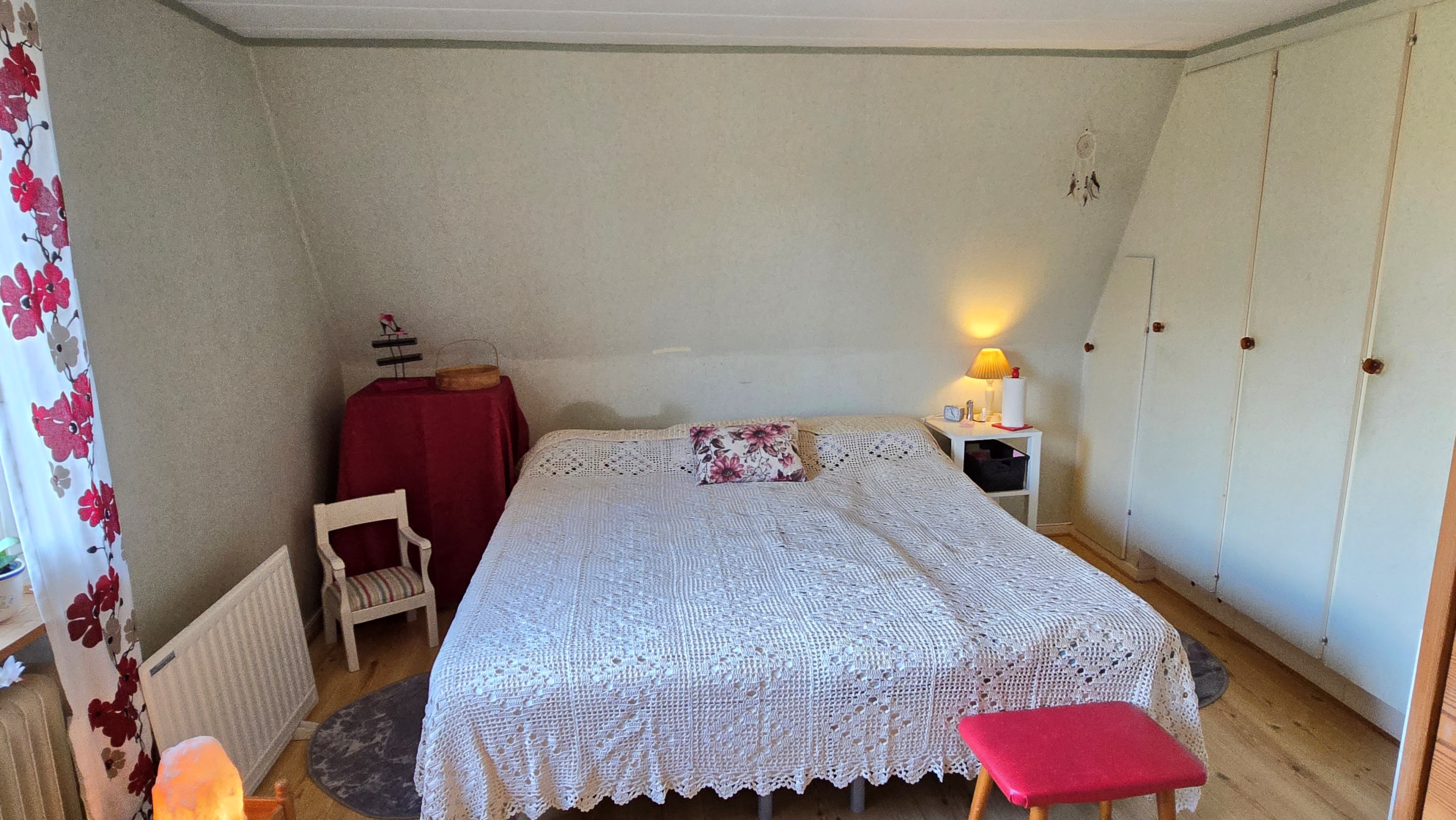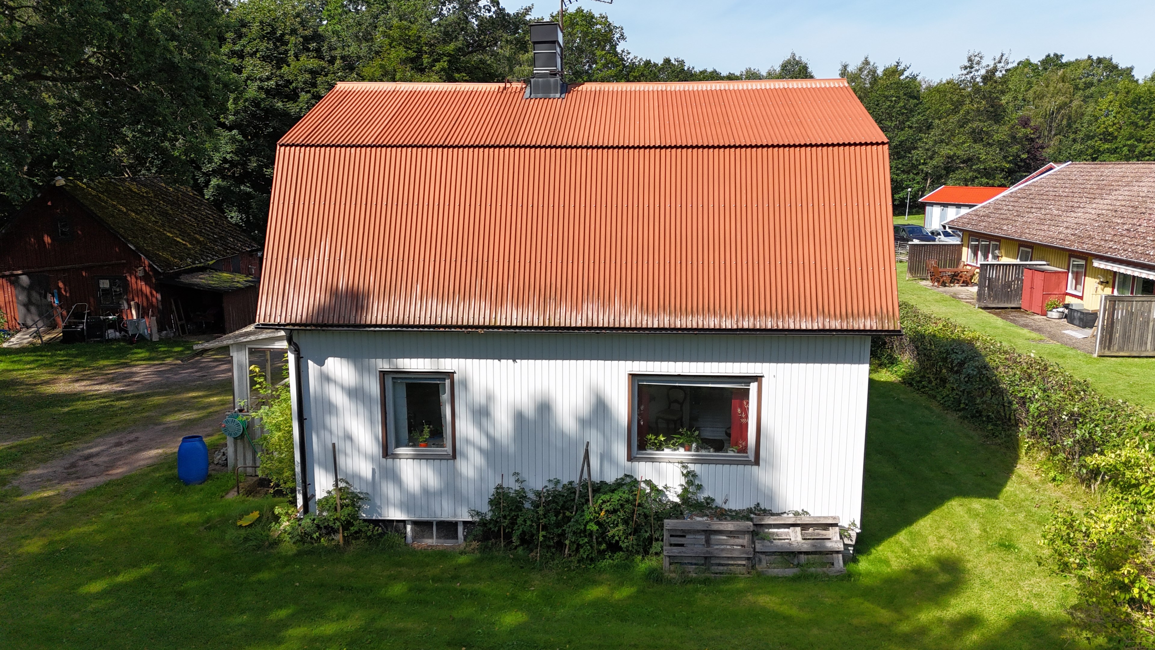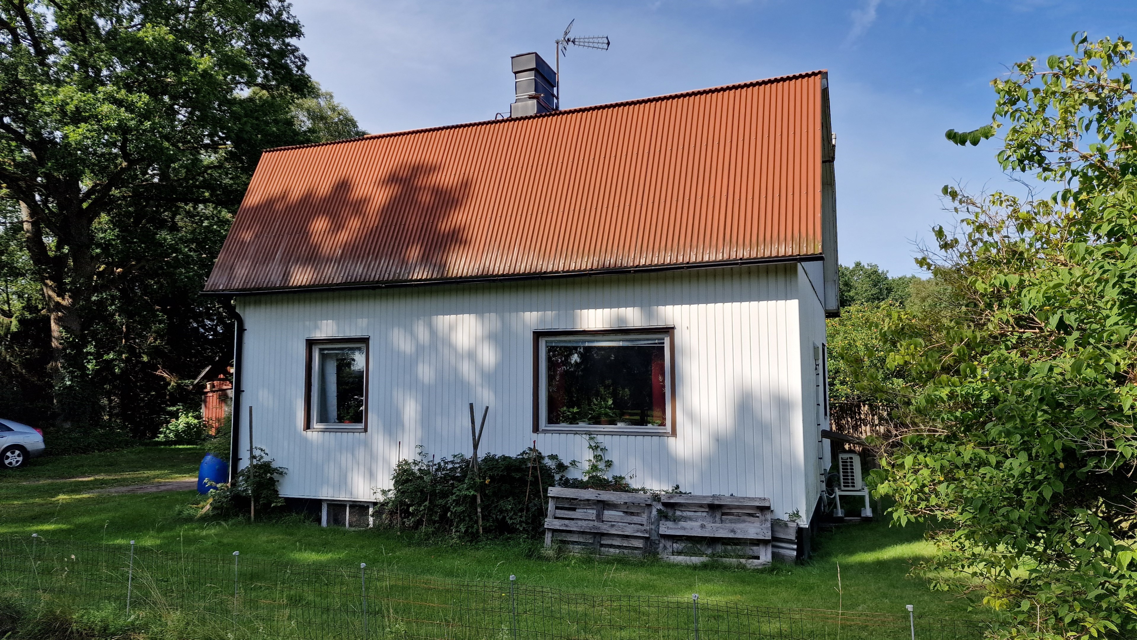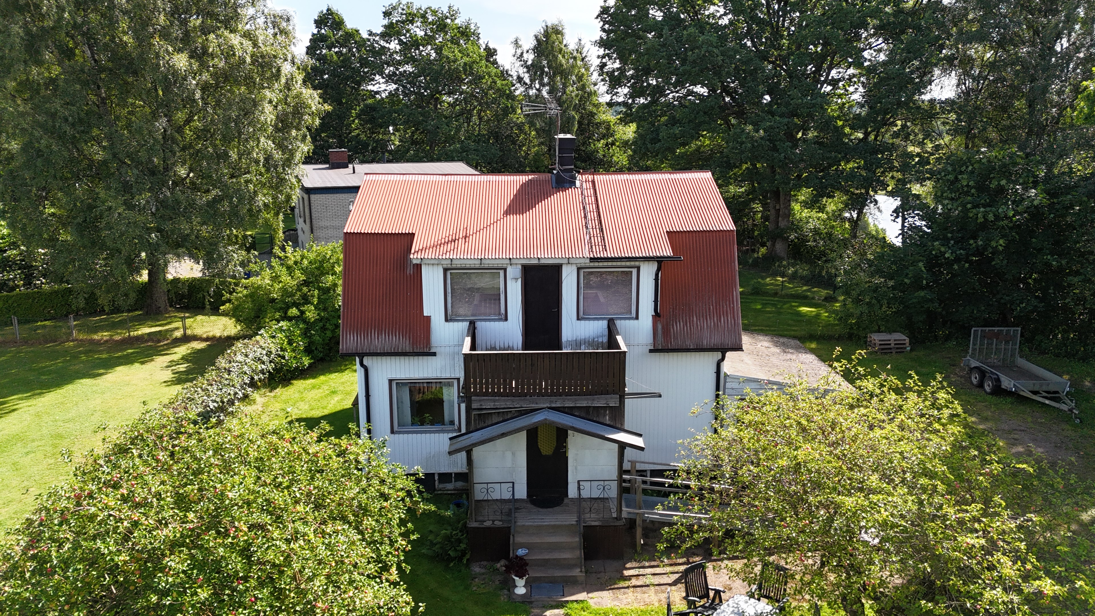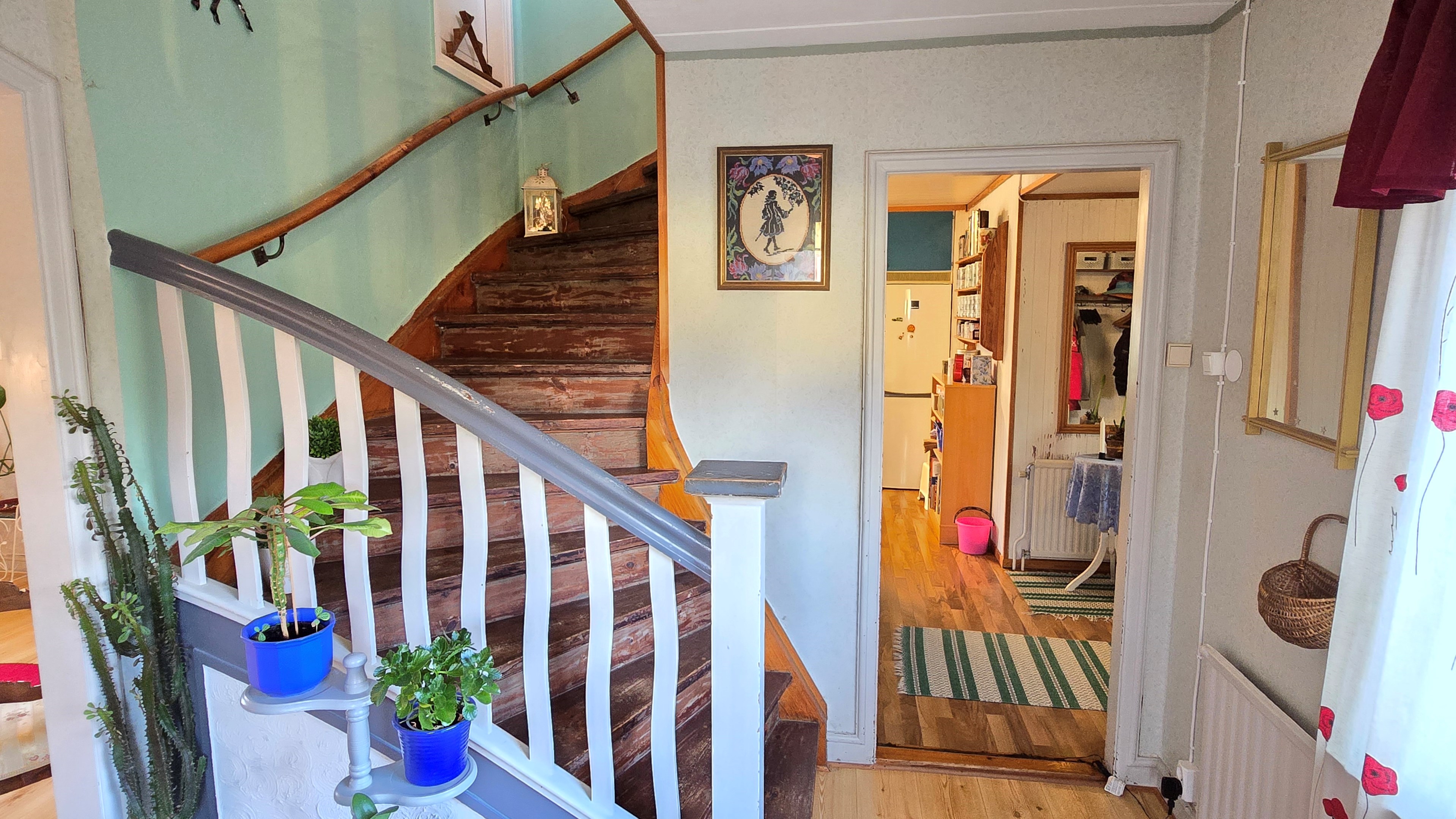 Villa från 1936 i utkanten av Knäred på 90 m2 + källare på 44 m2 och uthus på 50 m2. Kommunalt VA och vattenburen värme samt luftvärmepump. Kosmetiskt renoveringsbehov, men kan användas direkt och förbättras efterhand. 1 513 m2 tomt som det sista på vägen, 45 m. från Lagan. Ca. 1 km. från utomhus pool, vandringsleder, matbutik, skola, vårdcentral m.m. Filmvisning: https://youtu.be/Nx7RkrjWiyM Skansvägen 15 i Knäred är en villa från 1936 på ca. 90 m2 boyta + ca. 44 m2 källare. Härutöver finns en 8 m2 balkong i västerläge och en täckt terrass i söderläge på ca. 10 m2. Huset är plastbeklätt och en liten sektion vid entrén har eternit. På taket ligger ett äldre men tätt plåttak. Huset är väldigt lätt att underhålla, då ev. alger mm. lätt kan tvättas av plastklädseln. En bit hängränna saknas på kupan vid balkongen. Huset renoverades på 1990:talet, men det är dags att renovera igen, även om huset fungerar som det är och kan förbättras lite efterhand. Dubbelglasfönster i hela huset och huset är väl isolerat, så det är lätt att värma upp. Veto ved/pellets panna i källaren från 1990 med 500 liters ackumulatortank från 1993. Därutöver luftvärmepump från 2021. Alla elledningar och kontakter i huset är utbytta 2022 med nytt säkringsskåp med automatsäkringar och jordfelsbrytare. Kommunalt vatten och avlopp. Huset består av hall med laminatgolv (trä under), tretex i taket, träpanel på väggarna och trappa till källaren. Kök med laminatgolv, gott om skåp, diskbänk, elspis med keramisk häll (ca. 2014), spisfläkt, mikro och kyl/frys (2022). Matsal med plastmatta på golvet och tretex i taket. Vardagsrum med plastmatta, tretex i taket, luftvärmepumpen och valv som leder till möblerbart trapphallsrum med trappa till övervåningen. På övervåningen finns möblerbar trapphall med plastmatta på golvet, dörr till balkong i västerläge, toalett med WC och handfat (nya medföljer, men ej monterade) och en garderob bredvid toaletten, så det finns plats att bygga ett litet badrum i framtiden. Kontor eller sovrum med plastmatta på golvet, inbyggd garderob och valv in till ännu ett rum som nu används till lager. Man skulle lätt kunna dela upp detta i två separata rum vid behov. Sovrum med plastmatta på golvet, gott om plats för dubbelsäng och många inbyggda garderober. I källaren finns badrum från 1990:talet med våtrumsmatta på golv och väggar, WC, handfat och dusch. Badrummet skulle behöva renoveras, men fungerar som det är. Två skafferier. Pannrum med ved/pellets panna, ackumulatortank, pelletsförråd och två extra frysar. Tvättstuga med tvättmaskin, torktumlare, extra varmvattensberedare till när man inte använder pannan och en dörr direkt till trädgården. Huset säljs som utgångspunkt utan inventarier, men vissa möbler, verktyg och redskap kan köpas till eller medfölja, enl. önskemål och avtal med säljaren. Ut över huset finns här ett rejält uthus/liten lada på ca. 50 m2 + tillbyggt skjul på baksidan och på framsidan och ett garage och lagringsplats i källaren. Äldre eternittak. I uthuset finns verkstadsrum och gott om plats för lagring. Maskiner som står i och utanför uthuset kommer att tas bort innan tillträde. 1 513 m2 (friköpt) trädgårdstomt för ändan av Skansvägen, där marken sluttar brant ner till Lagan precis utanför tomten. Marken mellan tomten och ån ägs av kommunen och det är ok att tunna ut i buskar och snår, men man får inte fälla träd. En liten stig har fört ner till ån tidigare, men den är nu i stort sett borta, så det kan vara utmanande att gå raka vägen ner till ån från huset. Det finns dock flera stigar ner till ån och ca. 1 km. härifrån finns Flammabadet utomhus pool, där det även finns en liten strand och bålplats vid Lagan. På tomten finns gott om parkeringsplats, gräsmatta, äppelträd, körsbärsträd, rhododendron och björnbär. Träden ger mycket frukt. Väg 15 löper ca. 600 m. från huset, på andra sidan ån och den kan höras, beroende på väder, vind och årstid. På andra sidan väg 15 löper även en järnväg, "Markarydsbanan", och det planeras att bygga en station i Knäred, så man kan ta tåget in till Halmstad eller Hässleholm. Enligt planen ska detta vara klart till 2028. Vid Flammabadet, ca. 1 km. från huset finns även tennisbanor, campingplats och en naturskön vandringsled. Ca. 2 km. till Krokån, Kvarnfallet och den nya vandringsleden, "Krokåslingan", som hänger ihop med Prästaskogens naturreservat och ny gångbro över Krokån. Här ligger även Kvarnen i Knäred, som ibland håller musikarrangemang och sommarcafé. Knäred samhälle har ca. 1200 invånare och det finns bl.a. bra Coop matbutik, Hotell 1613 med restaurang, pizzeria, järnaffär, blomsterbutik, loppis, vårdcentral, skola och "Flammabadet" förstås. Området i stort bjuder också på många natur- och kulturupplevelser med ca. 7 km. till Kulturreservat Bollaltebygget med kringbyggd museumsgård på 1600-talet, ca. 8 km. till "Vippentorpet" hembygdsgård med våffelcafé om sommaren och ca. 7 km. till Hjörneredssjöarna med kanotuthyrning, vandringsleder, fricampning och flera badplatser. Ca. 10 km. till naturreservat Mästocka ljunghed och fin badplats i Björsjön och omkring samma avstånd till det stora naturreservatet Rönnö. Ca. 10 km. till Skogaby Golfklubb. Ca. 17 km. till Laholm samhälle och ca. 25 km. till havet, Mellbystrand och till Vallåsen Bike-Park på Hallandsås och till Kungsbyggets Äventyrspark med zipline och rodelbana sommartid. Ca. 35 km. till Halmstad och färjan till Grenå. Ca. 75 km. från Helsingborg och ca. 135 km. från Malmö.