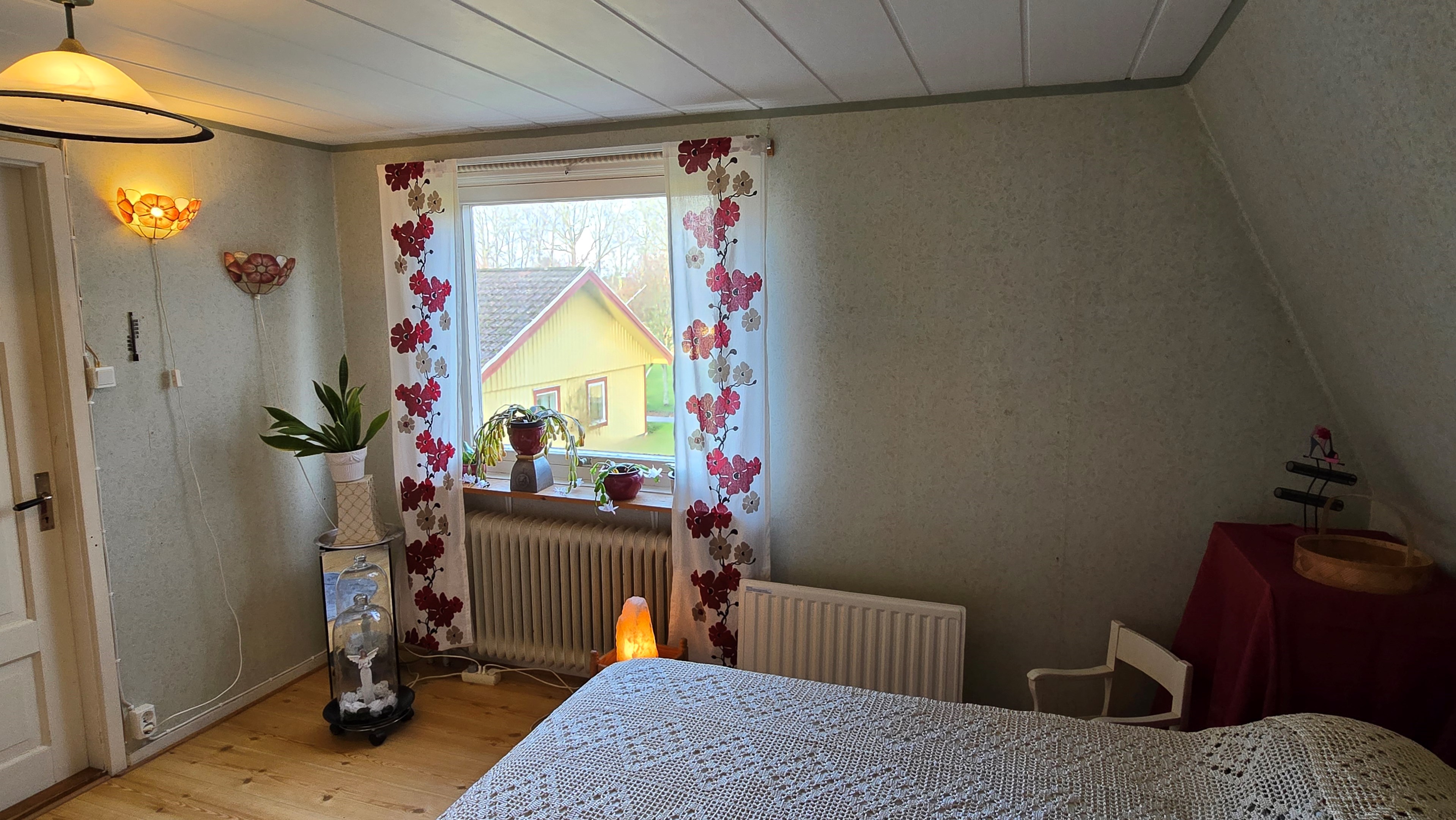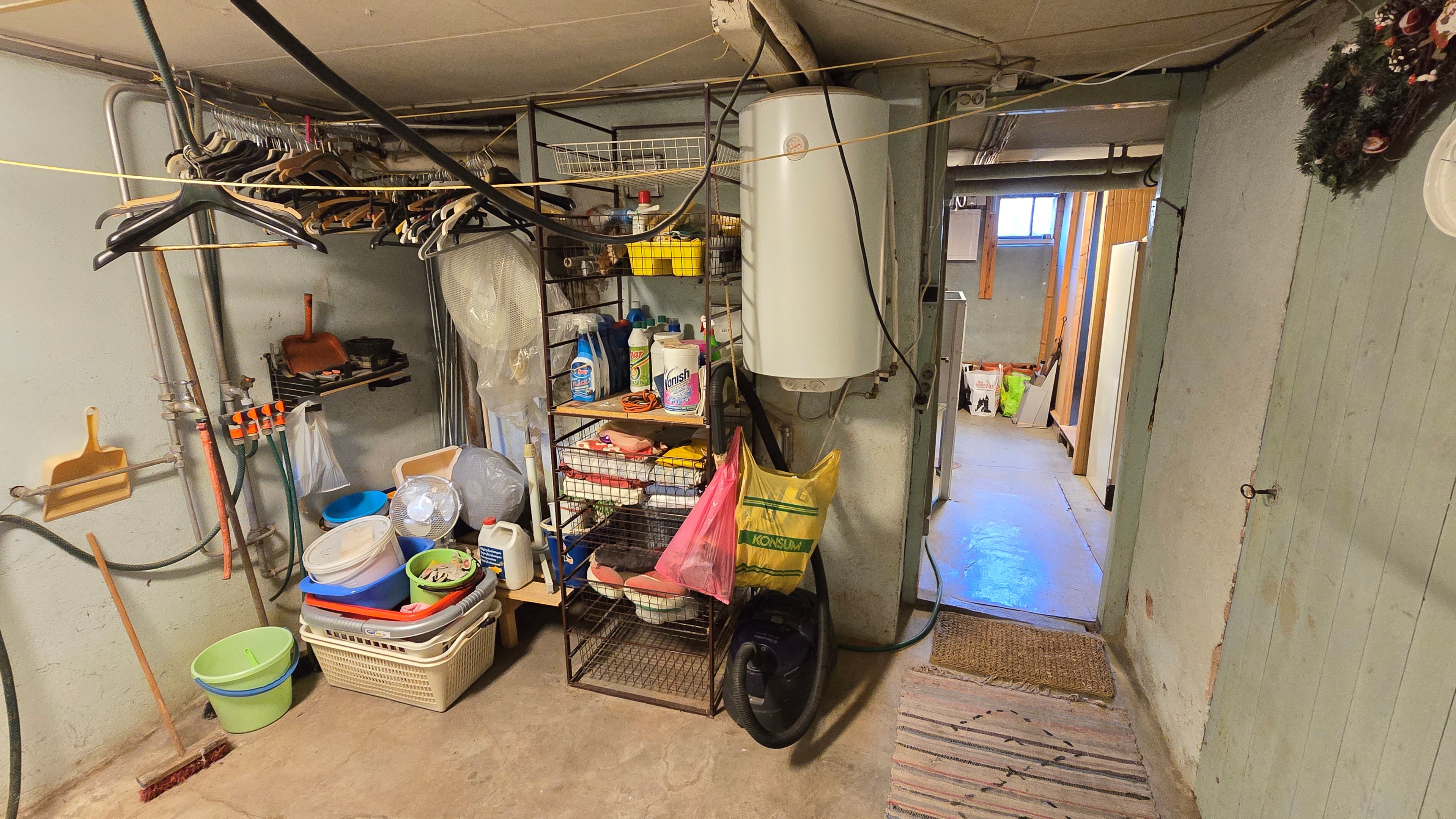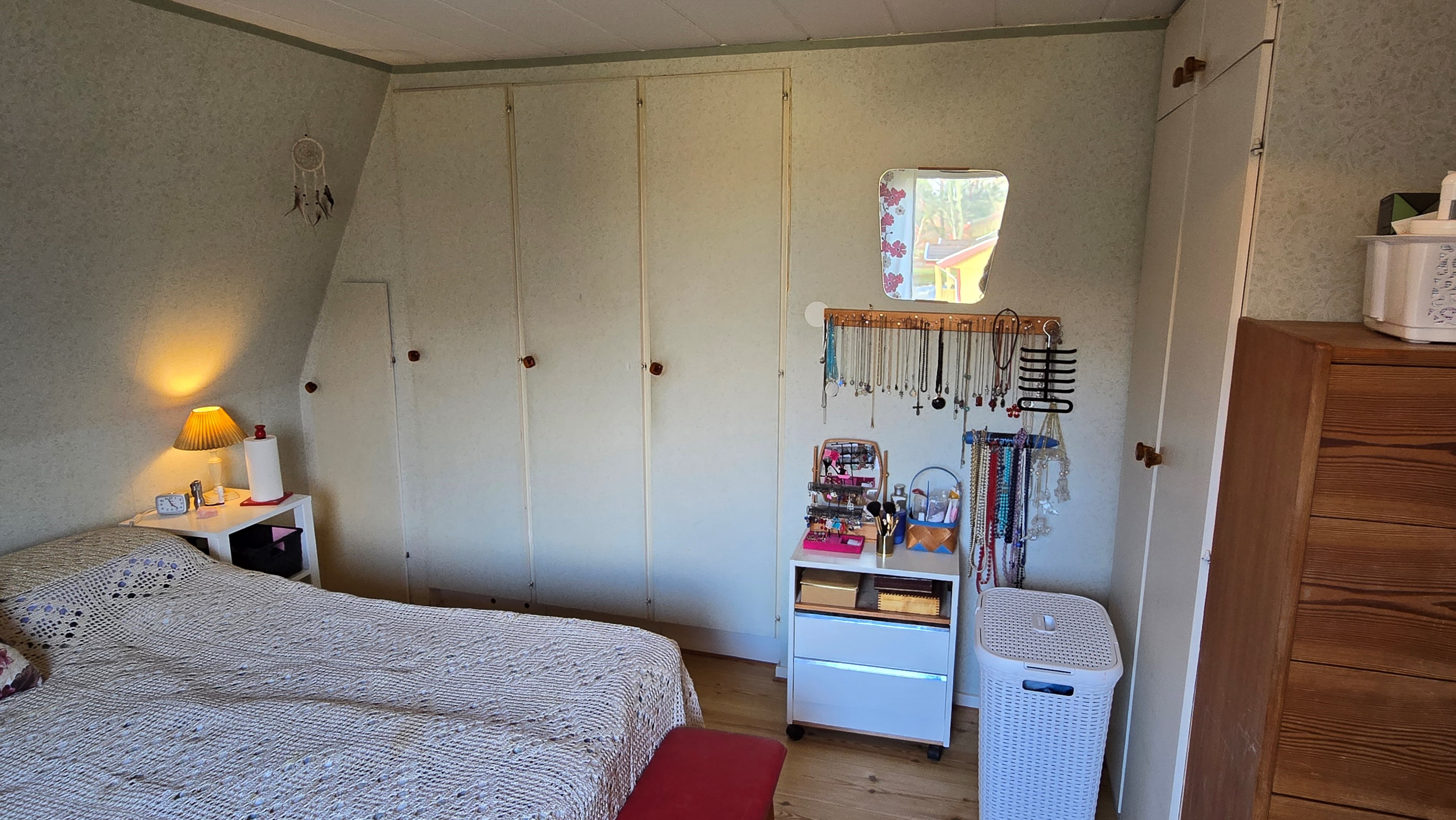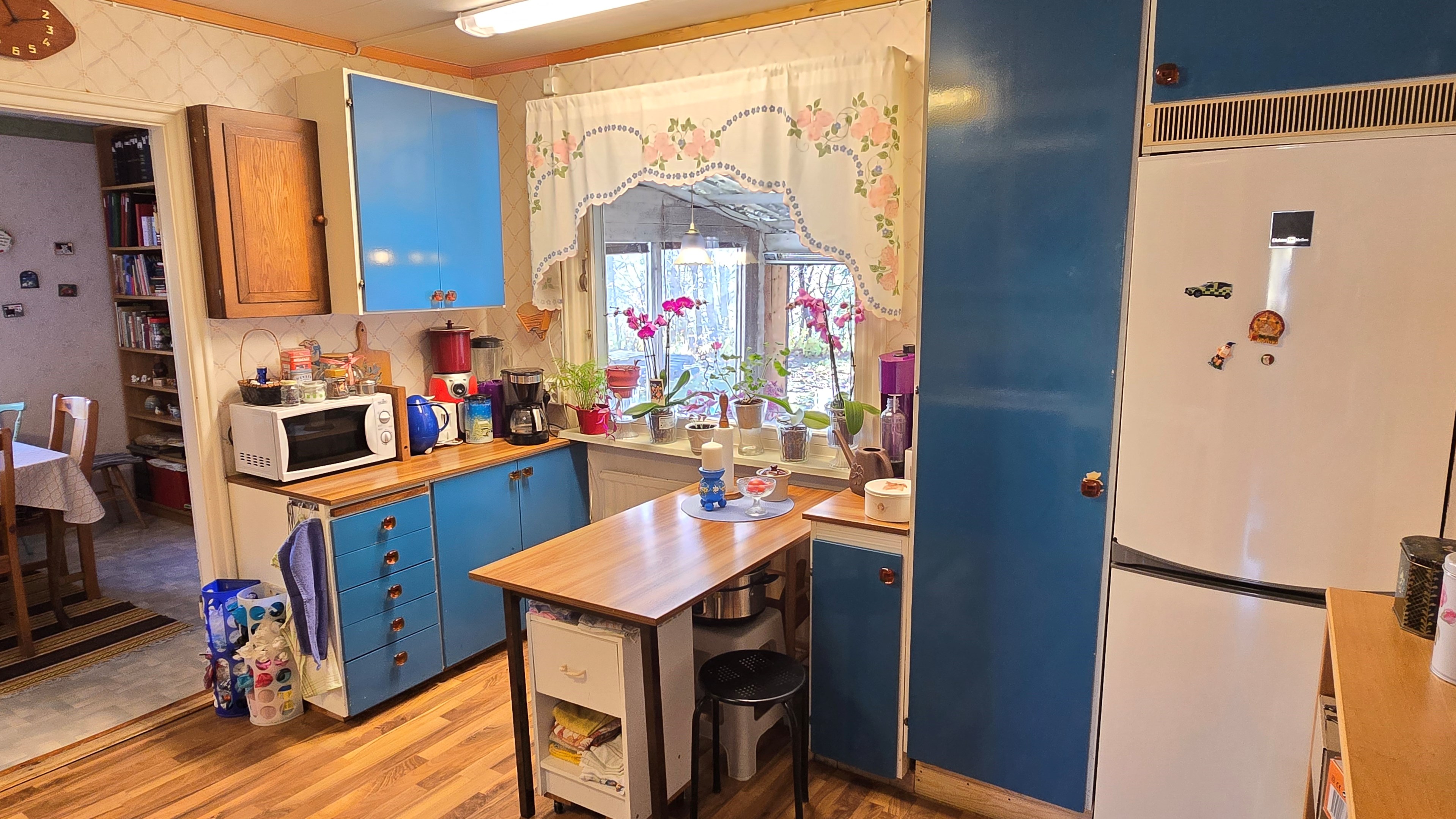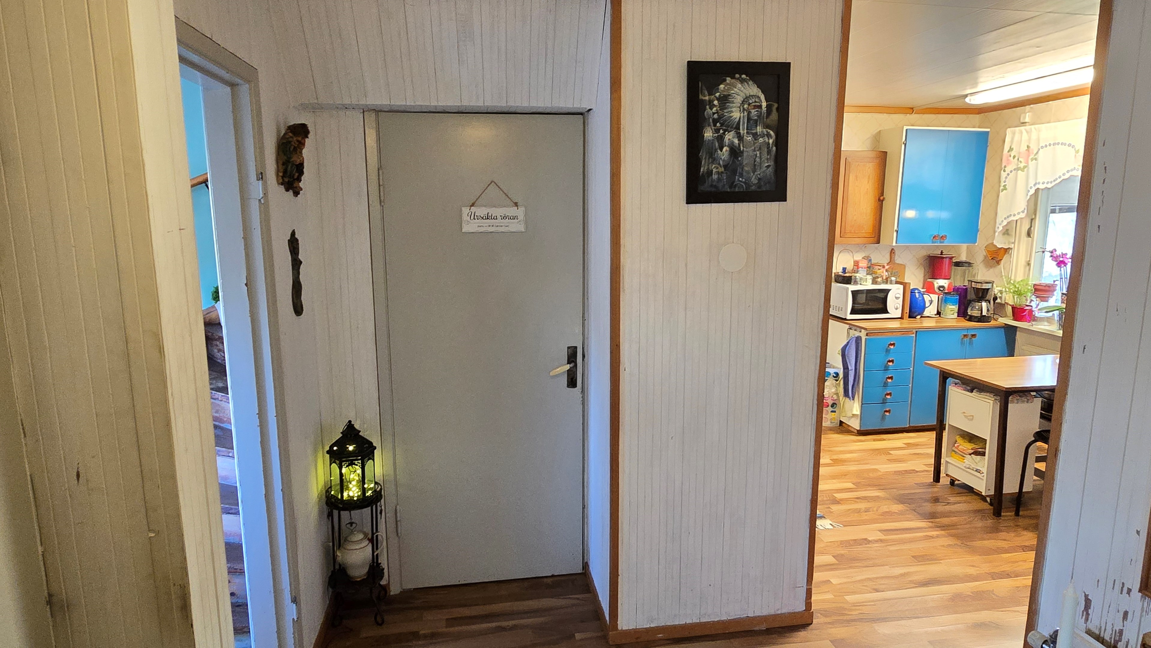 Villa från 1936 i utkanten av Knäred på 90 m2 + källare på 44 m2 och uthus på 50 m2. Kommunalt VA och vattenburen värme samt luftvärmepump. Kosmetiskt renoveringsbehov, men kan användas direkt och förbättras efterhand. 1 513 m2 tomt som det sista på vägen, 45 m. från Lagan. Ca. 1 km. från utomhus pool, vandringsleder, matbutik, skola, vårdcentral m.m. Filmvisning: https://youtu.be/Nx7RkrjWiyM Skansvägen 15 i Knäred är en villa från 1936 på ca. 90 m2 boyta + ca. 44 m2 källare. Härutöver finns en 8 m2 balkong i västerläge och en täckt terrass i söderläge på ca. 10 m2. Huset är plastbeklätt och en liten sektion vid entrén har eternit. På taket ligger ett äldre men tätt plåttak. Huset är väldigt lätt att underhålla, då ev. alger mm. lätt kan tvättas av plastklädseln. En bit hängränna saknas på kupan vid balkongen. Huset renoverades på 1990:talet, men det är dags att renovera igen, även om huset fungerar som det är och kan förbättras lite efterhand. Dubbelglasfönster i hela huset och huset är väl isolerat, så det är lätt att värma upp. Veto ved/pellets panna i källaren från 1990 med 500 liters ackumulatortank från 1993. Därutöver luftvärmepump från 2021. Alla elledningar och kontakter i huset är utbytta 2022 med nytt säkringsskåp med automatsäkringar och jordfelsbrytare. Kommunalt vatten och avlopp. Huset består av hall med laminatgolv (trä under), tretex i taket, träpanel på väggarna och trappa till källaren. Kök med laminatgolv, gott om skåp, diskbänk, elspis med keramisk häll (ca. 2014), spisfläkt, mikro och kyl/frys (2022). Matsal med plastmatta på golvet och tretex i taket. Vardagsrum med plastmatta, tretex i taket, luftvärmepumpen och valv som leder till möblerbart trapphallsrum med trappa till övervåningen. På övervåningen finns möblerbar trapphall med plastmatta på golvet, dörr till balkong i västerläge, toalett med WC och handfat (nya medföljer, men ej monterade) och en garderob bredvid toaletten, så det finns plats att bygga ett litet badrum i framtiden. Kontor eller sovrum med plastmatta på golvet, inbyggd garderob och valv in till ännu ett rum som nu används till lager. Man skulle lätt kunna dela upp detta i två separata rum vid behov. Sovrum med plastmatta på golvet, gott om plats för dubbelsäng och många inbyggda garderober. I källaren finns badrum från 1990:talet med våtrumsmatta på golv och väggar, WC, handfat och dusch. Badrummet skulle behöva renoveras, men fungerar som det är. Två skafferier. Pannrum med ved/pellets panna, ackumulatortank, pelletsförråd och två extra frysar. Tvättstuga med tvättmaskin, torktumlare, extra varmvattensberedare till när man inte använder pannan och en dörr direkt till trädgården. Huset säljs som utgångspunkt utan inventarier, men vissa möbler, verktyg och redskap kan köpas till eller medfölja, enl. önskemål och avtal med säljaren. Ut över huset finns här ett rejält uthus/liten lada på ca. 50 m2 + tillbyggt skjul på baksidan och på framsidan och ett garage och lagringsplats i källaren. Äldre eternittak. I uthuset finns verkstadsrum och gott om plats för lagring. Maskiner som står i och utanför uthuset kommer att tas bort innan tillträde. 1 513 m2 (friköpt) trädgårdstomt för ändan av Skansvägen, där marken sluttar brant ner till Lagan precis utanför tomten. Marken mellan tomten och ån ägs av kommunen och det är ok att tunna ut i buskar och snår, men man får inte fälla träd. En liten stig har fört ner till ån tidigare, men den är nu i stort sett borta, så det kan vara utmanande att gå raka vägen ner till ån från huset. Det finns dock flera stigar ner till ån och ca. 1 km. härifrån finns Flammabadet utomhus pool, där det även finns en liten strand och bålplats vid Lagan. På tomten finns gott om parkeringsplats, gräsmatta, äppelträd, körsbärsträd, rhododendron och björnbär. Träden ger mycket frukt. Väg 15 löper ca. 600 m. från huset, på andra sidan ån och den kan höras, beroende på väder, vind och årstid. På andra sidan väg 15 löper även en järnväg, "Markarydsbanan", och det planeras att bygga en station i Knäred, så man kan ta tåget in till Halmstad eller Hässleholm. Enligt planen ska detta vara klart till 2028. Vid Flammabadet, ca. 1 km. från huset finns även tennisbanor, campingplats och en naturskön vandringsled. Ca. 2 km. till Krokån, Kvarnfallet och den nya vandringsleden, "Krokåslingan", som hänger ihop med Prästaskogens naturreservat och ny gångbro över Krokån. Här ligger även Kvarnen i Knäred, som ibland håller musikarrangemang och sommarcafé. Knäred samhälle har ca. 1200 invånare och det finns bl.a. bra Coop matbutik, Hotell 1613 med restaurang, pizzeria, järnaffär, blomsterbutik, loppis, vårdcentral, skola och "Flammabadet" förstås. Området i stort bjuder också på många natur- och kulturupplevelser med ca. 7 km. till Kulturreservat Bollaltebygget med kringbyggd museumsgård på 1600-talet, ca. 8 km. till "Vippentorpet" hembygdsgård med våffelcafé om sommaren och ca. 7 km. till Hjörneredssjöarna med kanotuthyrning, vandringsleder, fricampning och flera badplatser. Ca. 10 km. till naturreservat Mästocka ljunghed och fin badplats i Björsjön och omkring samma avstånd till det stora naturreservatet Rönnö. Ca. 10 km. till Skogaby Golfklubb. Ca. 17 km. till Laholm samhälle och ca. 25 km. till havet, Mellbystrand och till Vallåsen Bike-Park på Hallandsås och till Kungsbyggets Äventyrspark med zipline och rodelbana sommartid. Ca. 35 km. till Halmstad och färjan till Grenå. Ca. 75 km. från Helsingborg och ca. 135 km. från Malmö.