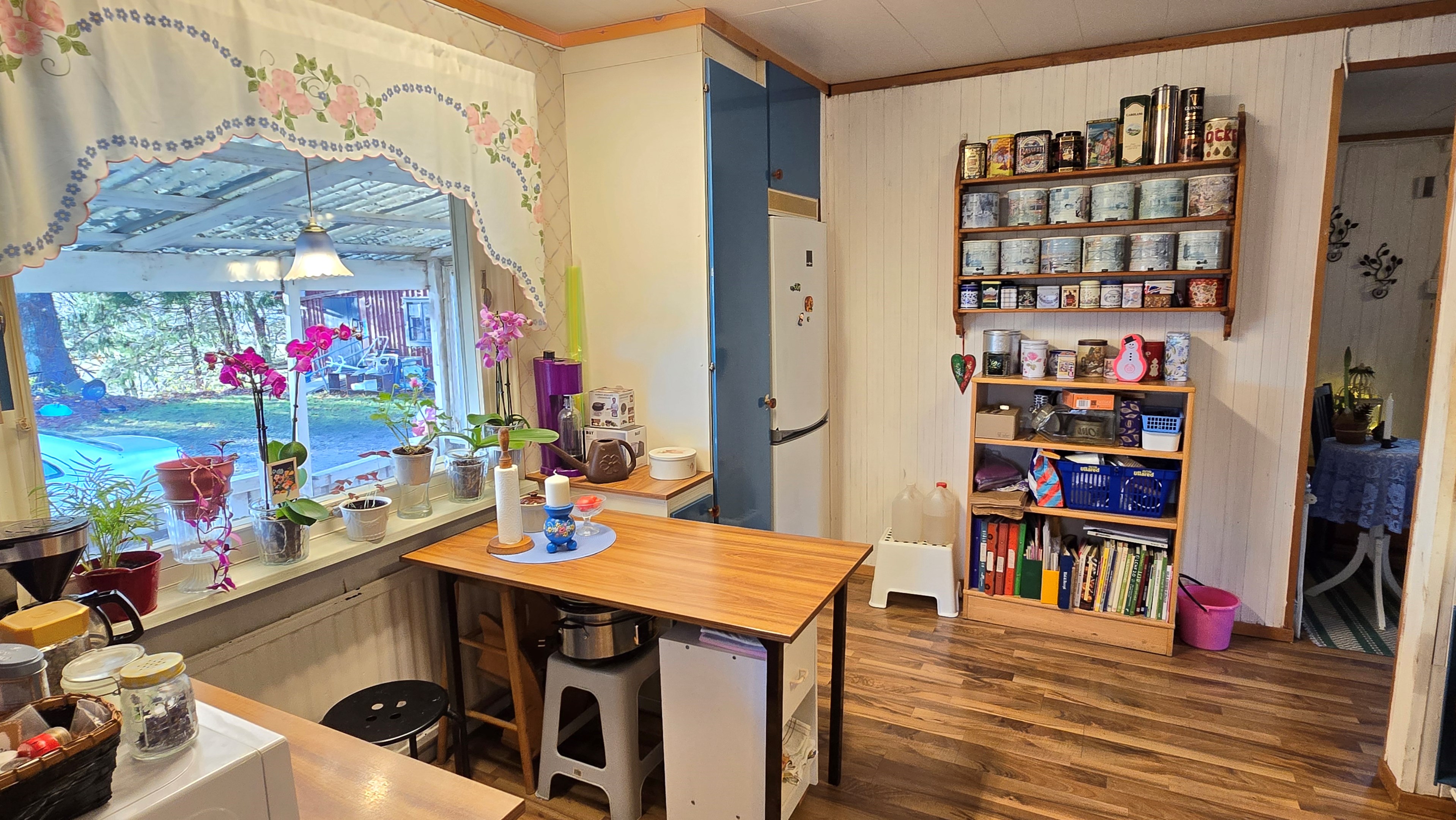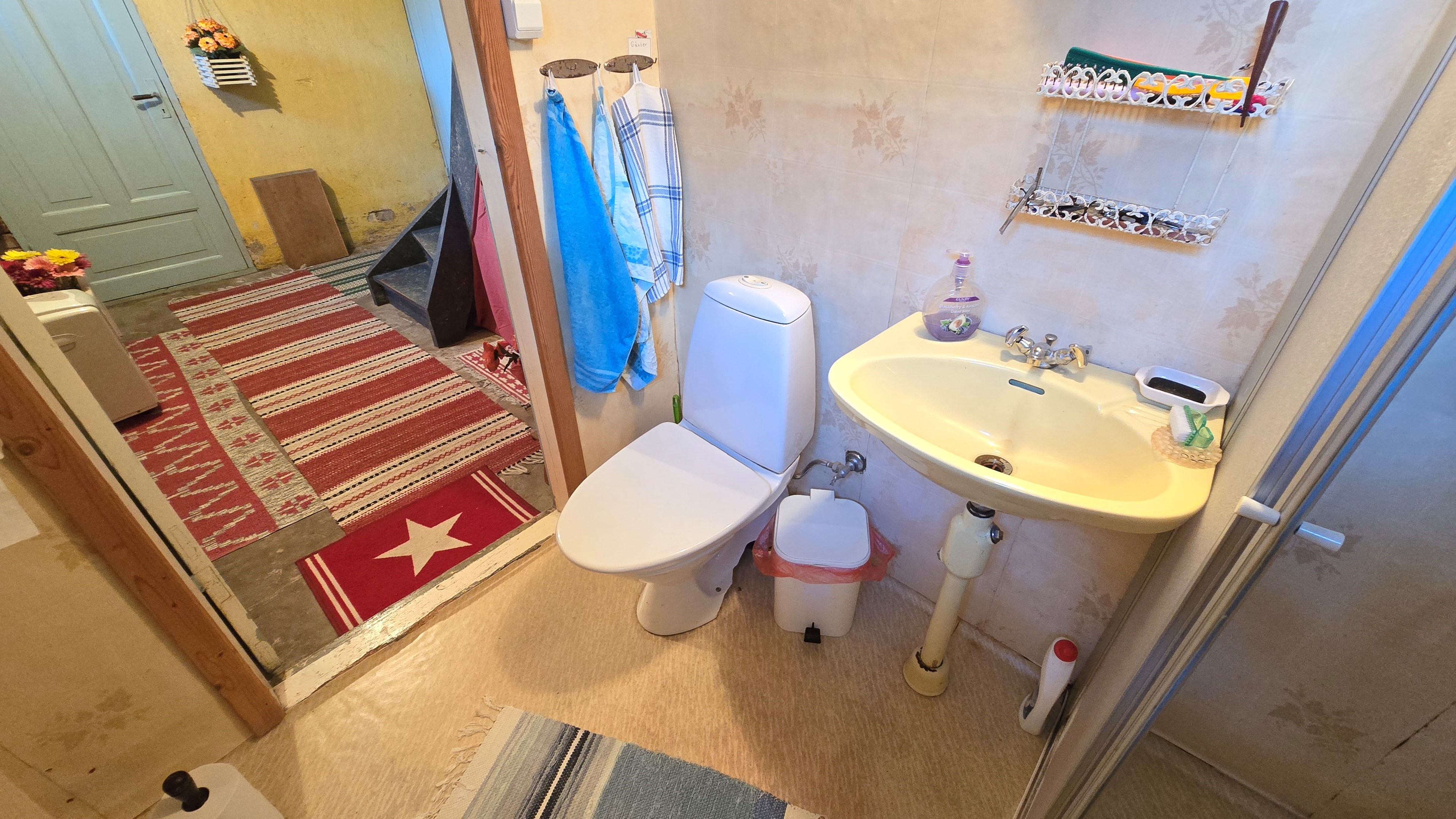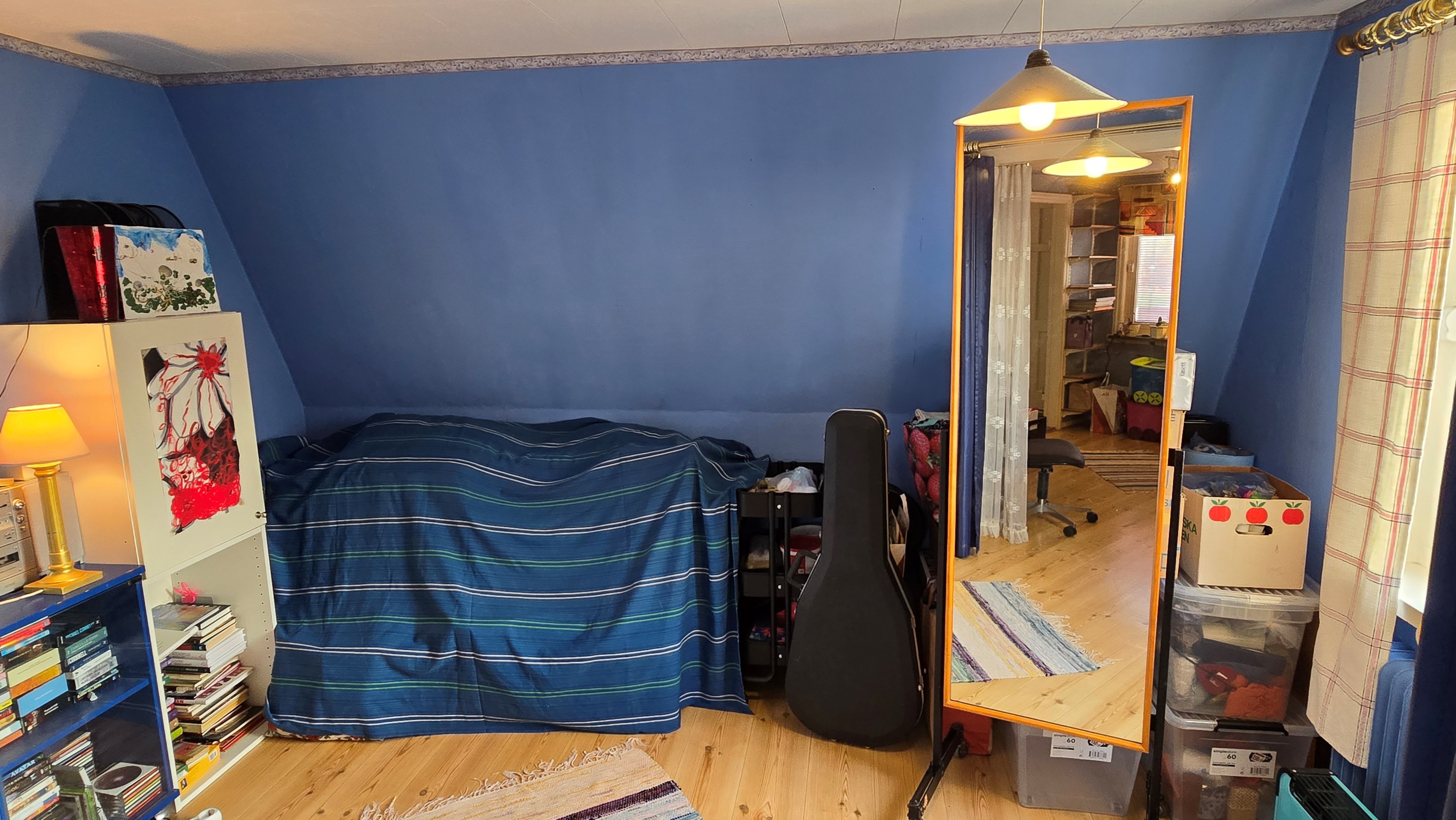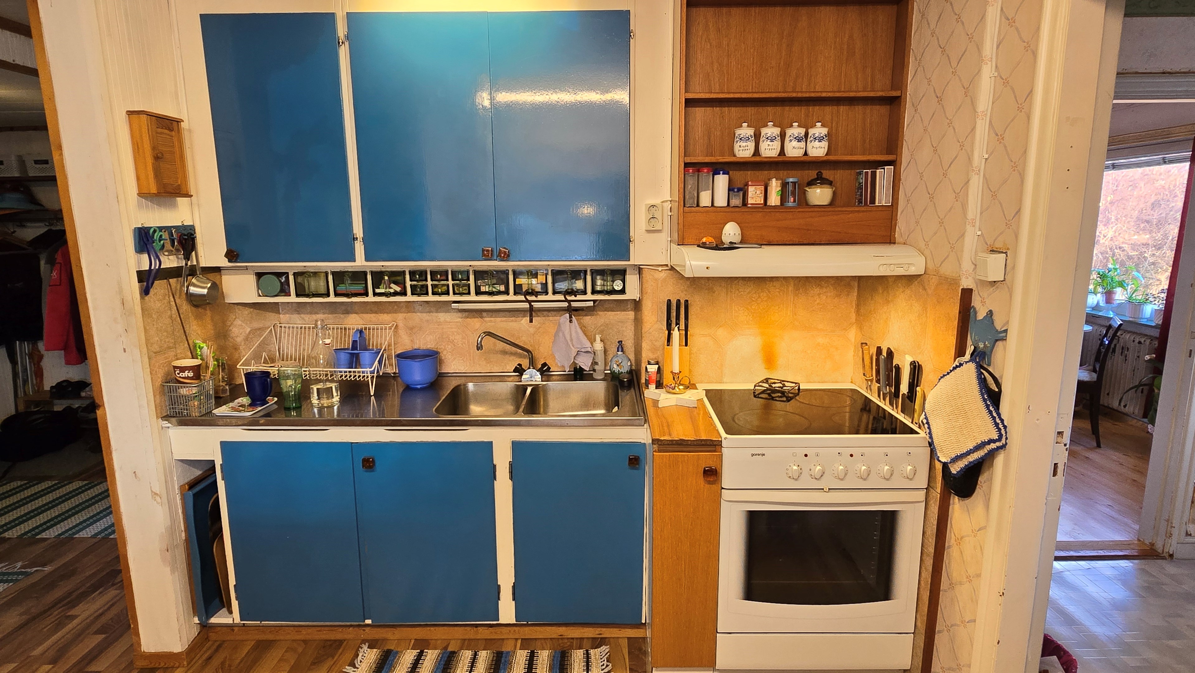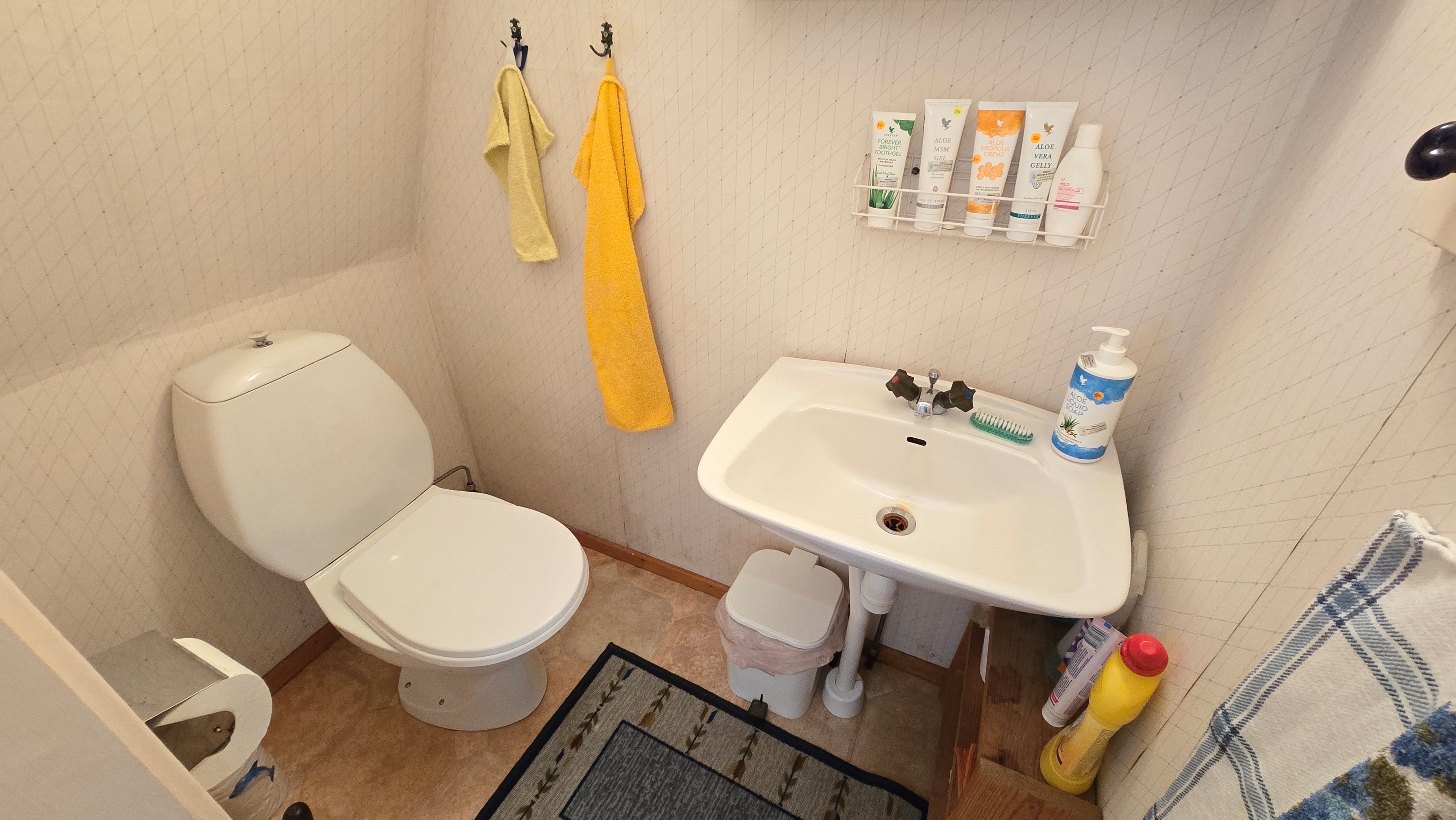 Villa från 1936 i utkanten av Knäred på 90 m2 + källare på 44 m2 och uthus på 50 m2. Kommunalt VA och vattenburen värme samt luftvärmepump. Kosmetiskt renoveringsbehov, men kan användas direkt och förbättras efterhand. 1 513 m2 tomt som det sista på vägen, 45 m. från Lagan. Ca. 1 km. från utomhus pool, vandringsleder, matbutik, skola, vårdcentral m.m. Filmvisning: https://youtu.be/Nx7RkrjWiyM Skansvägen 15 i Knäred är en villa från 1936 på ca. 90 m2 boyta + ca. 44 m2 källare. Härutöver finns en 8 m2 balkong i västerläge och en täckt terrass i söderläge på ca. 10 m2. Huset är plastbeklätt och en liten sektion vid entrén har eternit. På taket ligger ett äldre men tätt plåttak. Huset är väldigt lätt att underhålla, då ev. alger mm. lätt kan tvättas av plastklädseln. En bit hängränna saknas på kupan vid balkongen. Huset renoverades på 1990:talet, men det är dags att renovera igen, även om huset fungerar som det är och kan förbättras lite efterhand. Dubbelglasfönster i hela huset och huset är väl isolerat, så det är lätt att värma upp. Veto ved/pellets panna i källaren från 1990 med 500 liters ackumulatortank från 1993. Därutöver luftvärmepump från 2021. Alla elledningar och kontakter i huset är utbytta 2022 med nytt säkringsskåp med automatsäkringar och jordfelsbrytare. Kommunalt vatten och avlopp. Huset består av hall med laminatgolv (trä under), tretex i taket, träpanel på väggarna och trappa till källaren. Kök med laminatgolv, gott om skåp, diskbänk, elspis med keramisk häll (ca. 2014), spisfläkt, mikro och kyl/frys (2022). Matsal med plastmatta på golvet och tretex i taket. Vardagsrum med plastmatta, tretex i taket, luftvärmepumpen och valv som leder till möblerbart trapphallsrum med trappa till övervåningen. På övervåningen finns möblerbar trapphall med plastmatta på golvet, dörr till balkong i västerläge, toalett med WC och handfat (nya medföljer, men ej monterade) och en garderob bredvid toaletten, så det finns plats att bygga ett litet badrum i framtiden. Kontor eller sovrum med plastmatta på golvet, inbyggd garderob och valv in till ännu ett rum som nu används till lager. Man skulle lätt kunna dela upp detta i två separata rum vid behov. Sovrum med plastmatta på golvet, gott om plats för dubbelsäng och många inbyggda garderober. I källaren finns badrum från 1990:talet med våtrumsmatta på golv och väggar, WC, handfat och dusch. Badrummet skulle behöva renoveras, men fungerar som det är. Två skafferier. Pannrum med ved/pellets panna, ackumulatortank, pelletsförråd och två extra frysar. Tvättstuga med tvättmaskin, torktumlare, extra varmvattensberedare till när man inte använder pannan och en dörr direkt till trädgården. Huset säljs som utgångspunkt utan inventarier, men vissa möbler, verktyg och redskap kan köpas till eller medfölja, enl. önskemål och avtal med säljaren. Ut över huset finns här ett rejält uthus/liten lada på ca. 50 m2 + tillbyggt skjul på baksidan och på framsidan och ett garage och lagringsplats i källaren. Äldre eternittak. I uthuset finns verkstadsrum och gott om plats för lagring. Maskiner som står i och utanför uthuset kommer att tas bort innan tillträde. 1 513 m2 (friköpt) trädgårdstomt för ändan av Skansvägen, där marken sluttar brant ner till Lagan precis utanför tomten. Marken mellan tomten och ån ägs av kommunen och det är ok att tunna ut i buskar och snår, men man får inte fälla träd. En liten stig har fört ner till ån tidigare, men den är nu i stort sett borta, så det kan vara utmanande att gå raka vägen ner till ån från huset. Det finns dock flera stigar ner till ån och ca. 1 km. härifrån finns Flammabadet utomhus pool, där det även finns en liten strand och bålplats vid Lagan. På tomten finns gott om parkeringsplats, gräsmatta, äppelträd, körsbärsträd, rhododendron och björnbär. Träden ger mycket frukt. Väg 15 löper ca. 600 m. från huset, på andra sidan ån och den kan höras, beroende på väder, vind och årstid. På andra sidan väg 15 löper även en järnväg, "Markarydsbanan", och det planeras att bygga en station i Knäred, så man kan ta tåget in till Halmstad eller Hässleholm. Enligt planen ska detta vara klart till 2028. Vid Flammabadet, ca. 1 km. från huset finns även tennisbanor, campingplats och en naturskön vandringsled. Ca. 2 km. till Krokån, Kvarnfallet och den nya vandringsleden, "Krokåslingan", som hänger ihop med Prästaskogens naturreservat och ny gångbro över Krokån. Här ligger även Kvarnen i Knäred, som ibland håller musikarrangemang och sommarcafé. Knäred samhälle har ca. 1200 invånare och det finns bl.a. bra Coop matbutik, Hotell 1613 med restaurang, pizzeria, järnaffär, blomsterbutik, loppis, vårdcentral, skola och "Flammabadet" förstås. Området i stort bjuder också på många natur- och kulturupplevelser med ca. 7 km. till Kulturreservat Bollaltebygget med kringbyggd museumsgård på 1600-talet, ca. 8 km. till "Vippentorpet" hembygdsgård med våffelcafé om sommaren och ca. 7 km. till Hjörneredssjöarna med kanotuthyrning, vandringsleder, fricampning och flera badplatser. Ca. 10 km. till naturreservat Mästocka ljunghed och fin badplats i Björsjön och omkring samma avstånd till det stora naturreservatet Rönnö. Ca. 10 km. till Skogaby Golfklubb. Ca. 17 km. till Laholm samhälle och ca. 25 km. till havet, Mellbystrand och till Vallåsen Bike-Park på Hallandsås och till Kungsbyggets Äventyrspark med zipline och rodelbana sommartid. Ca. 35 km. till Halmstad och färjan till Grenå. Ca. 75 km. från Helsingborg och ca. 135 km. från Malmö.
