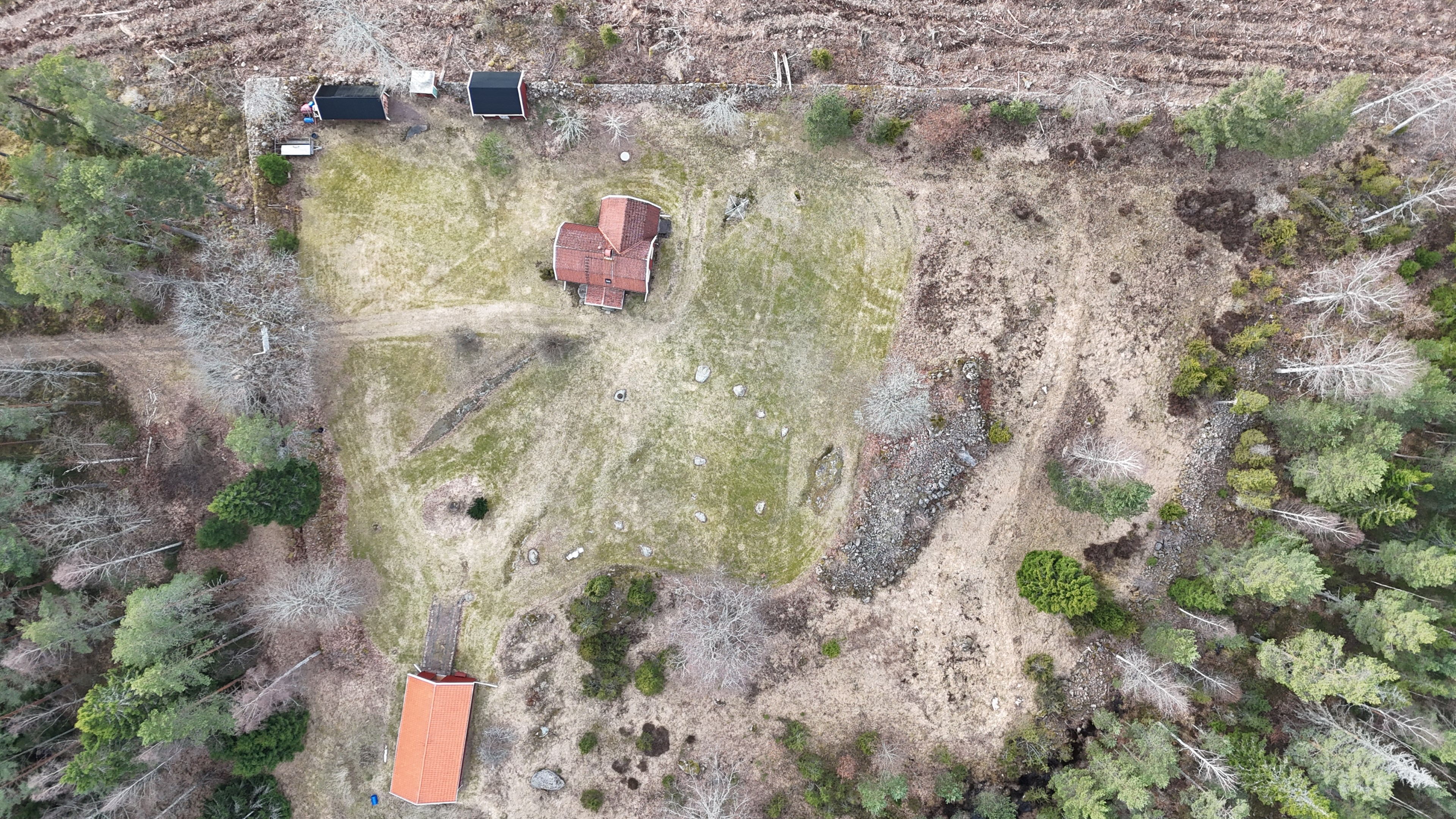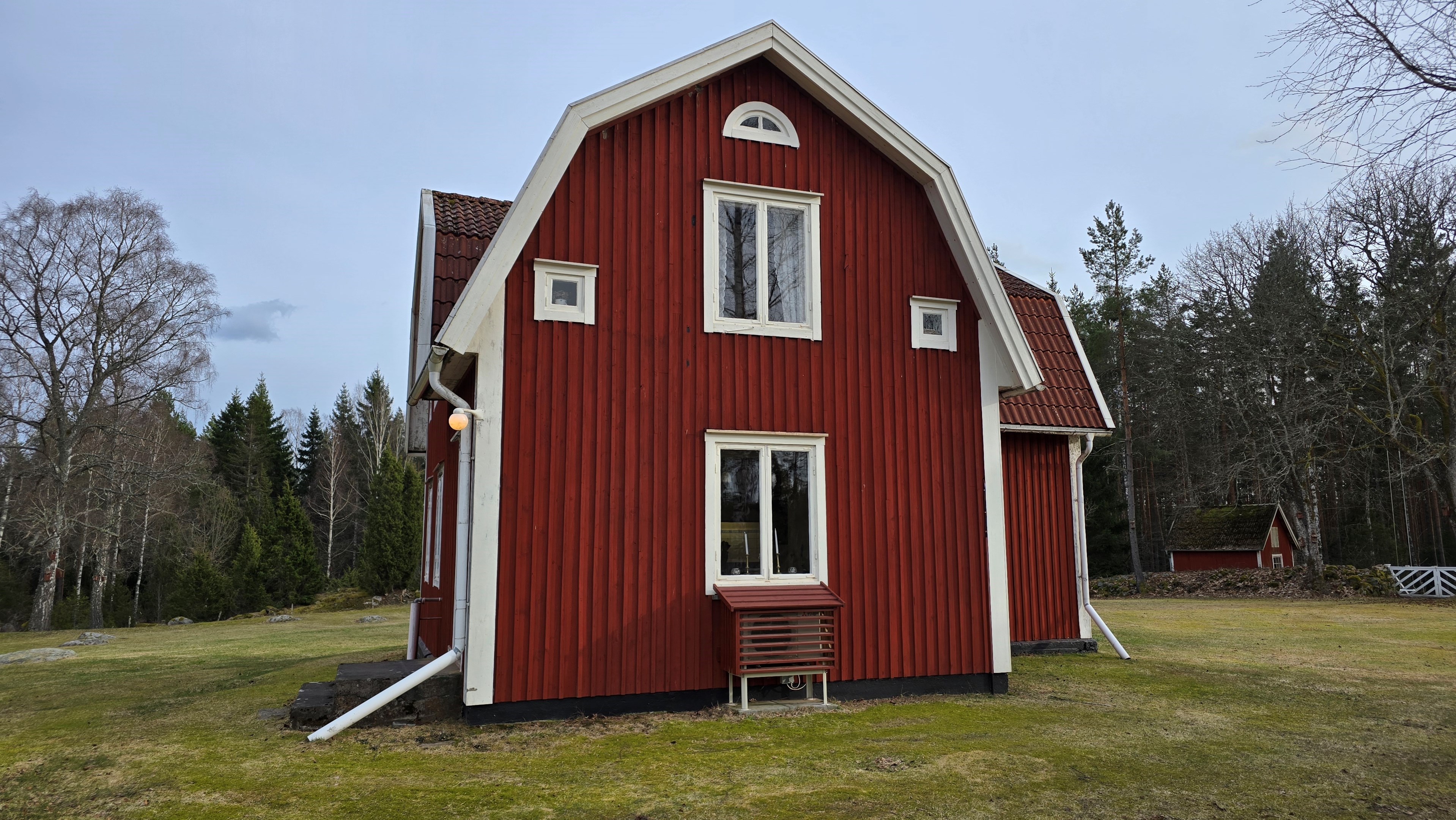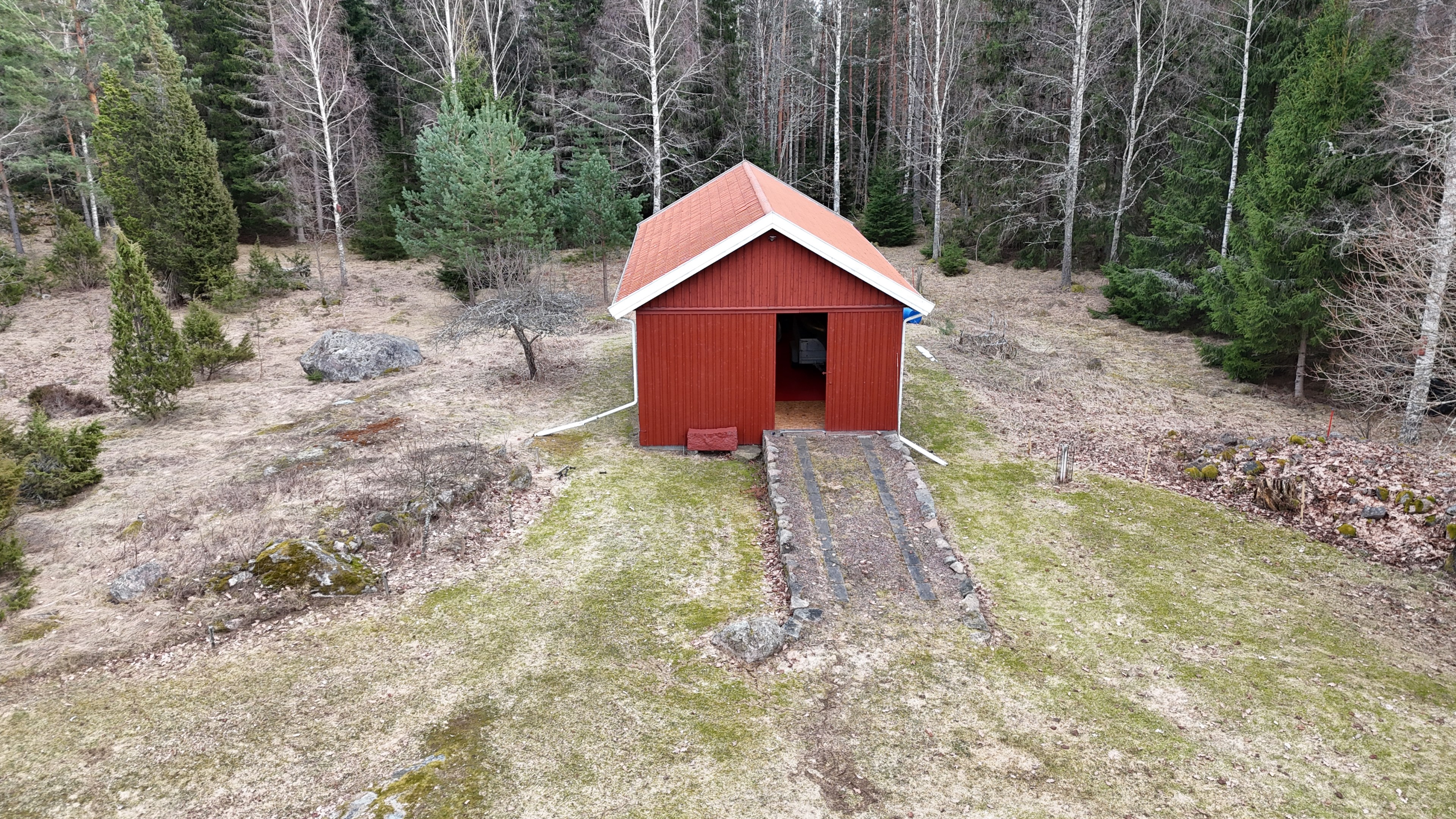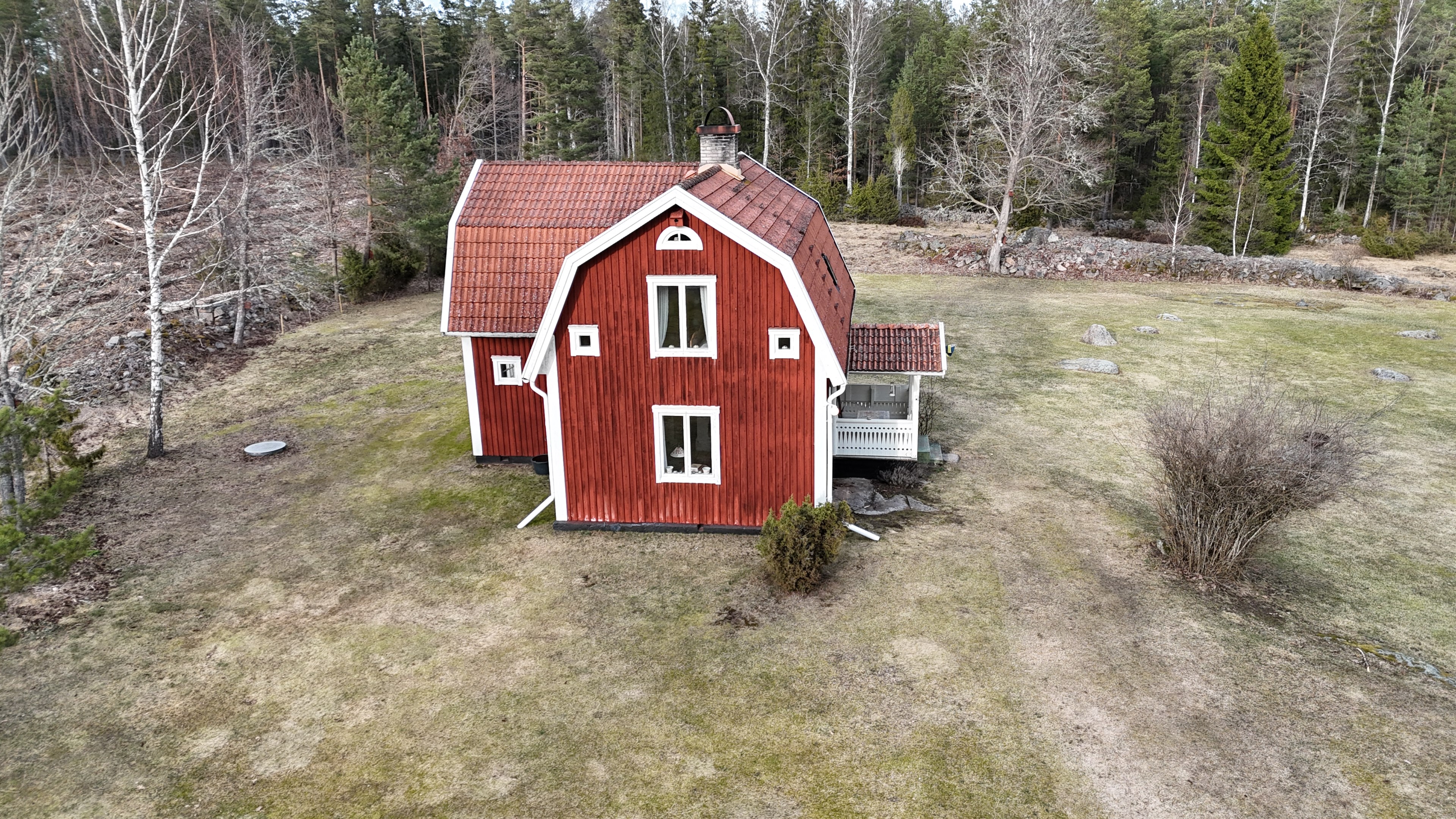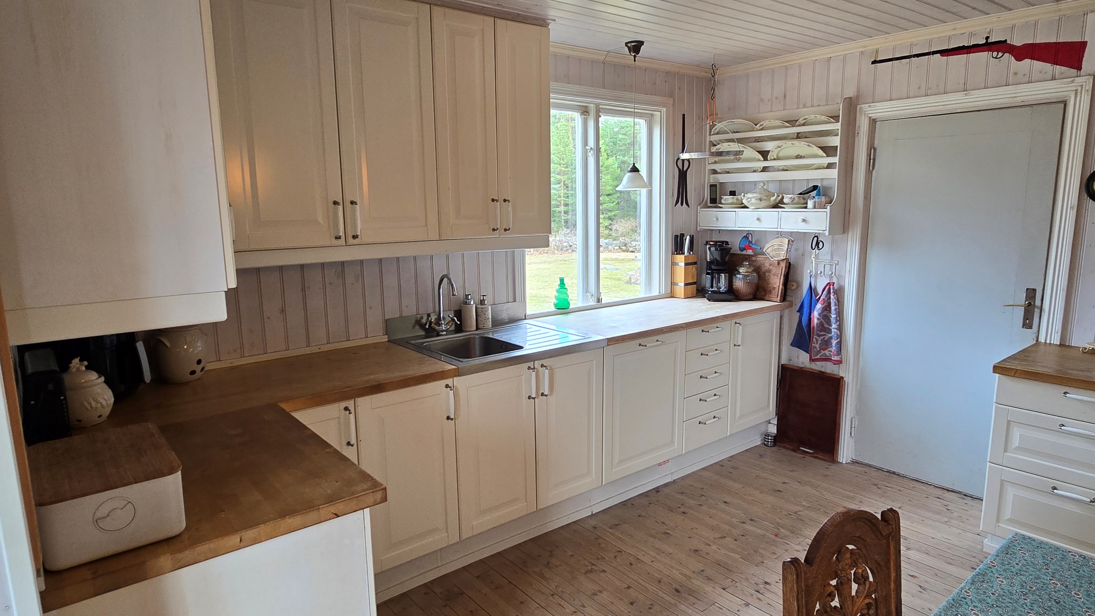 Torp från mitten på 1800-talet på ca 130 m², tillbyggt 1936, samt löpande renoverat under de senaste ca. 20 åren. Uppvärmning via luftvärmepump, elvärme och flera braskaminer och rörspisar. Vatten från borrad brunn (35 m djup), avlopp till trekammarbrunn med infiltration. Ny lada på 72 m² med garageplats och verkstad, uthus/museum ca 10 m² + vind, uthus med inbyggd container på ca. 15 m² och vedbod på ca 10 m². 14 500 m² helt enslig tomt med öppna gräsytor omkring byggnaderna, en del vedskog och vackra stengärdsgårdar. 600 m. till närmaste granne. Ca 1,5 km till stora sjön Algunnen med båtplats och omkringliggande naturreservat. Ca 270 km från Helsingborg. Filmrundvisning: https://youtu.be/s7994qFqB64 "Skogslund" - Mjöshyltan 180 vid Alsterbro är ett klassiskt småländskt torp med anor från 1800-talets mitt, tillbyggt och renoverat 1936, med mansardtak och därefter löpande renoverat under de senaste 20 åren. Huset är på ca. 130 m² boyta och i gott skick och redo att använda direkt. Lite utvändig målning och kosmetisk renovering här och var, men inget akut. På taket ligger betongpannor och med taktegel på den nyare verandan. Taket på veranda har skador på teglet, där några pannor behöver bytas. Fönstren är huvudsakligen kopplade tvåglasfönster, några enstaka med spricka i ett av glasen. Elsystemet har äldre porslinssäkringar och saknar jordfelsbrytare, men fungerar väl. Uppvärmningen sker via luftvärmepump (2023), direktverkande elvärme samt två braskaminer, en vedspis och två rörspisar, samtliga godkända och i bruk. Vatten tas från en 35 meter djup borrad brunn (lite järn, men ej filter) och avloppet är en trekammarbrunn med infiltration. Huset är sanerat mot husbock och har extra husbockförsäkring av Anticimex. Läs även mer om husets historia under "dokument" rubriken. Entré från mysig veranda via pardörrar in till hall med nyare plankgolv, synliga timmerväggar och träpanel i taket. Mindre sovrum eller lounge med nyare trägolv, platsbyggda sängar, bröstpanel och tapet på väggarna och en öppen rörspis. Vardagsrummet har trägolv, äldre brädor i taket, nya tapeter och extra isolering och ytterligare en fin vitputsad rörspis. Rymligt lantkök med matplats, nyare trägolv, träpanel i taket, gott om skåp, diskbänk, elspis med keramisk häll, kyl/frys, diskmaskin (ej fungerande), vedspis och braskamin. Luftvärmepumpens innerdel finns även i köket och så finns ett litet skafferi. Köksentrén har nyare trägolv och ytterdörr. På övervåningen finns en rymlig trapphall med garderob, trägolv och inspektionslucka till vinden. Hela övervåningen inreddes för ca. 20 år sedan. Badrum med målat plankgolv, duschkabin, WC, handfat, mekanisk ventilation, infällda spotlights i taket, Velux takfönster och tvättmaskin. Badrummet saknar våtrumsmatta, vilket innebär att försäkringsbolagens krav inte är uppfyllda, men det har fungerat fint i alla år. Stort master bedroom med trägolv, dubbelsäng, garderob, Morsø braskamin och öppet till nock med synliga takbjälkar. Sovrum med trägolv, dubbelsäng, öppet till nocken med liten plattform för lagring under taket och ytterligare en plattform lämplig för lagring eller barn. Mindre sovrum med trägolv och två enkelsängar. En del inventarier och maskiner kan köpas till eller medfölja, enl. önskemål och avtal med säljaren. På tomten finns en nyuppförd lada om ca 72 m² med garage, verkstad, el indraget med 3-fas kontakt och avfuktare i grunden. Byggnaden har tegeltak, god takhöjd och inspektionslucka till krypgrund. Här finns plats för flera fordon, traktor och trädgårdsmaskiner (köp av traktor mm kan förhandlas). Uthus med nytt papptak om ca 10 m² samt vind som idag används som litet museum med många gamla lantbruksredskap utställda och även plats för grill, trädgårdsmöbler och förvaring. Uthus på ca 15 m² med plåttak med inbyggd container för säker förvaring av verktyg och maskiner. Vedbod på ca. 10 m². Gammalt utedass i dåligt skick. 14 500 m² (friköpt) trädgård och skogstomt med öppna gräsytor omkring byggnaderna, en del vedskog, så man kan hålla sig självförsörjande med ved och fina stengärdsgårdar samt stora klippor och stenar som tittar fram. Området är mycket stenrikt och bjuder på genuin småländsk natur. Fastigheten ligger helt avskilt, inne på sin egen sidoväg till grusväg utan genomfartstrafik och med närmaste granne ca 600 meter bort. Skogen angränsade tomten på ena sidan har nyligen fällts, vilket ger en massa ljus och luft till tomten och resten av skogen runt fastigheten är ekopark med naturskyddsavtal och kan också komma att bli naturreservat. Ca. 800 m. till den lilla sjön Trehörningen och ca. 1,5 km till den stora sjön Algunnen med bad- och båtplats (båt och kanot kan köpas till). Stora delar av sjön Algunnen är också naturreservat och reservatet börjar ca. 600 m. fågelvägen från huset. Ca. 14 km till Alsterbro med närmaste service och ytterligare badplats. Ca. 12 km. till det otroligt vackra Aboda Klint med storslagen utsikt över landskapet och flera sjöar. Ca 42 km till Nybro samhälle och ca. 62 km till Kalmar och Ölandsbron. Ca. 110 km. från Astrid Lindgrens Värld. Ca. 270 km från Helsingborg och ca. 290 km från Malmö.
