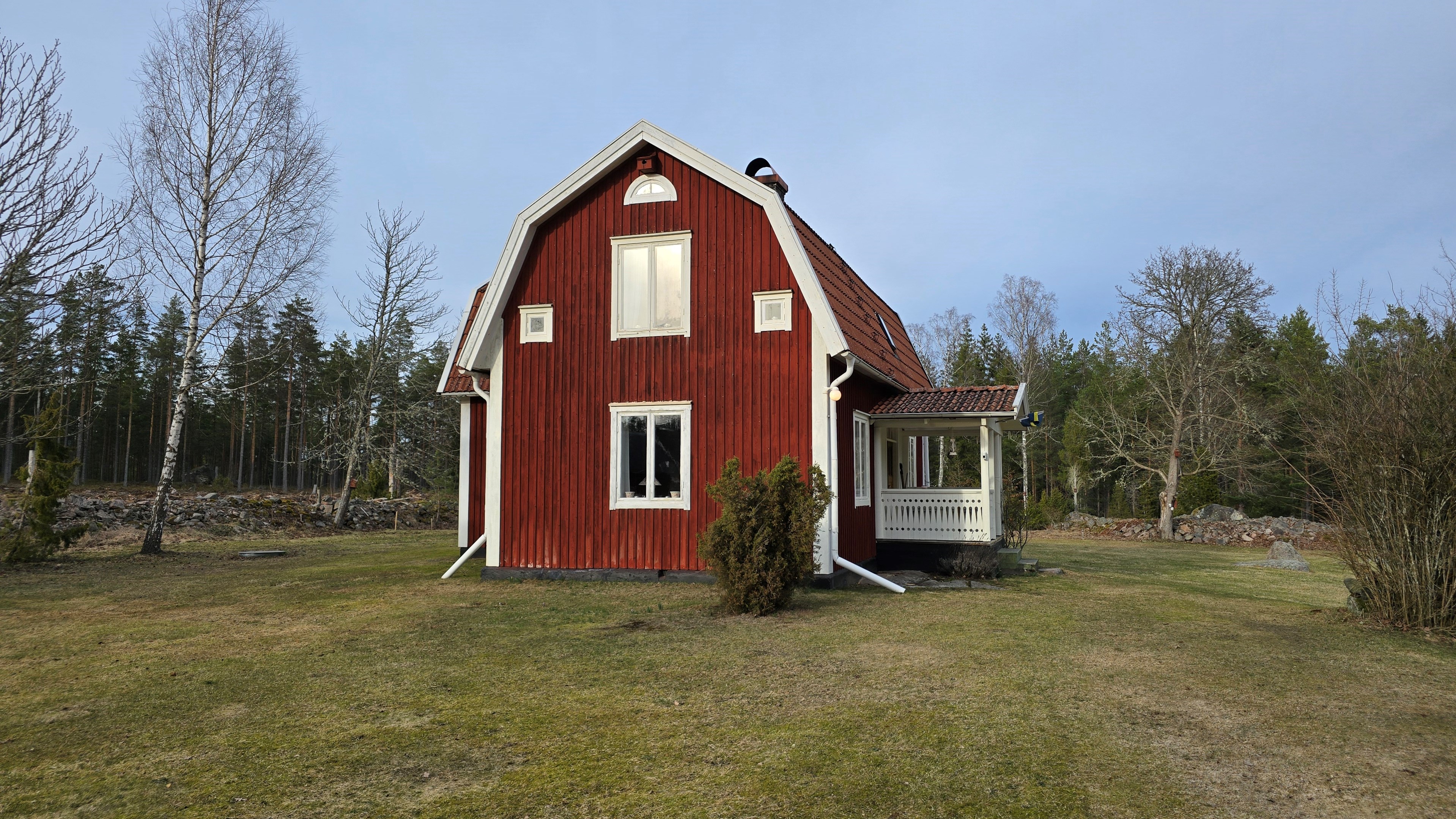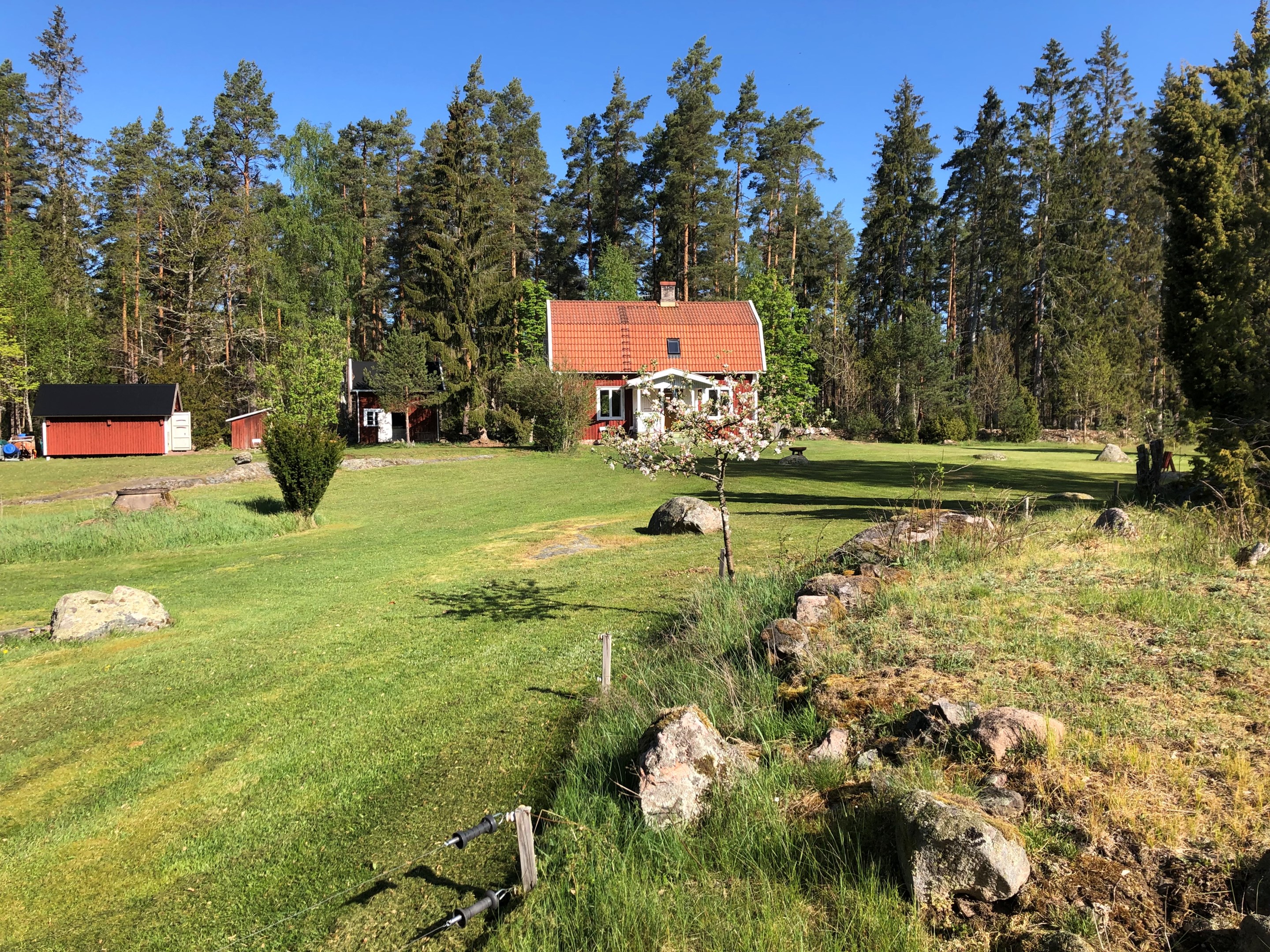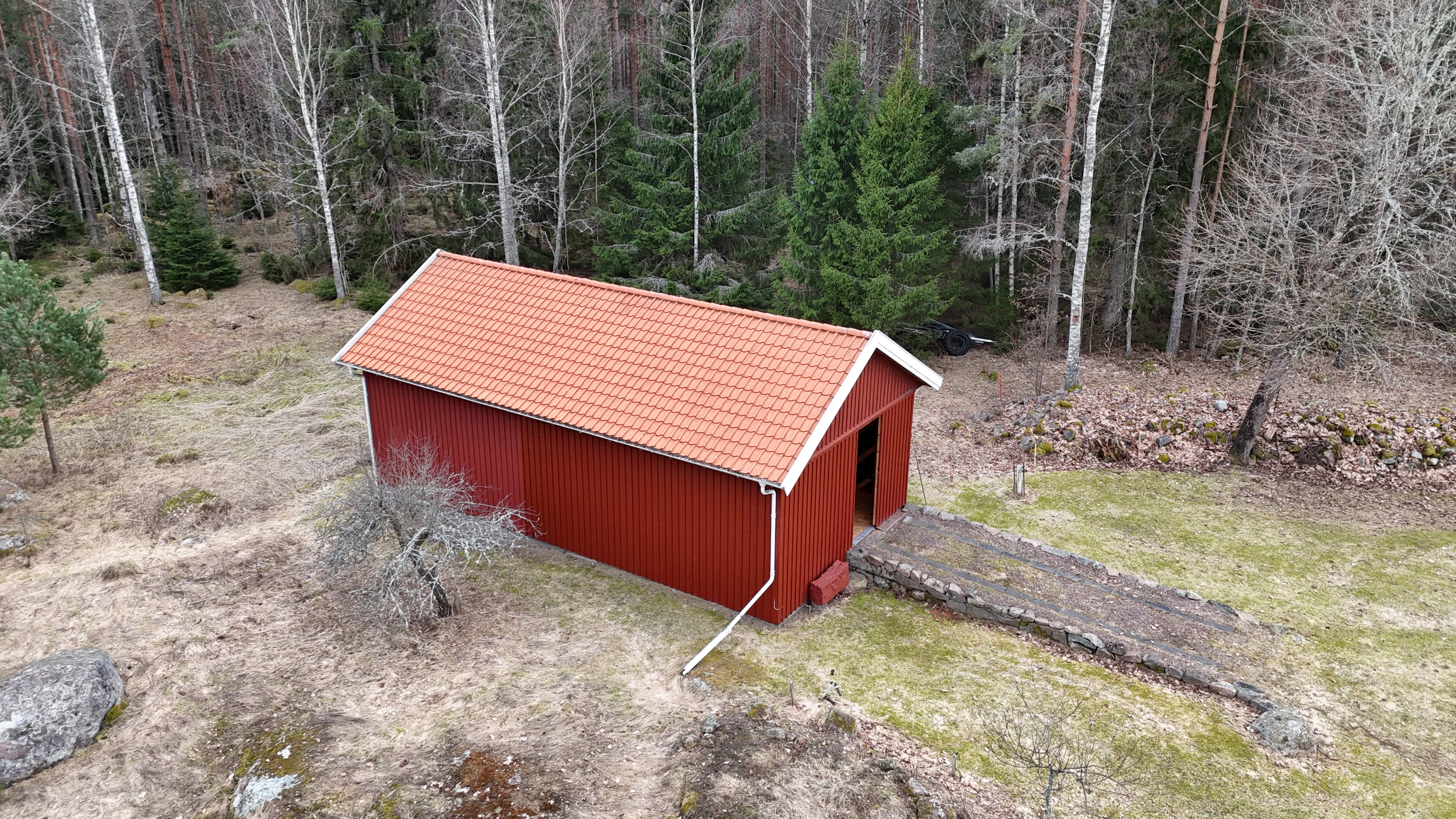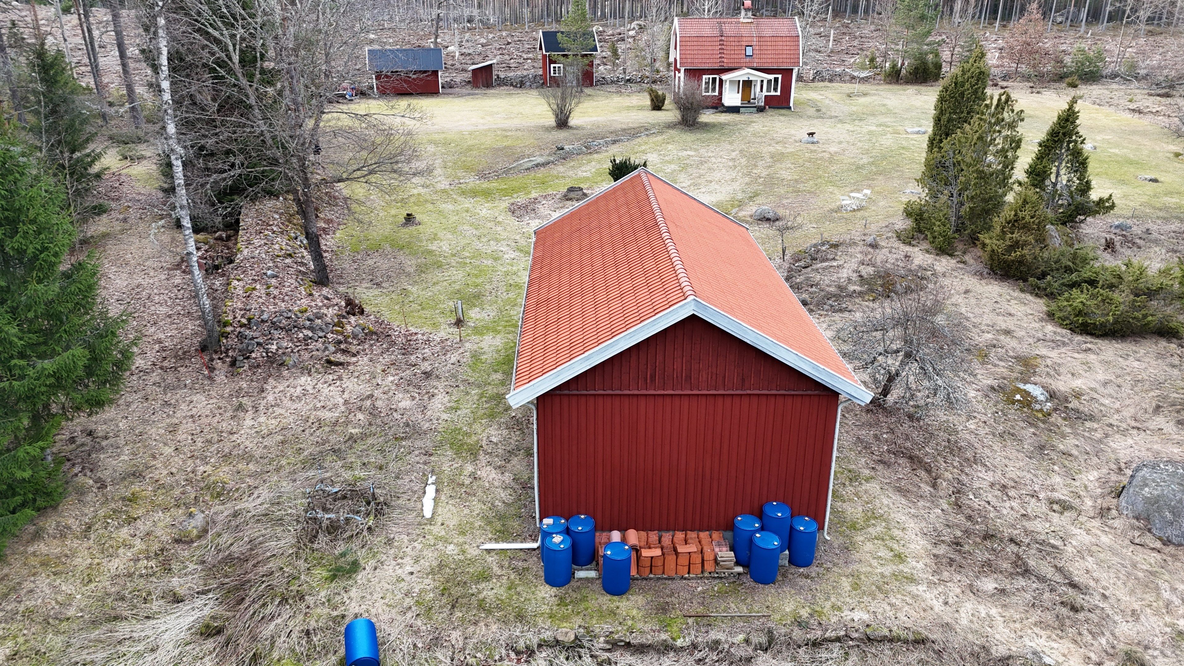 Torp från mitten på 1800-talet på ca 130 m², tillbyggt 1936, samt löpande renoverat under de senaste ca. 20 åren. Uppvärmning via luftvärmepump, elvärme och flera braskaminer och rörspisar. Vatten från borrad brunn (35 m djup), avlopp till trekammarbrunn med infiltration. Ny lada på 72 m² med garageplats och verkstad, uthus/museum ca 10 m² + vind, uthus med inbyggd container på ca. 15 m² och vedbod på ca 10 m². 14 500 m² helt enslig tomt med öppna gräsytor omkring byggnaderna, en del vedskog och vackra stengärdsgårdar. 600 m. till närmaste granne. Ca 1,5 km till stora sjön Algunnen med båtplats och omkringliggande naturreservat. Ca 270 km från Helsingborg. Filmrundvisning: https://youtu.be/s7994qFqB64 "Skogslund" - Mjöshyltan 180 vid Alsterbro är ett klassiskt småländskt torp med anor från 1800-talets mitt, tillbyggt och renoverat 1936, med mansardtak och därefter löpande renoverat under de senaste 20 åren. Huset är på ca. 130 m² boyta och i gott skick och redo att använda direkt. Lite utvändig målning och kosmetisk renovering här och var, men inget akut. På taket ligger betongpannor och med taktegel på den nyare verandan. Taket på veranda har skador på teglet, där några pannor behöver bytas. Fönstren är huvudsakligen kopplade tvåglasfönster, några enstaka med spricka i ett av glasen. Elsystemet har äldre porslinssäkringar och saknar jordfelsbrytare, men fungerar väl. Uppvärmningen sker via luftvärmepump (2023), direktverkande elvärme samt två braskaminer, en vedspis och två rörspisar, samtliga godkända och i bruk. Vatten tas från en 35 meter djup borrad brunn (lite järn, men ej filter) och avloppet är en trekammarbrunn med infiltration. Huset är sanerat mot husbock och har extra husbockförsäkring av Anticimex. Läs även mer om husets historia under "dokument" rubriken. Entré från mysig veranda via pardörrar in till hall med nyare plankgolv, synliga timmerväggar och träpanel i taket. Mindre sovrum eller lounge med nyare trägolv, platsbyggda sängar, bröstpanel och tapet på väggarna och en öppen rörspis. Vardagsrummet har trägolv, äldre brädor i taket, nya tapeter och extra isolering och ytterligare en fin vitputsad rörspis. Rymligt lantkök med matplats, nyare trägolv, träpanel i taket, gott om skåp, diskbänk, elspis med keramisk häll, kyl/frys, diskmaskin (ej fungerande), vedspis och braskamin. Luftvärmepumpens innerdel finns även i köket och så finns ett litet skafferi. Köksentrén har nyare trägolv och ytterdörr. På övervåningen finns en rymlig trapphall med garderob, trägolv och inspektionslucka till vinden. Hela övervåningen inreddes för ca. 20 år sedan. Badrum med målat plankgolv, duschkabin, WC, handfat, mekanisk ventilation, infällda spotlights i taket, Velux takfönster och tvättmaskin. Badrummet saknar våtrumsmatta, vilket innebär att försäkringsbolagens krav inte är uppfyllda, men det har fungerat fint i alla år. Stort master bedroom med trägolv, dubbelsäng, garderob, Morsø braskamin och öppet till nock med synliga takbjälkar. Sovrum med trägolv, dubbelsäng, öppet till nocken med liten plattform för lagring under taket och ytterligare en plattform lämplig för lagring eller barn. Mindre sovrum med trägolv och två enkelsängar. En del inventarier och maskiner kan köpas till eller medfölja, enl. önskemål och avtal med säljaren. På tomten finns en nyuppförd lada om ca 72 m² med garage, verkstad, el indraget med 3-fas kontakt och avfuktare i grunden. Byggnaden har tegeltak, god takhöjd och inspektionslucka till krypgrund. Här finns plats för flera fordon, traktor och trädgårdsmaskiner (köp av traktor mm kan förhandlas). Uthus med nytt papptak om ca 10 m² samt vind som idag används som litet museum med många gamla lantbruksredskap utställda och även plats för grill, trädgårdsmöbler och förvaring. Uthus på ca 15 m² med plåttak med inbyggd container för säker förvaring av verktyg och maskiner. Vedbod på ca. 10 m². Gammalt utedass i dåligt skick. 14 500 m² (friköpt) trädgård och skogstomt med öppna gräsytor omkring byggnaderna, en del vedskog, så man kan hålla sig självförsörjande med ved och fina stengärdsgårdar samt stora klippor och stenar som tittar fram. Området är mycket stenrikt och bjuder på genuin småländsk natur. Fastigheten ligger helt avskilt, inne på sin egen sidoväg till grusväg utan genomfartstrafik och med närmaste granne ca 600 meter bort. Skogen angränsade tomten på ena sidan har nyligen fällts, vilket ger en massa ljus och luft till tomten och resten av skogen runt fastigheten är ekopark med naturskyddsavtal och kan också komma att bli naturreservat. Ca. 800 m. till den lilla sjön Trehörningen och ca. 1,5 km till den stora sjön Algunnen med bad- och båtplats (båt och kanot kan köpas till). Stora delar av sjön Algunnen är också naturreservat och reservatet börjar ca. 600 m. fågelvägen från huset. Ca. 14 km till Alsterbro med närmaste service och ytterligare badplats. Ca. 12 km. till det otroligt vackra Aboda Klint med storslagen utsikt över landskapet och flera sjöar. Ca 42 km till Nybro samhälle och ca. 62 km till Kalmar och Ölandsbron. Ca. 110 km. från Astrid Lindgrens Värld. Ca. 270 km från Helsingborg och ca. 290 km från Malmö.