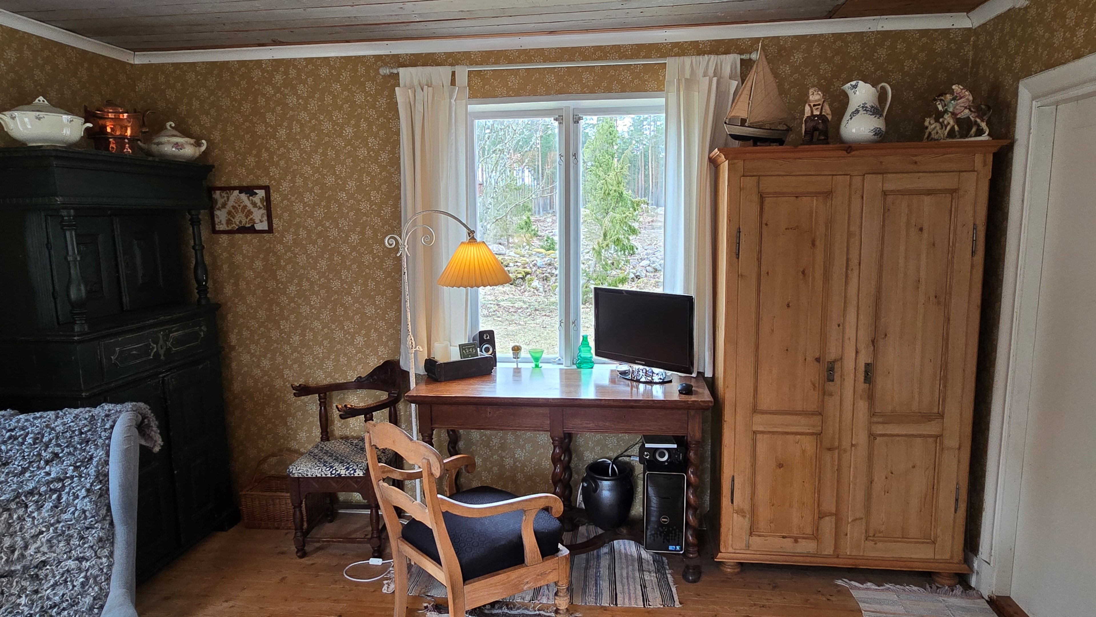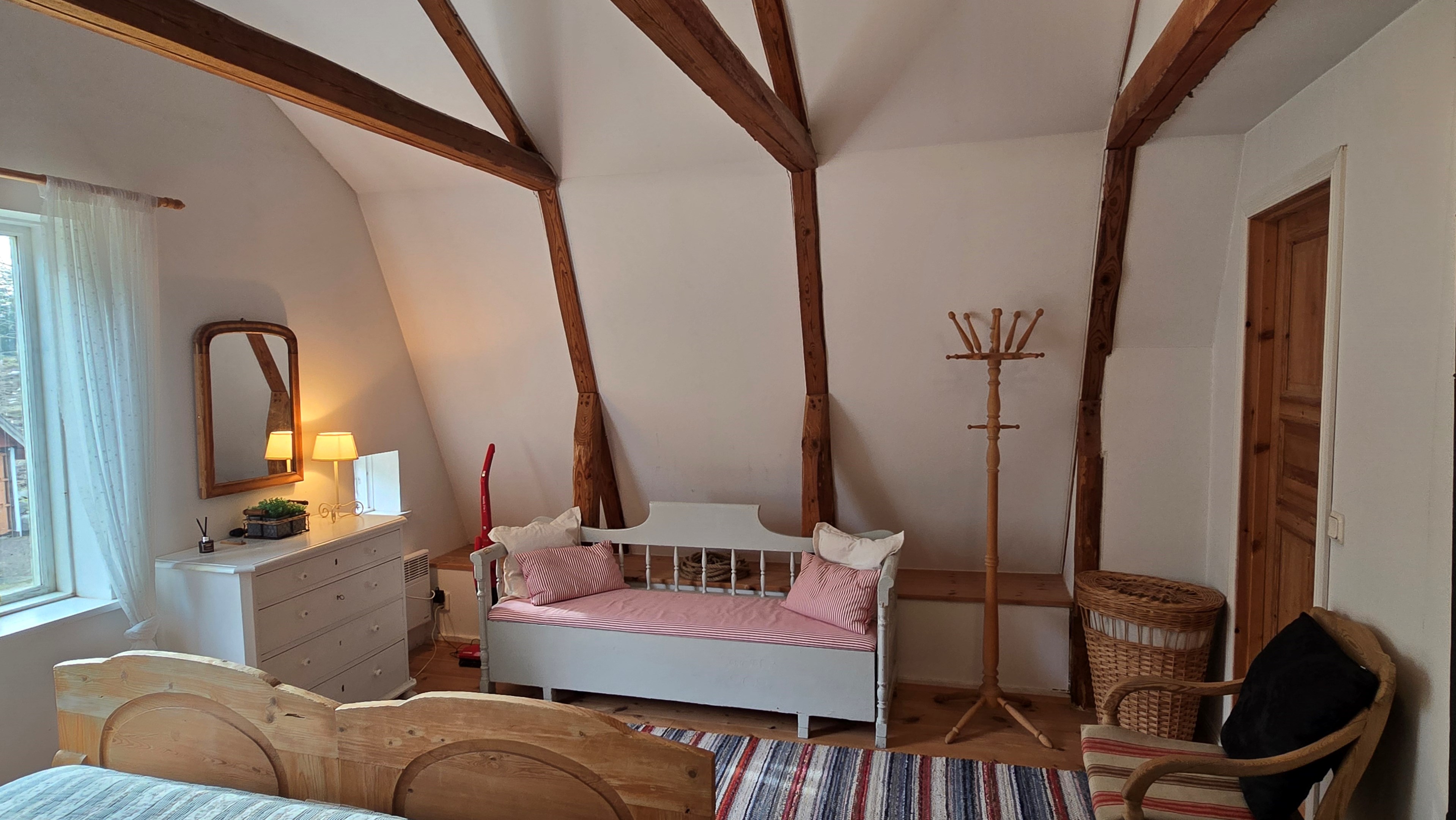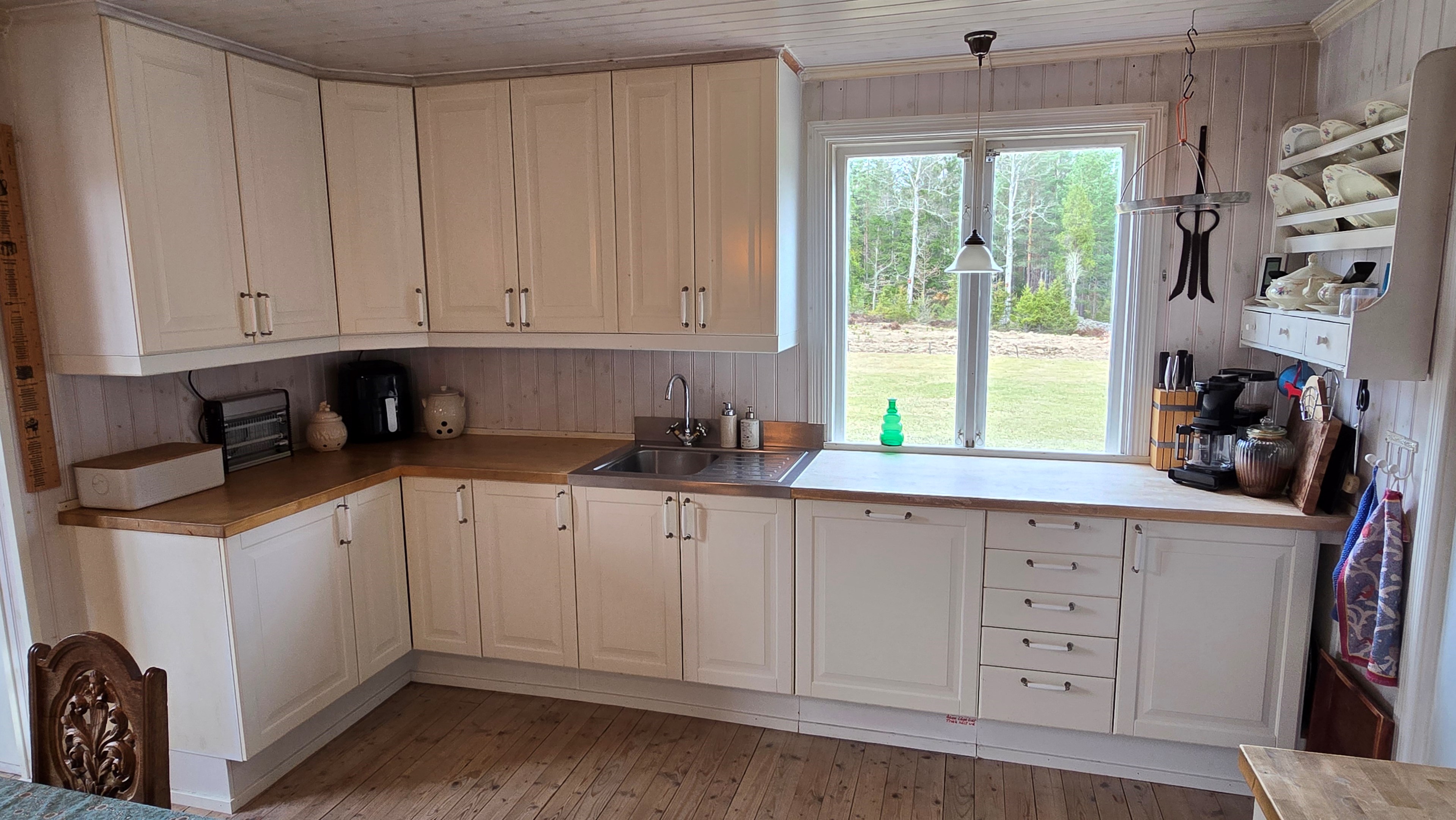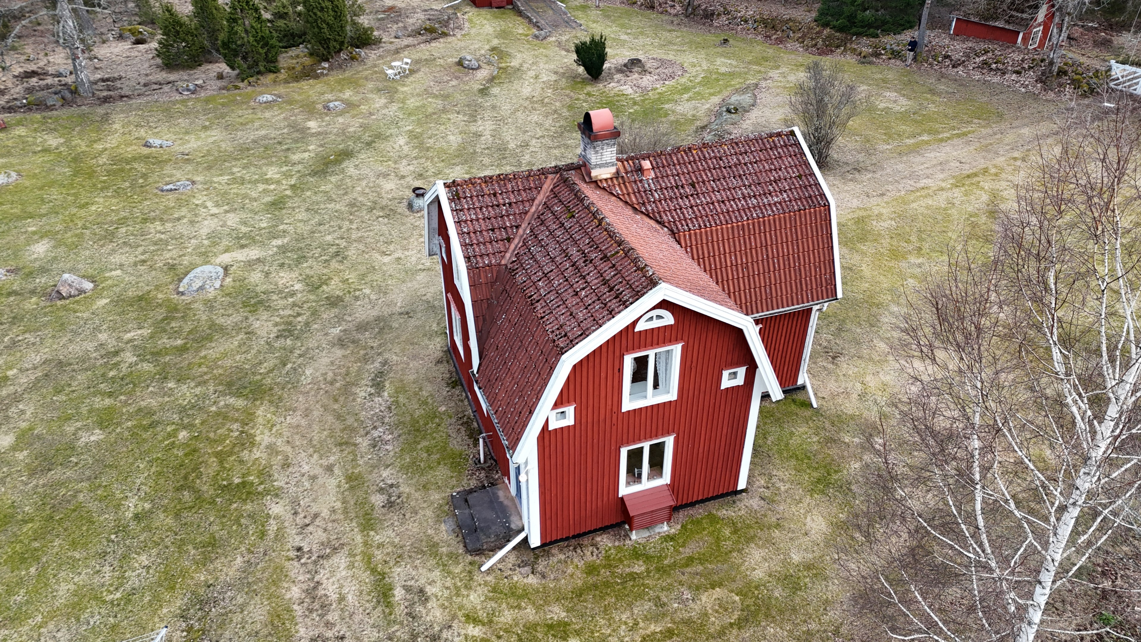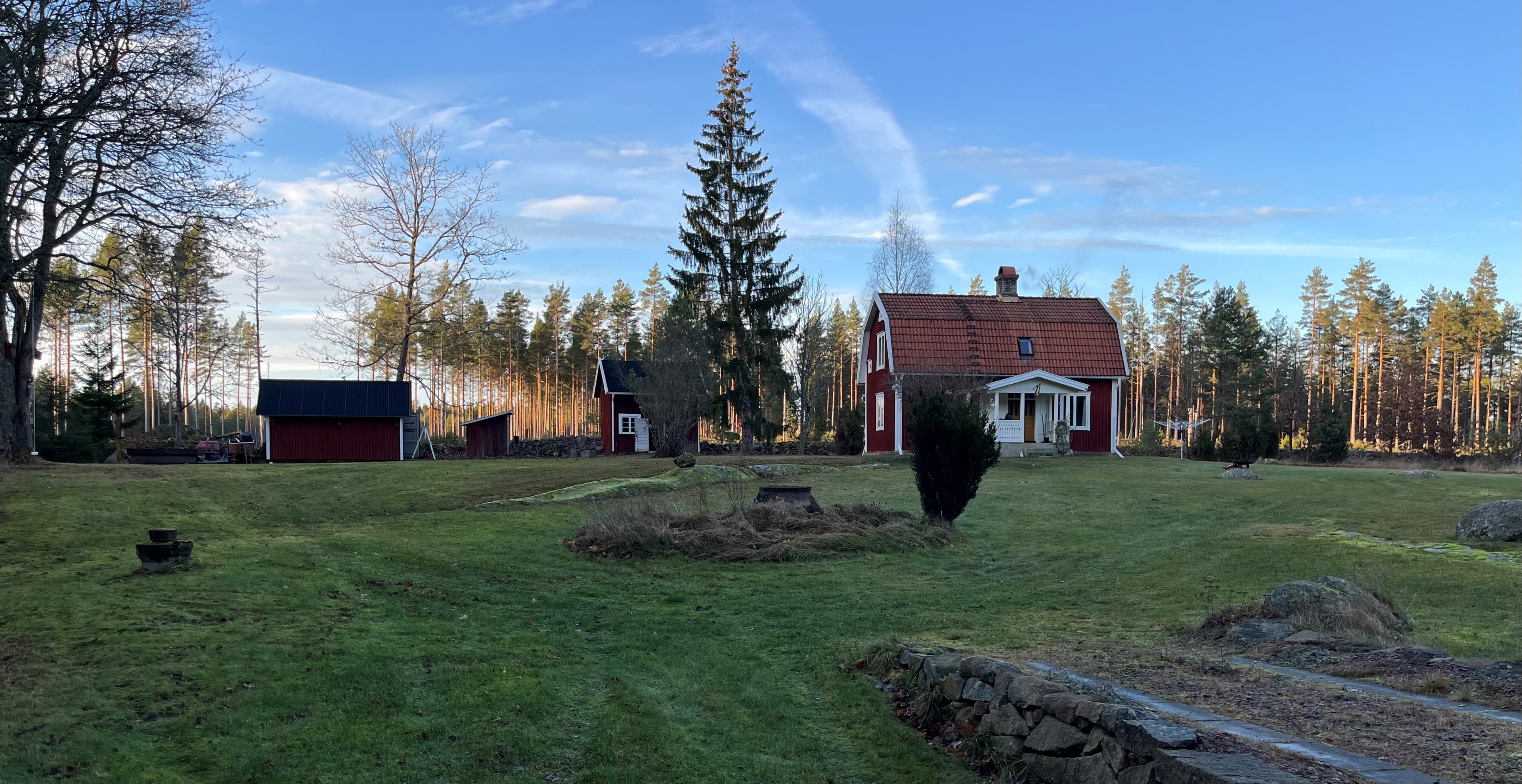 Torp från mitten på 1800-talet på ca 130 m², tillbyggt 1936, samt löpande renoverat under de senaste ca. 20 åren. Uppvärmning via luftvärmepump, elvärme och flera braskaminer och rörspisar. Vatten från borrad brunn (35 m djup), avlopp till trekammarbrunn med infiltration. Ny lada på 72 m² med garageplats och verkstad, uthus/museum ca 10 m² + vind, uthus med inbyggd container på ca. 15 m² och vedbod på ca 10 m². 14 500 m² helt enslig tomt med öppna gräsytor omkring byggnaderna, en del vedskog och vackra stengärdsgårdar. 600 m. till närmaste granne. Ca 1,5 km till stora sjön Algunnen med båtplats och omkringliggande naturreservat. Ca 270 km från Helsingborg. Filmrundvisning: https://youtu.be/s7994qFqB64 "Skogslund" - Mjöshyltan 180 vid Alsterbro är ett klassiskt småländskt torp med anor från 1800-talets mitt, tillbyggt och renoverat 1936, med mansardtak och därefter löpande renoverat under de senaste 20 åren. Huset är på ca. 130 m² boyta och i gott skick och redo att använda direkt. Lite utvändig målning och kosmetisk renovering här och var, men inget akut. På taket ligger betongpannor och med taktegel på den nyare verandan. Taket på veranda har skador på teglet, där några pannor behöver bytas. Fönstren är huvudsakligen kopplade tvåglasfönster, några enstaka med spricka i ett av glasen. Elsystemet har äldre porslinssäkringar och saknar jordfelsbrytare, men fungerar väl. Uppvärmningen sker via luftvärmepump (2023), direktverkande elvärme samt två braskaminer, en vedspis och två rörspisar, samtliga godkända och i bruk. Vatten tas från en 35 meter djup borrad brunn (lite järn, men ej filter) och avloppet är en trekammarbrunn med infiltration. Huset är sanerat mot husbock och har extra husbockförsäkring av Anticimex. Läs även mer om husets historia under "dokument" rubriken. Entré från mysig veranda via pardörrar in till hall med nyare plankgolv, synliga timmerväggar och träpanel i taket. Mindre sovrum eller lounge med nyare trägolv, platsbyggda sängar, bröstpanel och tapet på väggarna och en öppen rörspis. Vardagsrummet har trägolv, äldre brädor i taket, nya tapeter och extra isolering och ytterligare en fin vitputsad rörspis. Rymligt lantkök med matplats, nyare trägolv, träpanel i taket, gott om skåp, diskbänk, elspis med keramisk häll, kyl/frys, diskmaskin (ej fungerande), vedspis och braskamin. Luftvärmepumpens innerdel finns även i köket och så finns ett litet skafferi. Köksentrén har nyare trägolv och ytterdörr. På övervåningen finns en rymlig trapphall med garderob, trägolv och inspektionslucka till vinden. Hela övervåningen inreddes för ca. 20 år sedan. Badrum med målat plankgolv, duschkabin, WC, handfat, mekanisk ventilation, infällda spotlights i taket, Velux takfönster och tvättmaskin. Badrummet saknar våtrumsmatta, vilket innebär att försäkringsbolagens krav inte är uppfyllda, men det har fungerat fint i alla år. Stort master bedroom med trägolv, dubbelsäng, garderob, Morsø braskamin och öppet till nock med synliga takbjälkar. Sovrum med trägolv, dubbelsäng, öppet till nocken med liten plattform för lagring under taket och ytterligare en plattform lämplig för lagring eller barn. Mindre sovrum med trägolv och två enkelsängar. En del inventarier och maskiner kan köpas till eller medfölja, enl. önskemål och avtal med säljaren. På tomten finns en nyuppförd lada om ca 72 m² med garage, verkstad, el indraget med 3-fas kontakt och avfuktare i grunden. Byggnaden har tegeltak, god takhöjd och inspektionslucka till krypgrund. Här finns plats för flera fordon, traktor och trädgårdsmaskiner (köp av traktor mm kan förhandlas). Uthus med nytt papptak om ca 10 m² samt vind som idag används som litet museum med många gamla lantbruksredskap utställda och även plats för grill, trädgårdsmöbler och förvaring. Uthus på ca 15 m² med plåttak med inbyggd container för säker förvaring av verktyg och maskiner. Vedbod på ca. 10 m². Gammalt utedass i dåligt skick. 14 500 m² (friköpt) trädgård och skogstomt med öppna gräsytor omkring byggnaderna, en del vedskog, så man kan hålla sig självförsörjande med ved och fina stengärdsgårdar samt stora klippor och stenar som tittar fram. Området är mycket stenrikt och bjuder på genuin småländsk natur. Fastigheten ligger helt avskilt, inne på sin egen sidoväg till grusväg utan genomfartstrafik och med närmaste granne ca 600 meter bort. Skogen angränsade tomten på ena sidan har nyligen fällts, vilket ger en massa ljus och luft till tomten och resten av skogen runt fastigheten är ekopark med naturskyddsavtal och kan också komma att bli naturreservat. Ca. 800 m. till den lilla sjön Trehörningen och ca. 1,5 km till den stora sjön Algunnen med bad- och båtplats (båt och kanot kan köpas till). Stora delar av sjön Algunnen är också naturreservat och reservatet börjar ca. 600 m. fågelvägen från huset. Ca. 14 km till Alsterbro med närmaste service och ytterligare badplats. Ca. 12 km. till det otroligt vackra Aboda Klint med storslagen utsikt över landskapet och flera sjöar. Ca 42 km till Nybro samhälle och ca. 62 km till Kalmar och Ölandsbron. Ca. 110 km. från Astrid Lindgrens Värld. Ca. 270 km från Helsingborg och ca. 290 km från Malmö.