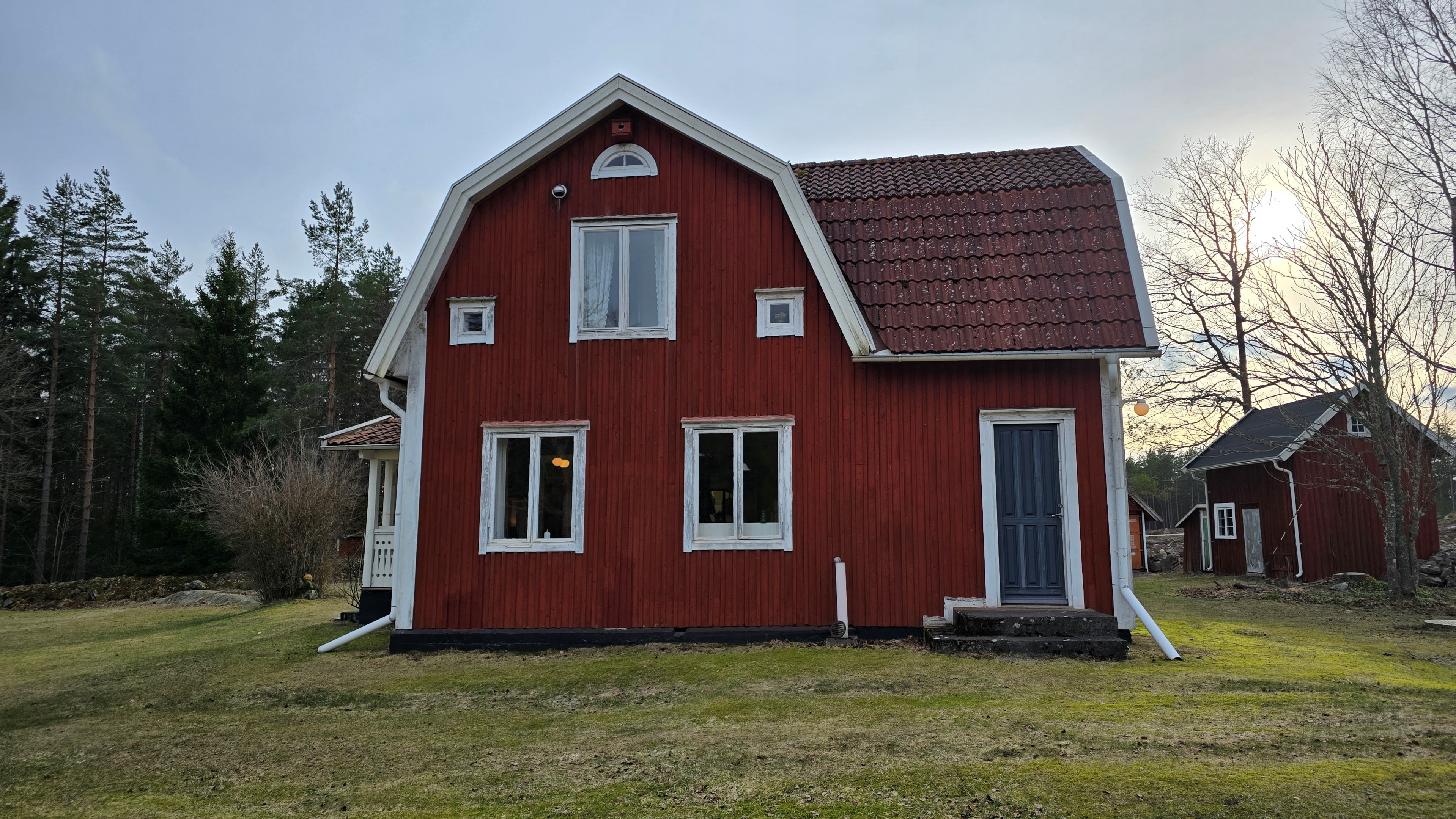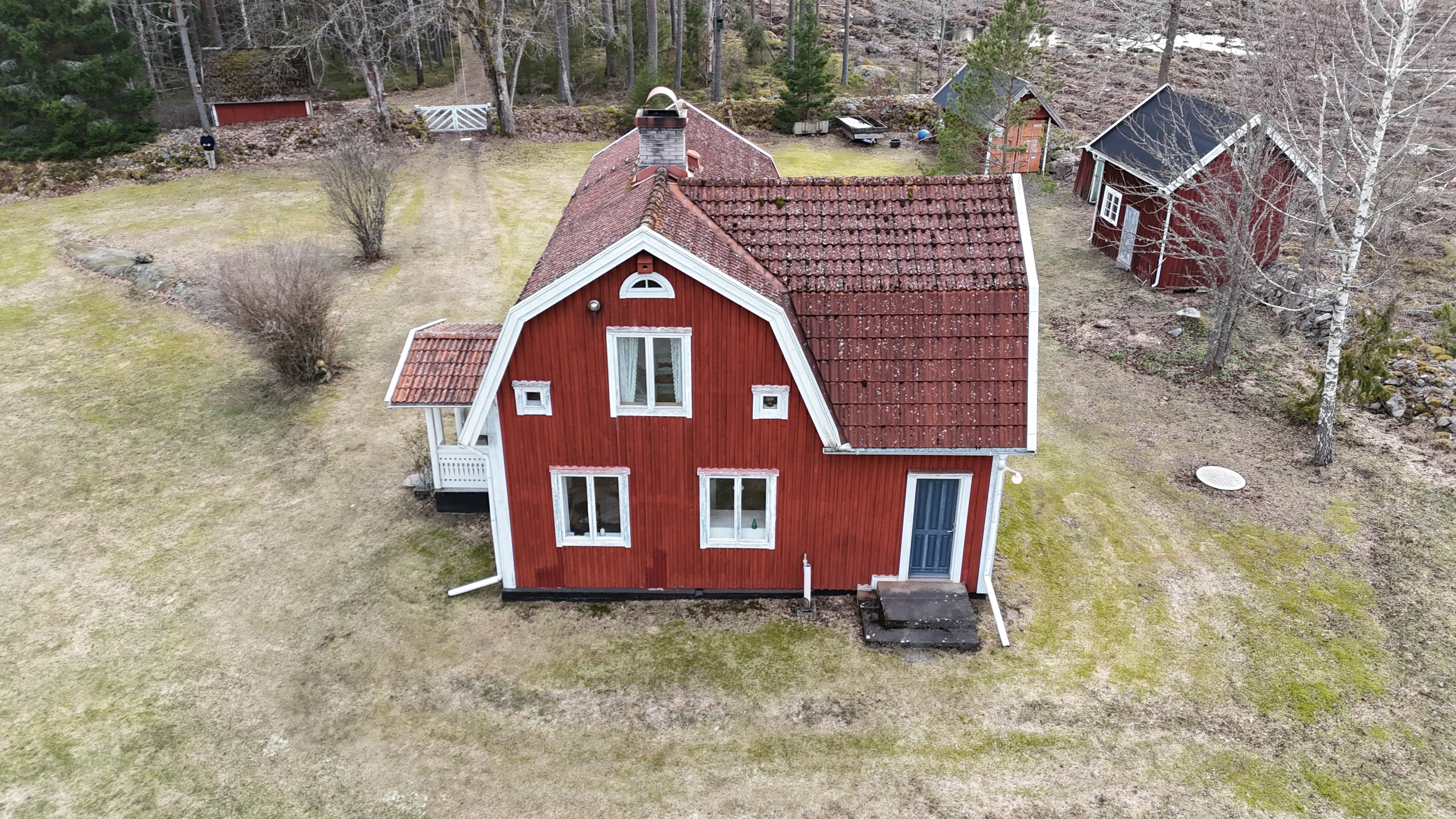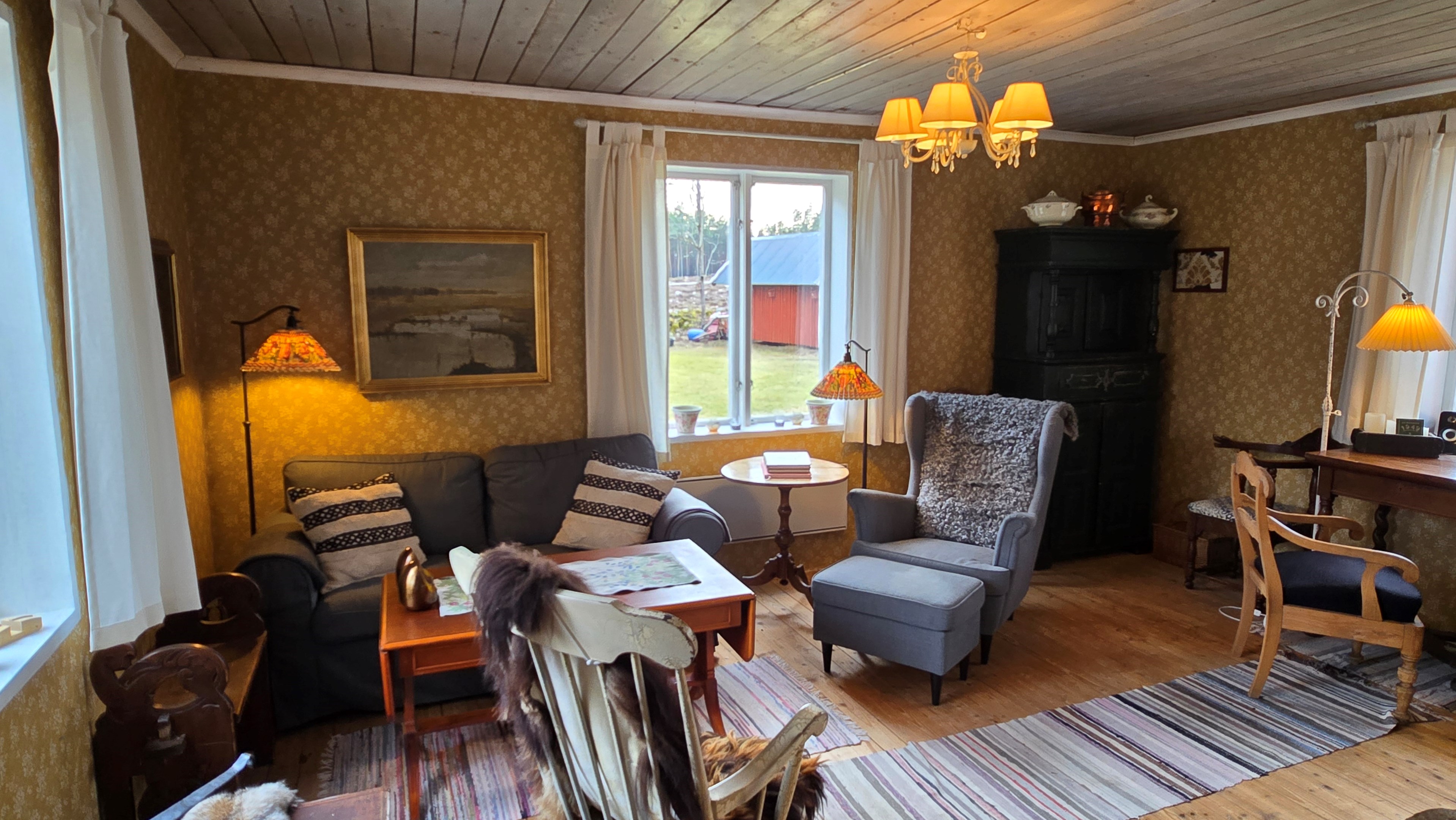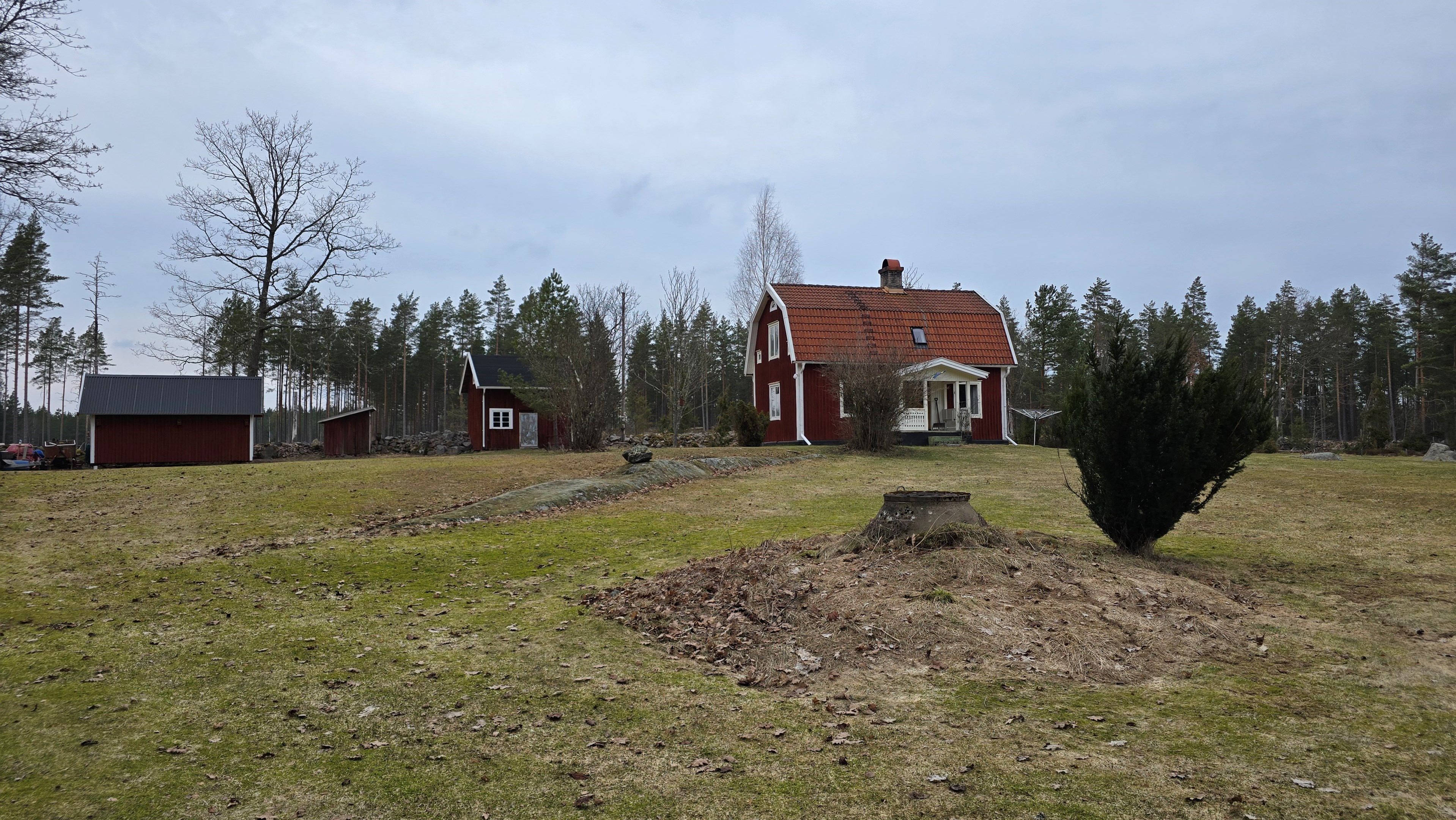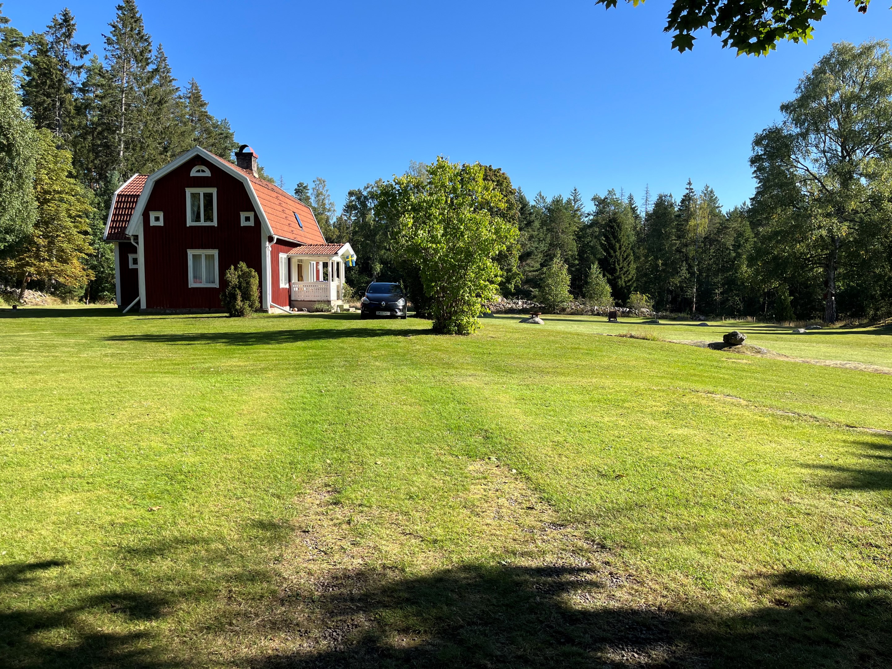 Torp från mitten på 1800-talet på ca 130 m², tillbyggt 1936, samt löpande renoverat under de senaste ca. 20 åren. Uppvärmning via luftvärmepump, elvärme och flera braskaminer och rörspisar. Vatten från borrad brunn (35 m djup), avlopp till trekammarbrunn med infiltration. Ny lada på 72 m² med garageplats och verkstad, uthus/museum ca 10 m² + vind, uthus med inbyggd container på ca. 15 m² och vedbod på ca 10 m². 14 500 m² helt enslig tomt med öppna gräsytor omkring byggnaderna, en del vedskog och vackra stengärdsgårdar. 600 m. till närmaste granne. Ca 1,5 km till stora sjön Algunnen med båtplats och omkringliggande naturreservat. Ca 270 km från Helsingborg. Filmrundvisning: https://youtu.be/s7994qFqB64 "Skogslund" - Mjöshyltan 180 vid Alsterbro är ett klassiskt småländskt torp med anor från 1800-talets mitt, tillbyggt och renoverat 1936, med mansardtak och därefter löpande renoverat under de senaste 20 åren. Huset är på ca. 130 m² boyta och i gott skick och redo att använda direkt. Lite utvändig målning och kosmetisk renovering här och var, men inget akut. På taket ligger betongpannor och med taktegel på den nyare verandan. Taket på veranda har skador på teglet, där några pannor behöver bytas. Fönstren är huvudsakligen kopplade tvåglasfönster, några enstaka med spricka i ett av glasen. Elsystemet har äldre porslinssäkringar och saknar jordfelsbrytare, men fungerar väl. Uppvärmningen sker via luftvärmepump (2023), direktverkande elvärme samt två braskaminer, en vedspis och två rörspisar, samtliga godkända och i bruk. Vatten tas från en 35 meter djup borrad brunn (lite järn, men ej filter) och avloppet är en trekammarbrunn med infiltration. Huset är sanerat mot husbock och har extra husbockförsäkring av Anticimex. Läs även mer om husets historia under "dokument" rubriken. Entré från mysig veranda via pardörrar in till hall med nyare plankgolv, synliga timmerväggar och träpanel i taket. Mindre sovrum eller lounge med nyare trägolv, platsbyggda sängar, bröstpanel och tapet på väggarna och en öppen rörspis. Vardagsrummet har trägolv, äldre brädor i taket, nya tapeter och extra isolering och ytterligare en fin vitputsad rörspis. Rymligt lantkök med matplats, nyare trägolv, träpanel i taket, gott om skåp, diskbänk, elspis med keramisk häll, kyl/frys, diskmaskin (ej fungerande), vedspis och braskamin. Luftvärmepumpens innerdel finns även i köket och så finns ett litet skafferi. Köksentrén har nyare trägolv och ytterdörr. På övervåningen finns en rymlig trapphall med garderob, trägolv och inspektionslucka till vinden. Hela övervåningen inreddes för ca. 20 år sedan. Badrum med målat plankgolv, duschkabin, WC, handfat, mekanisk ventilation, infällda spotlights i taket, Velux takfönster och tvättmaskin. Badrummet saknar våtrumsmatta, vilket innebär att försäkringsbolagens krav inte är uppfyllda, men det har fungerat fint i alla år. Stort master bedroom med trägolv, dubbelsäng, garderob, Morsø braskamin och öppet till nock med synliga takbjälkar. Sovrum med trägolv, dubbelsäng, öppet till nocken med liten plattform för lagring under taket och ytterligare en plattform lämplig för lagring eller barn. Mindre sovrum med trägolv och två enkelsängar. En del inventarier och maskiner kan köpas till eller medfölja, enl. önskemål och avtal med säljaren. På tomten finns en nyuppförd lada om ca 72 m² med garage, verkstad, el indraget med 3-fas kontakt och avfuktare i grunden. Byggnaden har tegeltak, god takhöjd och inspektionslucka till krypgrund. Här finns plats för flera fordon, traktor och trädgårdsmaskiner (köp av traktor mm kan förhandlas). Uthus med nytt papptak om ca 10 m² samt vind som idag används som litet museum med många gamla lantbruksredskap utställda och även plats för grill, trädgårdsmöbler och förvaring. Uthus på ca 15 m² med plåttak med inbyggd container för säker förvaring av verktyg och maskiner. Vedbod på ca. 10 m². Gammalt utedass i dåligt skick. 14 500 m² (friköpt) trädgård och skogstomt med öppna gräsytor omkring byggnaderna, en del vedskog, så man kan hålla sig självförsörjande med ved och fina stengärdsgårdar samt stora klippor och stenar som tittar fram. Området är mycket stenrikt och bjuder på genuin småländsk natur. Fastigheten ligger helt avskilt, inne på sin egen sidoväg till grusväg utan genomfartstrafik och med närmaste granne ca 600 meter bort. Skogen angränsade tomten på ena sidan har nyligen fällts, vilket ger en massa ljus och luft till tomten och resten av skogen runt fastigheten är ekopark med naturskyddsavtal och kan också komma att bli naturreservat. Ca. 800 m. till den lilla sjön Trehörningen och ca. 1,5 km till den stora sjön Algunnen med bad- och båtplats (båt och kanot kan köpas till). Stora delar av sjön Algunnen är också naturreservat och reservatet börjar ca. 600 m. fågelvägen från huset. Ca. 14 km till Alsterbro med närmaste service och ytterligare badplats. Ca. 12 km. till det otroligt vackra Aboda Klint med storslagen utsikt över landskapet och flera sjöar. Ca 42 km till Nybro samhälle och ca. 62 km till Kalmar och Ölandsbron. Ca. 110 km. från Astrid Lindgrens Värld. Ca. 270 km från Helsingborg och ca. 290 km från Malmö.