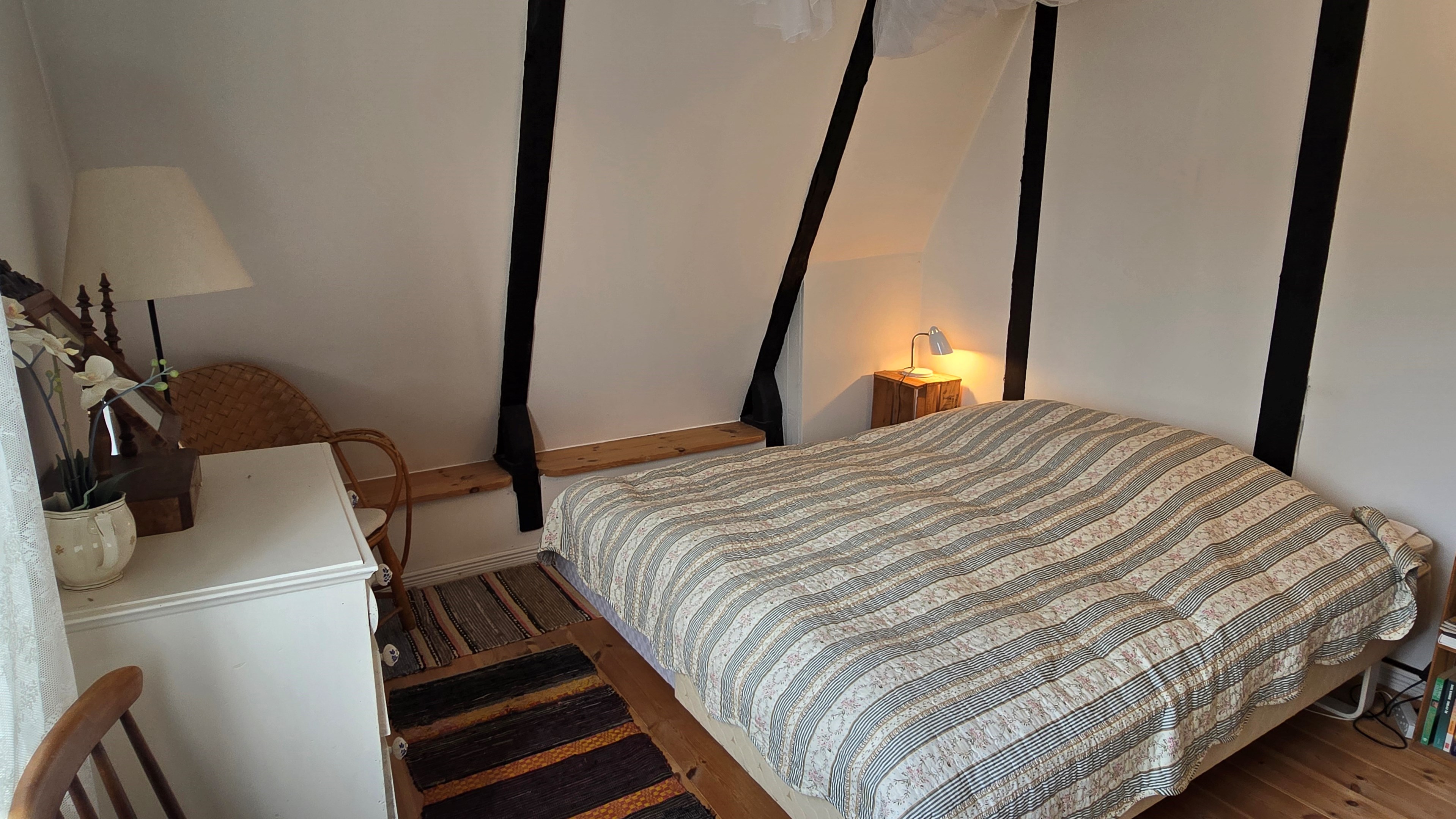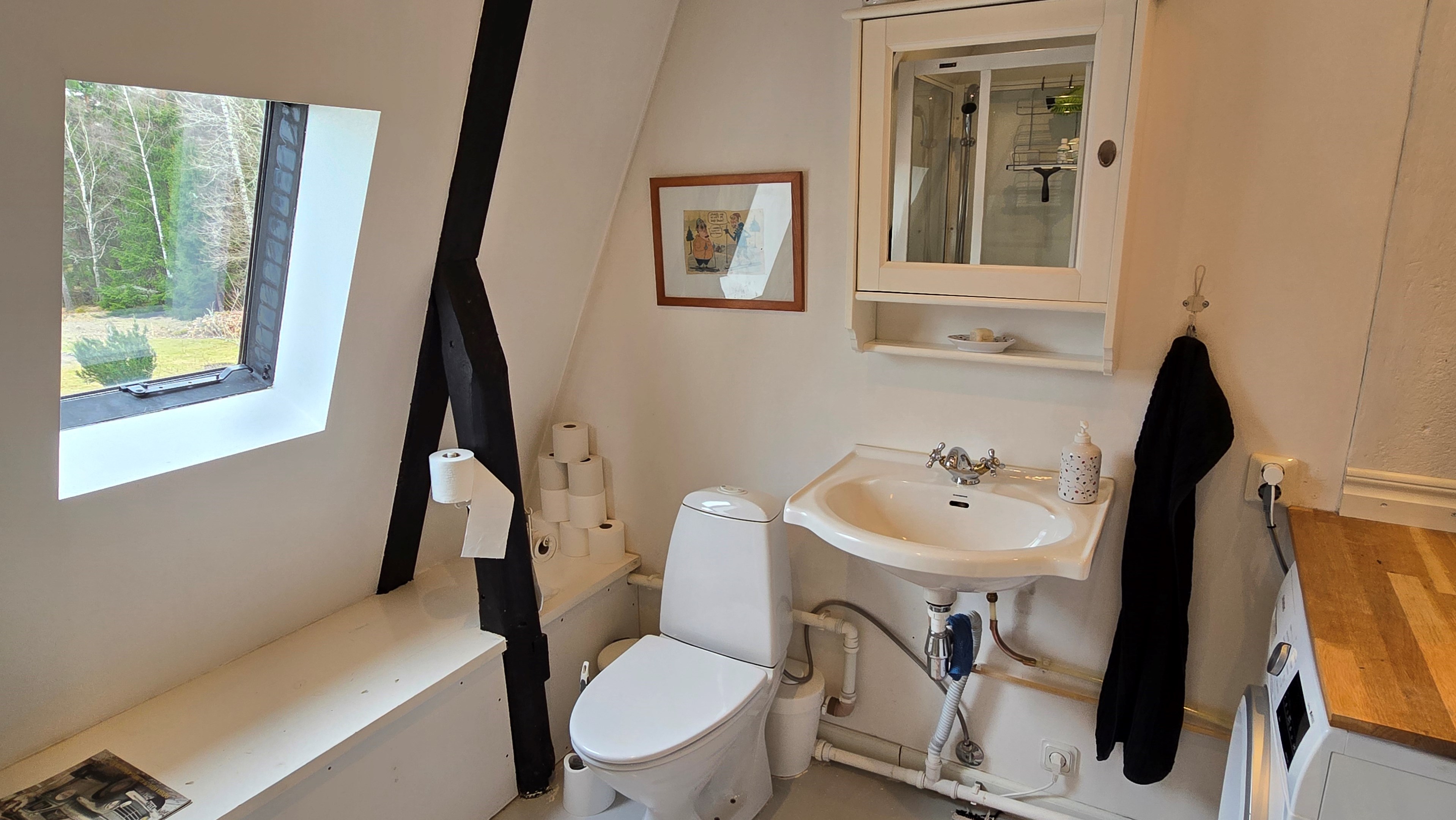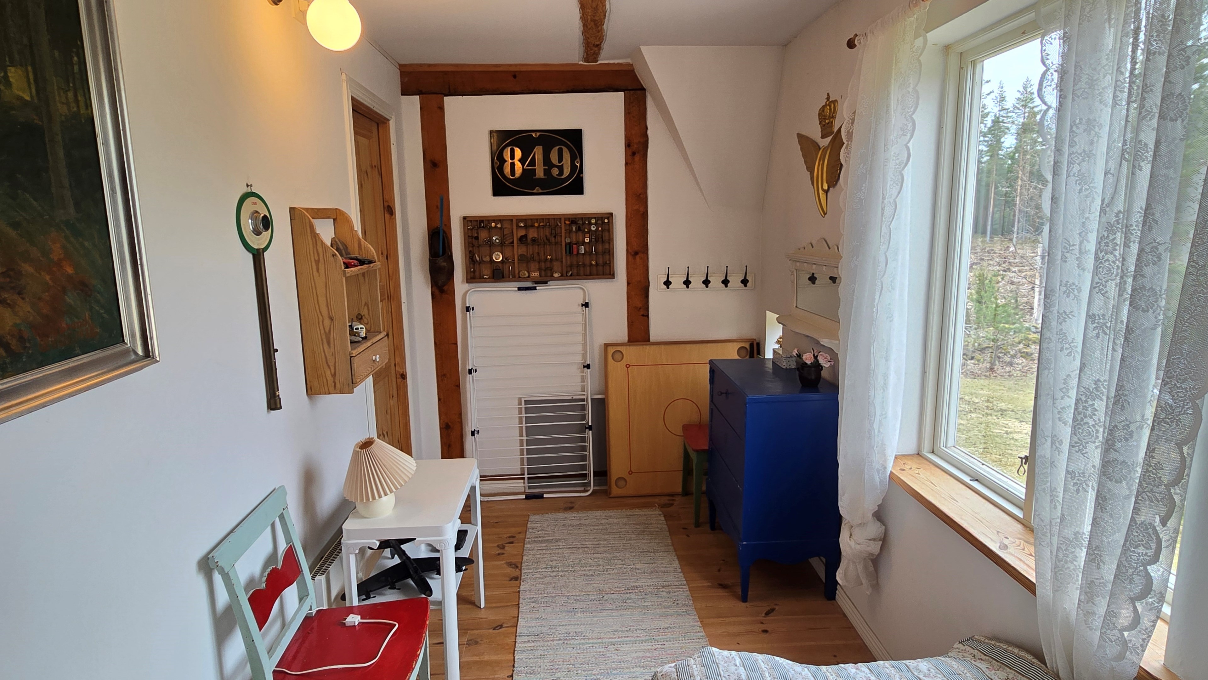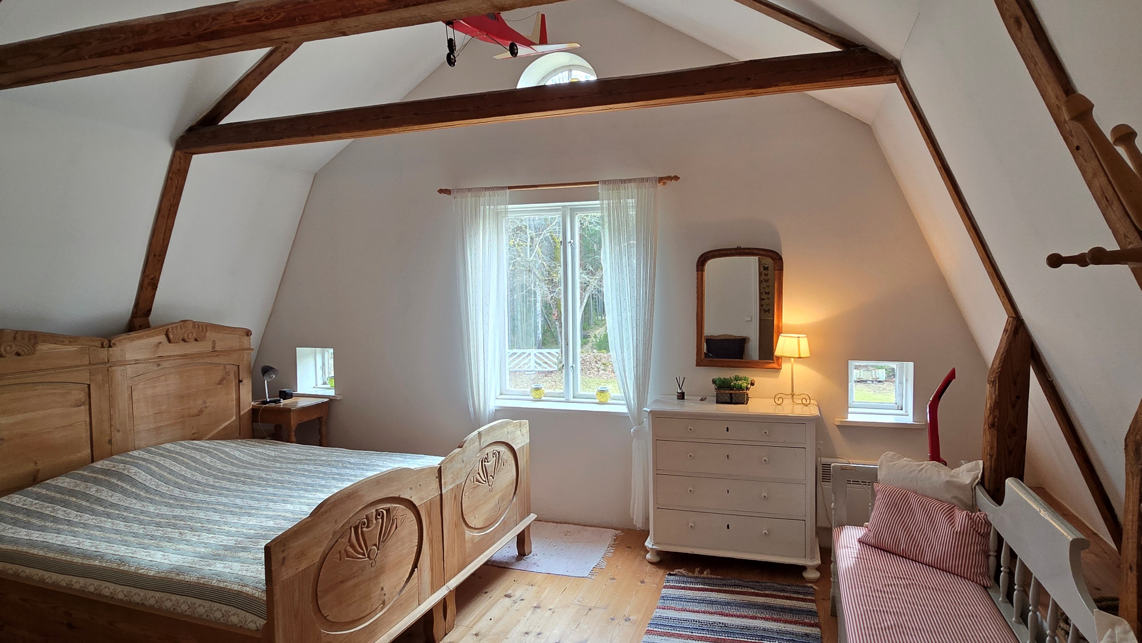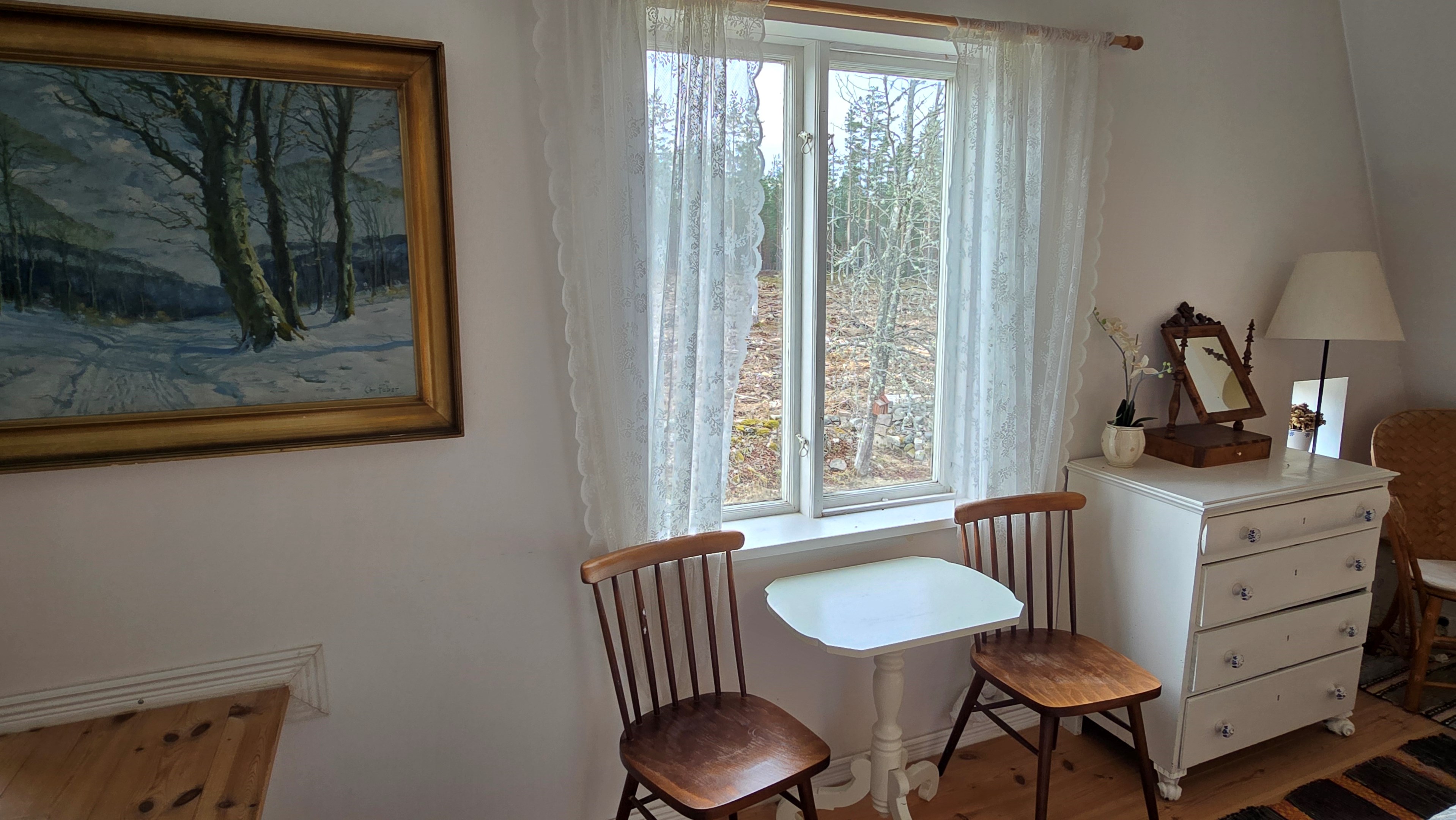 Torp från mitten på 1800-talet på ca 130 m², tillbyggt 1936, samt löpande renoverat under de senaste ca. 20 åren. Uppvärmning via luftvärmepump, elvärme och flera braskaminer och rörspisar. Vatten från borrad brunn (35 m djup), avlopp till trekammarbrunn med infiltration. Ny lada på 72 m² med garageplats och verkstad, uthus/museum ca 10 m² + vind, uthus med inbyggd container på ca. 15 m² och vedbod på ca 10 m². 14 500 m² helt enslig tomt med öppna gräsytor omkring byggnaderna, en del vedskog och vackra stengärdsgårdar. 600 m. till närmaste granne. Ca 1,5 km till stora sjön Algunnen med båtplats och omkringliggande naturreservat. Ca 270 km från Helsingborg. Filmrundvisning: https://youtu.be/s7994qFqB64 "Skogslund" - Mjöshyltan 180 vid Alsterbro är ett klassiskt småländskt torp med anor från 1800-talets mitt, tillbyggt och renoverat 1936, med mansardtak och därefter löpande renoverat under de senaste 20 åren. Huset är på ca. 130 m² boyta och i gott skick och redo att använda direkt. Lite utvändig målning och kosmetisk renovering här och var, men inget akut. På taket ligger betongpannor och med taktegel på den nyare verandan. Taket på veranda har skador på teglet, där några pannor behöver bytas. Fönstren är huvudsakligen kopplade tvåglasfönster, några enstaka med spricka i ett av glasen. Elsystemet har äldre porslinssäkringar och saknar jordfelsbrytare, men fungerar väl. Uppvärmningen sker via luftvärmepump (2023), direktverkande elvärme samt två braskaminer, en vedspis och två rörspisar, samtliga godkända och i bruk. Vatten tas från en 35 meter djup borrad brunn (lite järn, men ej filter) och avloppet är en trekammarbrunn med infiltration. Huset är sanerat mot husbock och har extra husbockförsäkring av Anticimex. Läs även mer om husets historia under "dokument" rubriken. Entré från mysig veranda via pardörrar in till hall med nyare plankgolv, synliga timmerväggar och träpanel i taket. Mindre sovrum eller lounge med nyare trägolv, platsbyggda sängar, bröstpanel och tapet på väggarna och en öppen rörspis. Vardagsrummet har trägolv, äldre brädor i taket, nya tapeter och extra isolering och ytterligare en fin vitputsad rörspis. Rymligt lantkök med matplats, nyare trägolv, träpanel i taket, gott om skåp, diskbänk, elspis med keramisk häll, kyl/frys, diskmaskin (ej fungerande), vedspis och braskamin. Luftvärmepumpens innerdel finns även i köket och så finns ett litet skafferi. Köksentrén har nyare trägolv och ytterdörr. På övervåningen finns en rymlig trapphall med garderob, trägolv och inspektionslucka till vinden. Hela övervåningen inreddes för ca. 20 år sedan. Badrum med målat plankgolv, duschkabin, WC, handfat, mekanisk ventilation, infällda spotlights i taket, Velux takfönster och tvättmaskin. Badrummet saknar våtrumsmatta, vilket innebär att försäkringsbolagens krav inte är uppfyllda, men det har fungerat fint i alla år. Stort master bedroom med trägolv, dubbelsäng, garderob, Morsø braskamin och öppet till nock med synliga takbjälkar. Sovrum med trägolv, dubbelsäng, öppet till nocken med liten plattform för lagring under taket och ytterligare en plattform lämplig för lagring eller barn. Mindre sovrum med trägolv och två enkelsängar. En del inventarier och maskiner kan köpas till eller medfölja, enl. önskemål och avtal med säljaren. På tomten finns en nyuppförd lada om ca 72 m² med garage, verkstad, el indraget med 3-fas kontakt och avfuktare i grunden. Byggnaden har tegeltak, god takhöjd och inspektionslucka till krypgrund. Här finns plats för flera fordon, traktor och trädgårdsmaskiner (köp av traktor mm kan förhandlas). Uthus med nytt papptak om ca 10 m² samt vind som idag används som litet museum med många gamla lantbruksredskap utställda och även plats för grill, trädgårdsmöbler och förvaring. Uthus på ca 15 m² med plåttak med inbyggd container för säker förvaring av verktyg och maskiner. Vedbod på ca. 10 m². Gammalt utedass i dåligt skick. 14 500 m² (friköpt) trädgård och skogstomt med öppna gräsytor omkring byggnaderna, en del vedskog, så man kan hålla sig självförsörjande med ved och fina stengärdsgårdar samt stora klippor och stenar som tittar fram. Området är mycket stenrikt och bjuder på genuin småländsk natur. Fastigheten ligger helt avskilt, inne på sin egen sidoväg till grusväg utan genomfartstrafik och med närmaste granne ca 600 meter bort. Skogen angränsade tomten på ena sidan har nyligen fällts, vilket ger en massa ljus och luft till tomten och resten av skogen runt fastigheten är ekopark med naturskyddsavtal och kan också komma att bli naturreservat. Ca. 800 m. till den lilla sjön Trehörningen och ca. 1,5 km till den stora sjön Algunnen med bad- och båtplats (båt och kanot kan köpas till). Stora delar av sjön Algunnen är också naturreservat och reservatet börjar ca. 600 m. fågelvägen från huset. Ca. 14 km till Alsterbro med närmaste service och ytterligare badplats. Ca. 12 km. till det otroligt vackra Aboda Klint med storslagen utsikt över landskapet och flera sjöar. Ca 42 km till Nybro samhälle och ca. 62 km till Kalmar och Ölandsbron. Ca. 110 km. från Astrid Lindgrens Värld. Ca. 270 km från Helsingborg och ca. 290 km från Malmö.
