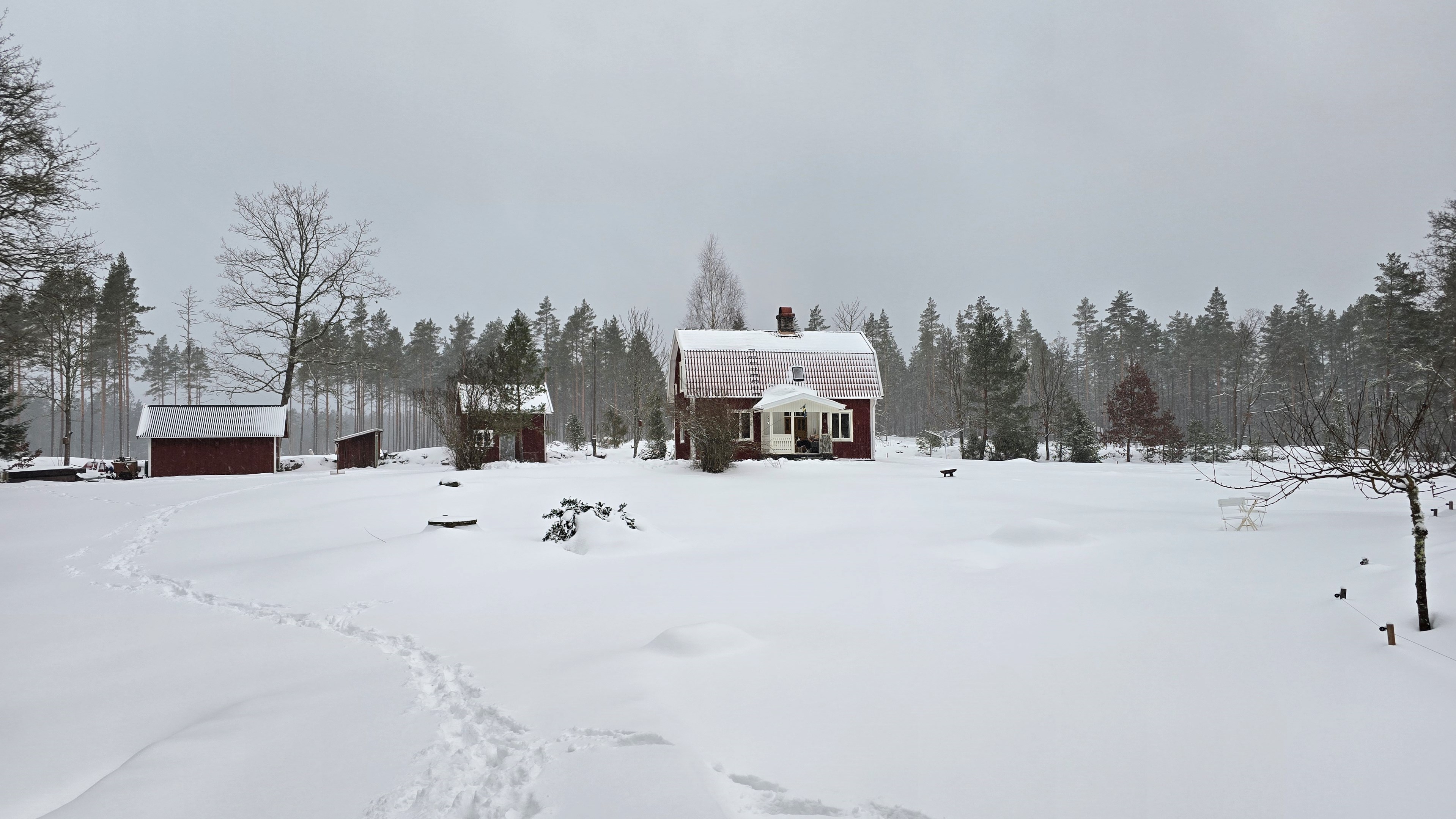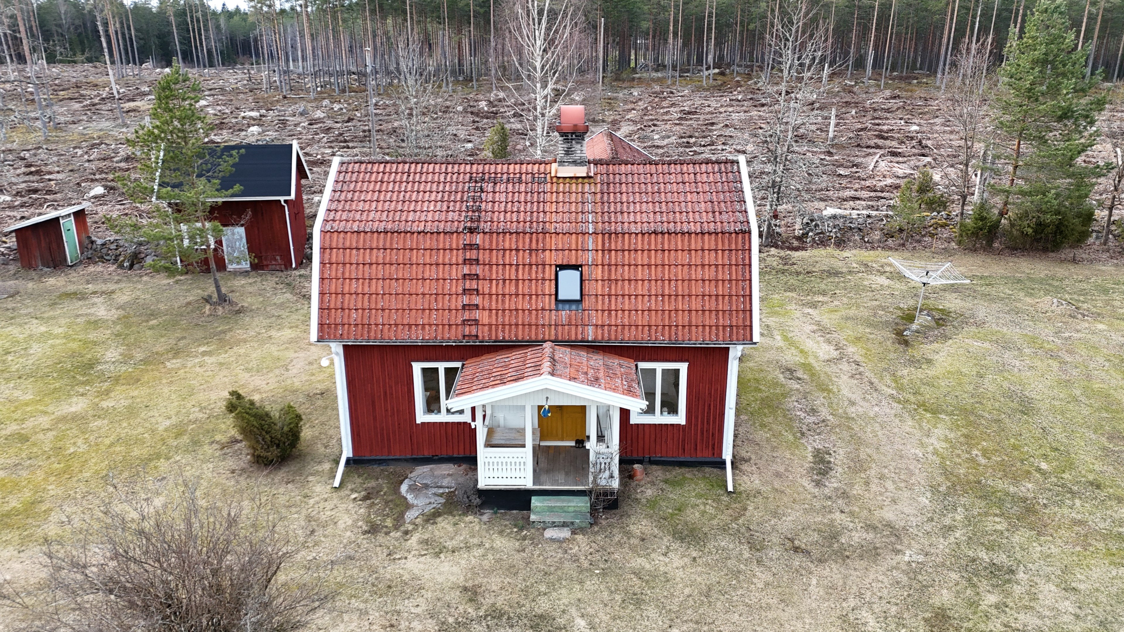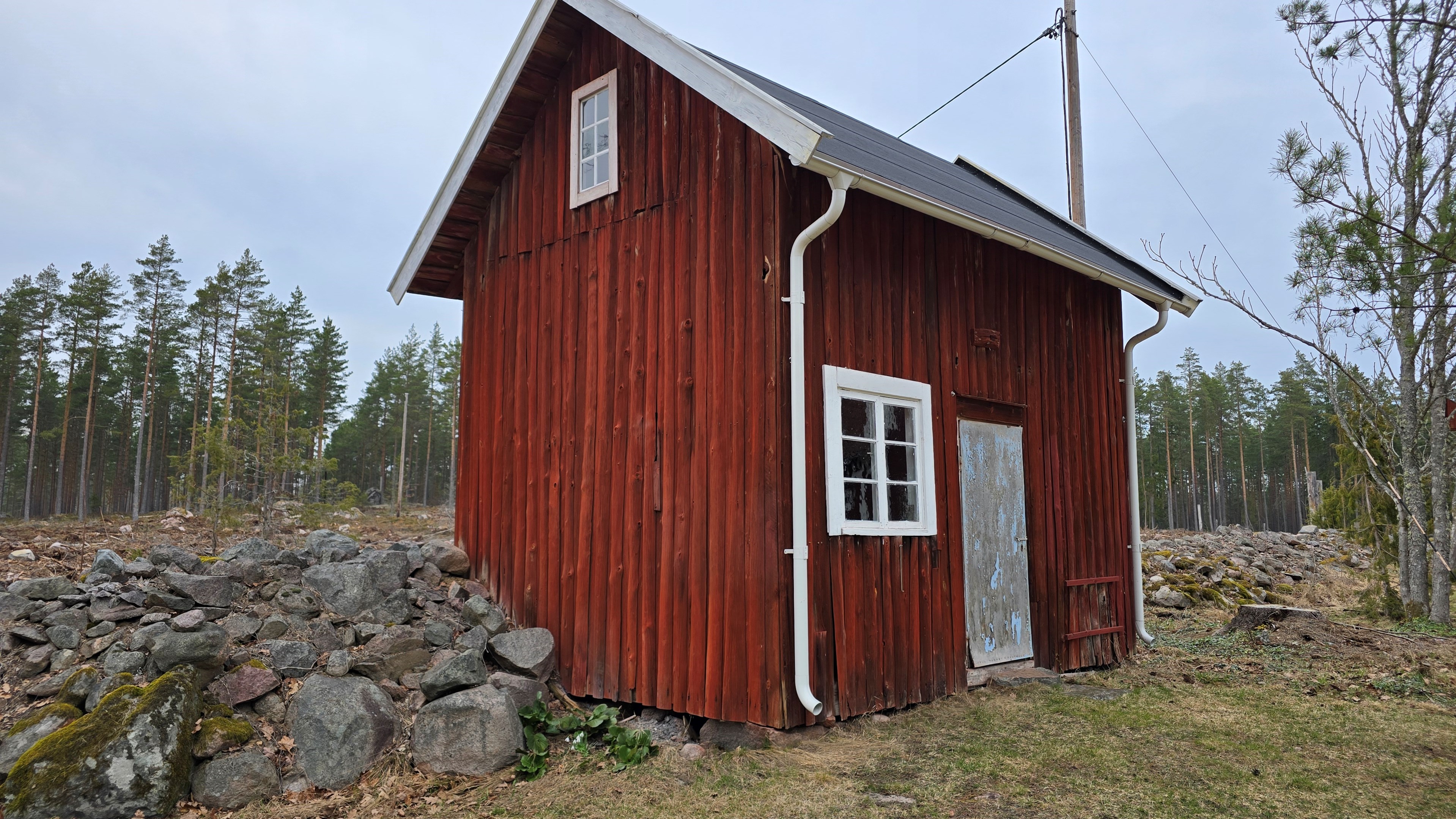 Helt ensligt torp på 130 m² med ny lada på 72 m², uthus och 14 500 m² tomt nära sjön Algunnen.