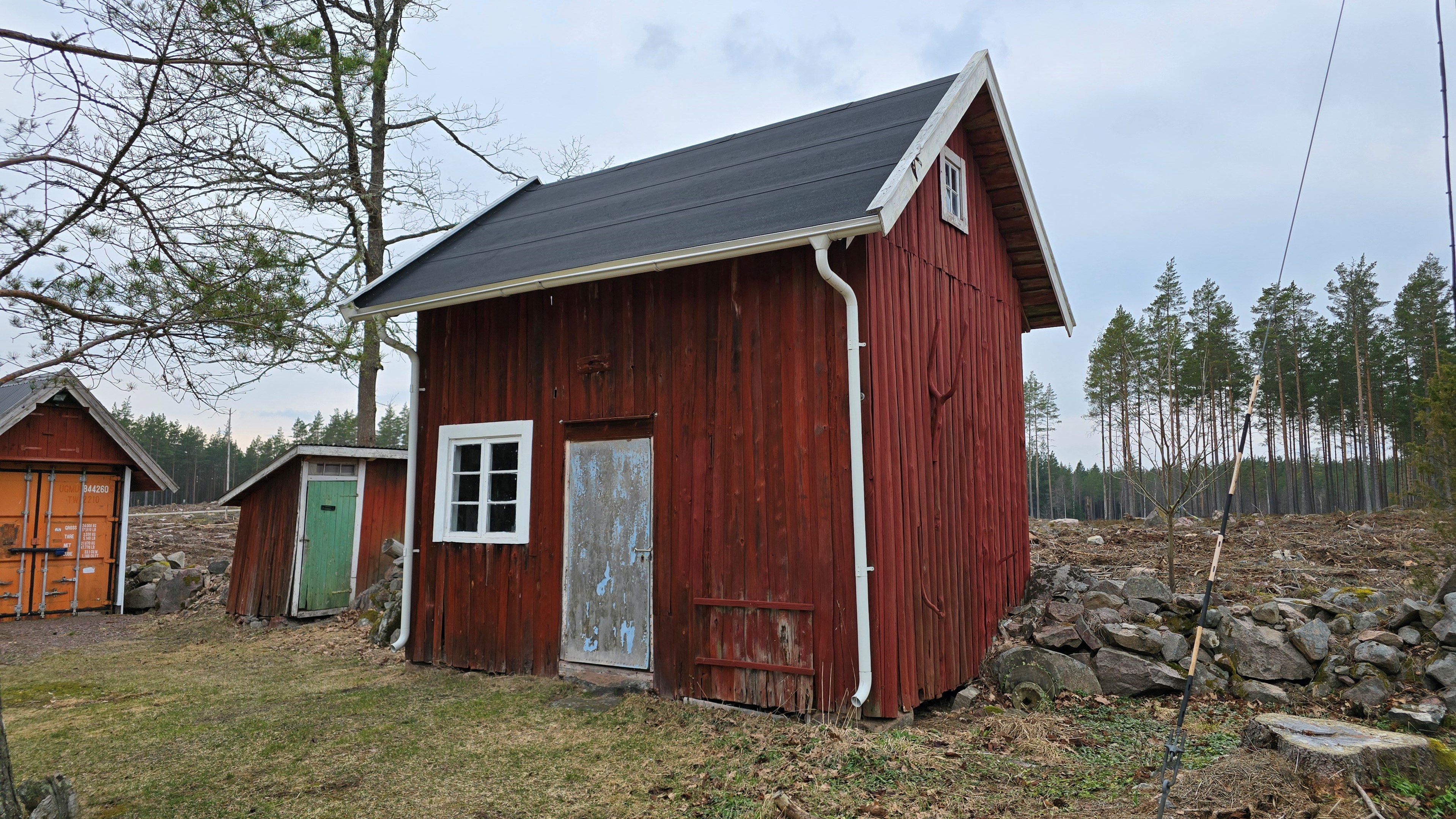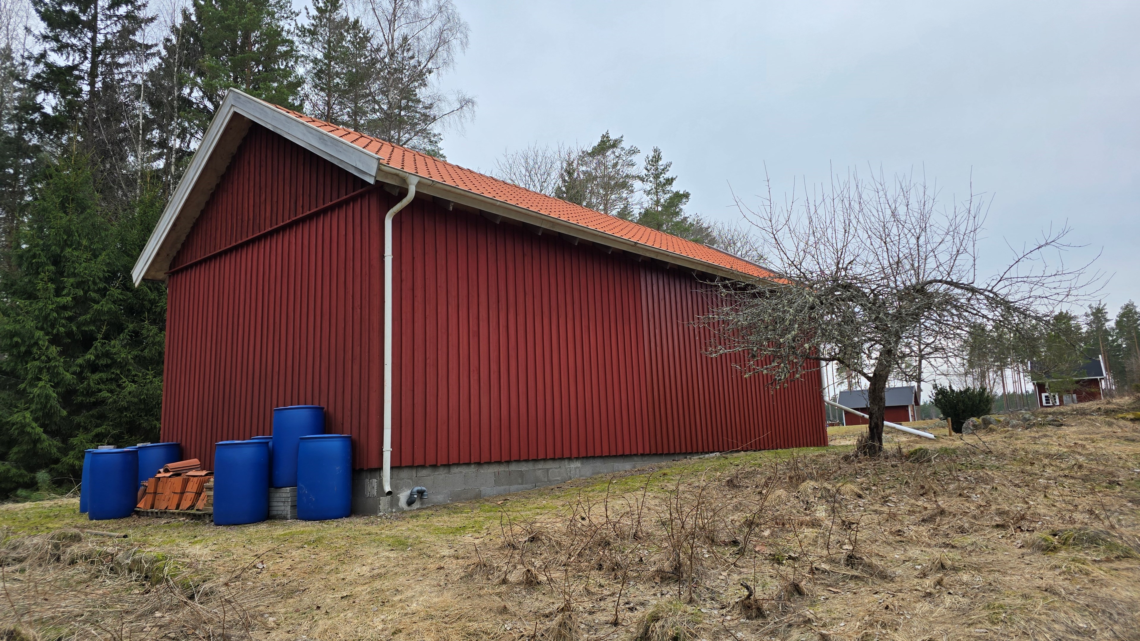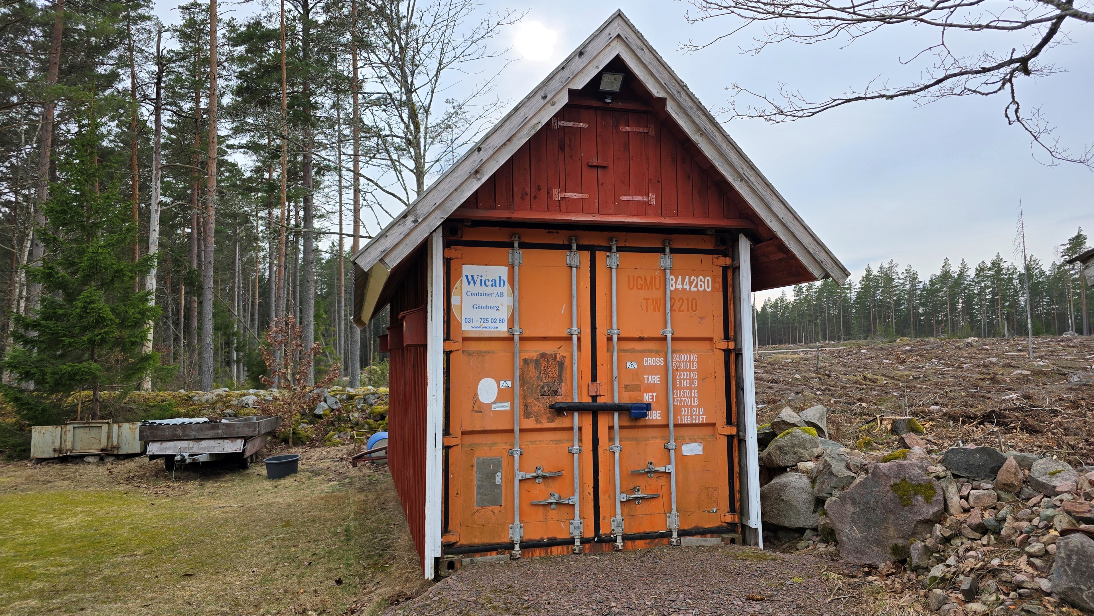 Ny lada 72 m2. Uthus 10 m2 + vind. Containerhus 15 m2. Vedbod 10 m2.