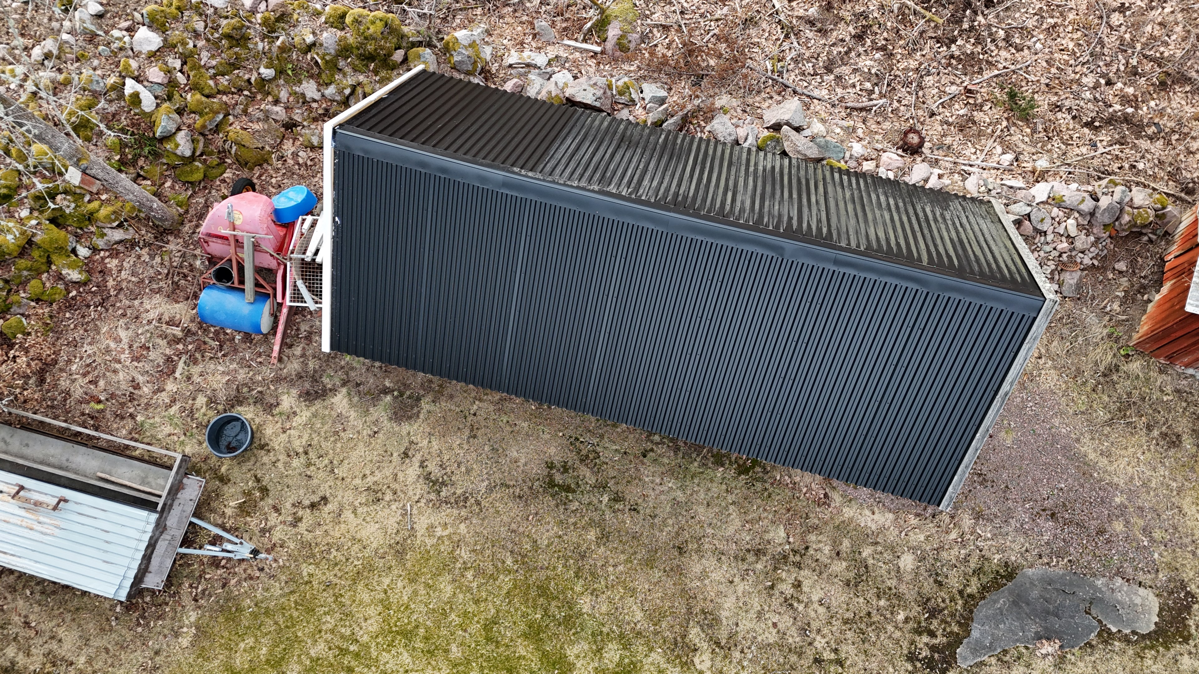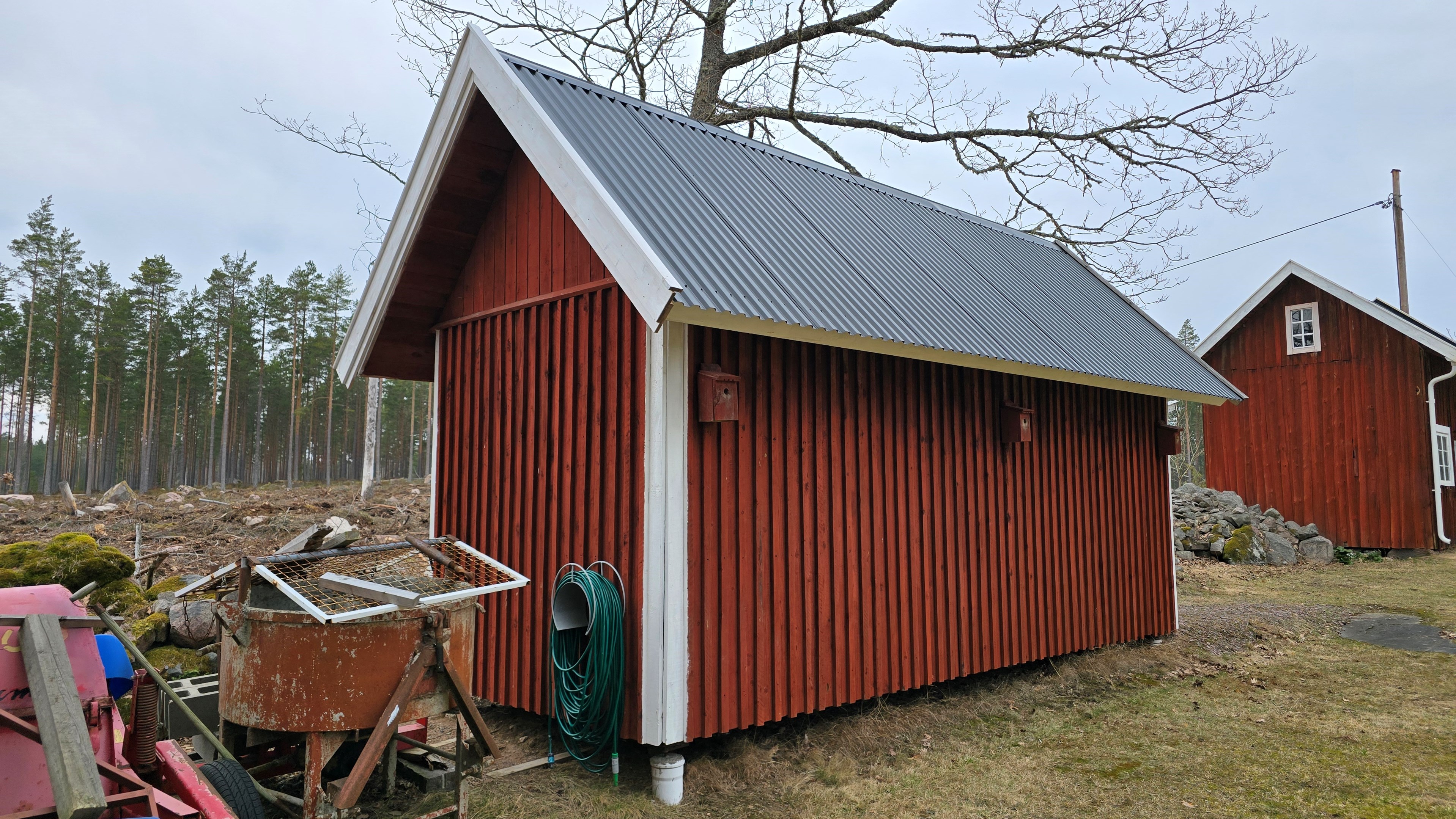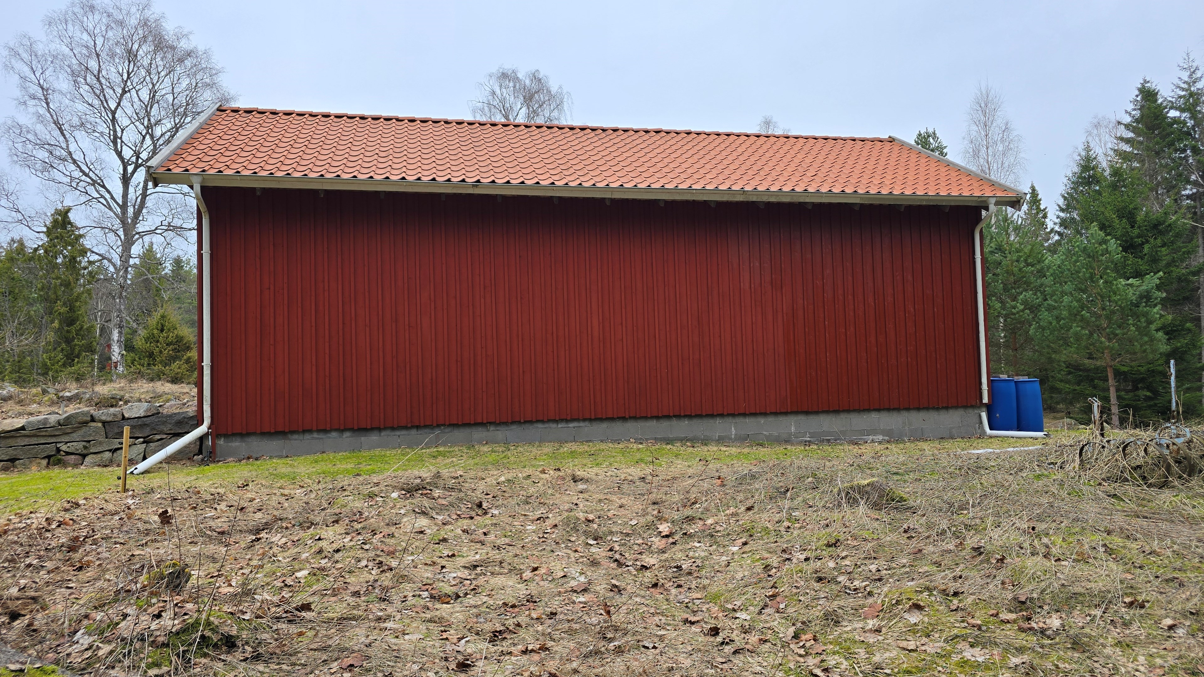 Ny lada 72 m2. Uthus 10 m2 + vind. Containerhus 15 m2. Vedbod 10 m2.
